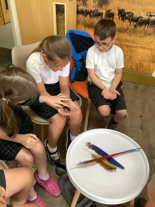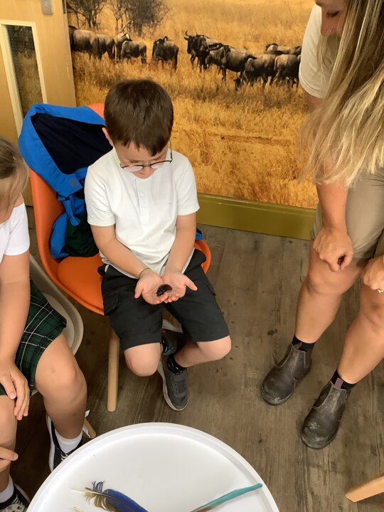 Additionally, we had a 30 minute lesson from Blackpool Zoo staff and got to see / touch an elephant tooth, parrot feathers, a turtle shell, camel fur a rainmaker and snake leather. As a special treat, we had the option to stroke or hold a Madagascar Hissing Cockroach.