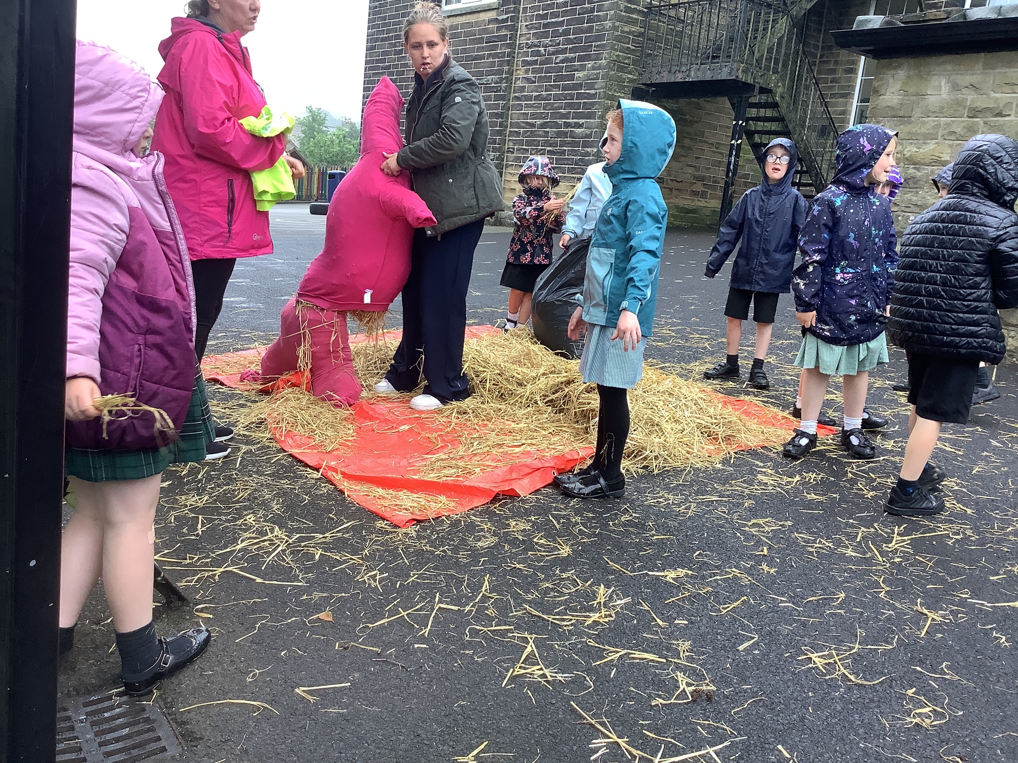 Some children from Y1 and Y2 have been very busy at our after school craft club making our entry for the scarecrow competition.
