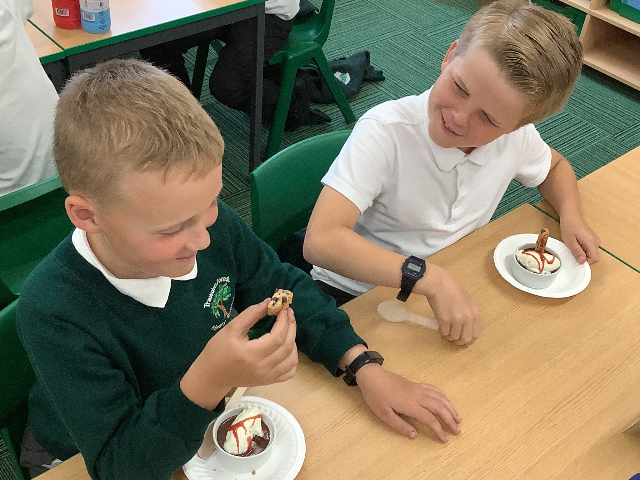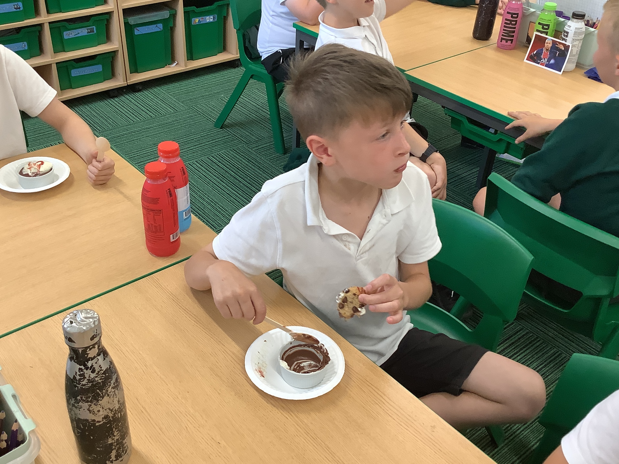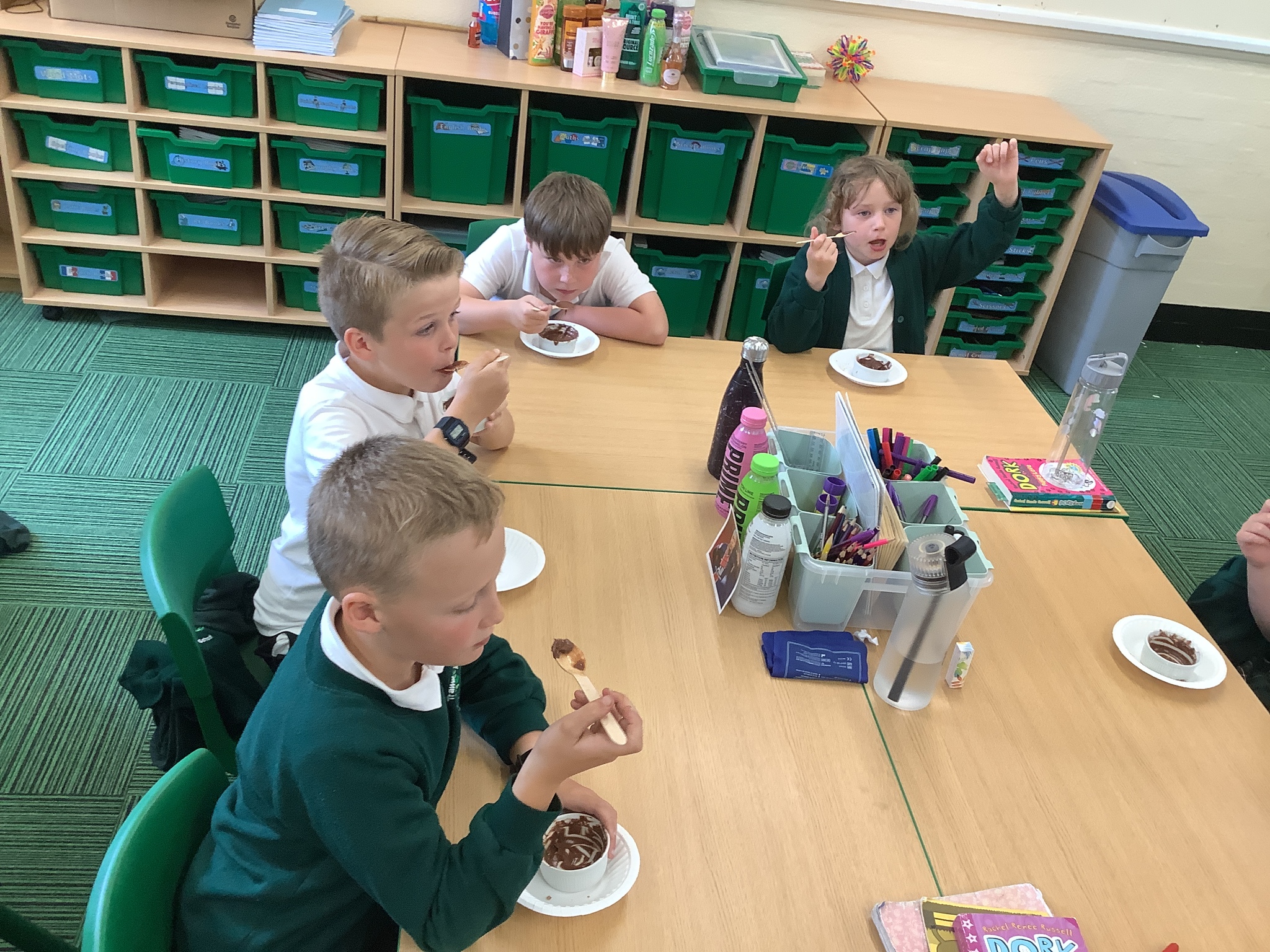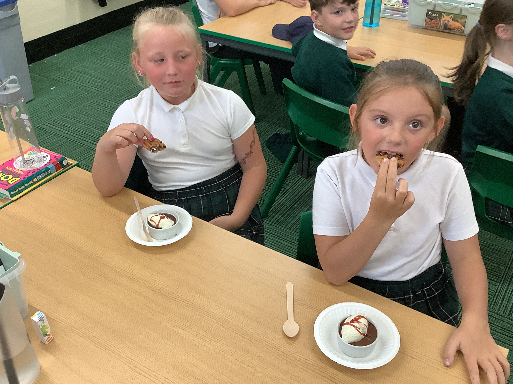 Finally, he had prepared a dessert for us to eat (and an extra couple for Mrs Stinchon and Miss Ridehalgh). This was a chocolate mousse, with freshly made quenelle whipped cream, a cookie and raspberry sauce. This is highly recommended by the children and adults!