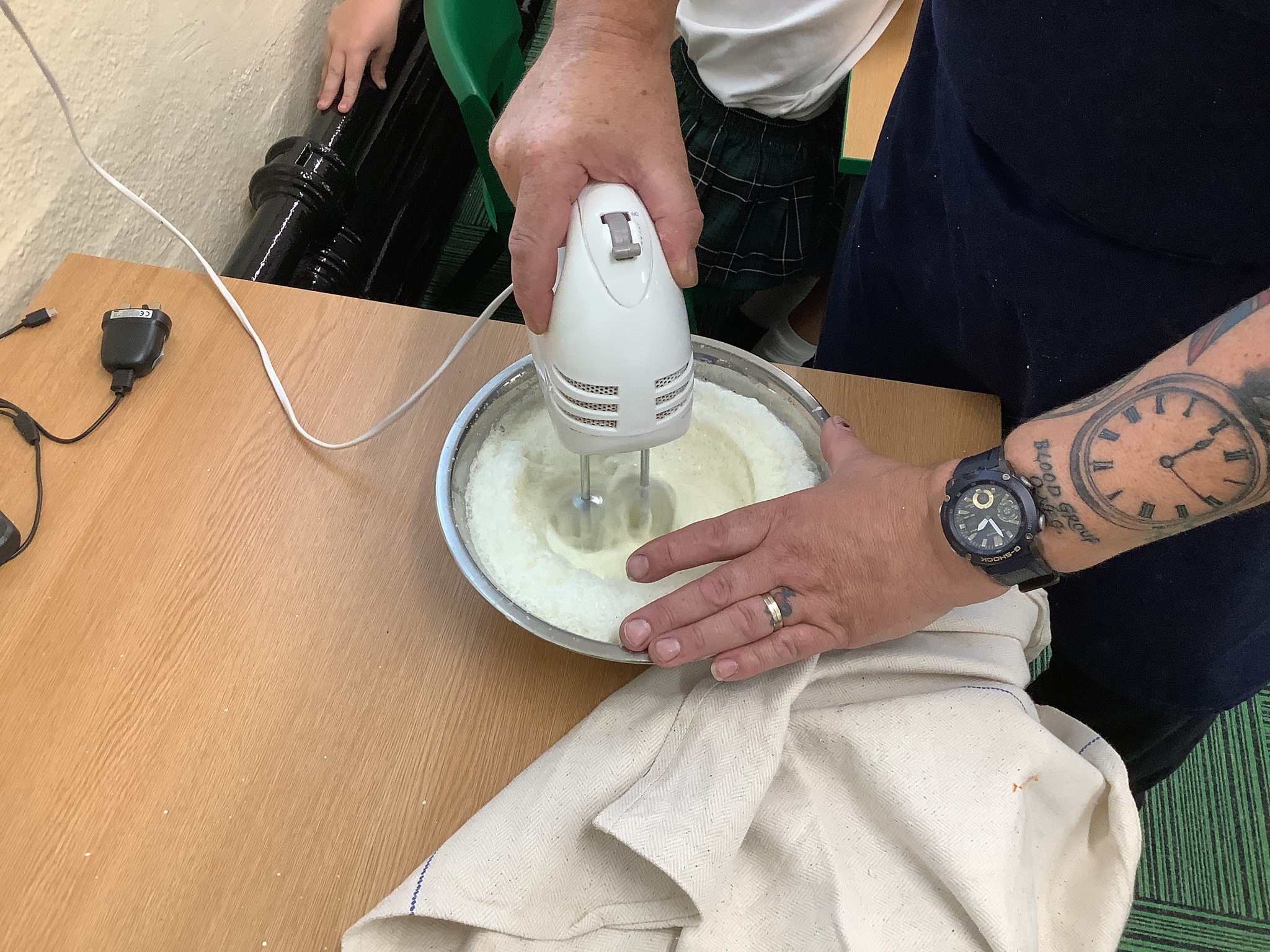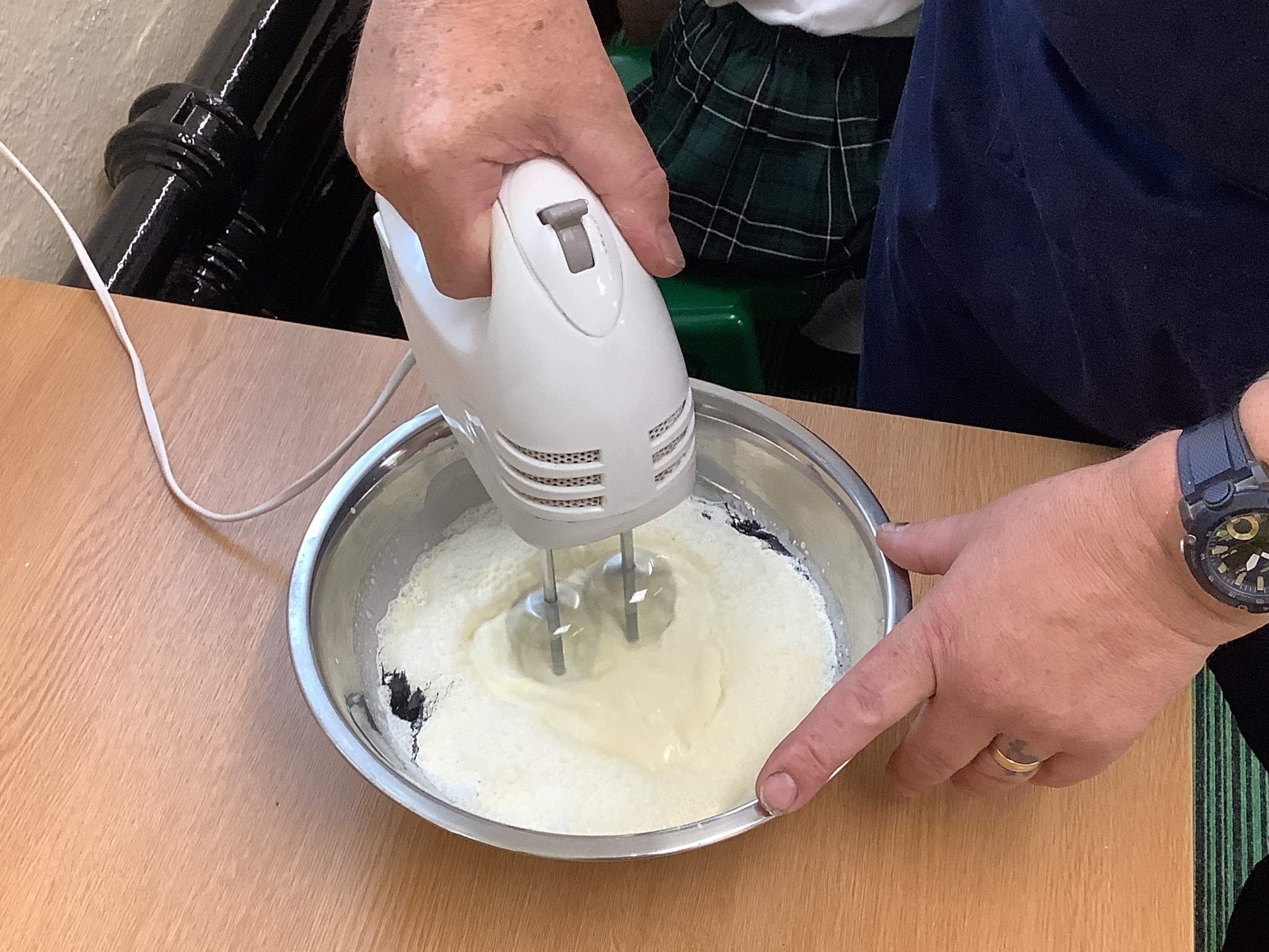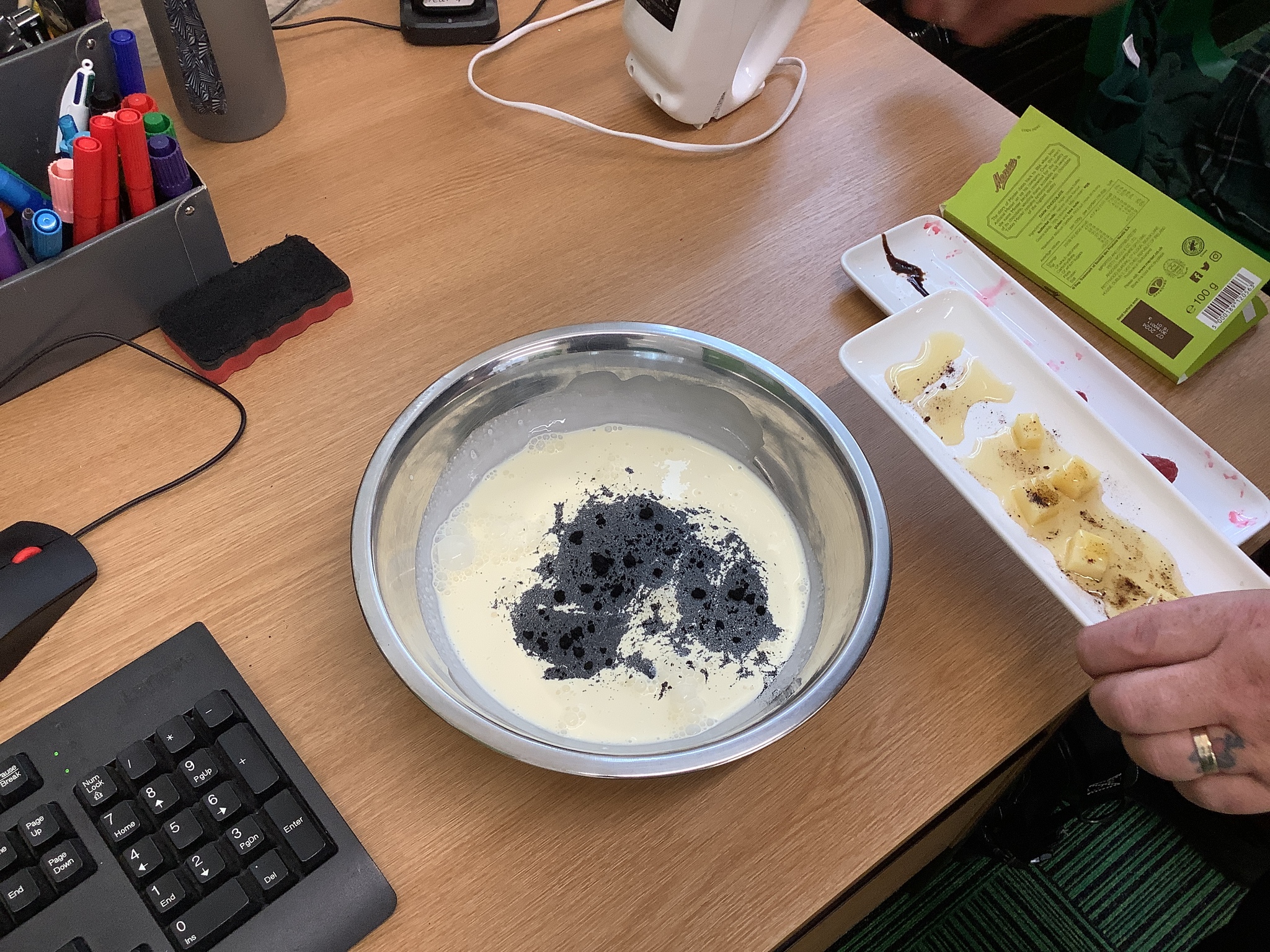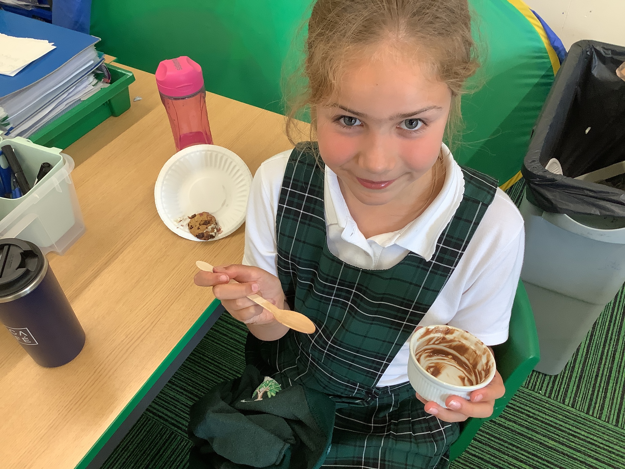 Finally, he had prepared a dessert for us to eat (and an extra couple for Mrs Stinchon and Miss Ridehalgh). This was a chocolate mousse, with freshly made quenelle whipped cream, a cookie and raspberry sauce. This is highly recommended by the children and adults!