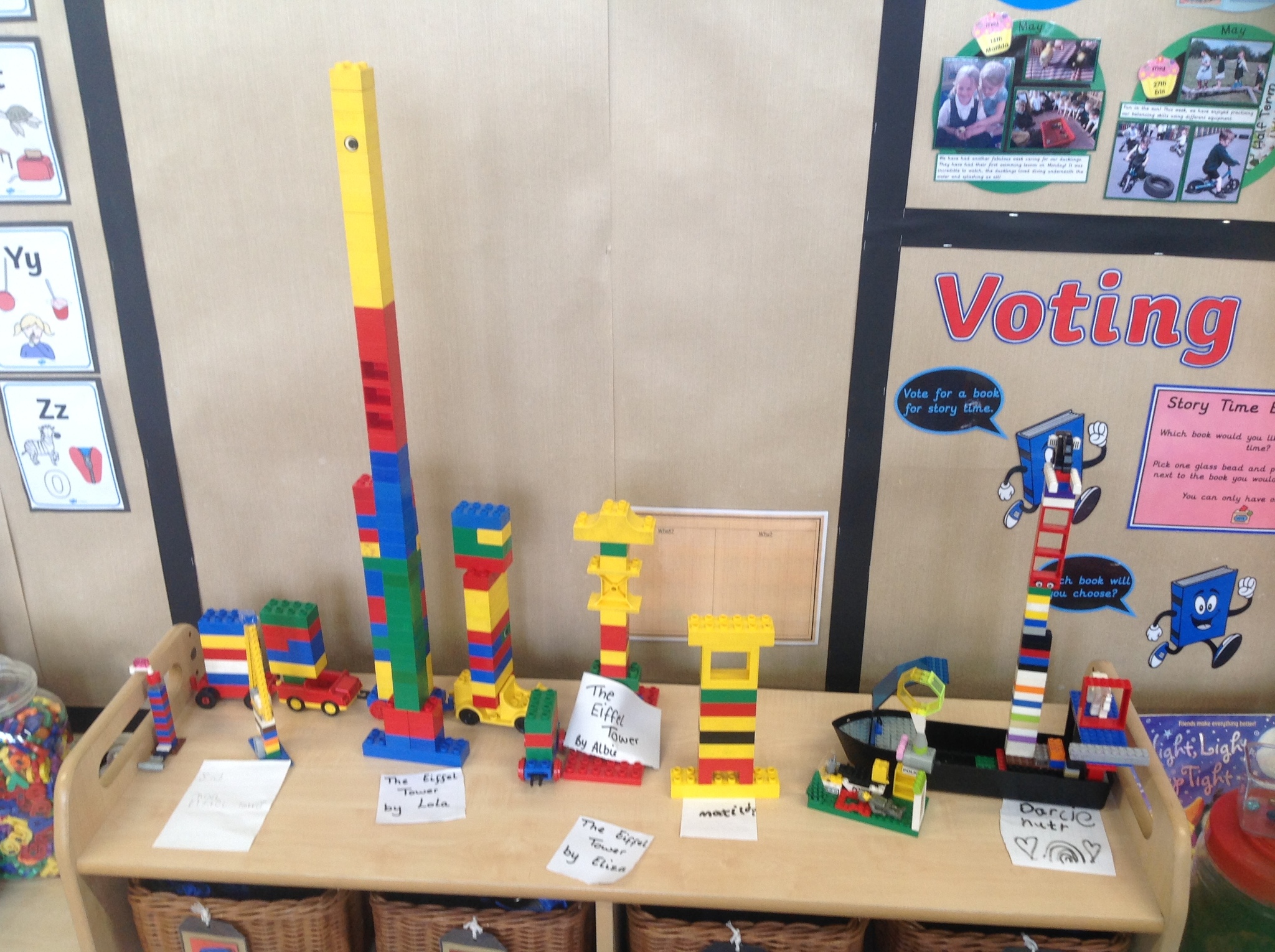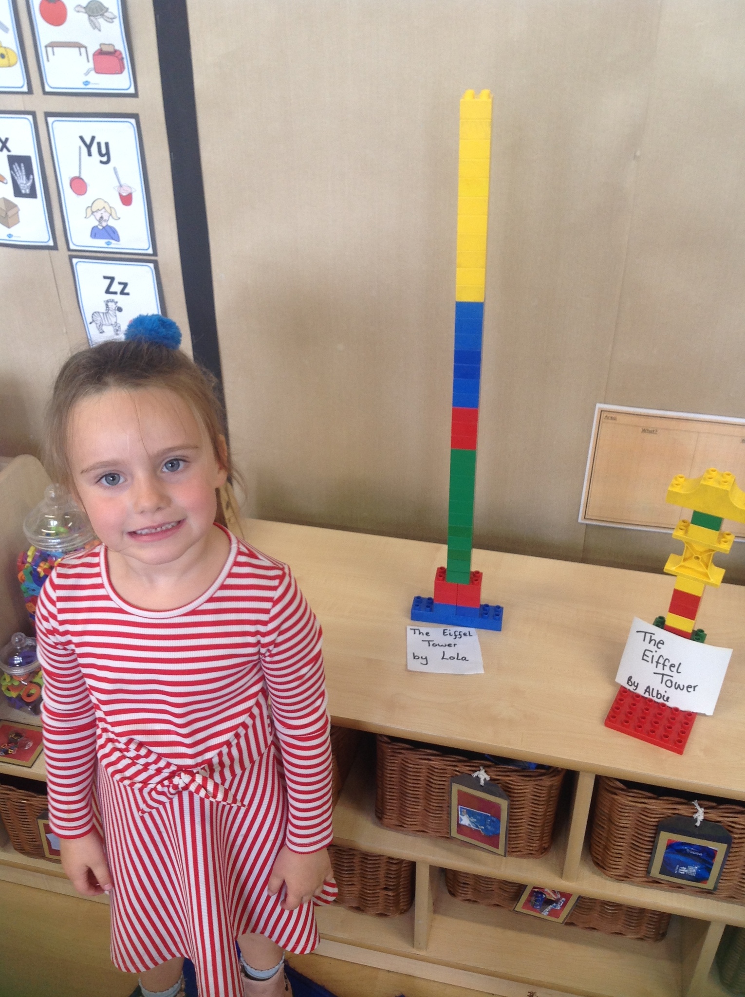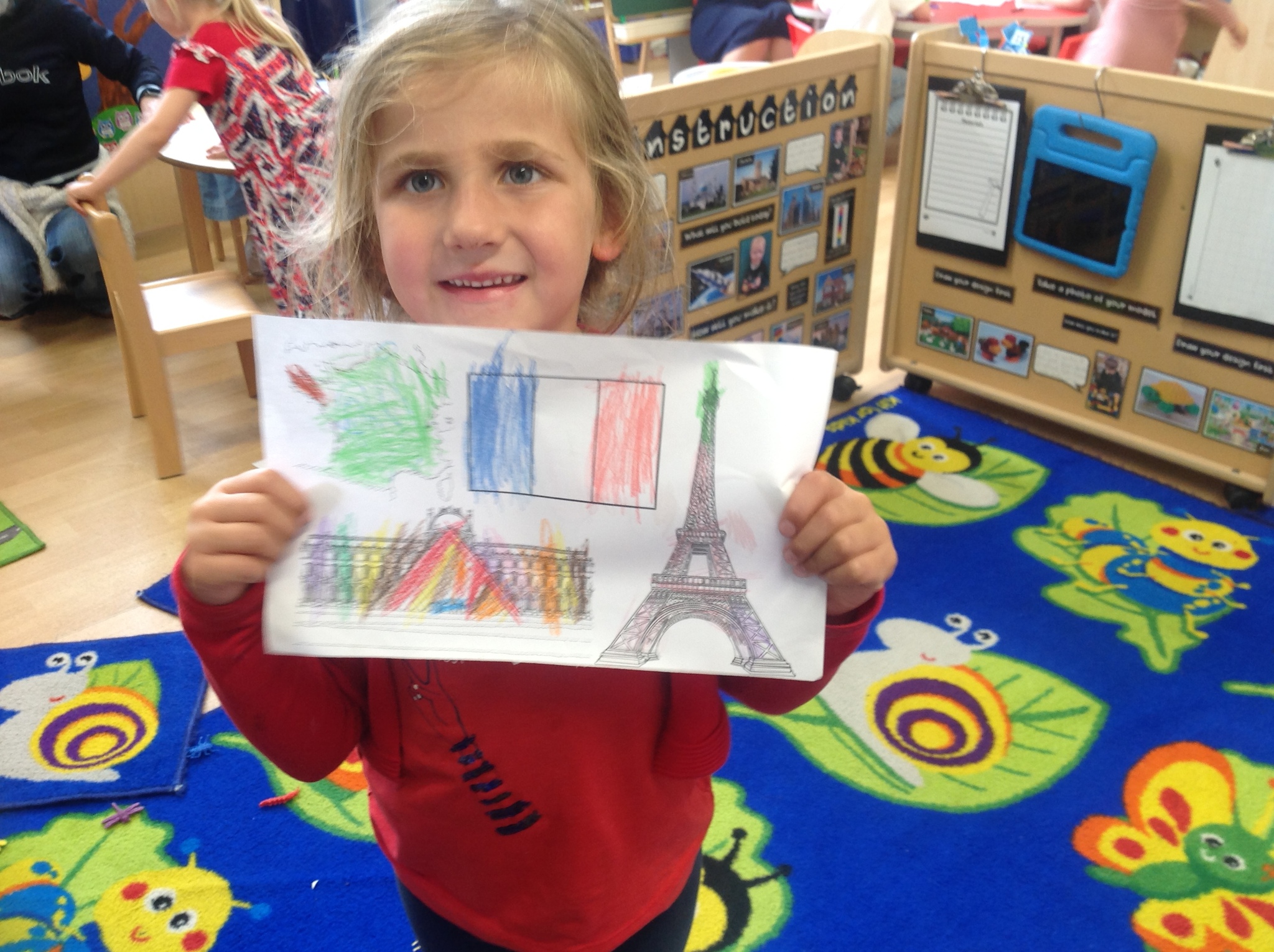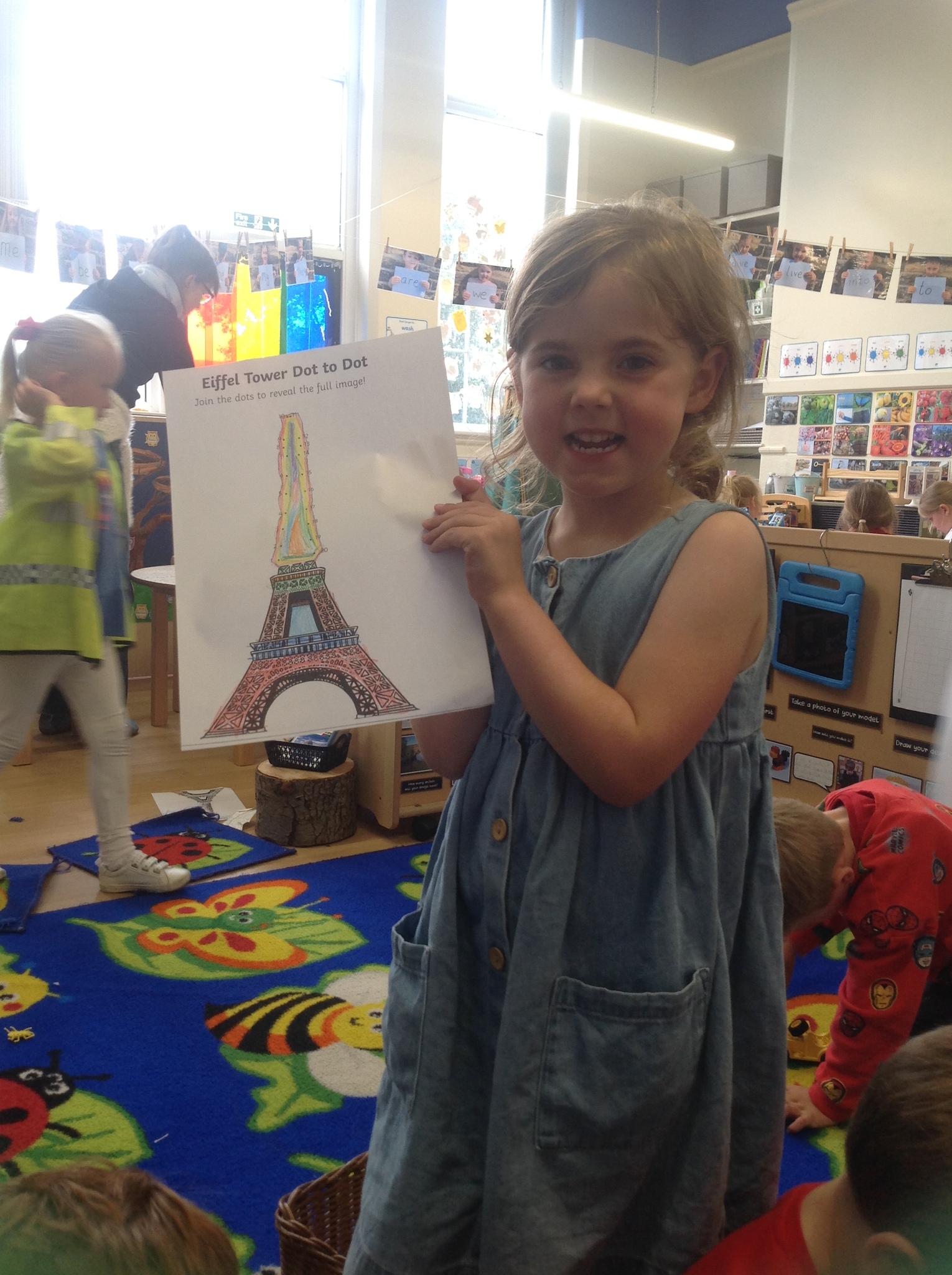 They started off the day with an exciting French Dance Workshop and then satisfied their hunger by tasting some delicious croissants and pain au chocolat - nobody fancied trying snails! They found out lots of facts about France and compared what is it like to go to school by listening to Mrs Smith's experience of living there when she was little. They also had lots of fun learning a variety of French songs, including 'Deux petit oiseaux' which they performed in front of their buddies, and some of the children decided to construct the Eiffel Tower! It's been a busy day!