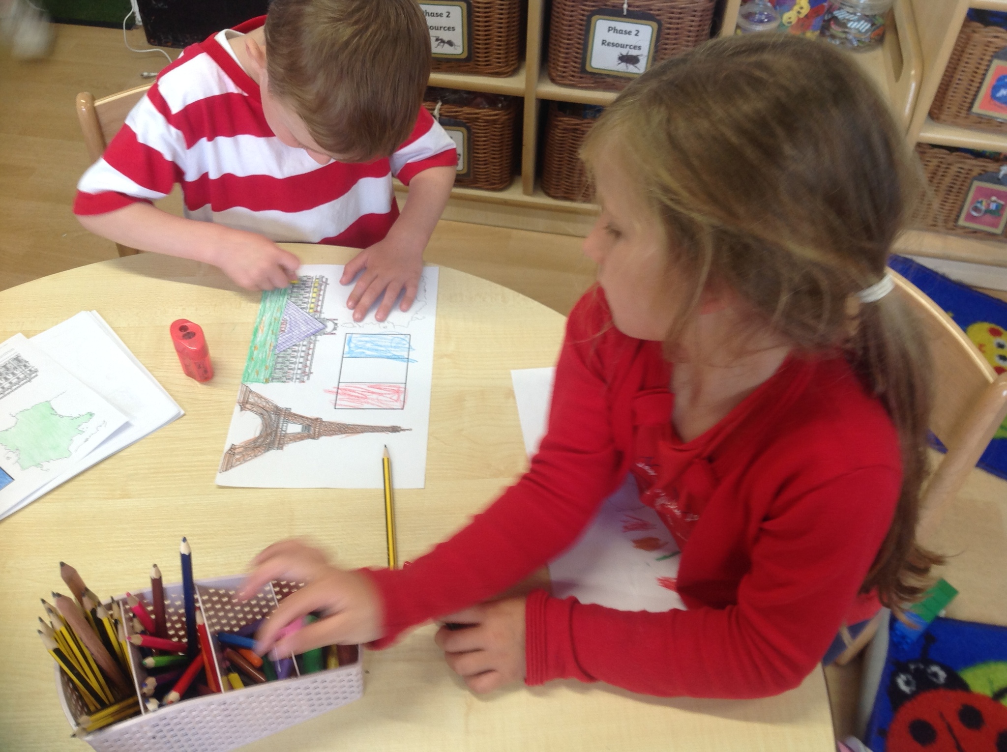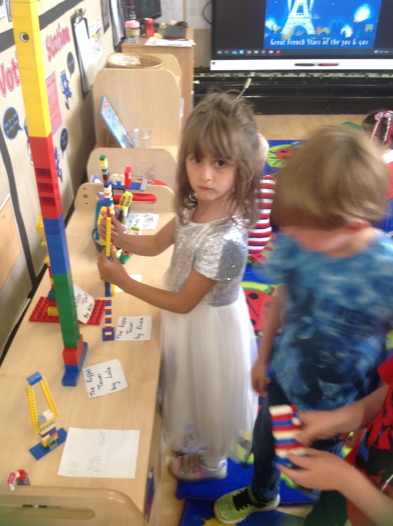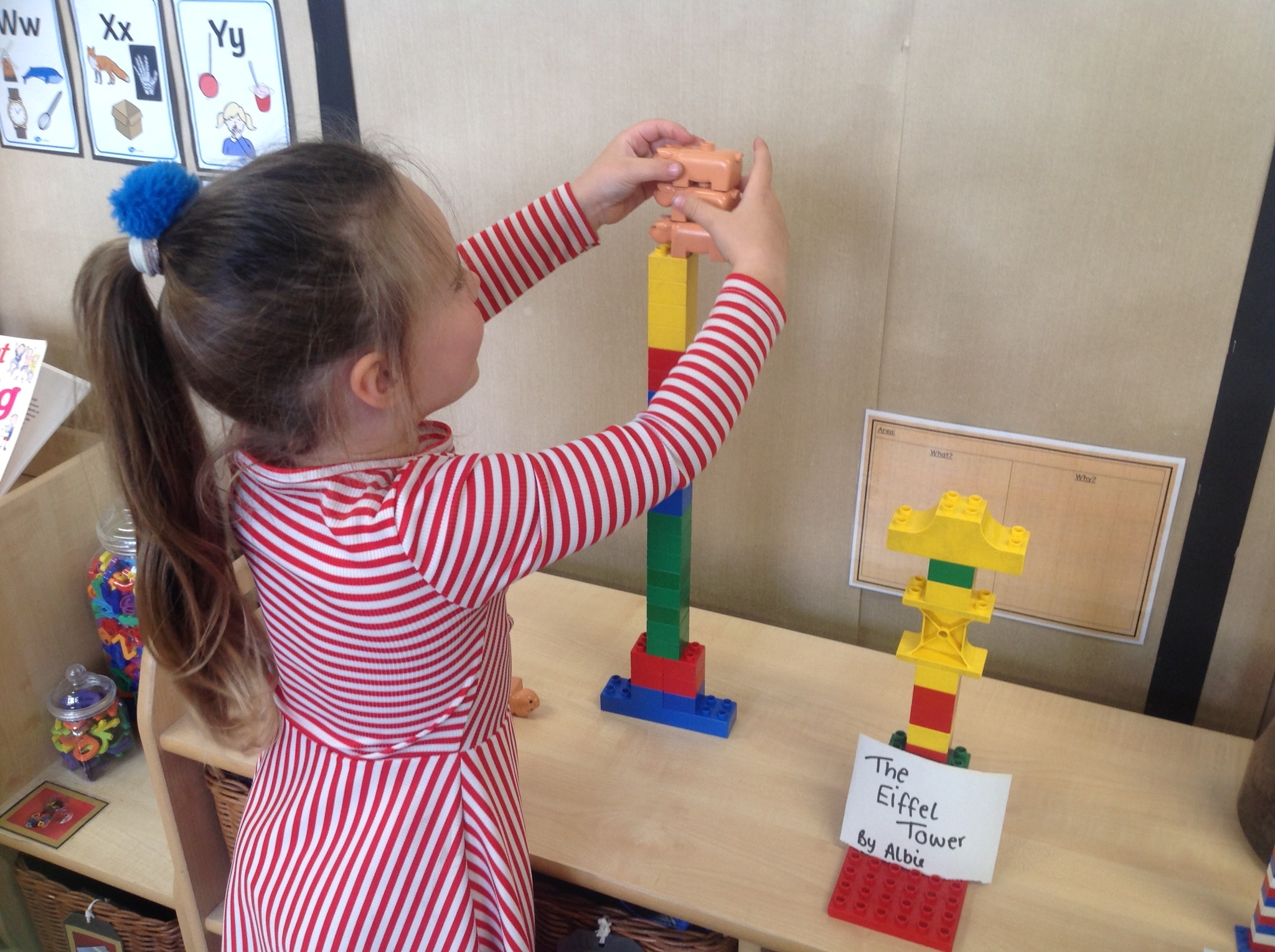 They started off the day with an exciting French Dance Workshop and then satisfied their hunger by tasting some delicious croissants and pain au chocolat - nobody fancied trying snails! They found out lots of facts about France and compared what is it like to go to school by listening to Mrs Smith's experience of living there when she was little. They also had lots of fun learning a variety of French songs, including 'Deux petit oiseaux' which they performed in front of their buddies, and some of the children decided to construct the Eiffel Tower! It's been a busy day!