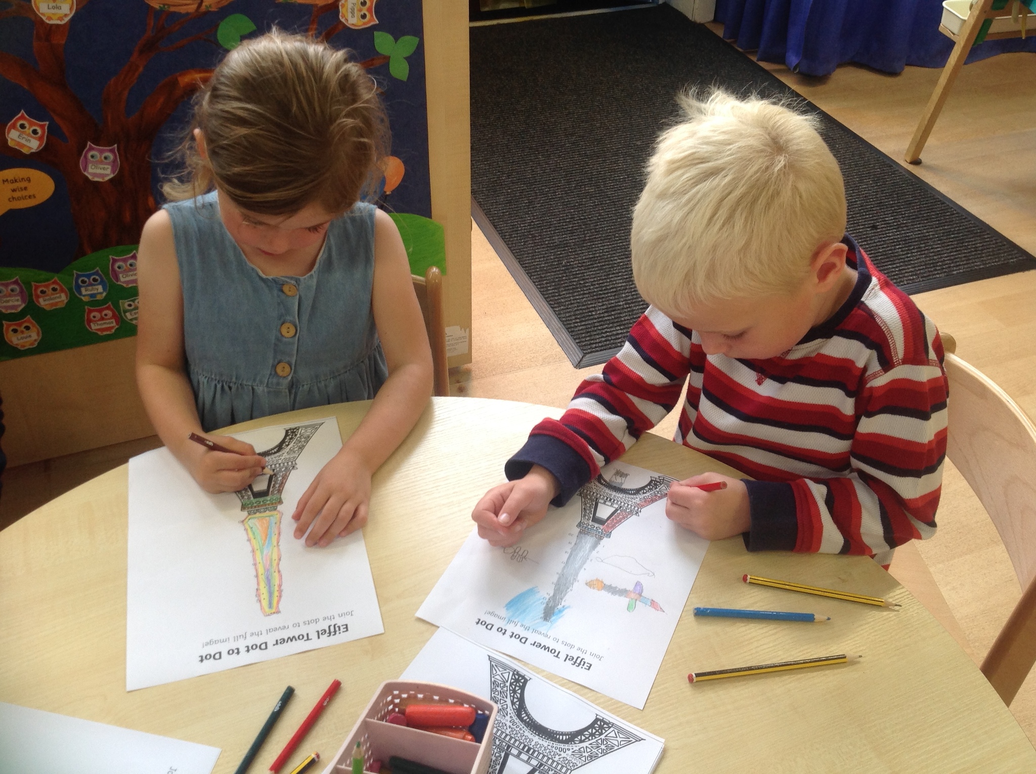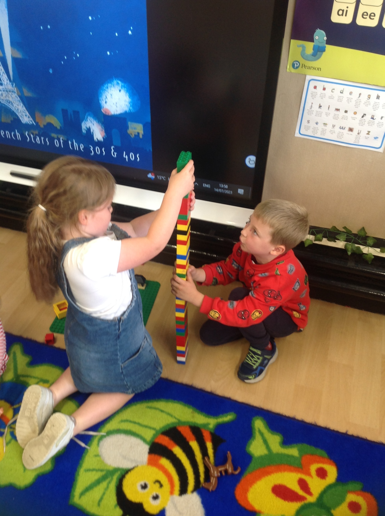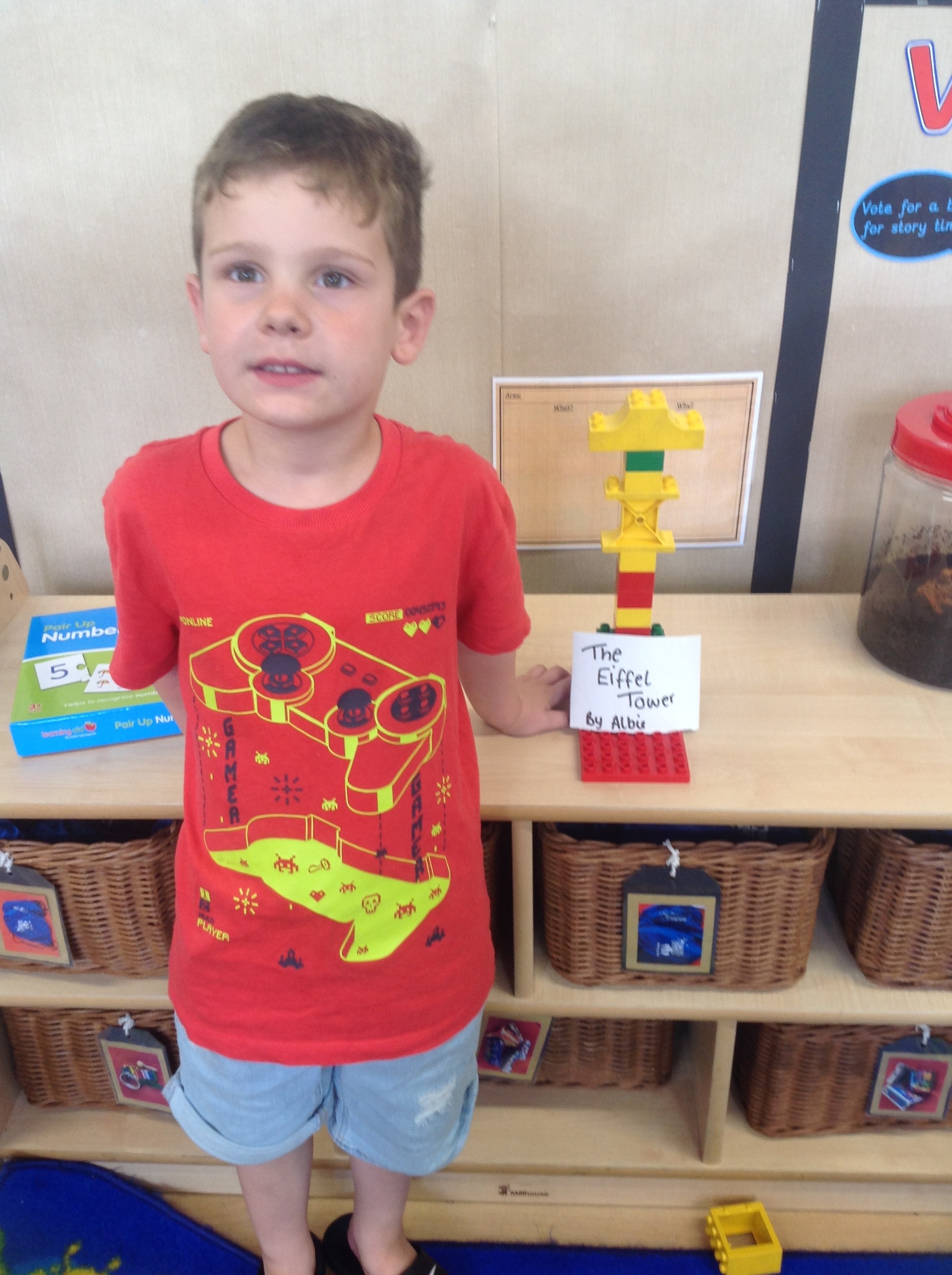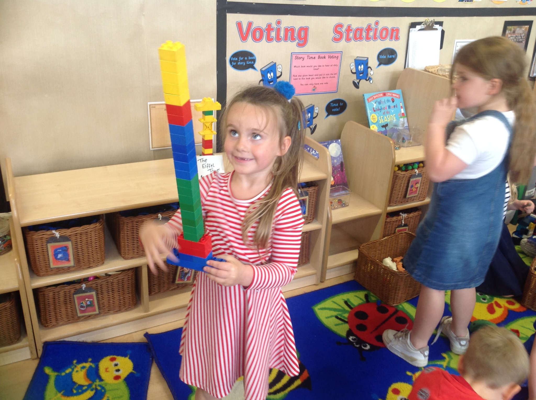 They started off the day with an exciting French Dance Workshop and then satisfied their hunger by tasting some delicious croissants and pain au chocolat - nobody fancied trying snails! They found out lots of facts about France and compared what is it like to go to school by listening to Mrs Smith's experience of living there when she was little. They also had lots of fun learning a variety of French songs, including 'Deux petit oiseaux' which they performed in front of their buddies, and some of the children decided to construct the Eiffel Tower! It's been a busy day!