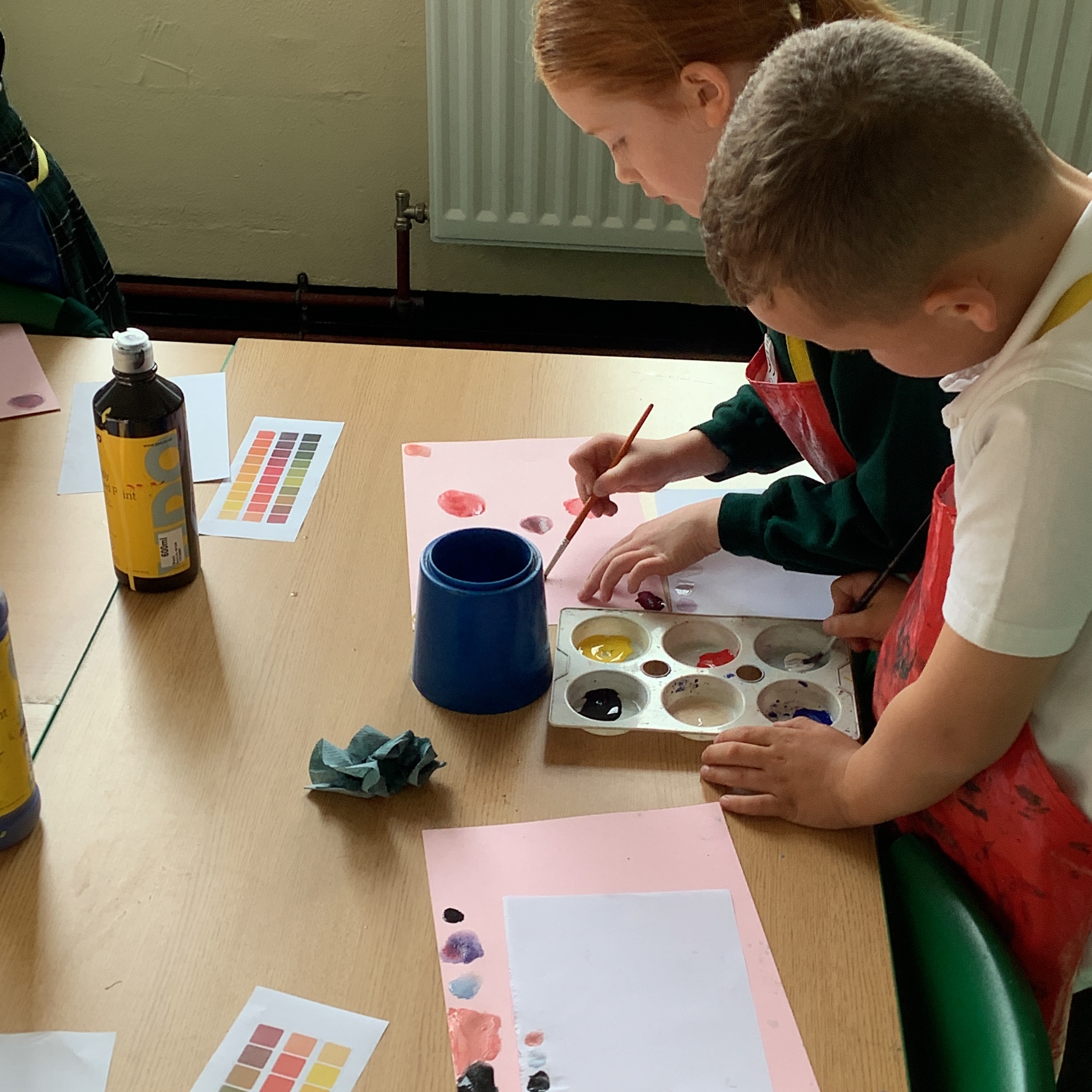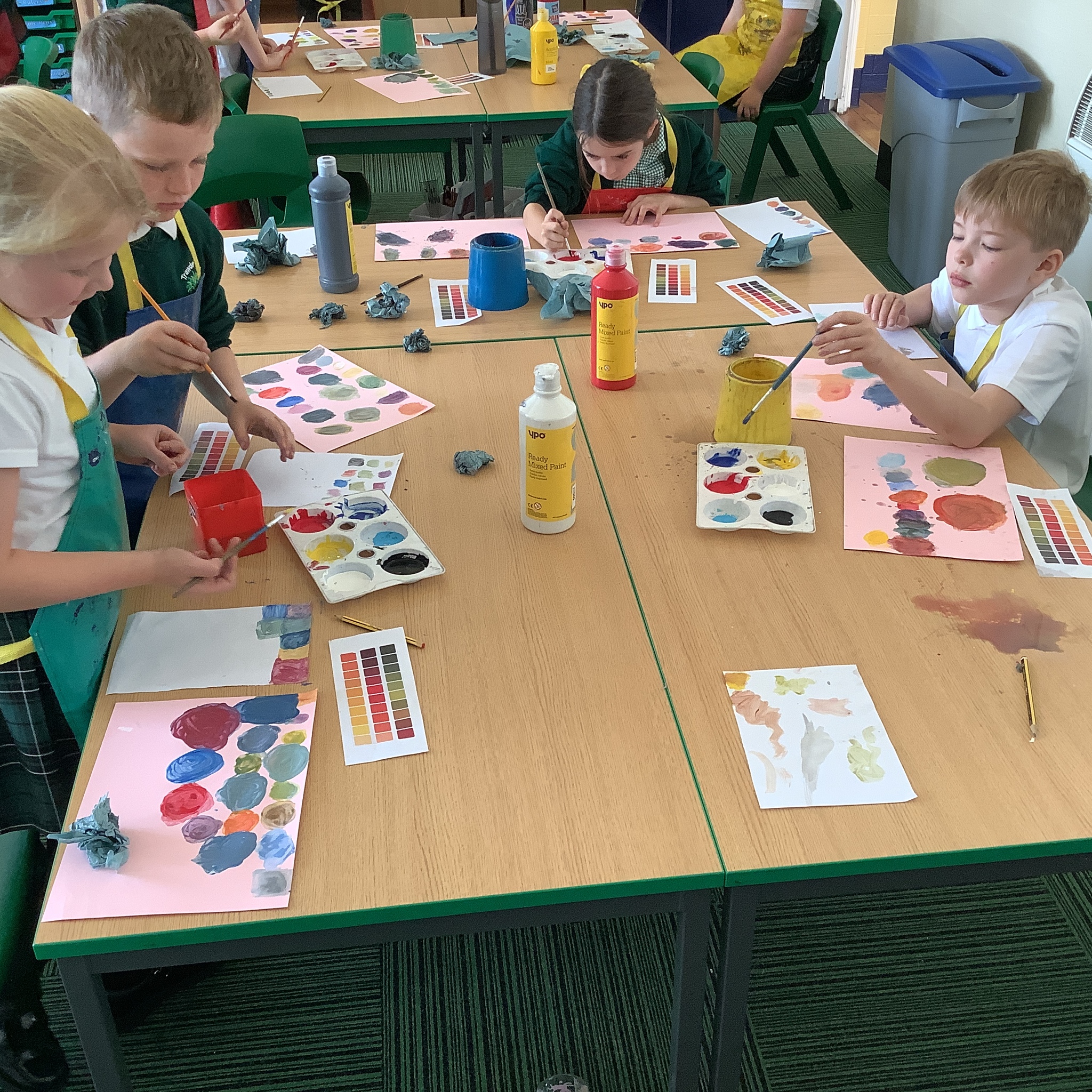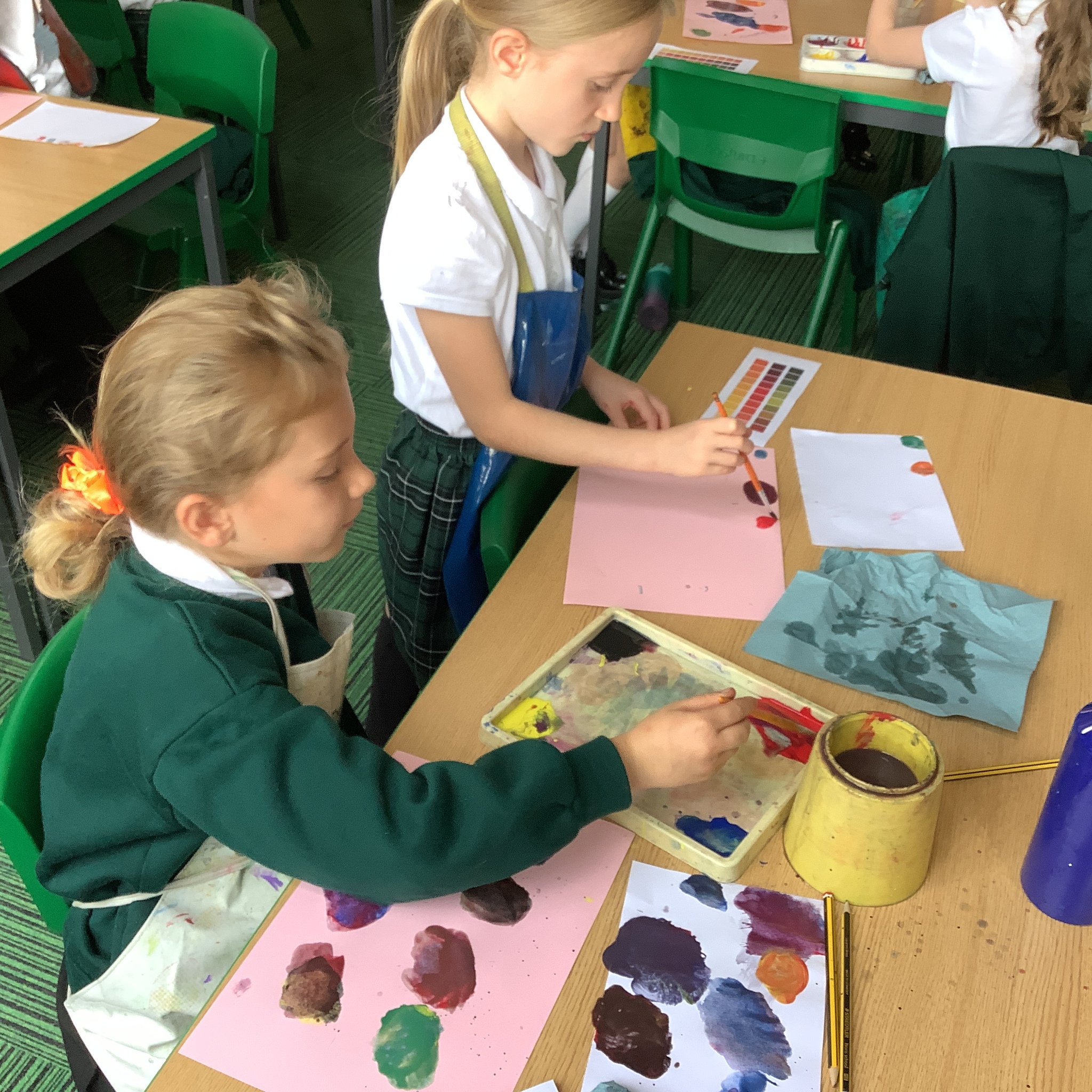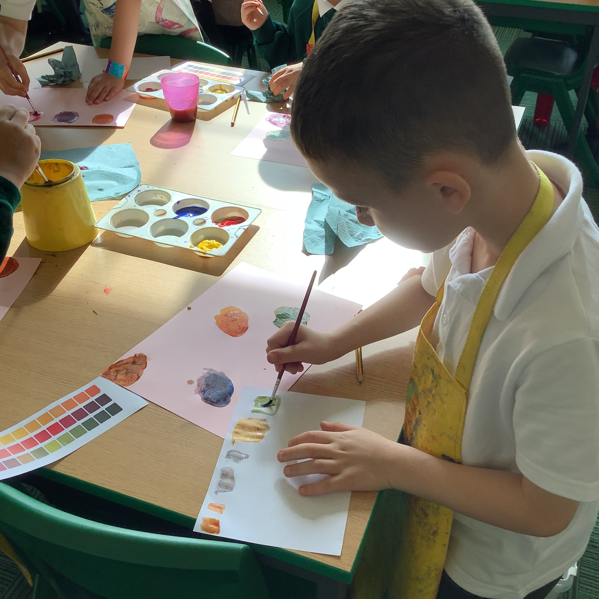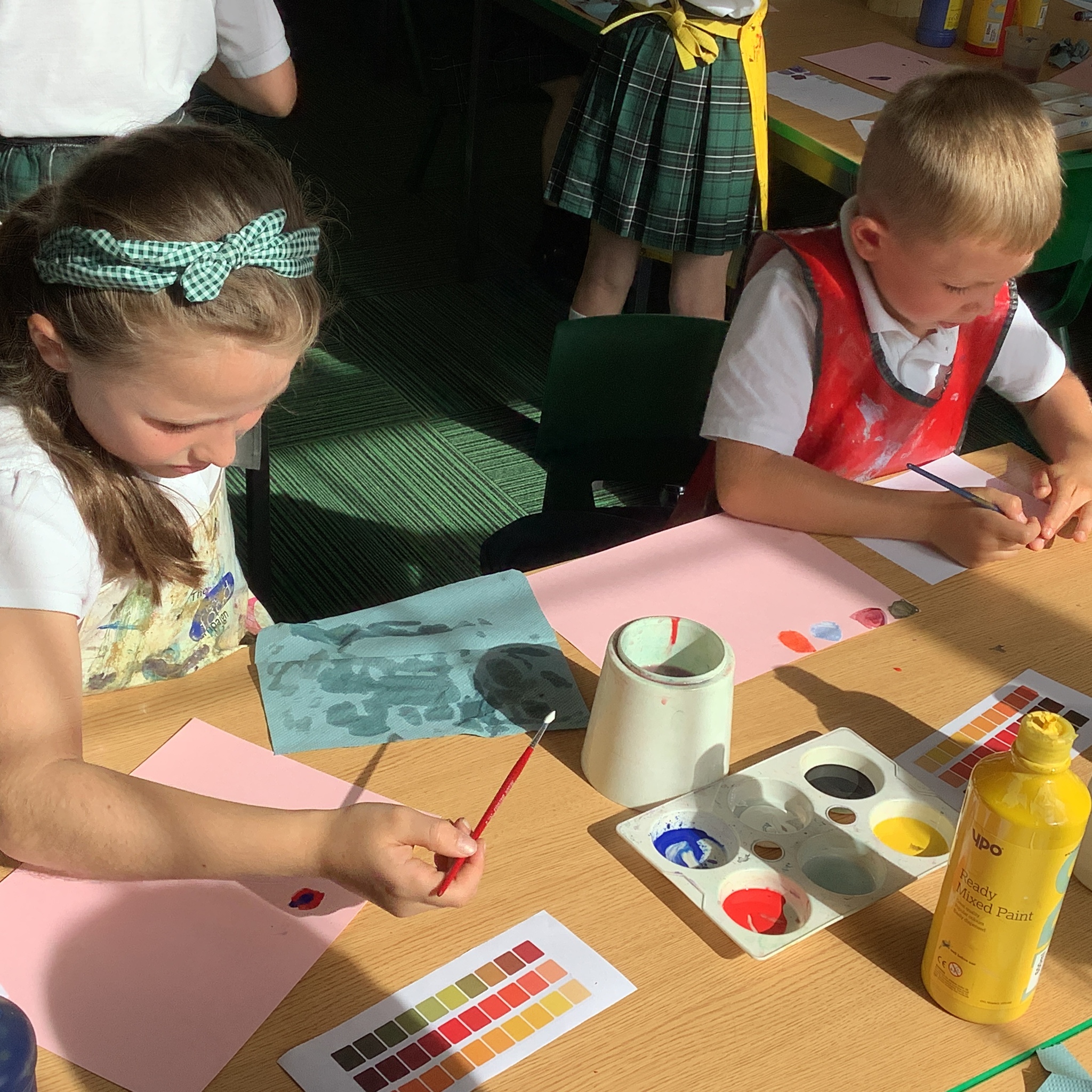 In English, we are going to write a poem about autumn so we watched a video clip of many autumnal images and events. We then discussed many alternative words for different shades of brown, yellow and red such as maroon, flame, salmon, coffee, chocolate, cherry and burnt orange. Following this, we examined some colour swatches and recreated autumn colours in paint. Year 3 did a fantastic job organising themselves and were great artistic inventors!