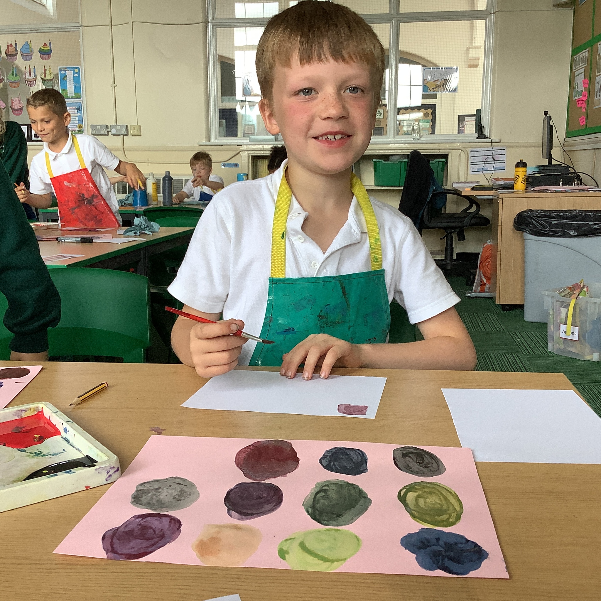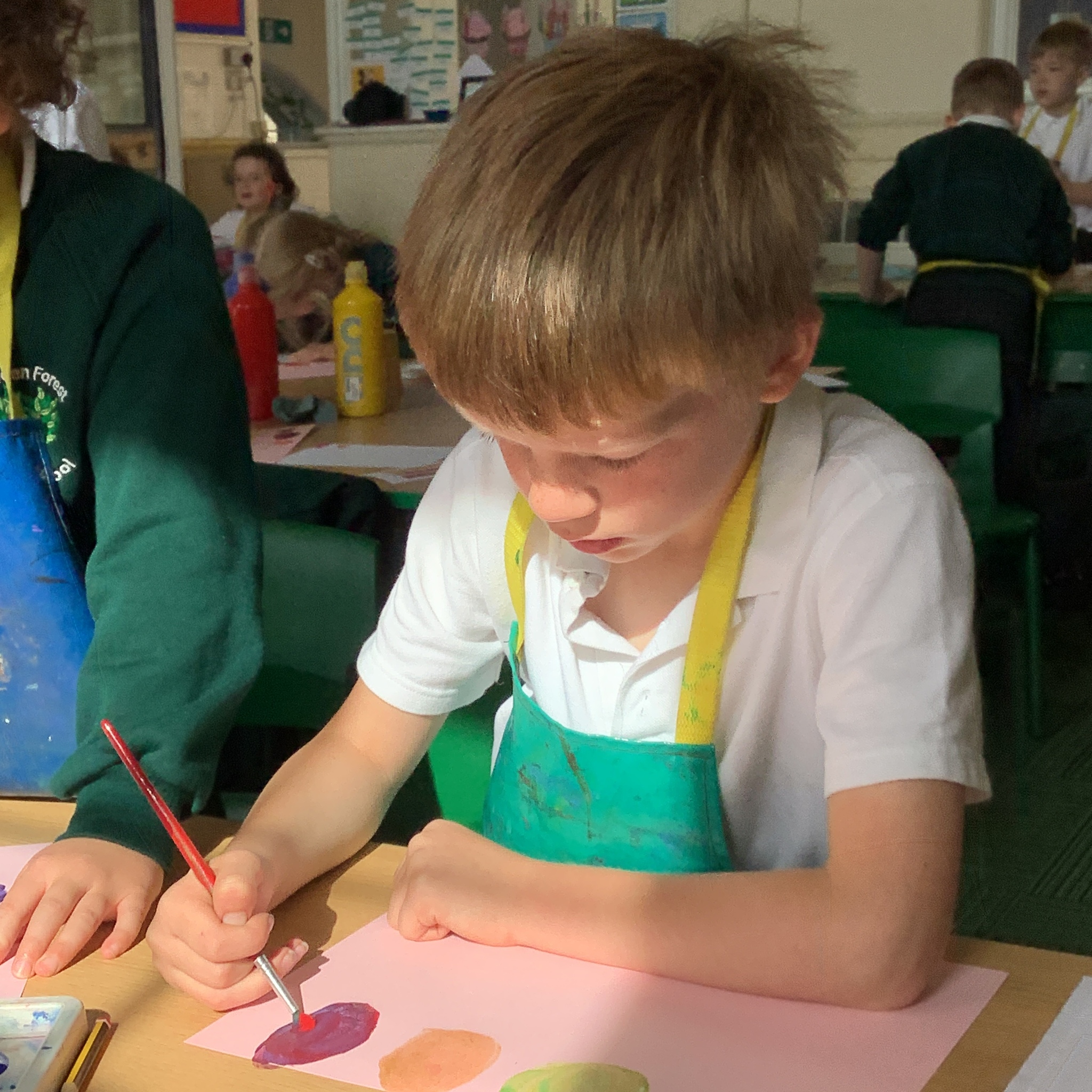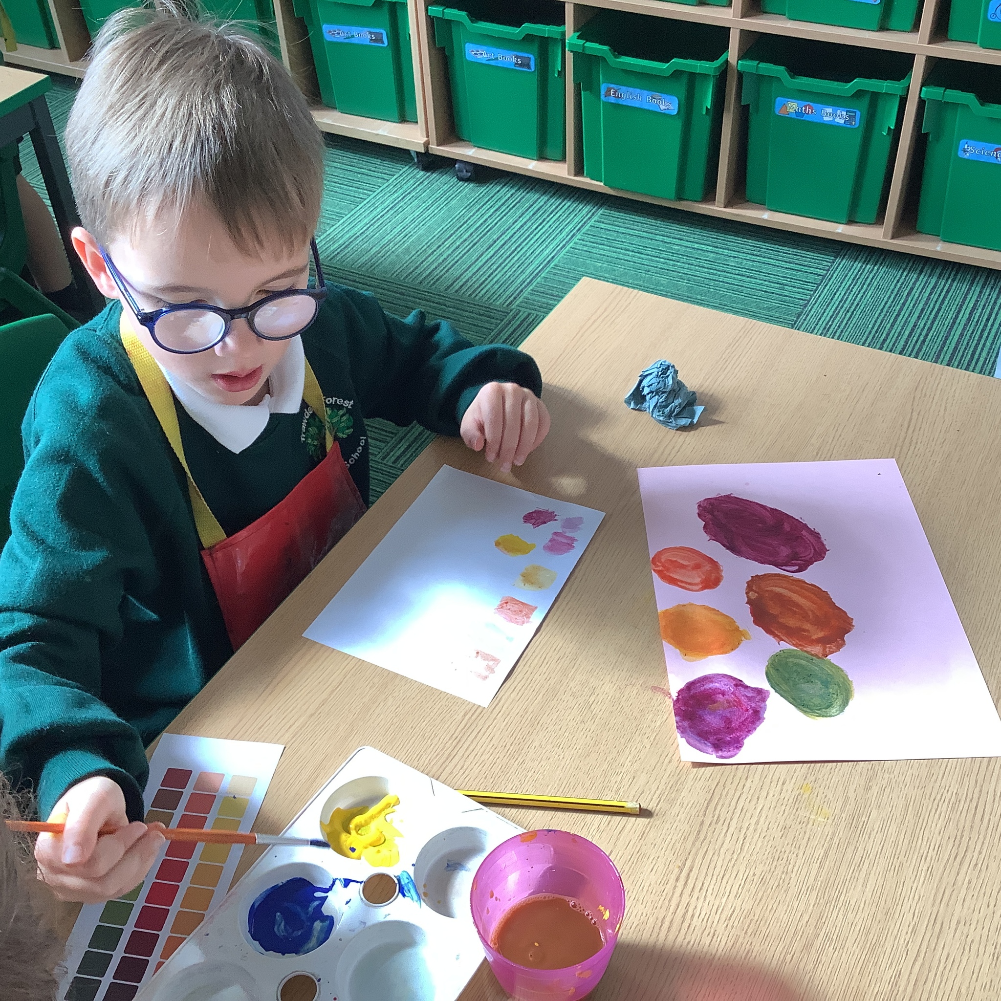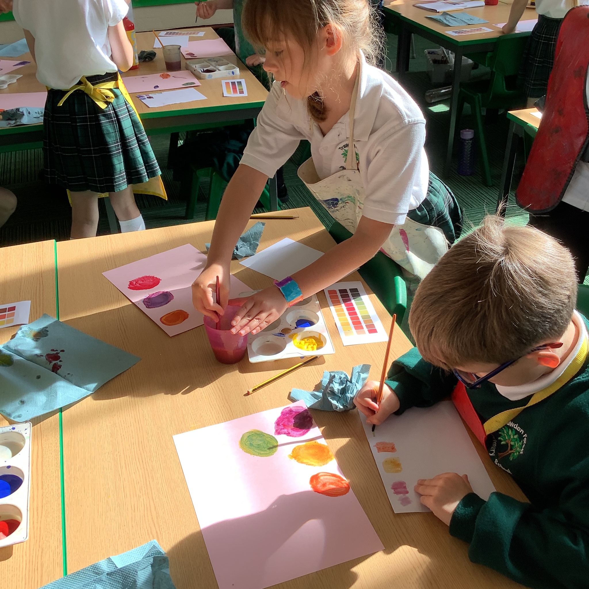 In English, we are going to write a poem about autumn so we watched a video clip of many autumnal images and events. We then discussed many alternative words for different shades of brown, yellow and red such as maroon, flame, salmon, coffee, chocolate, cherry and burnt orange. Following this, we examined some colour swatches and recreated autumn colours in paint. Year 3 did a fantastic job organising themselves and were great artistic inventors!