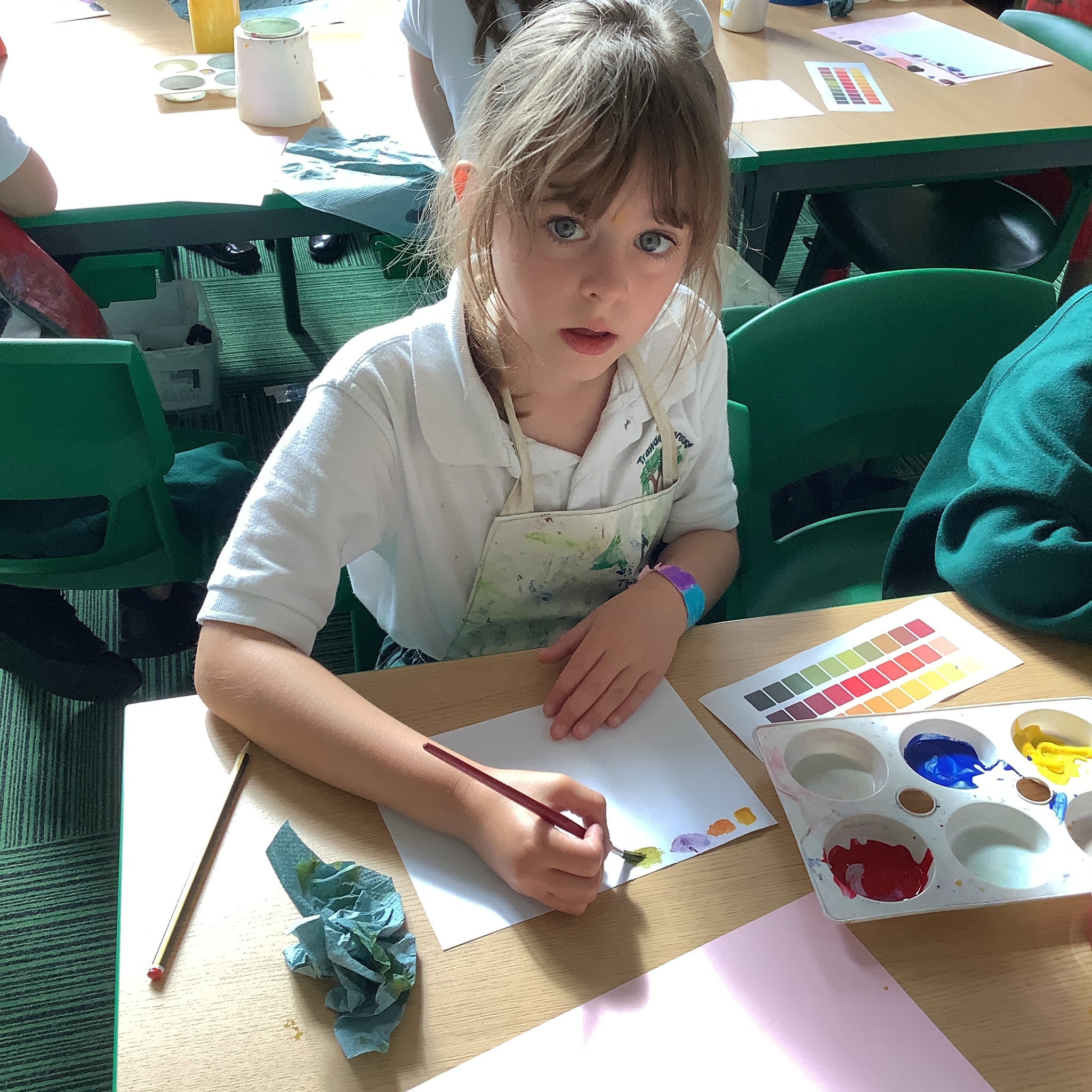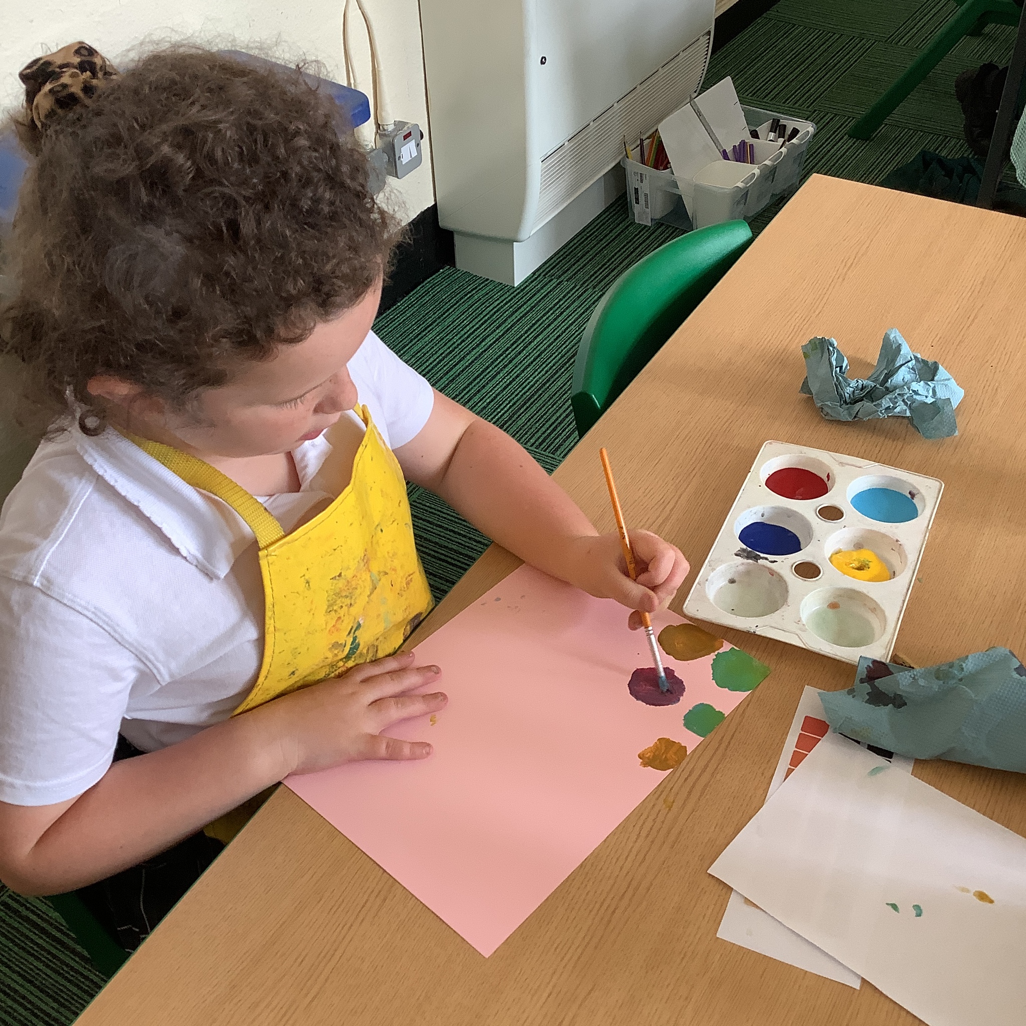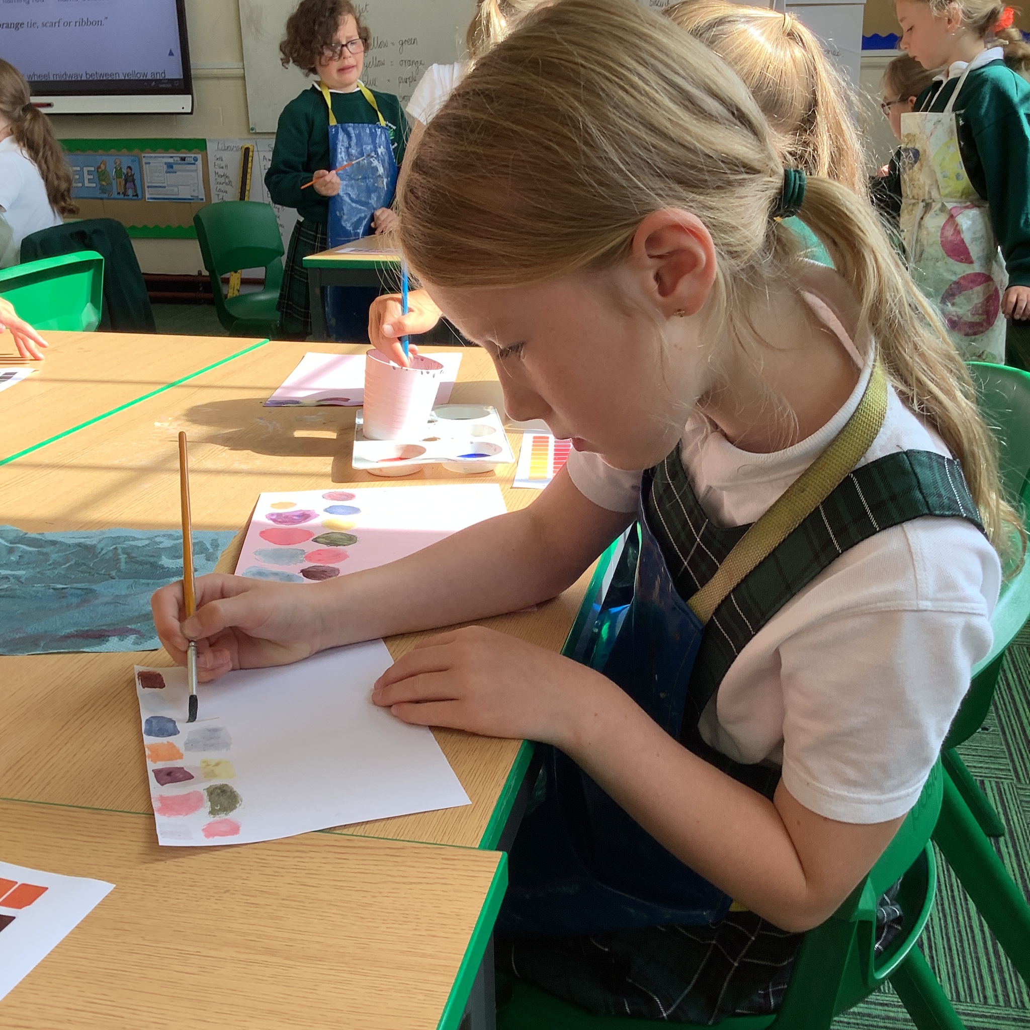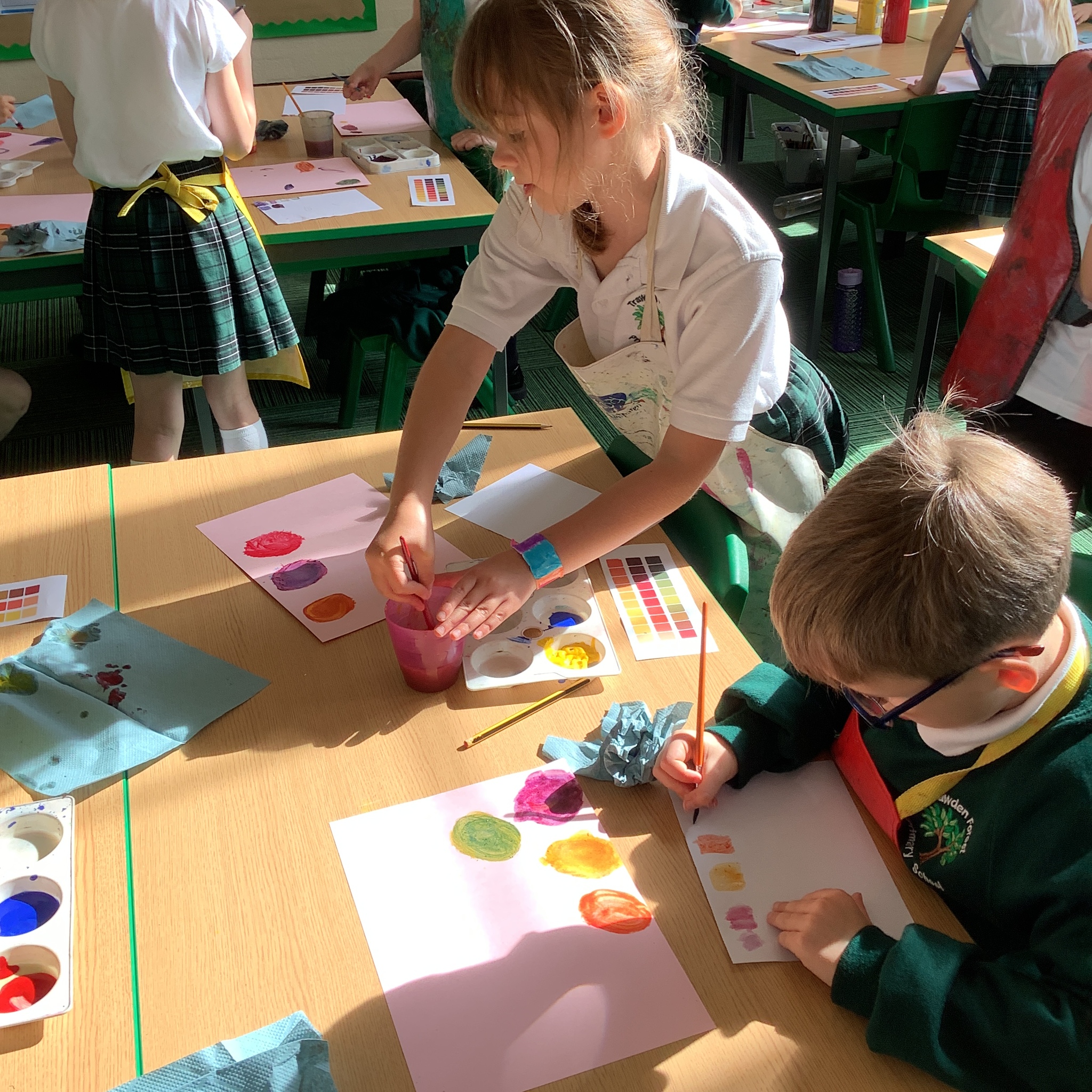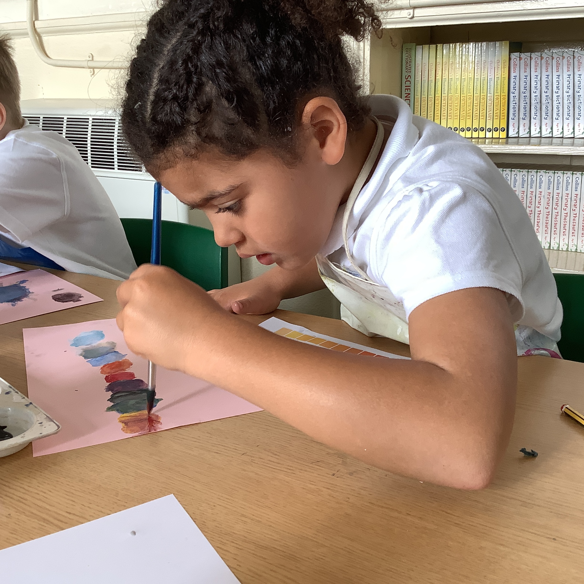 In English, we are going to write a poem about autumn so we watched a video clip of many autumnal images and events. We then discussed many alternative words for different shades of brown, yellow and red such as maroon, flame, salmon, coffee, chocolate, cherry and burnt orange. Following this, we examined some colour swatches and recreated autumn colours in paint. Year 3 did a fantastic job organising themselves and were great artistic inventors!