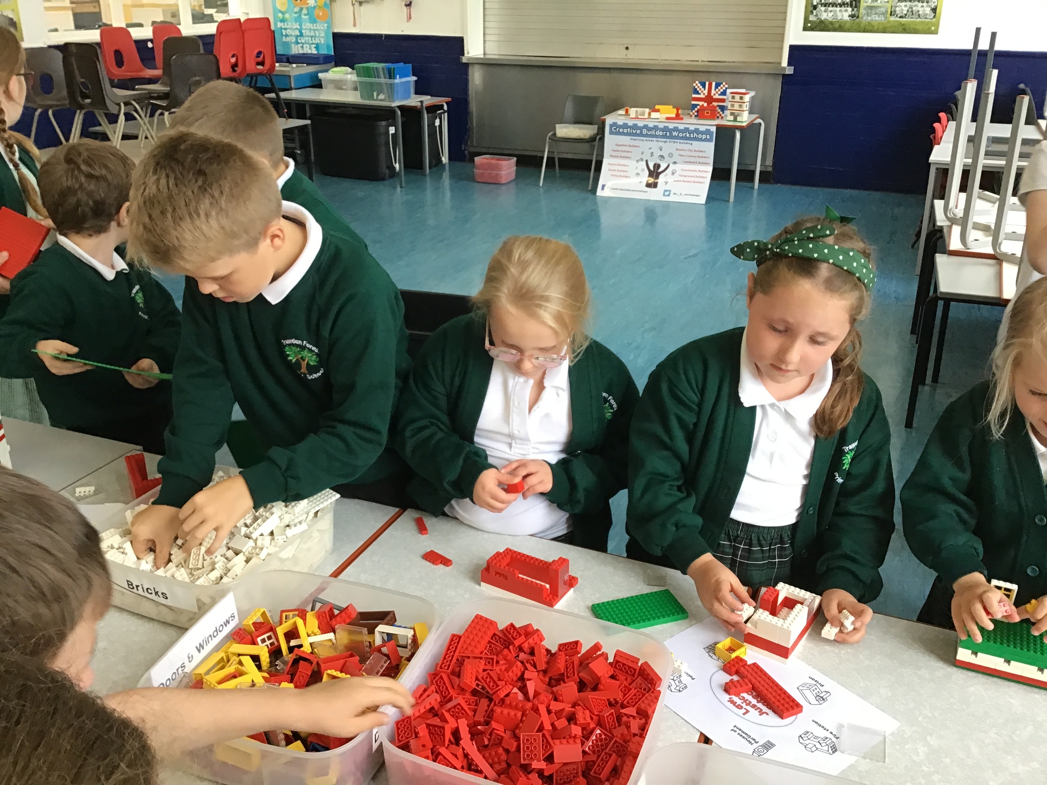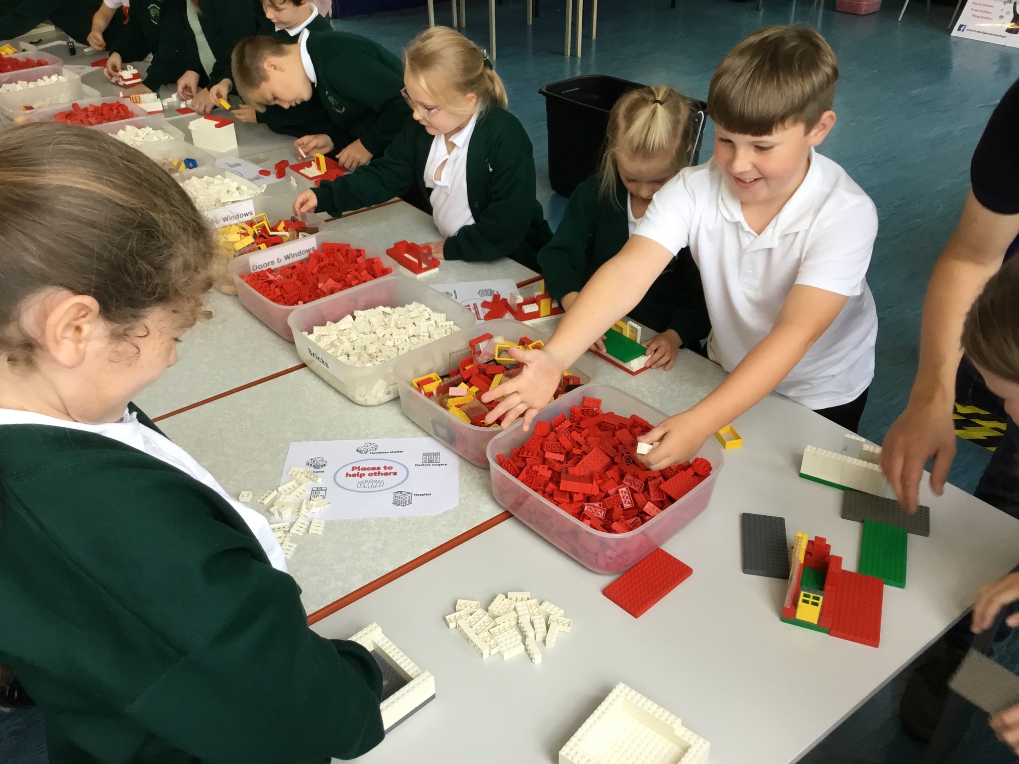 Year 2 and Year 5 had an amazing time today in our Creative Builders session. We used hundreds and hundreds of Lego bricks to build the types of building we might find in a community. We had houses, office blocks, police stations, restaurants – you name it!