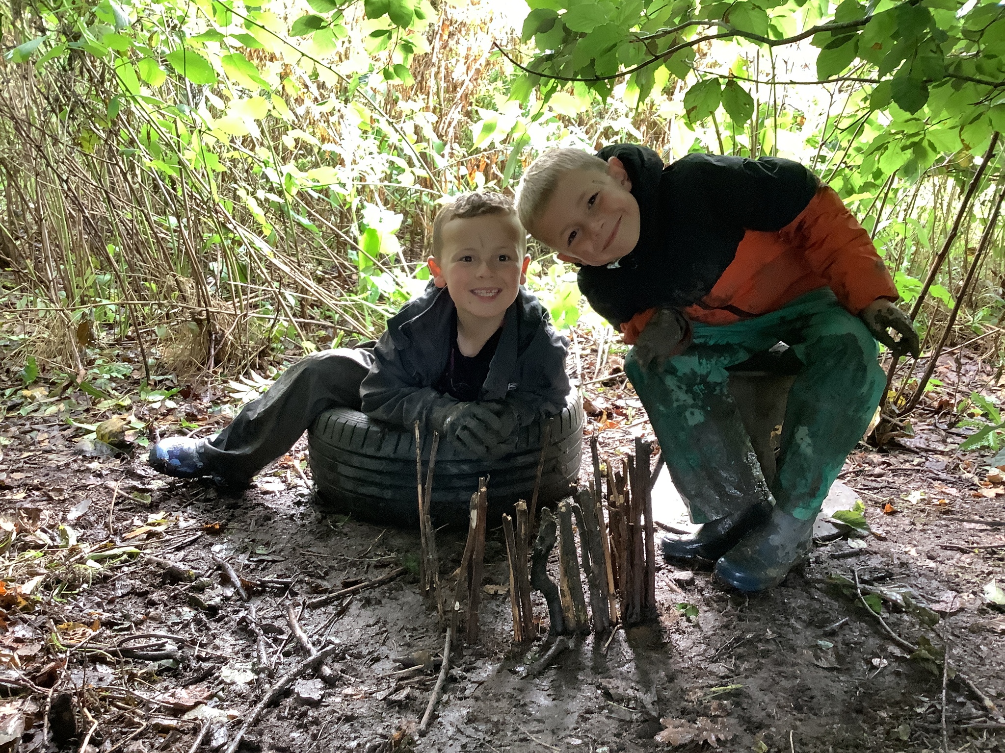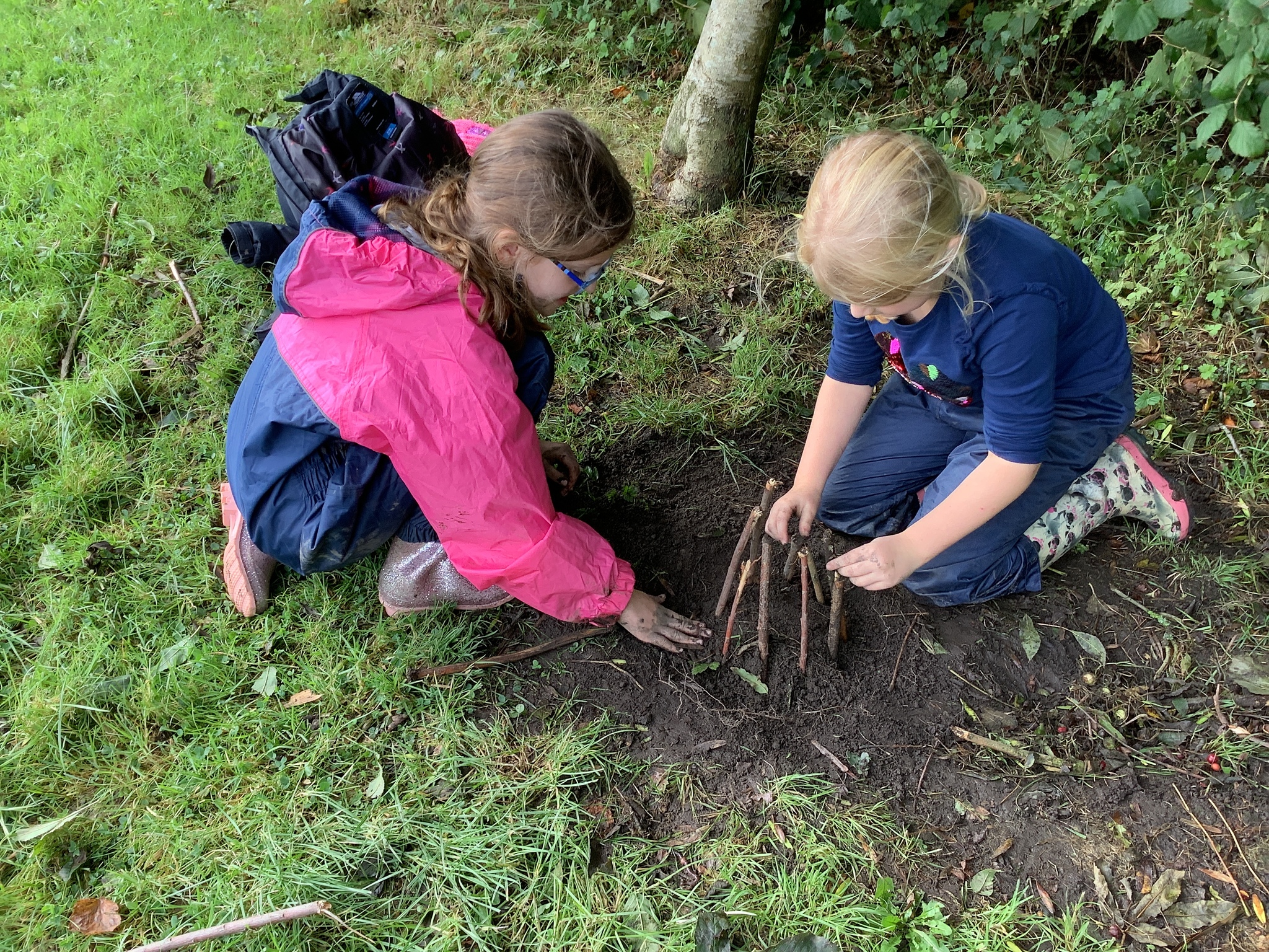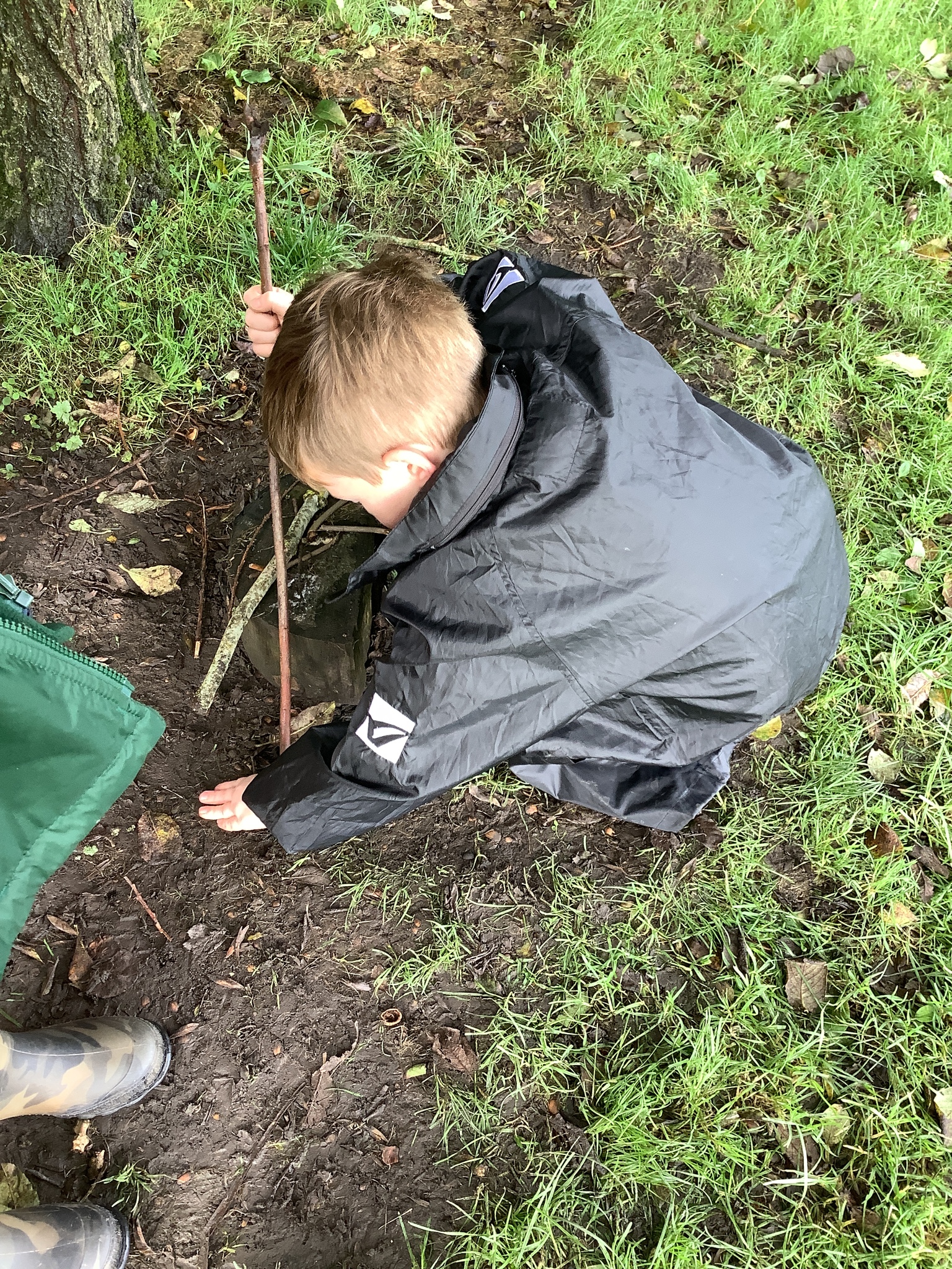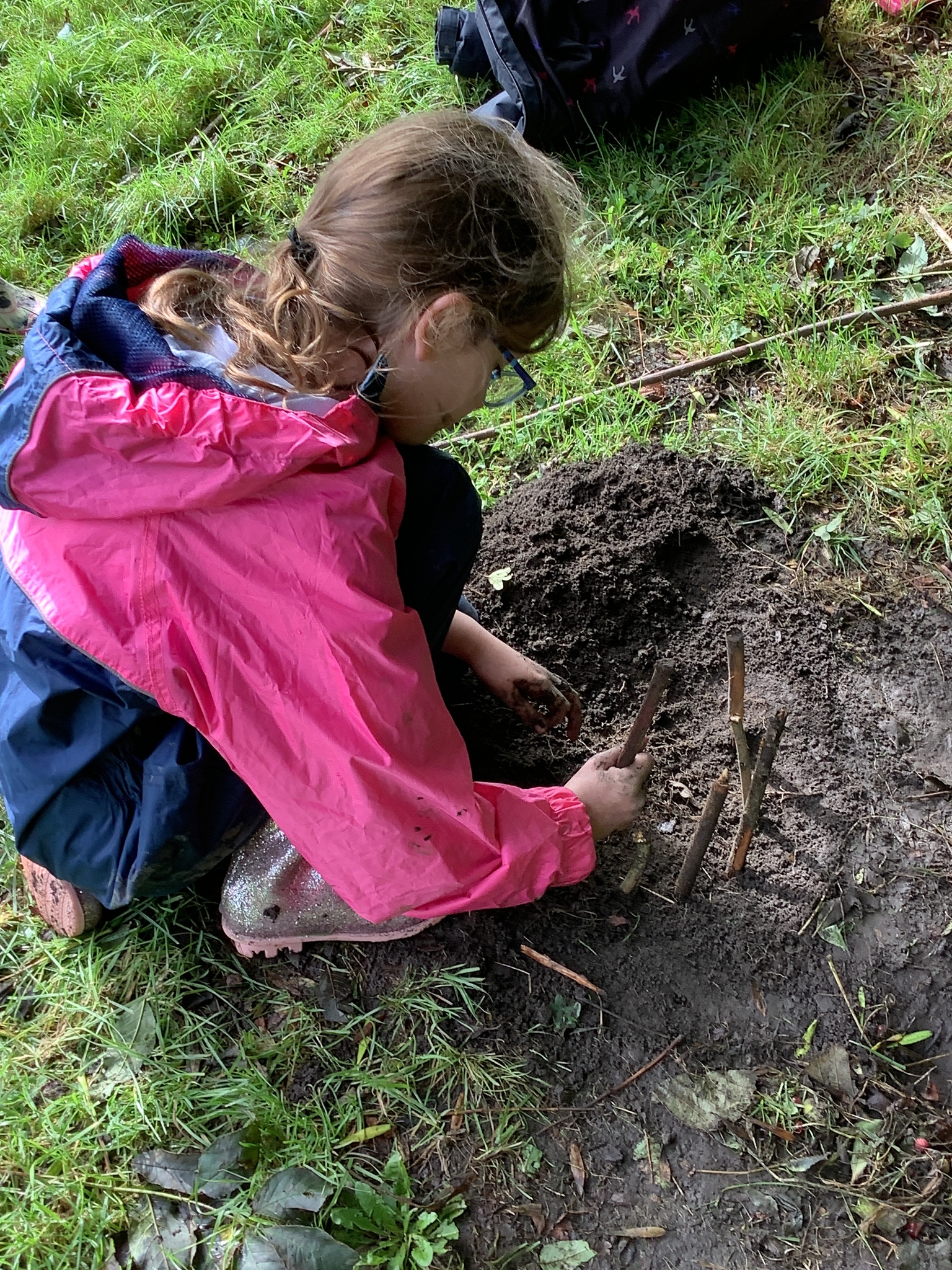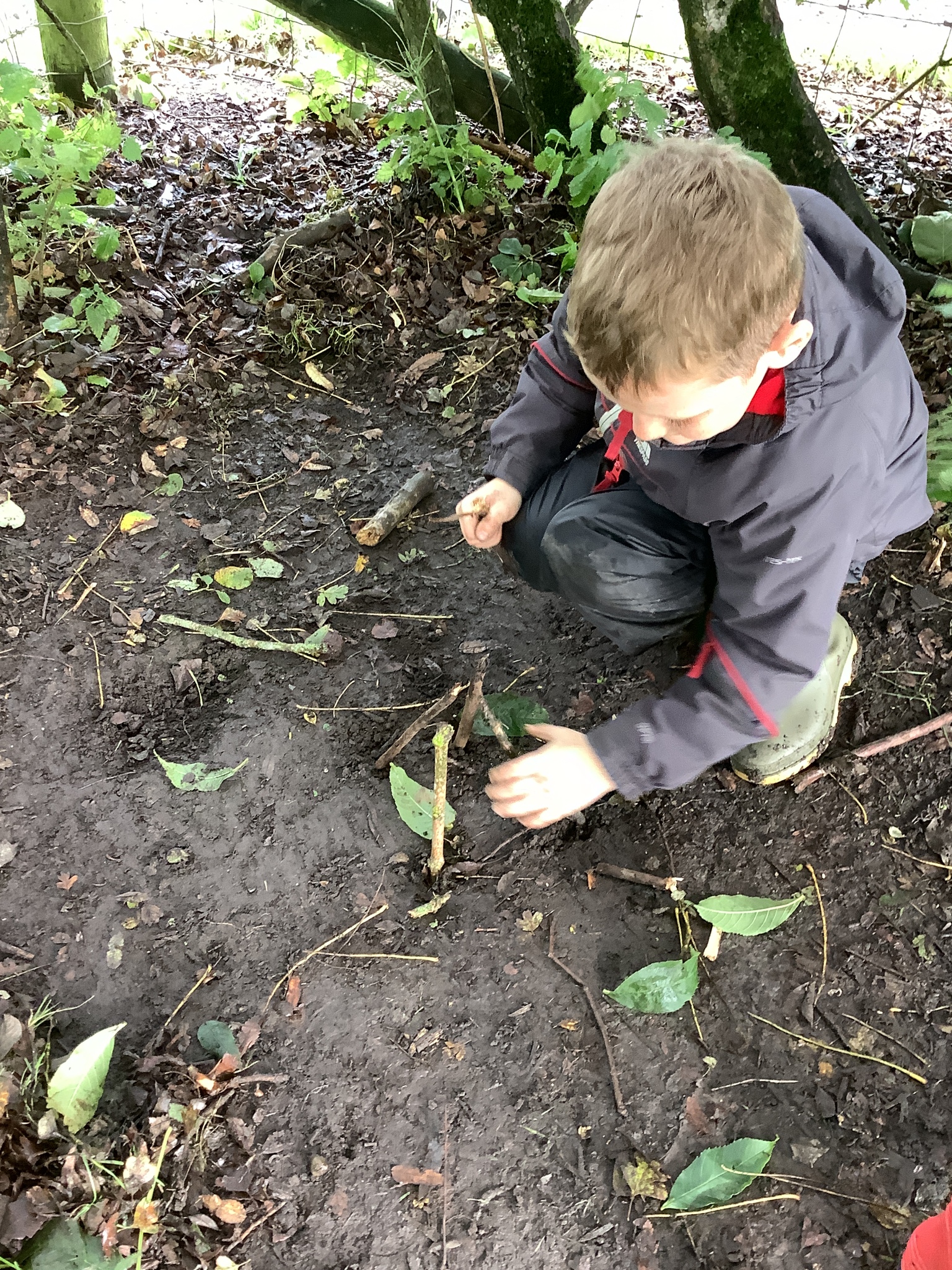 What atrocious weather we've experienced over the past couple of days but we finally made it outside! Although it was too windy to get out the tarp and build larger dens, Year 3 began by hunting for particular leaves and discussing their differences where some were rather similar to each other. Then we created smaller dens using natural materials. The field was very muddy and wet but we had a wonderful afternoon of dry weather and the sun even made an appearance!