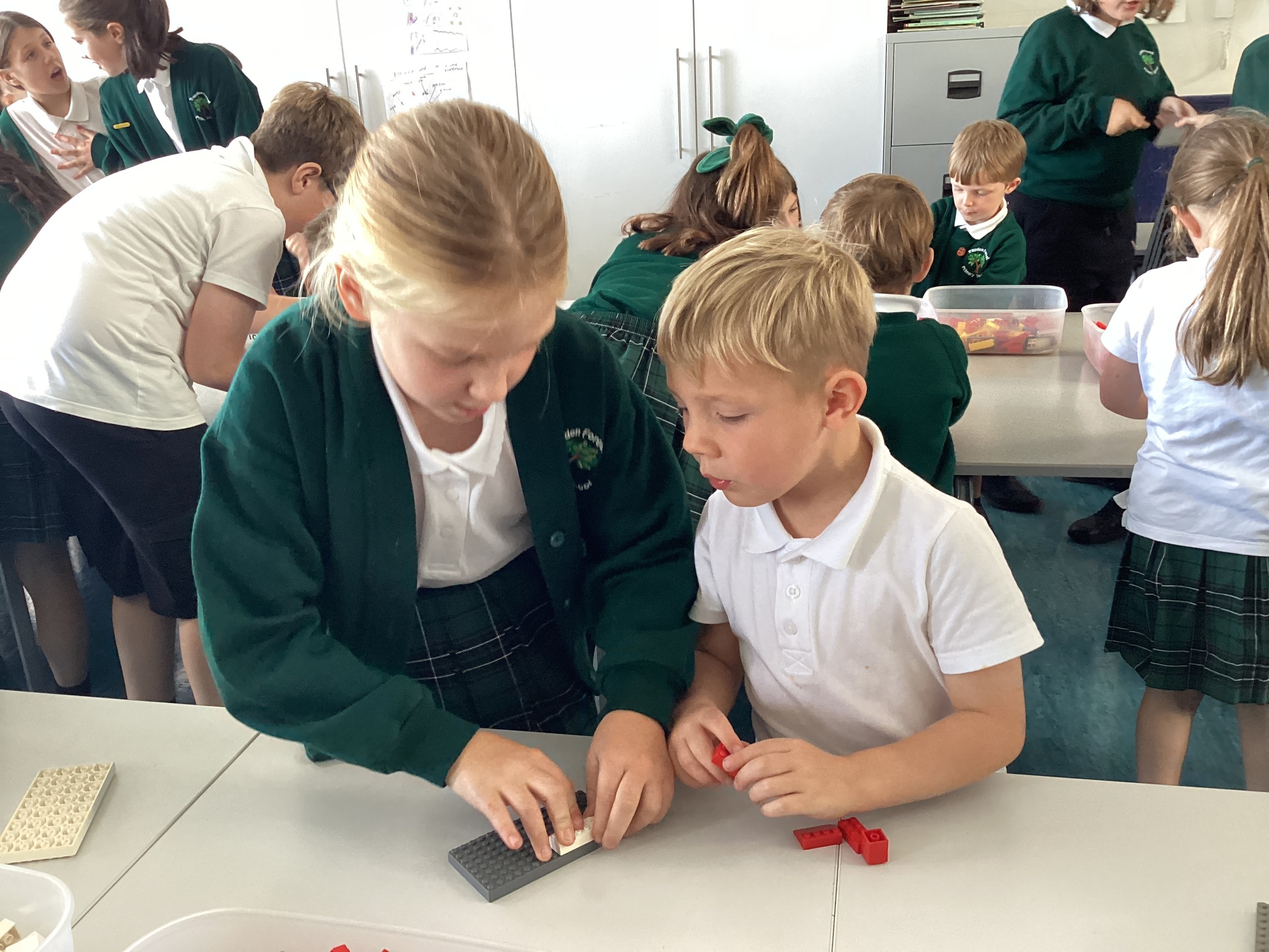 The Y6 children showed great maturity whilst working with their EYFS buddies. They all showed great teamwork to create their own main street, complete with street lights and benches, and enjoyed playing with their creation with some mini figures.