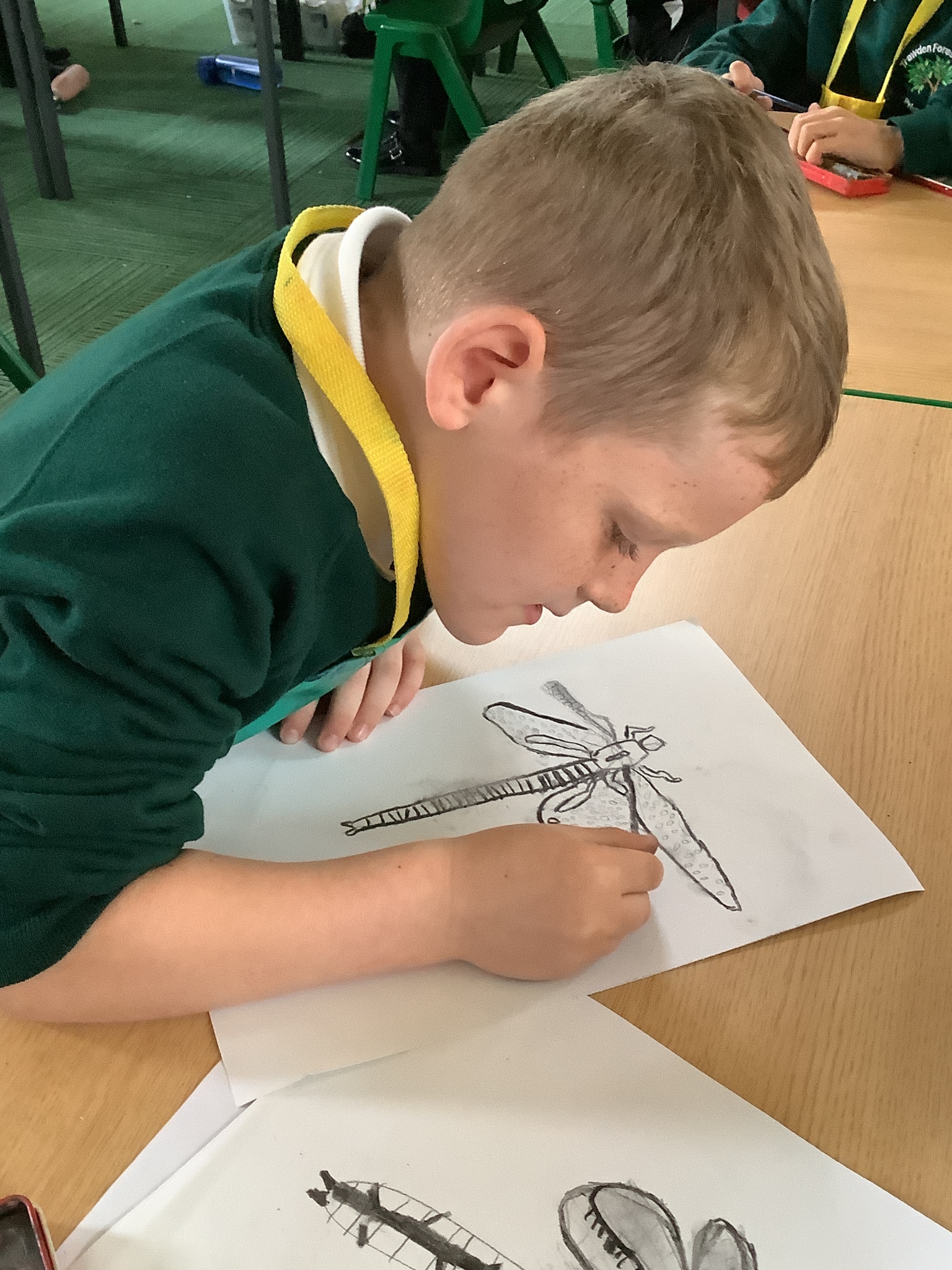Our art continued this week and what beautiful, dragonflies we have. Year 3 have certainly impressed with their use of pencil, charcoal and paint to create amazing pictures.