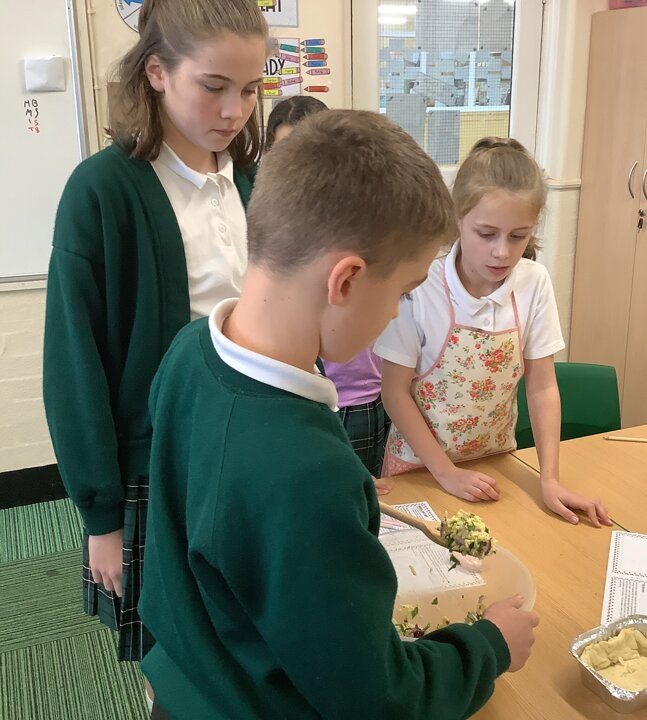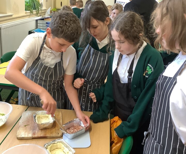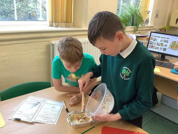 Year 6 enjoyed a practical cooking session this week, baking savoury tarts as part of their Design and Technology work. The children researched where foods come from and used locally sourced ingredients , where possible, to design and make the tarts.
