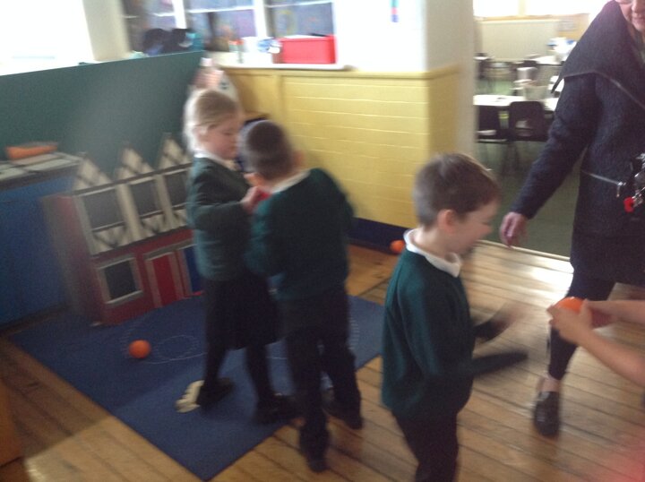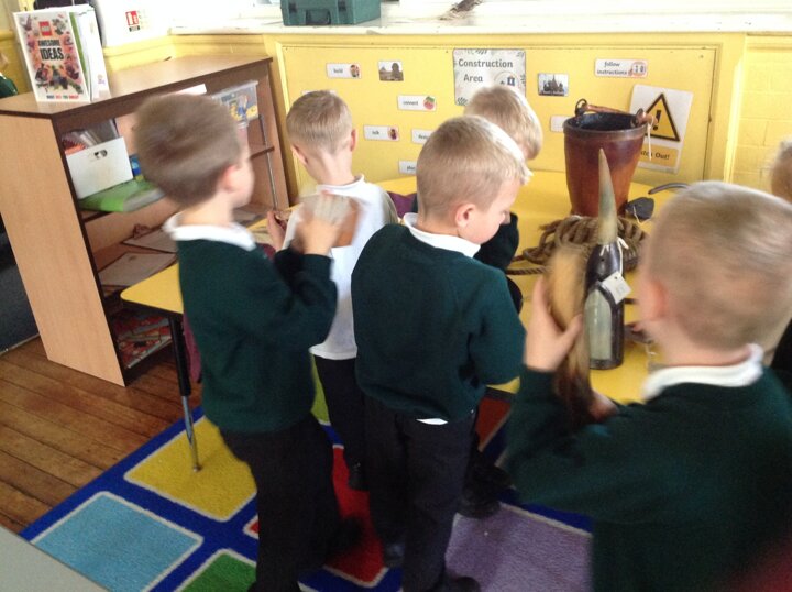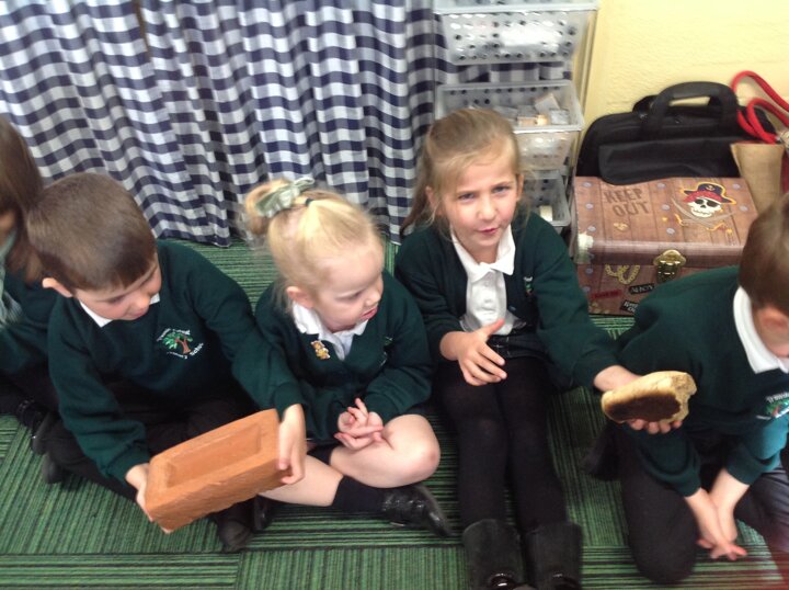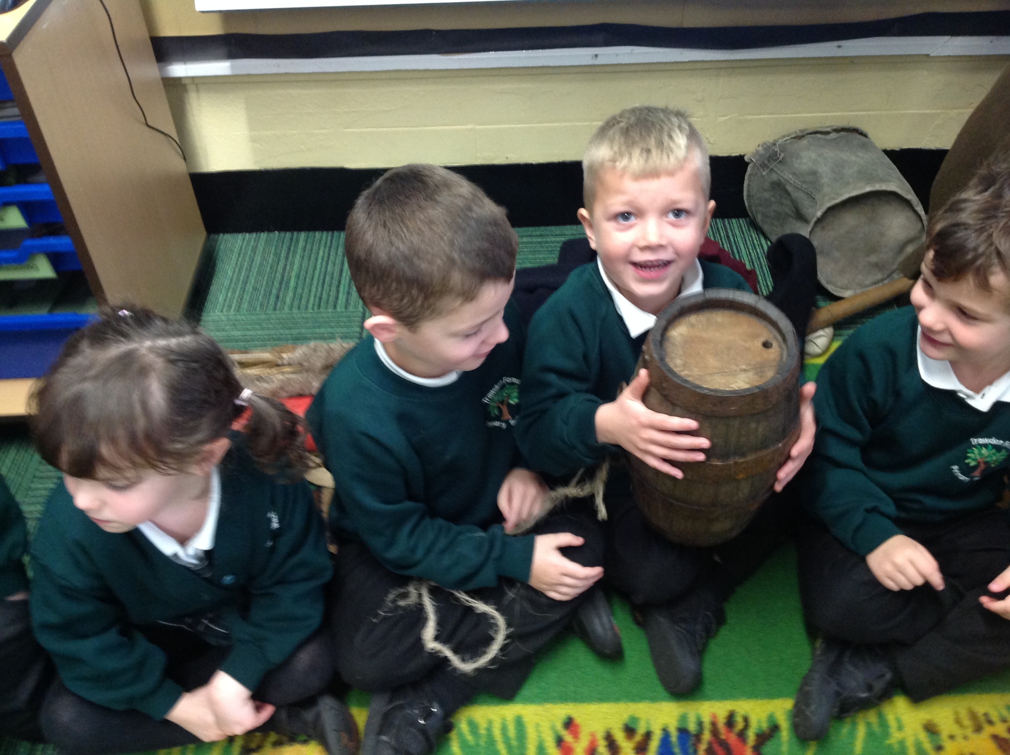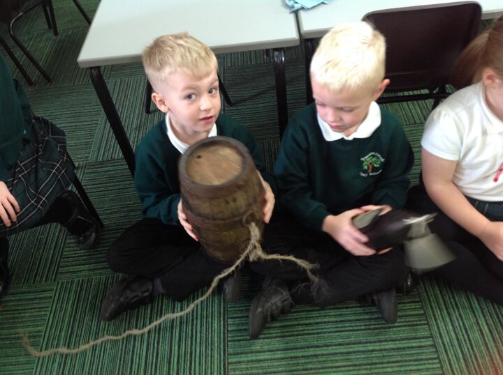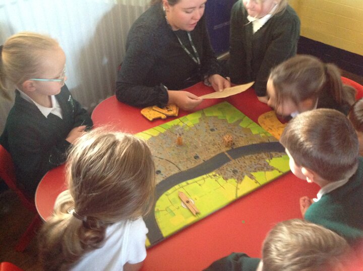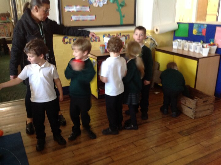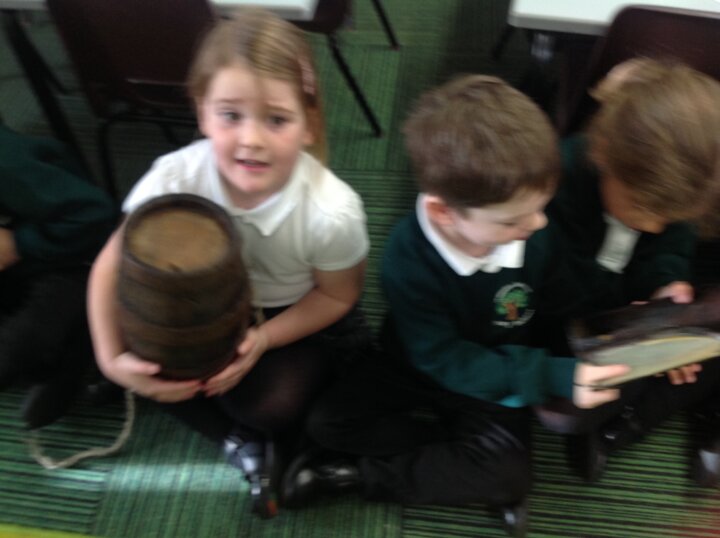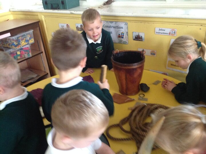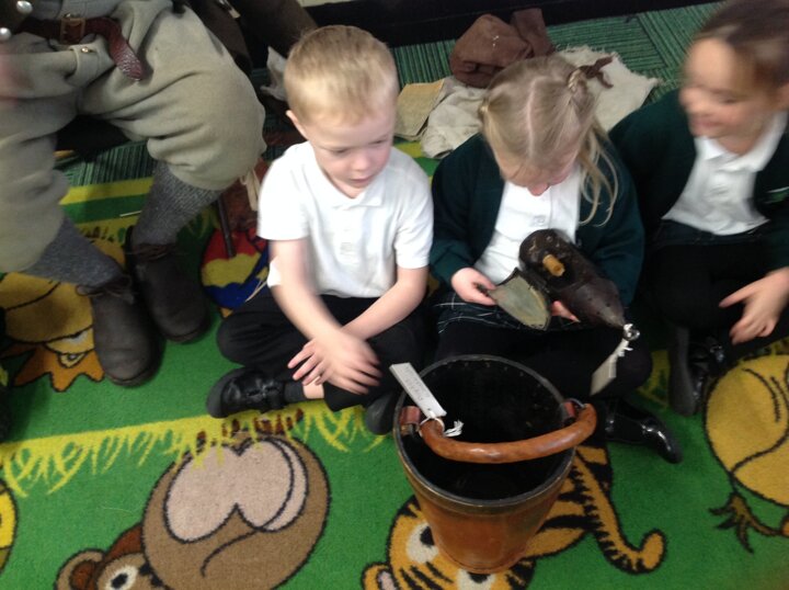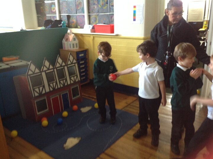 We heard what happened in the fire and some of the reasons it was so big. The children got to look at and feel some artefacts from the time of the great fire and we saw how easily just 1 spark could cause a fire. We pretended to be houses and spread the fire until some were blown up to make a fire break. We explored toys from the time, matched artefacts to materials and played a Fire of London game. We also tried to build a period house and enjoyed passing buckets (balls) to put out the fire.