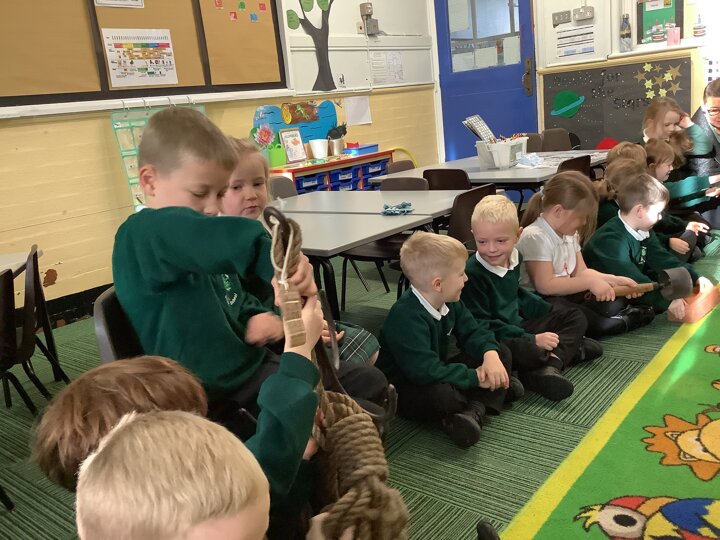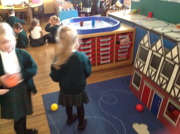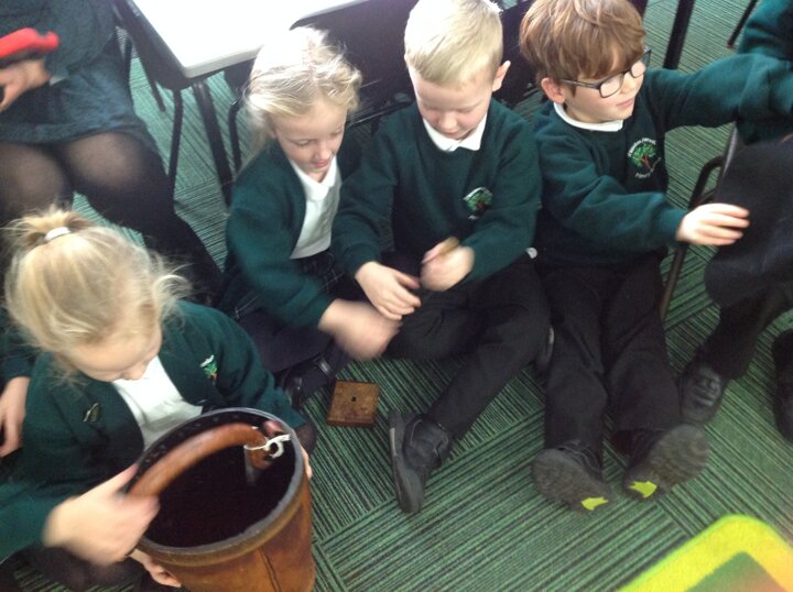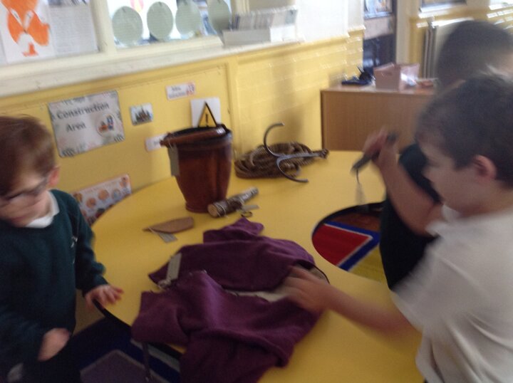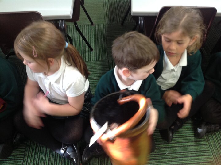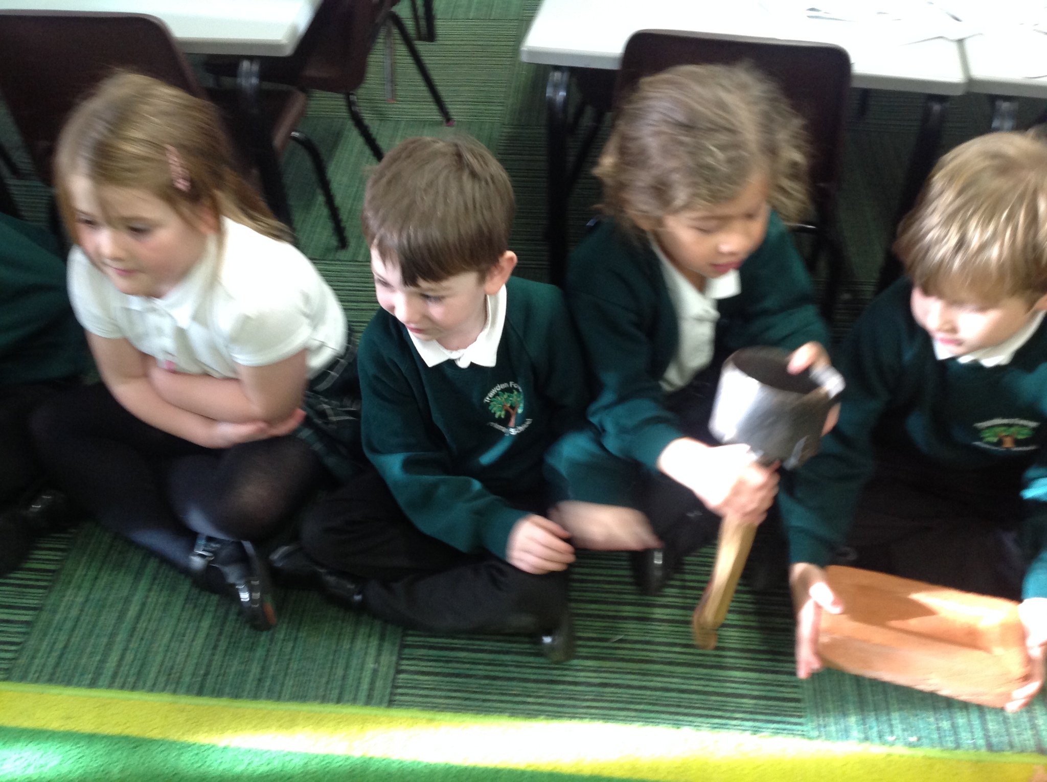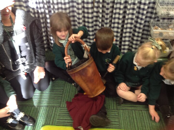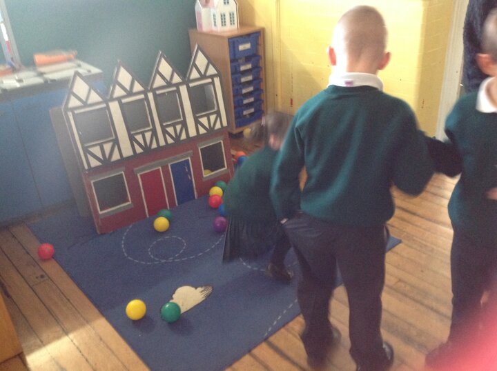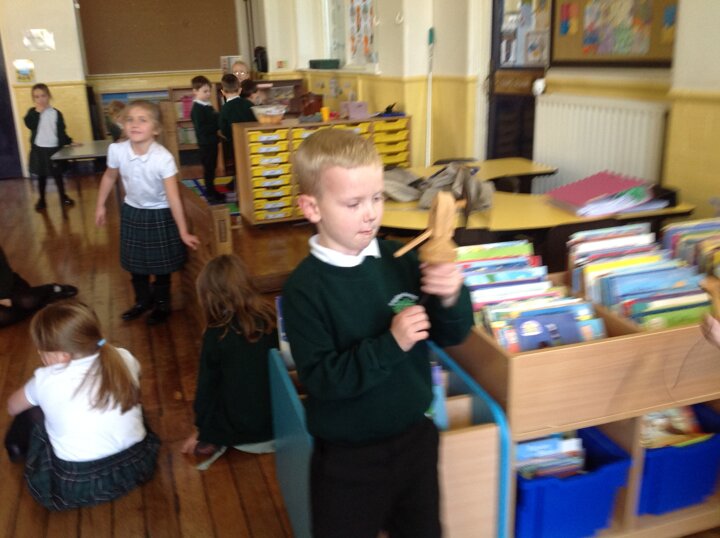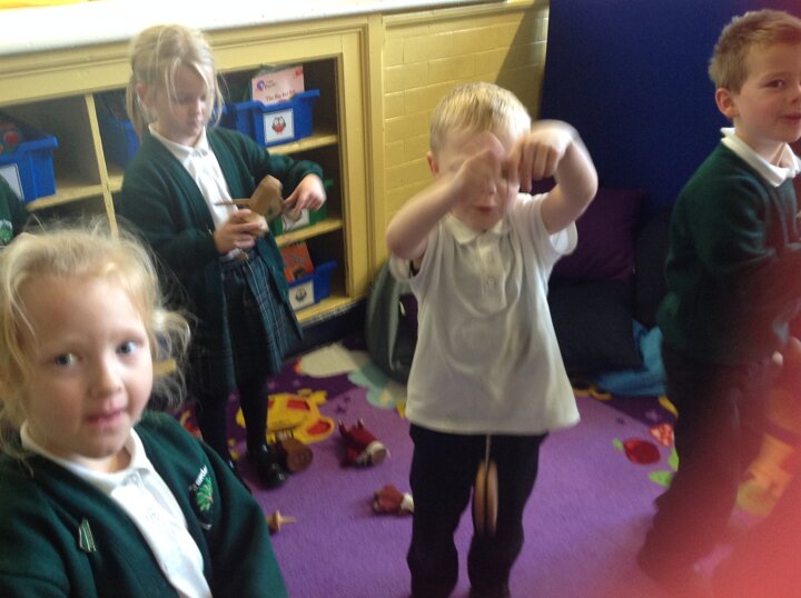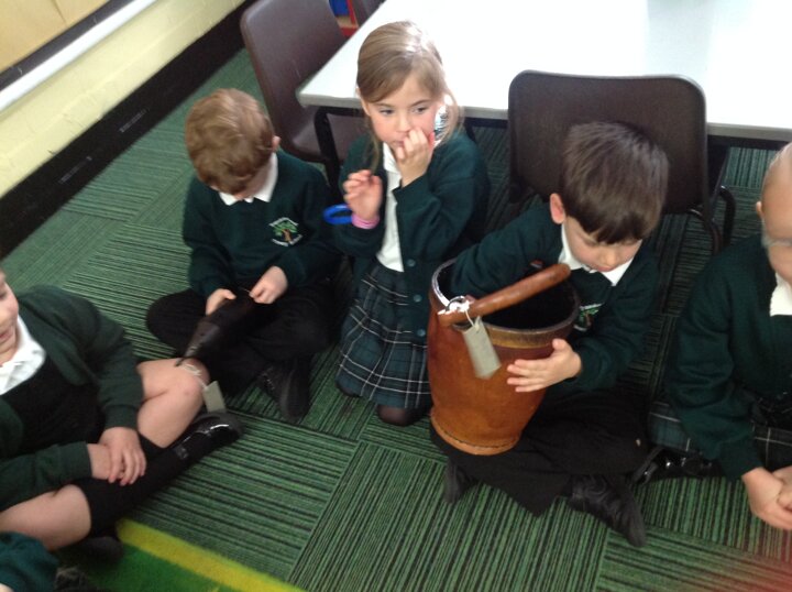 We heard what happened in the fire and some of the reasons it was so big. The children got to look at and feel some artefacts from the time of the great fire and we saw how easily just 1 spark could cause a fire. We pretended to be houses and spread the fire until some were blown up to make a fire break. We explored toys from the time, matched artefacts to materials and played a Fire of London game. We also tried to build a period house and enjoyed passing buckets (balls) to put out the fire.