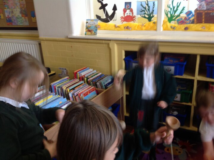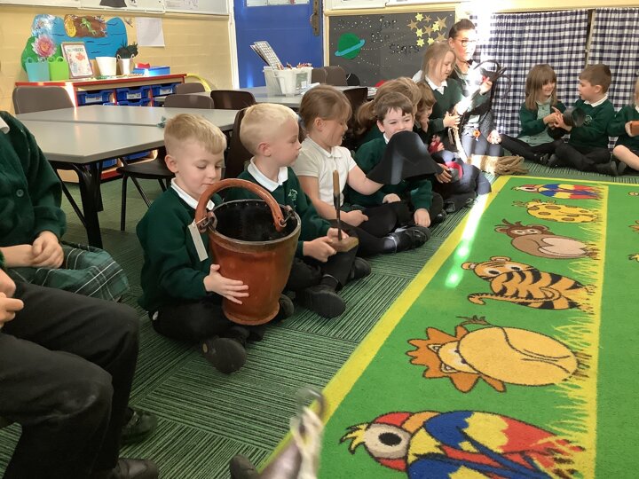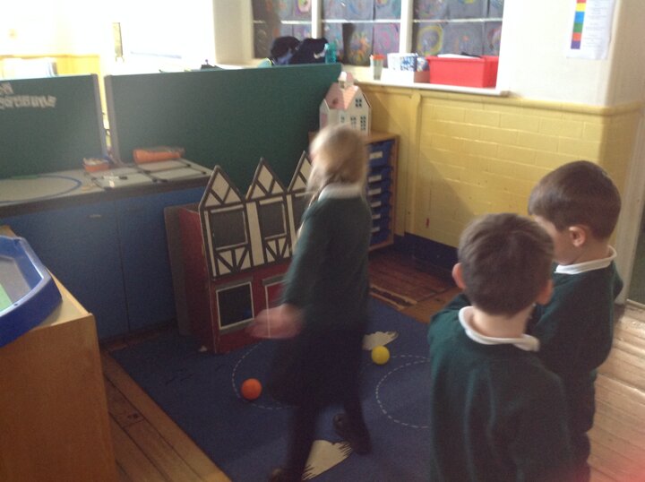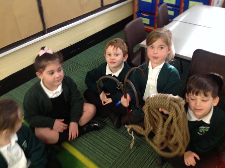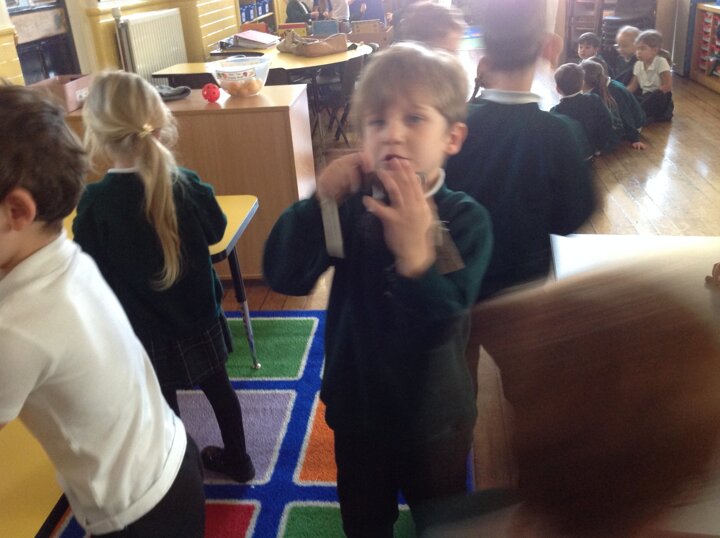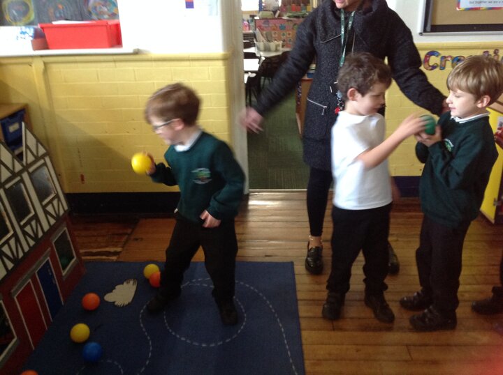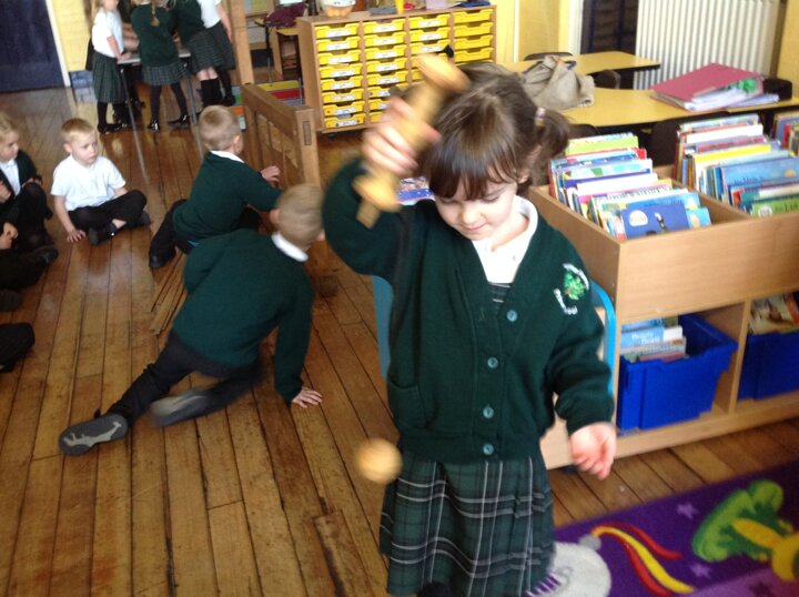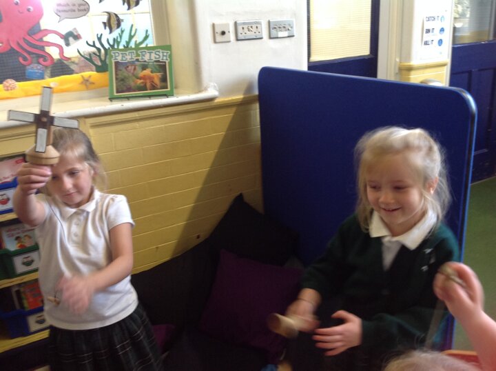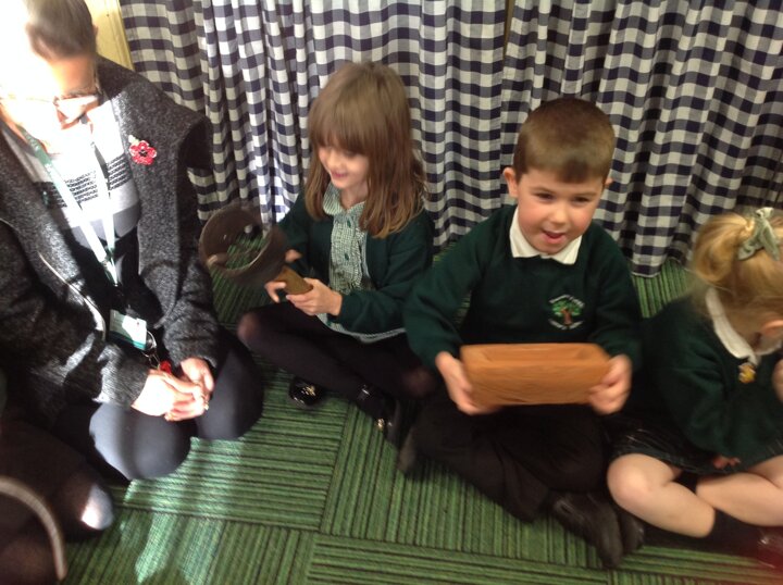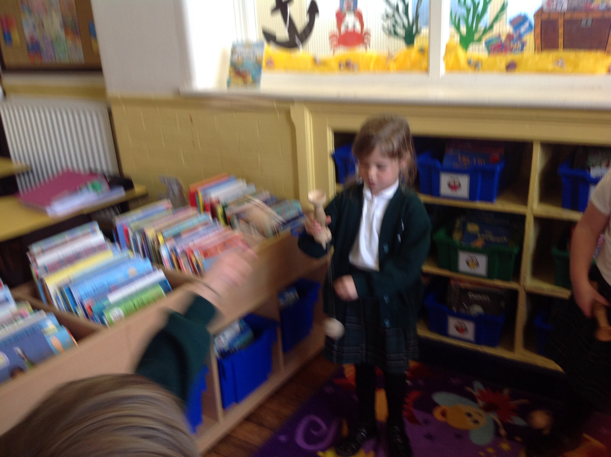 We heard what happened in the fire and some of the reasons it was so big. The children got to look at and feel some artefacts from the time of the great fire and we saw how easily just 1 spark could cause a fire. We pretended to be houses and spread the fire until some were blown up to make a fire break. We explored toys from the time, matched artefacts to materials and played a Fire of London game. We also tried to build a period house and enjoyed passing buckets (balls) to put out the fire.