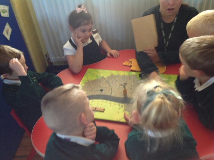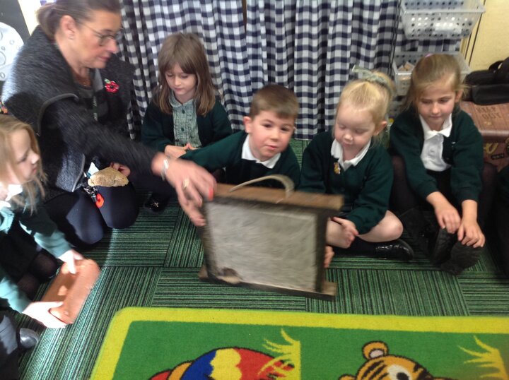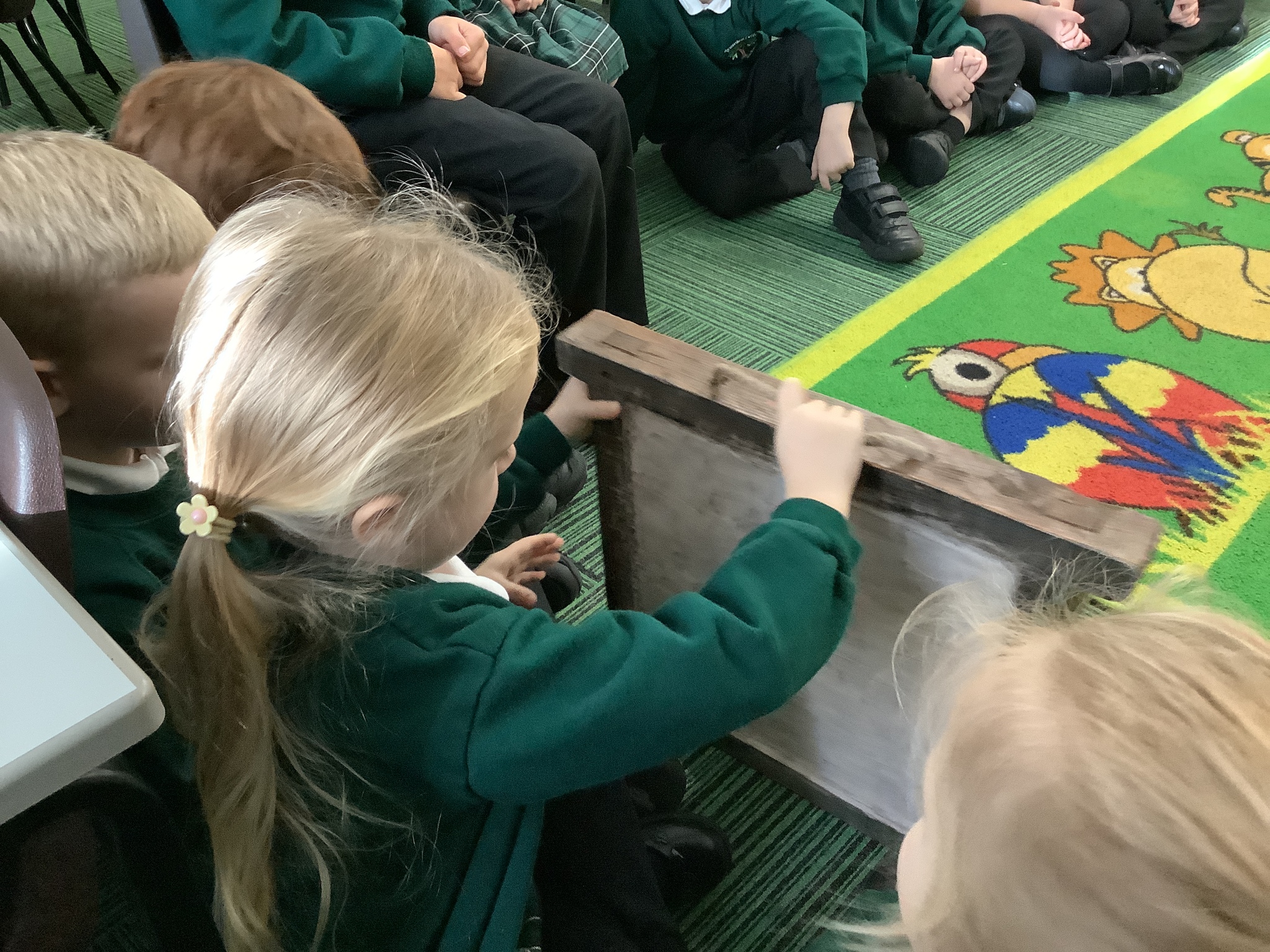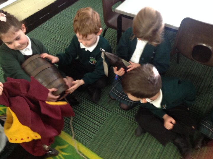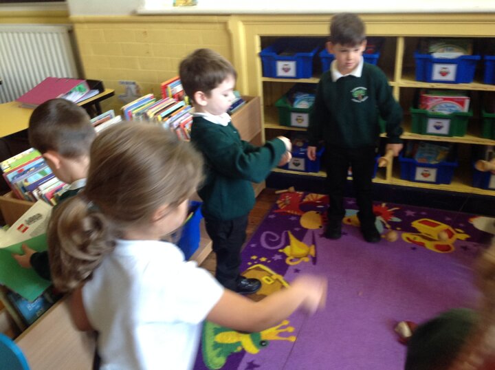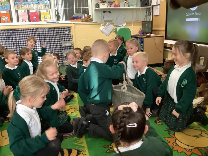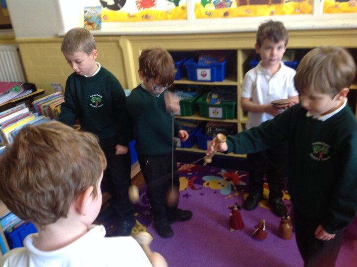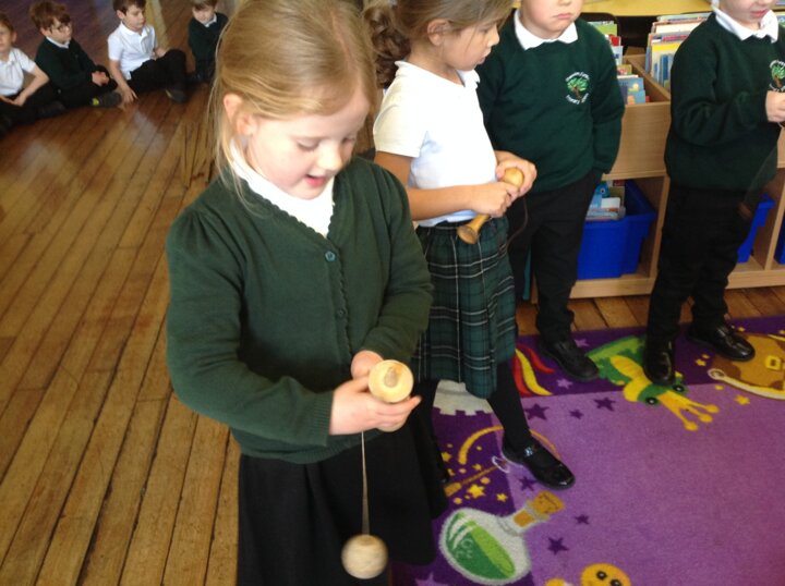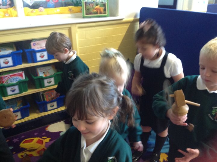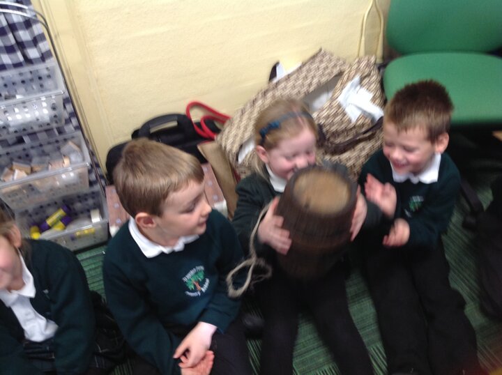 We heard what happened in the fire and some of the reasons it was so big. The children got to look at and feel some artefacts from the time of the great fire and we saw how easily just 1 spark could cause a fire. We pretended to be houses and spread the fire until some were blown up to make a fire break. We explored toys from the time, matched artefacts to materials and played a Fire of London game. We also tried to build a period house and enjoyed passing buckets (balls) to put out the fire.