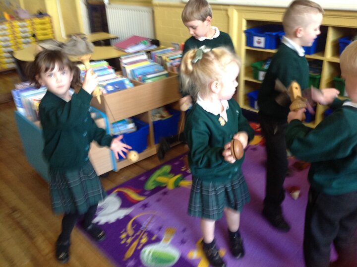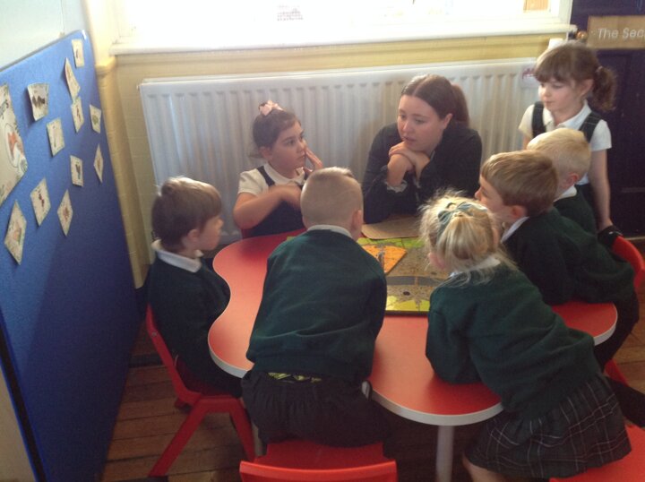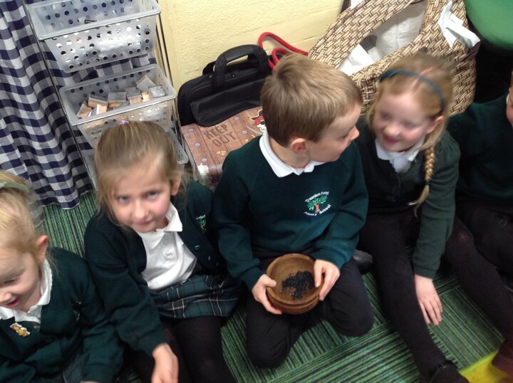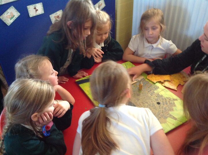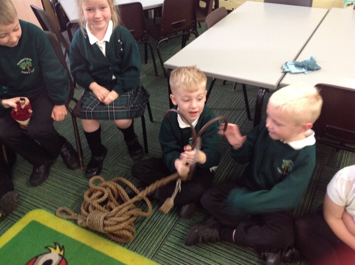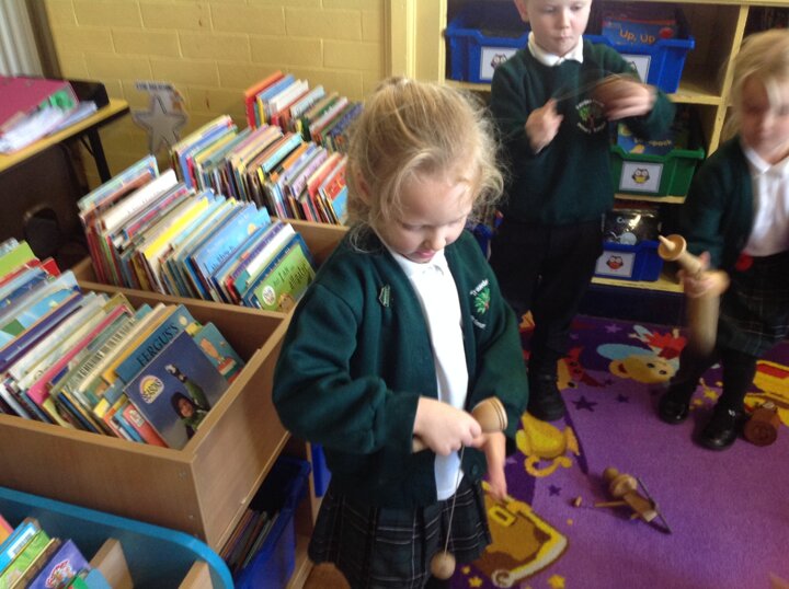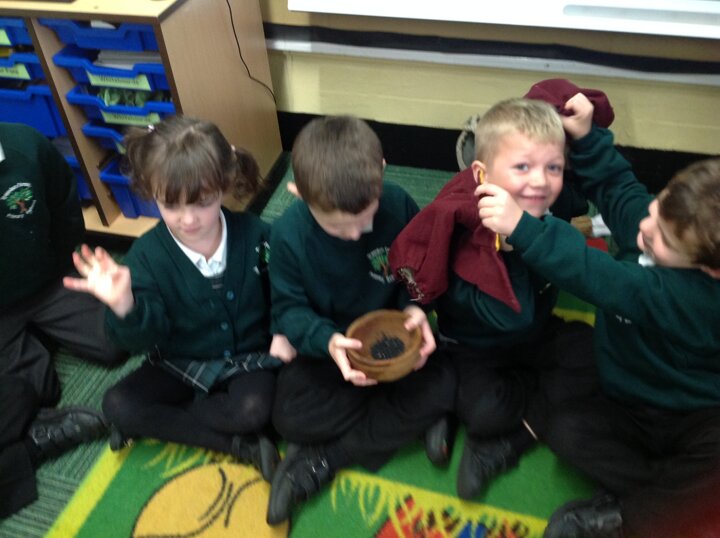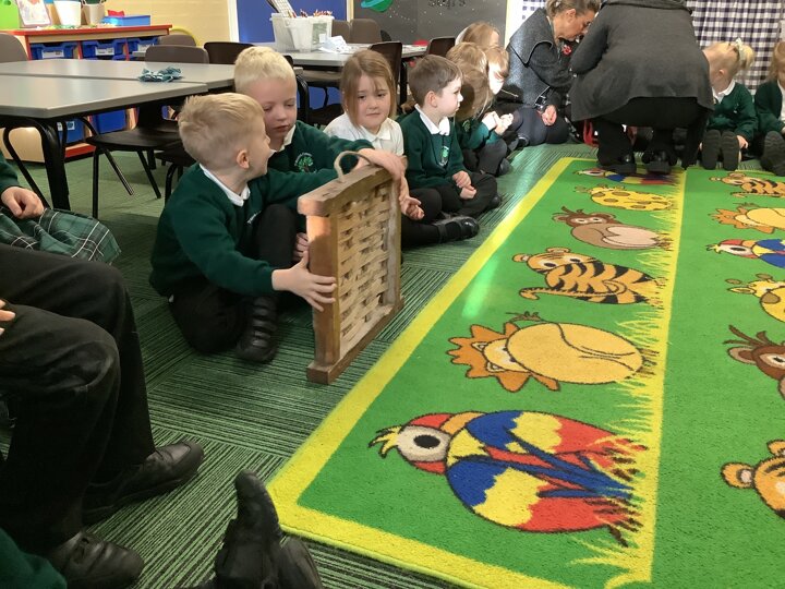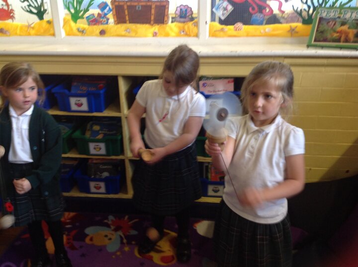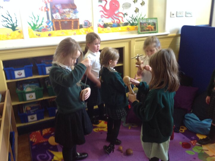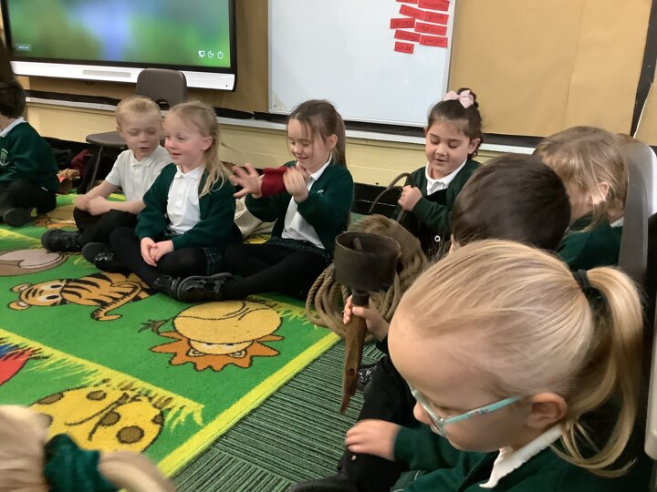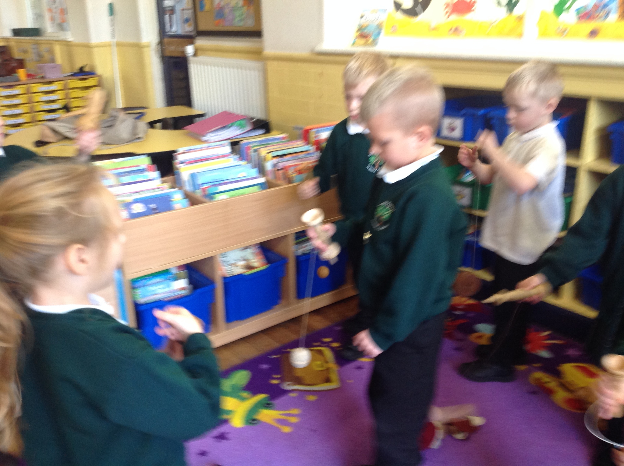 We heard what happened in the fire and some of the reasons it was so big. The children got to look at and feel some artefacts from the time of the great fire and we saw how easily just 1 spark could cause a fire. We pretended to be houses and spread the fire until some were blown up to make a fire break. We explored toys from the time, matched artefacts to materials and played a Fire of London game. We also tried to build a period house and enjoyed passing buckets (balls) to put out the fire.