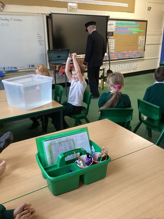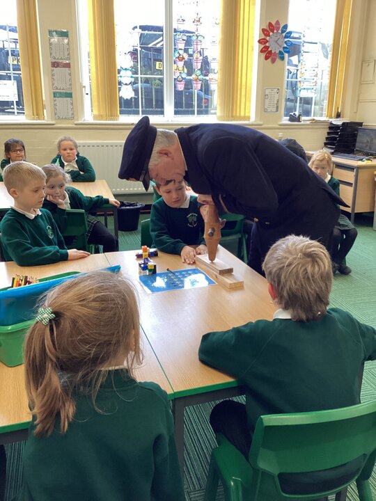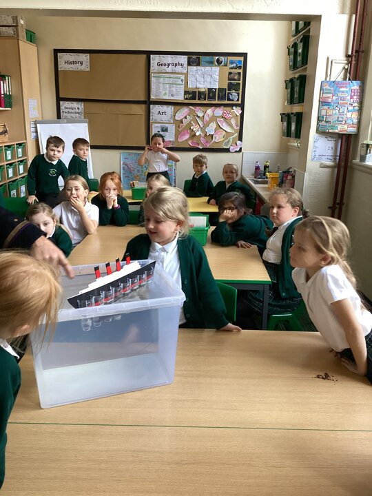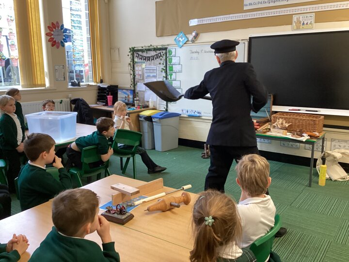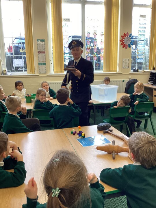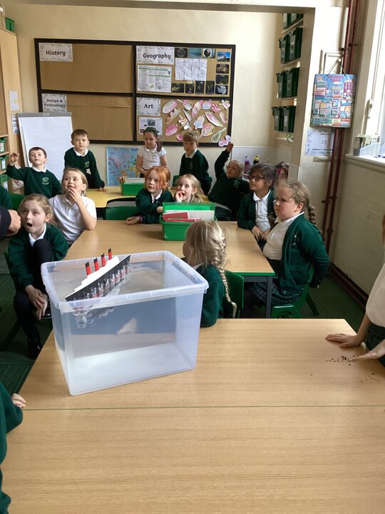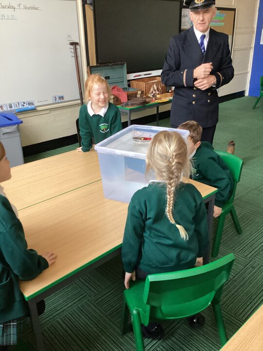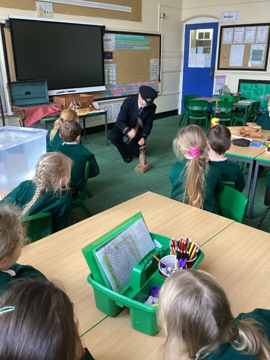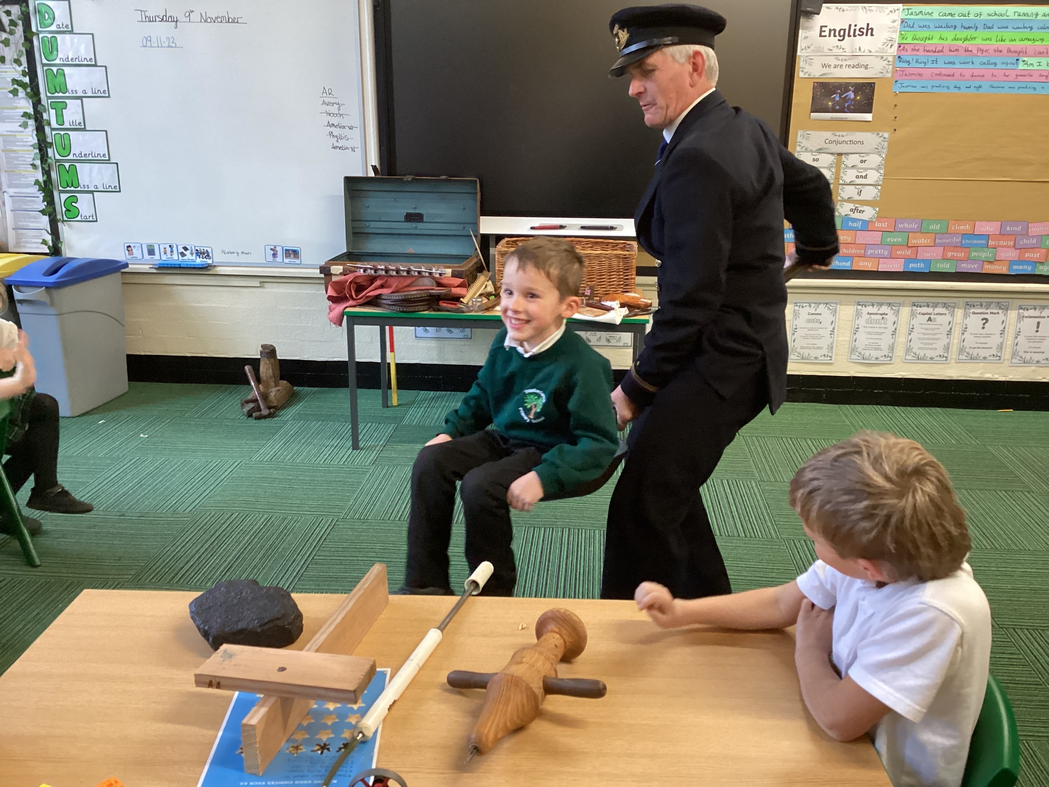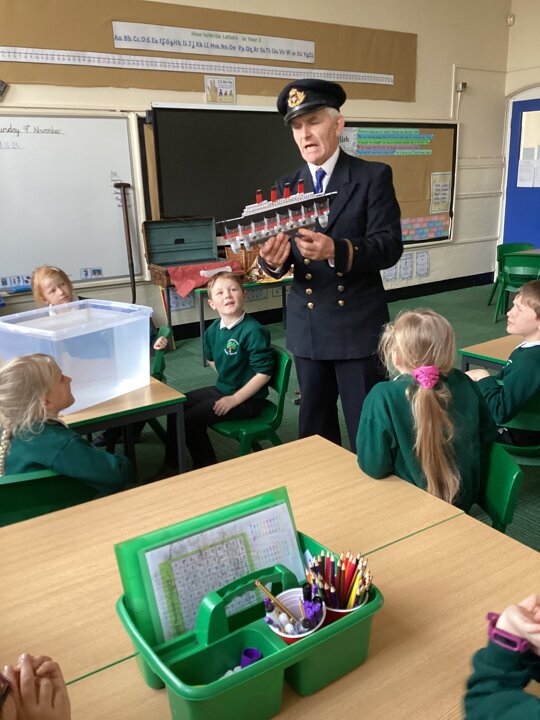 Year 2 had a very special treat today because the History man came to visit us to talk about the Titanic! He discussed how ships were made a long time ago and then how the Titanic was made, he even molded some metal before our eyes! The children asked lots of interesting questions and they were able to handle the artefacts which he brought it. The children all said it was the best day ever!