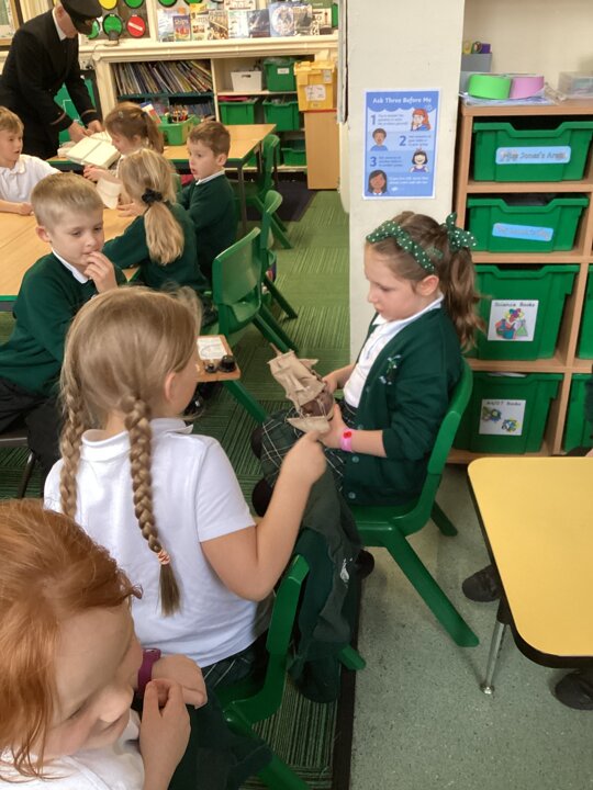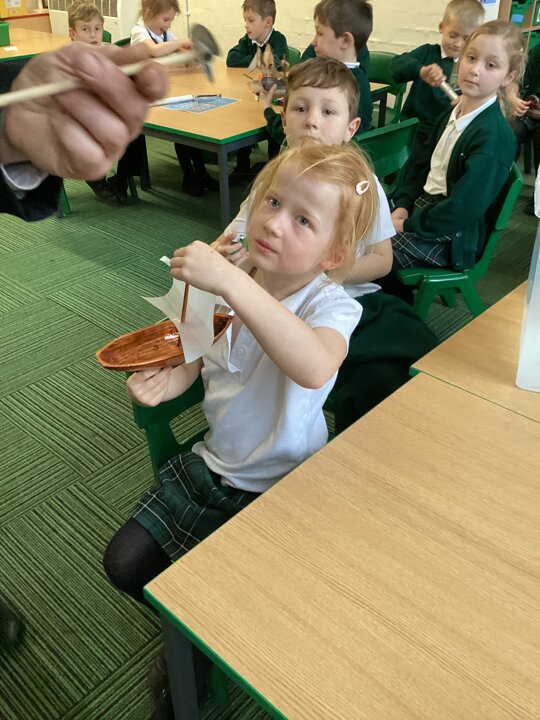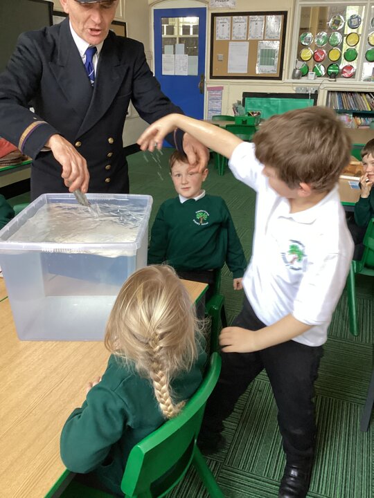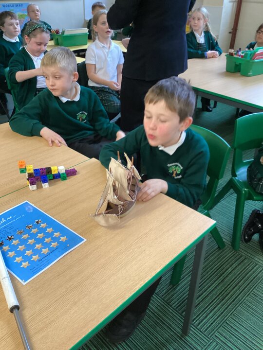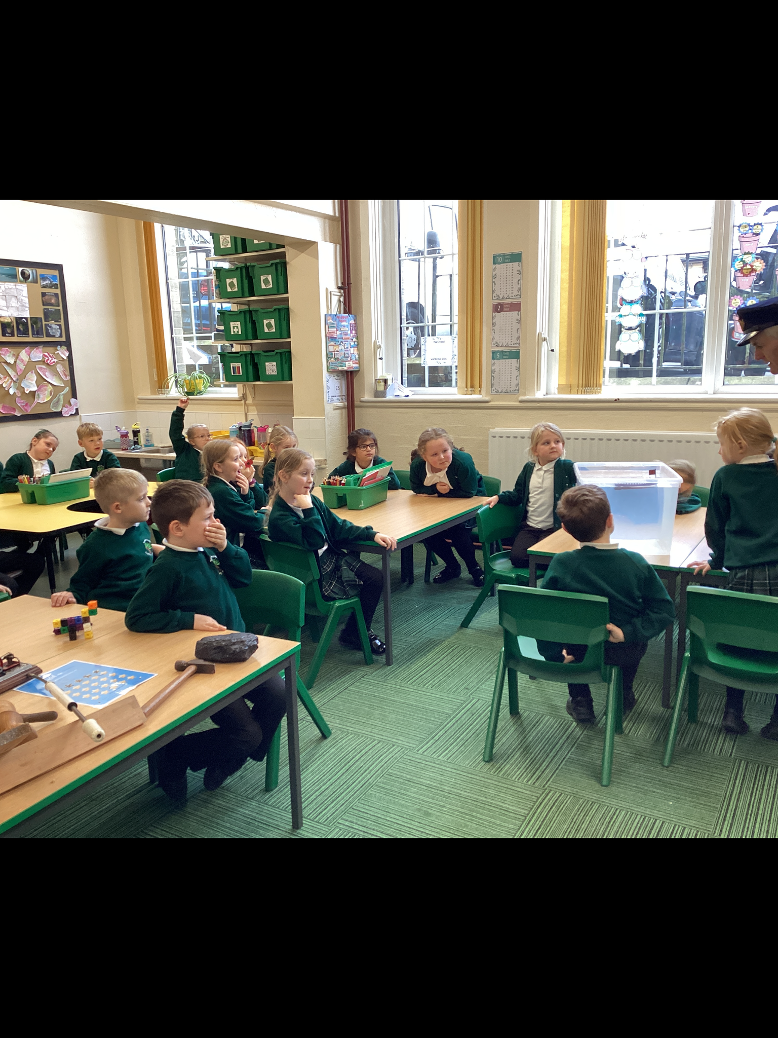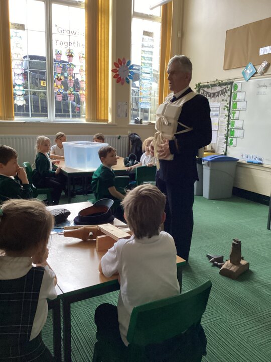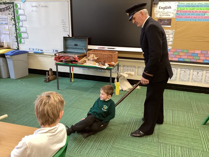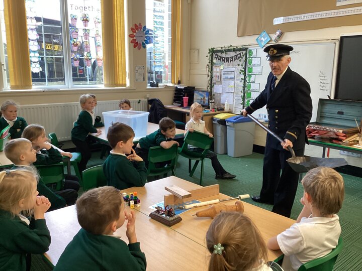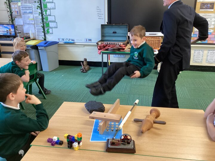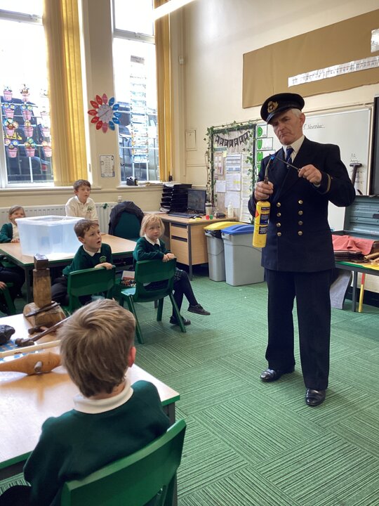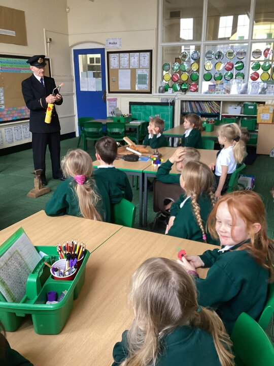 Year 2 had a very special treat today because the History man came to visit us to talk about the Titanic! He discussed how ships were made a long time ago and then how the Titanic was made, he even molded some metal before our eyes! The children asked lots of interesting questions and they were able to handle the artefacts which he brought it. The children all said it was the best day ever!