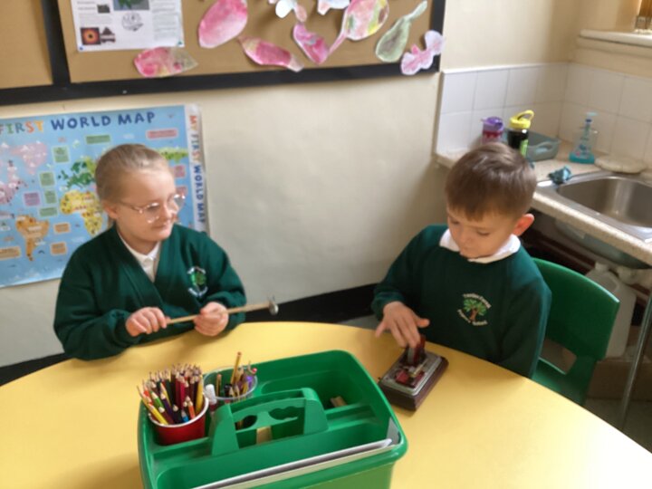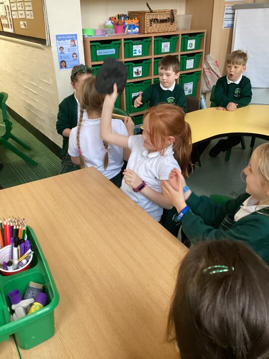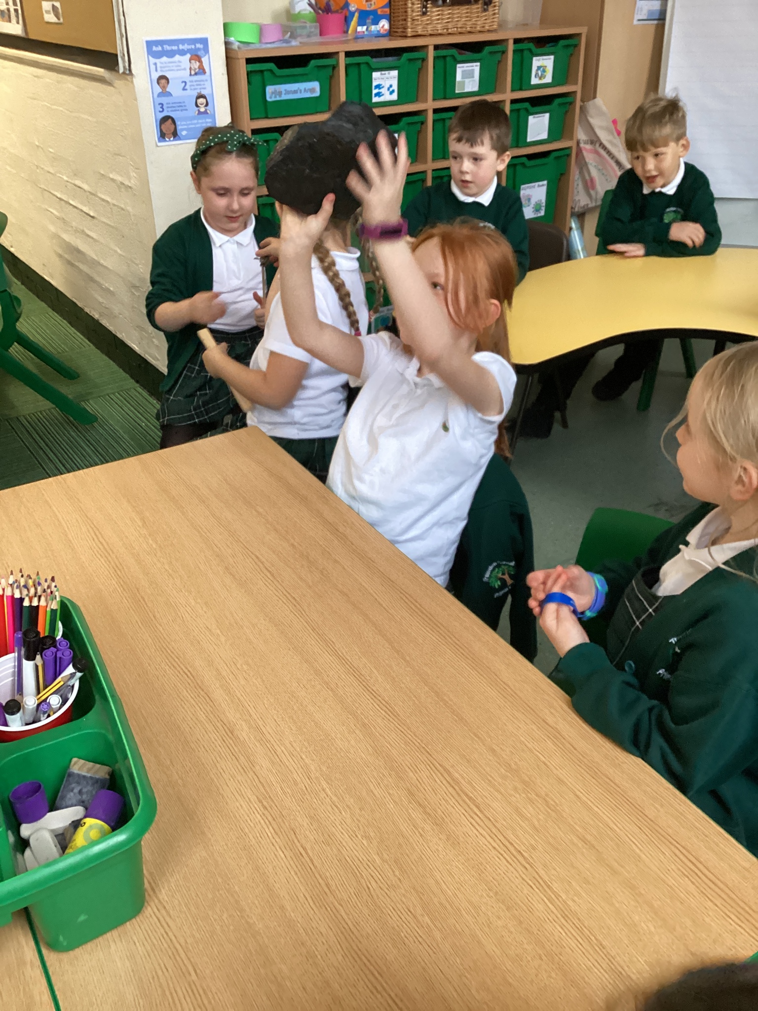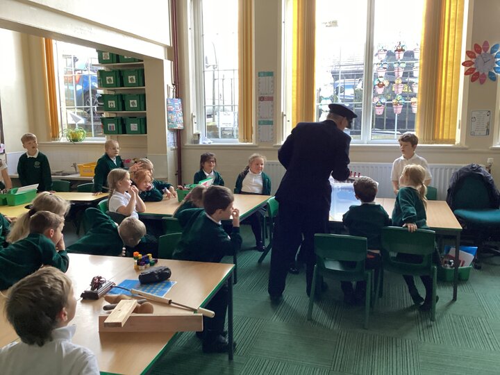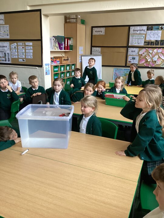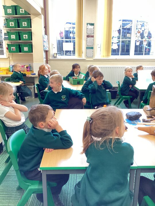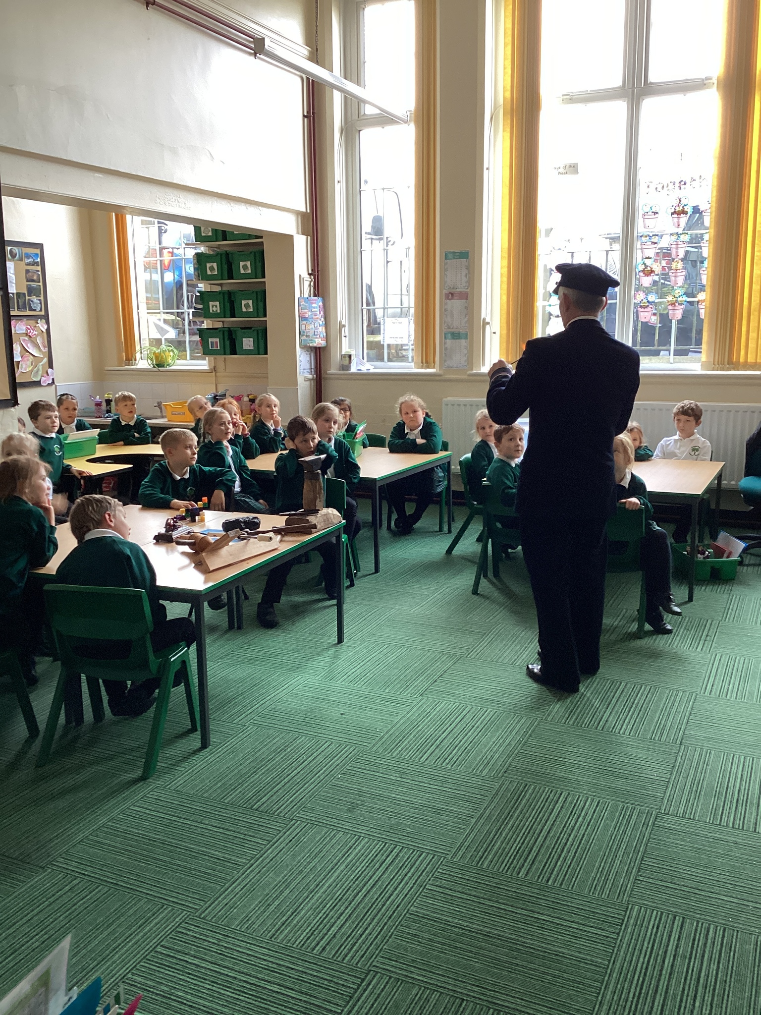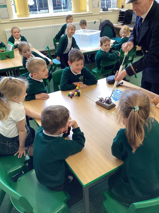 Year 2 had a very special treat today because the History man came to visit us to talk about the Titanic! He discussed how ships were made a long time ago and then how the Titanic was made, he even molded some metal before our eyes! The children asked lots of interesting questions and they were able to handle the artefacts which he brought it. The children all said it was the best day ever!