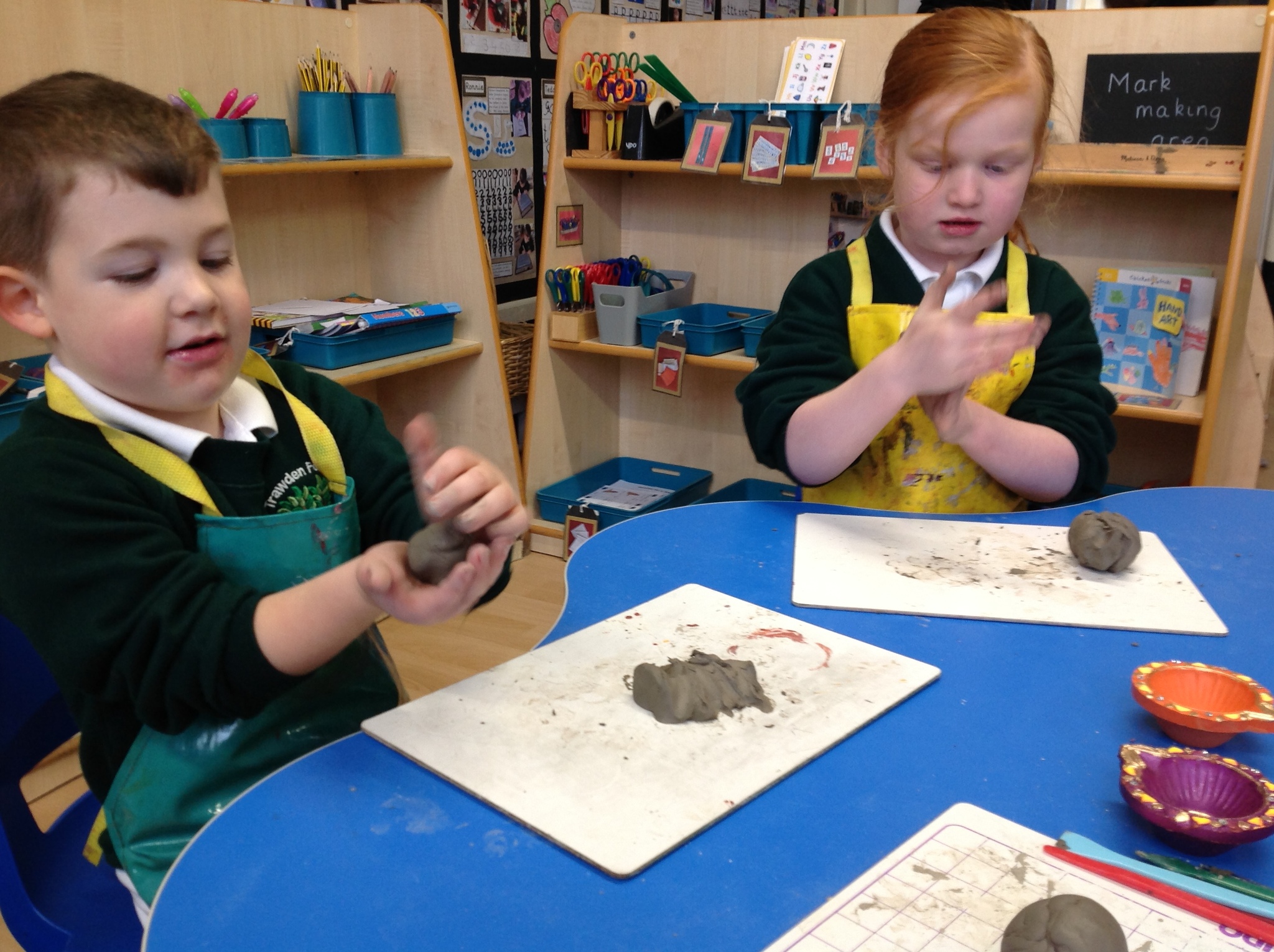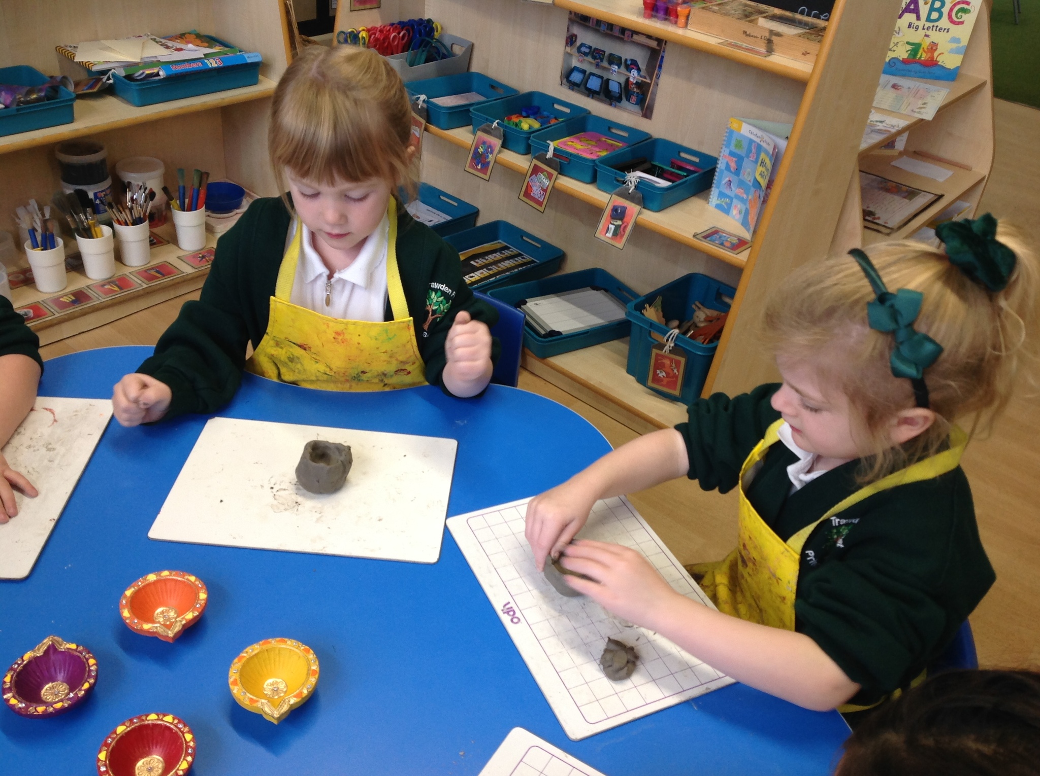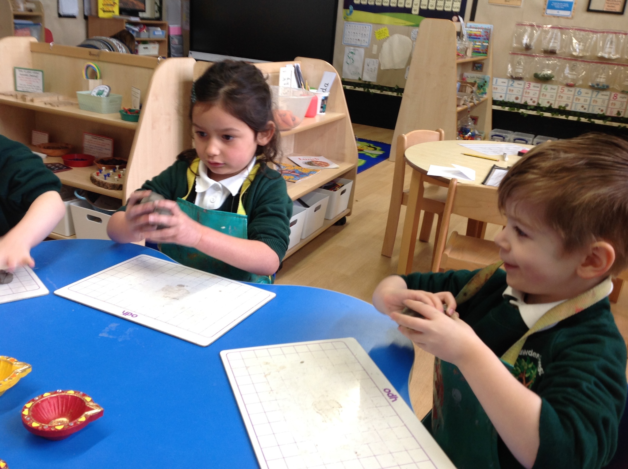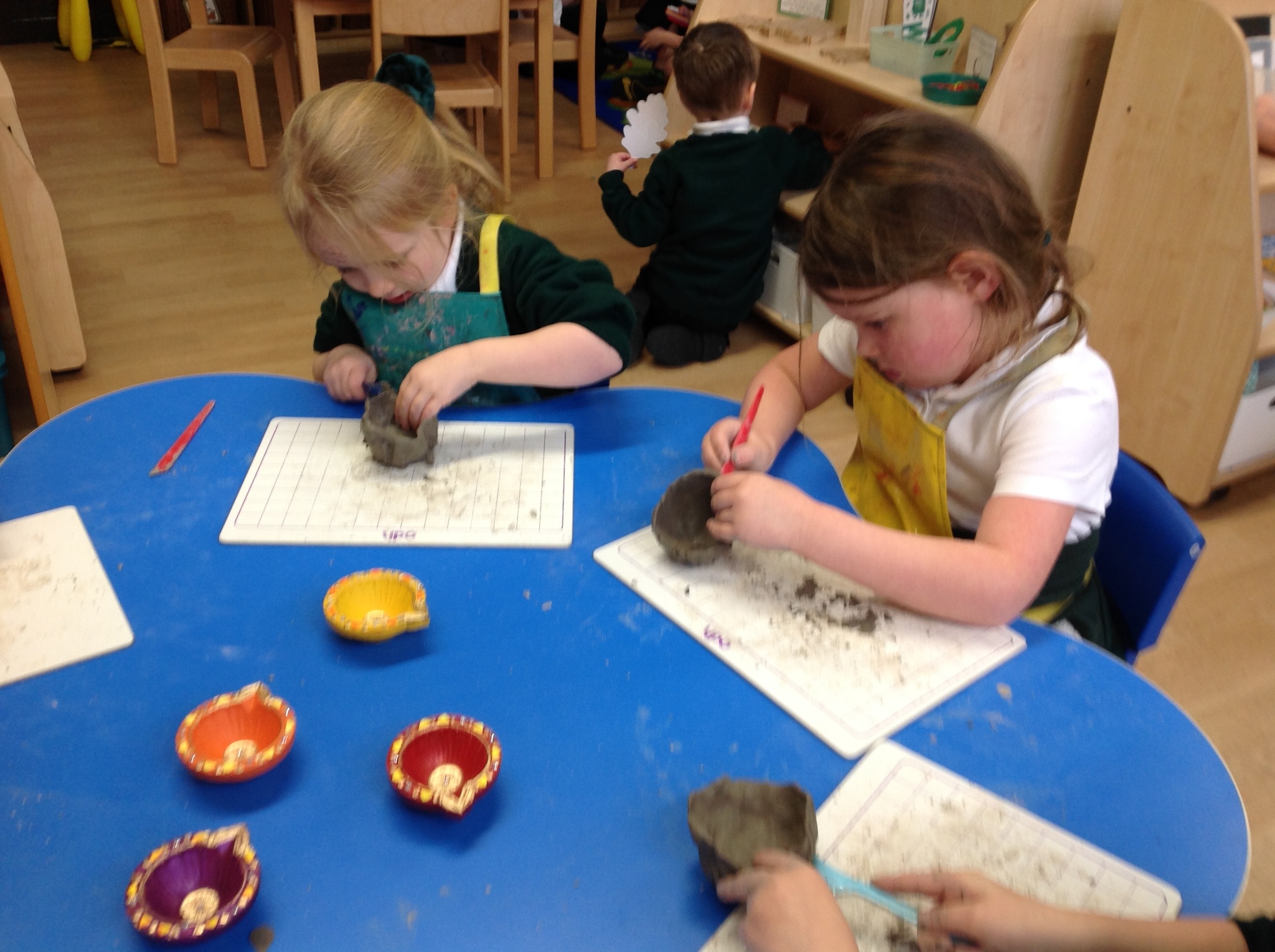 They have been learning about Divali - The festival of light and have enjoyed designing and making their own Diva Lamps which they have brought home today.