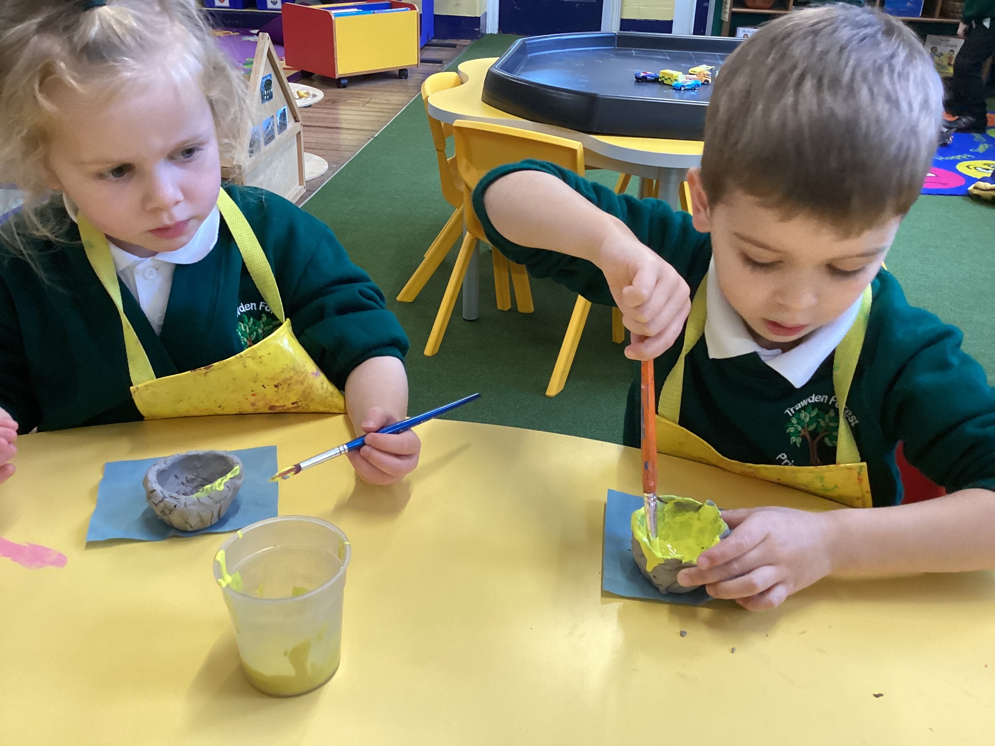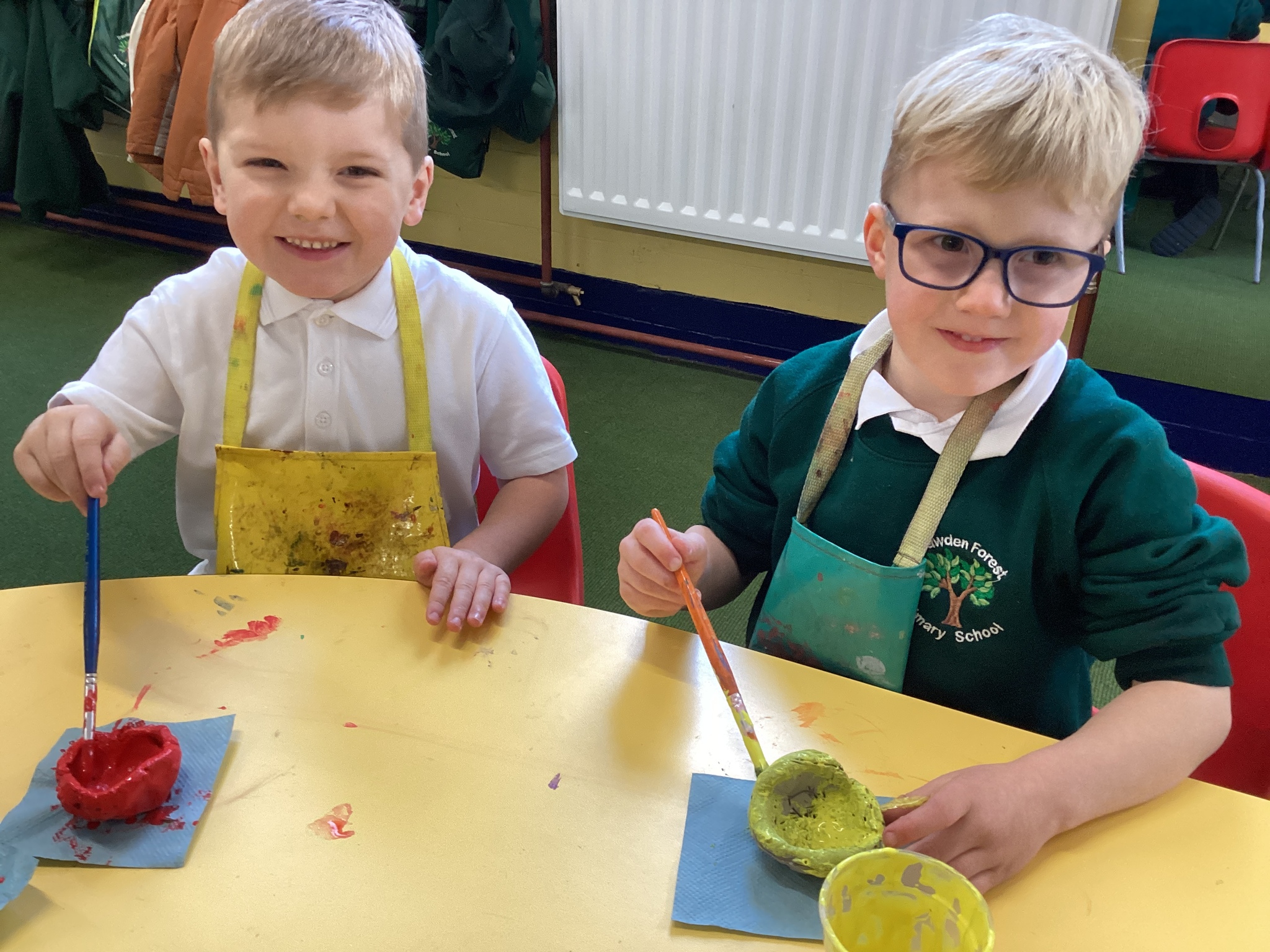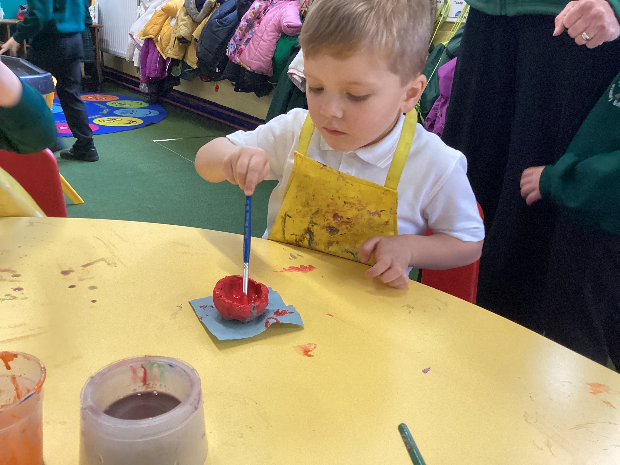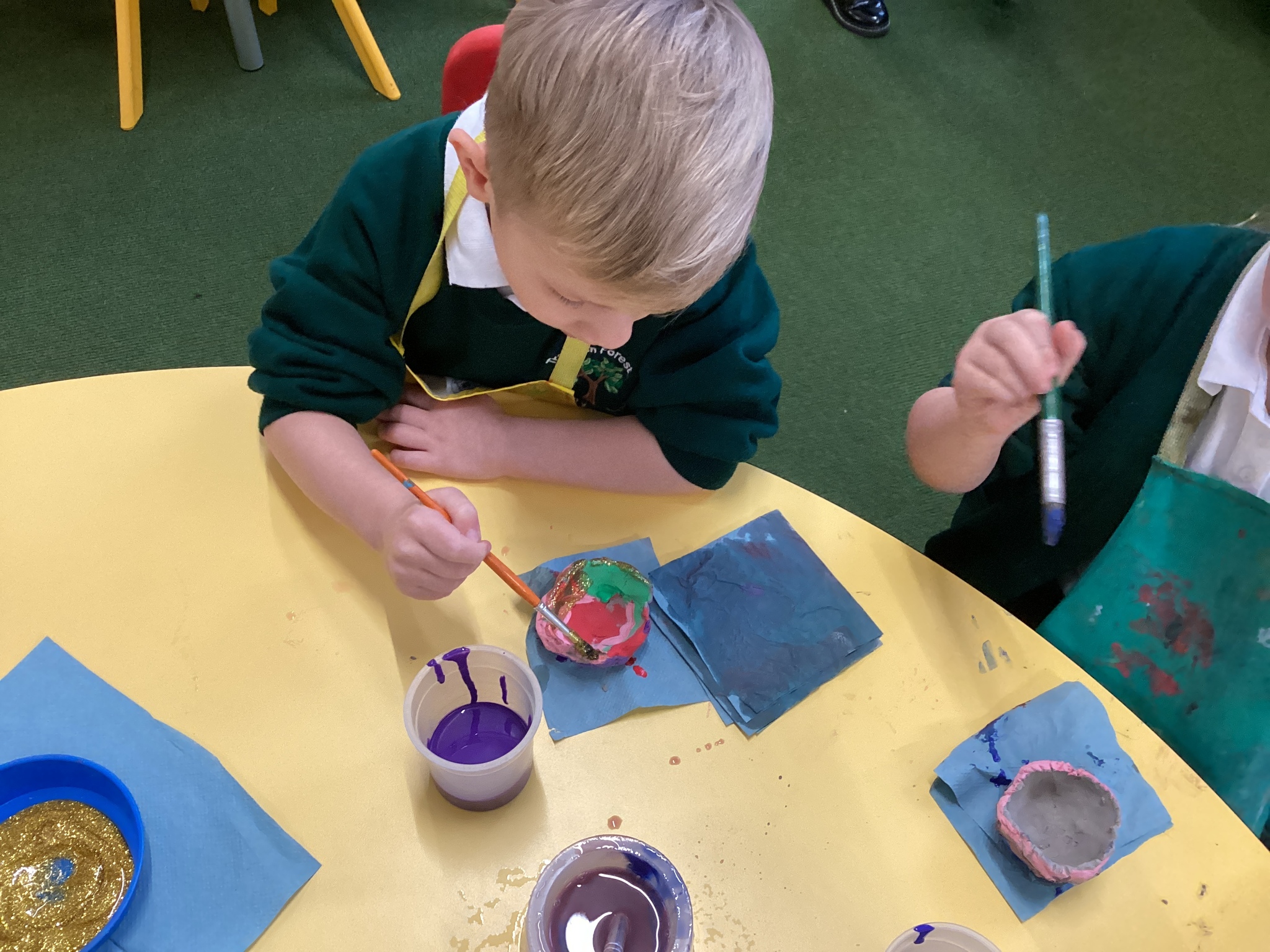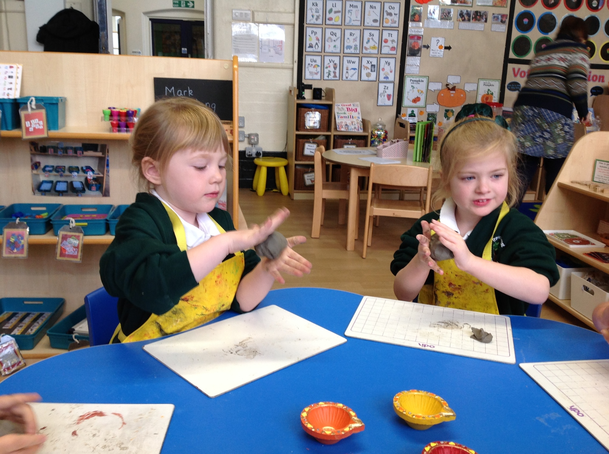 They have been learning about Divali - The festival of light and have enjoyed designing and making their own Diva Lamps which they have brought home today.