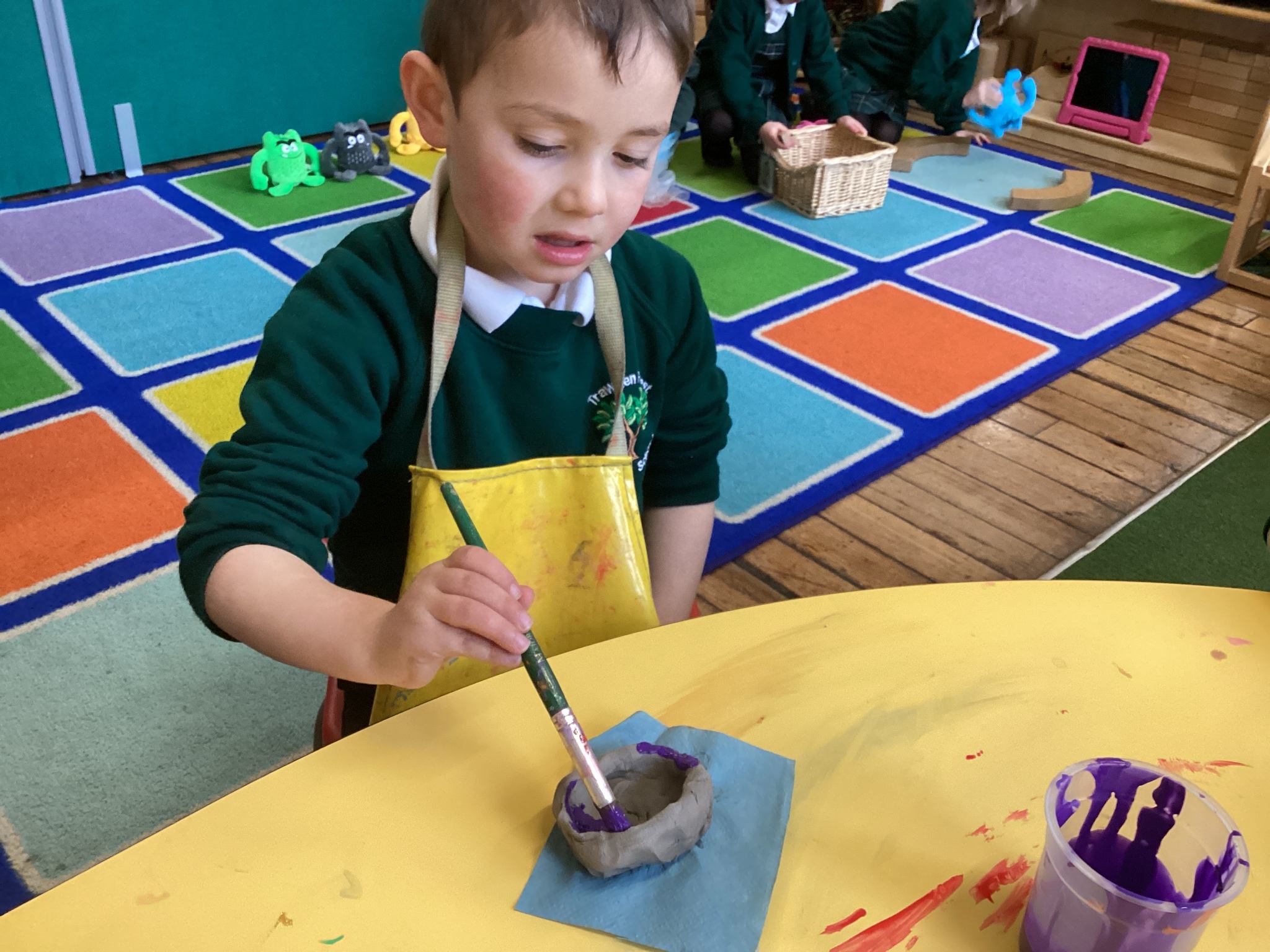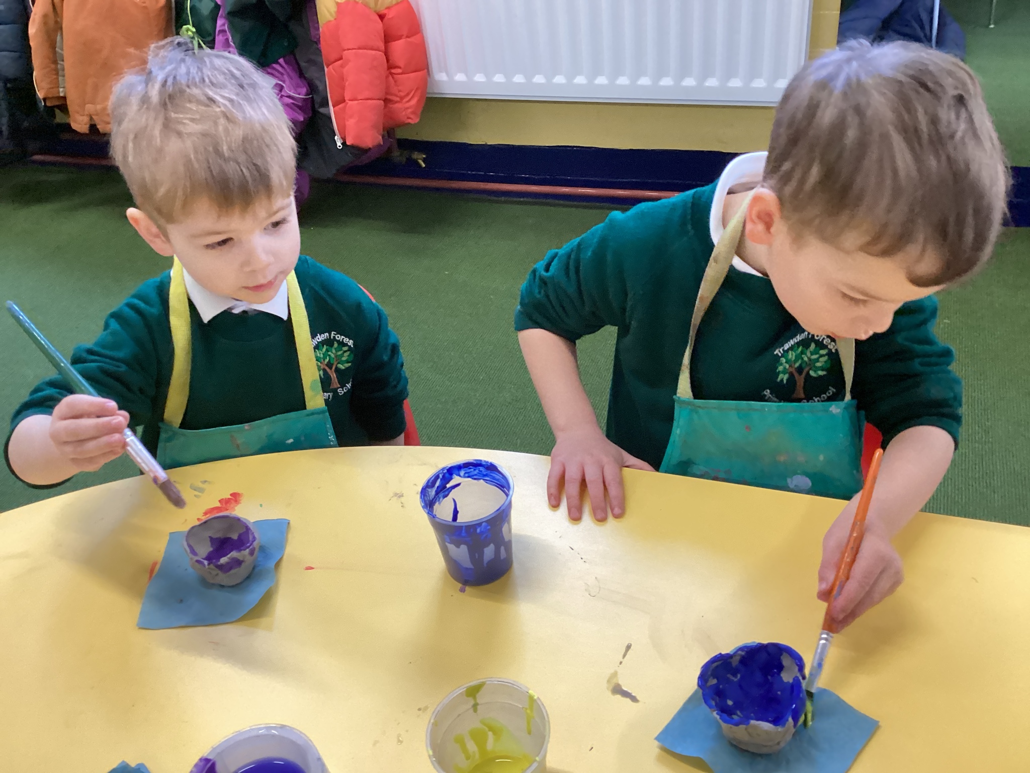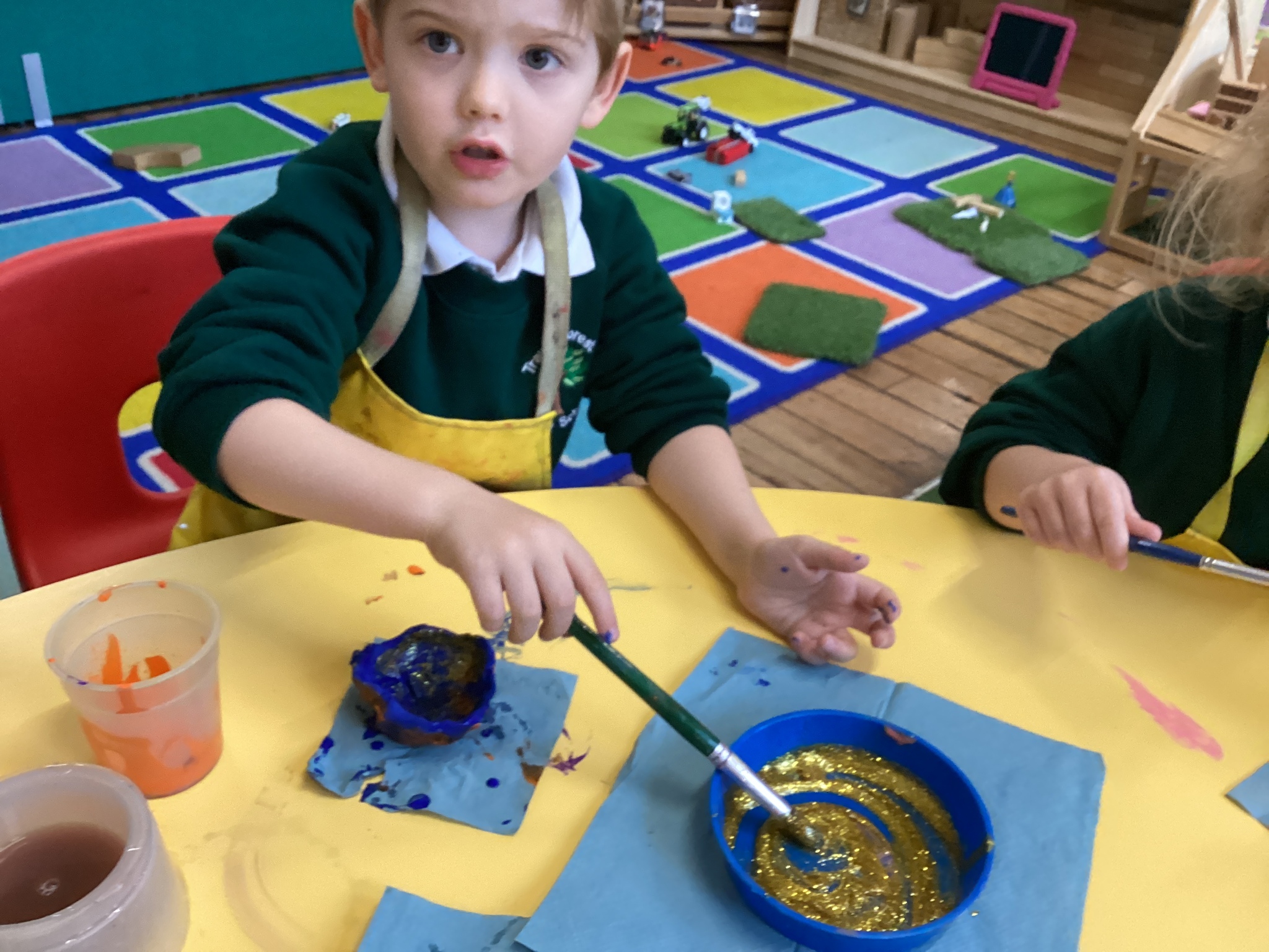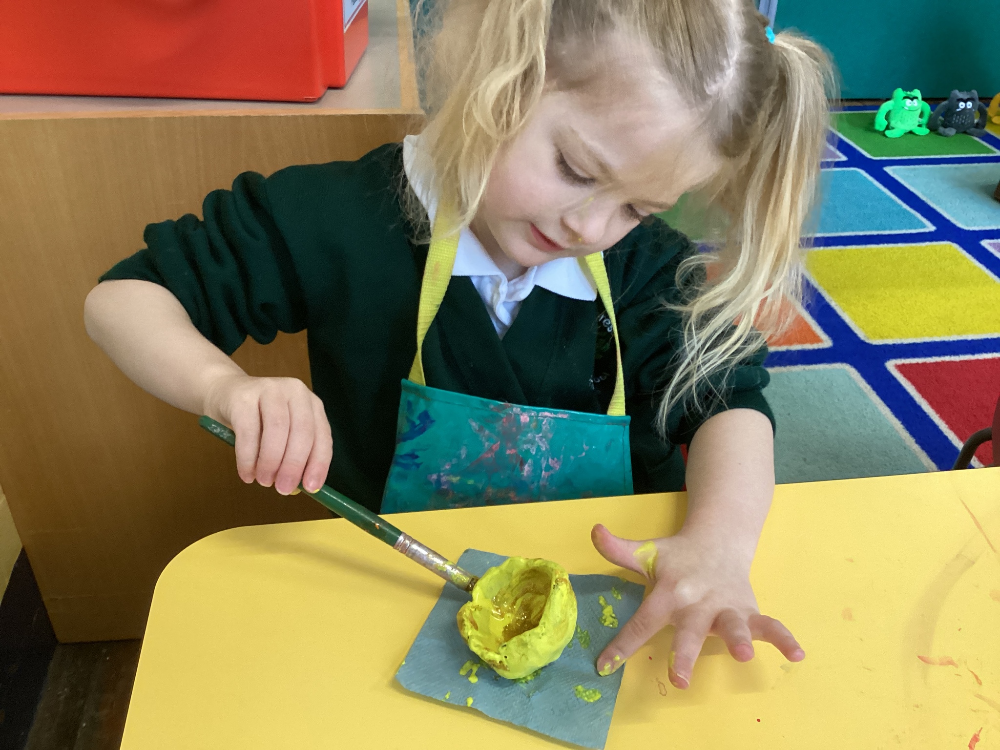 They have been learning about Divali - The festival of light and have enjoyed designing and making their own Diva Lamps which they have brought home today.