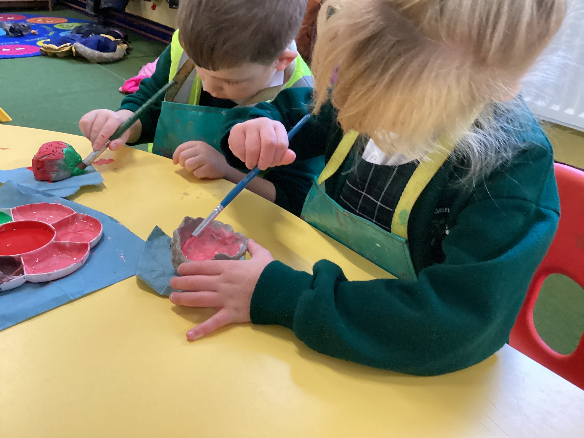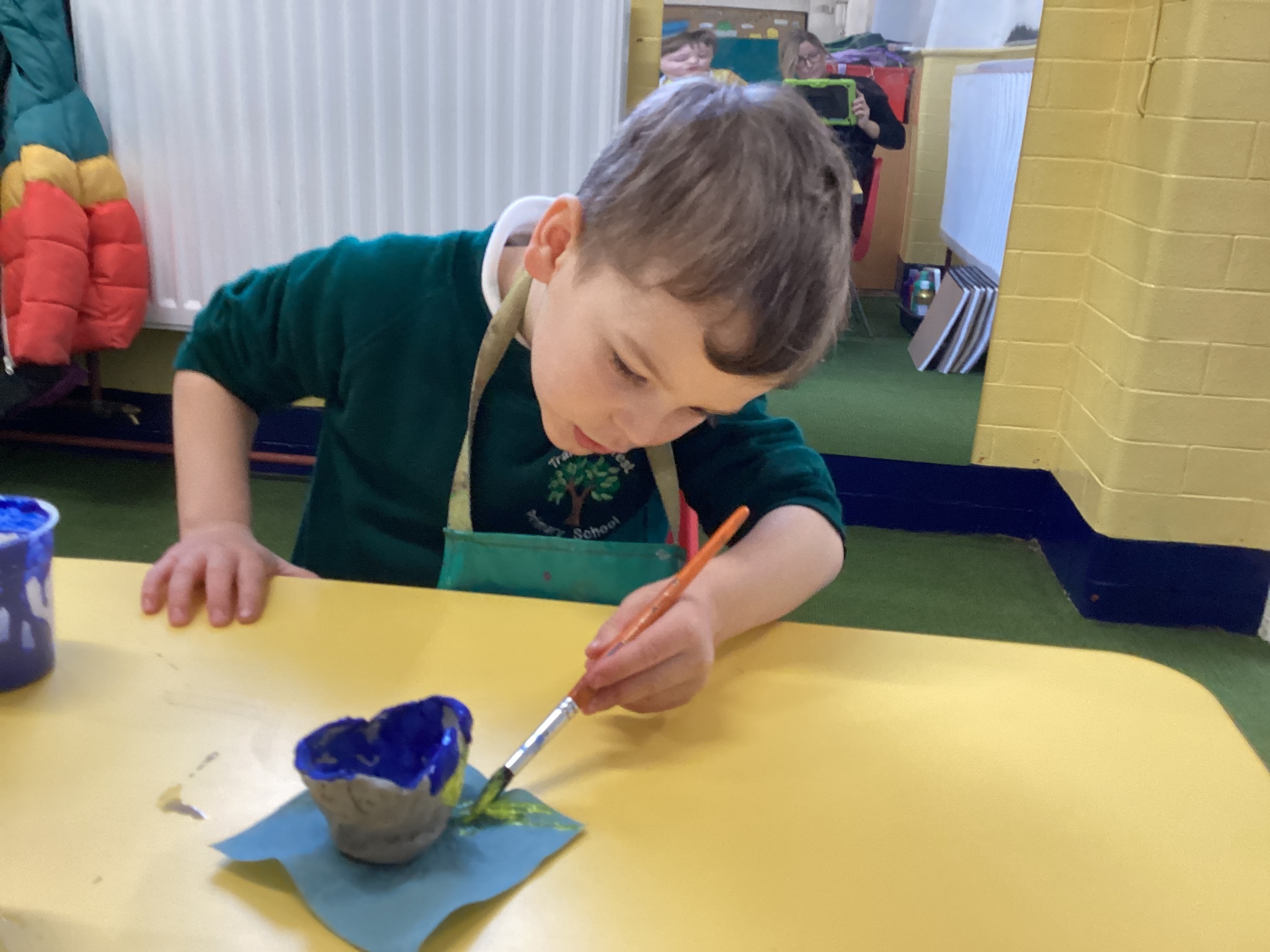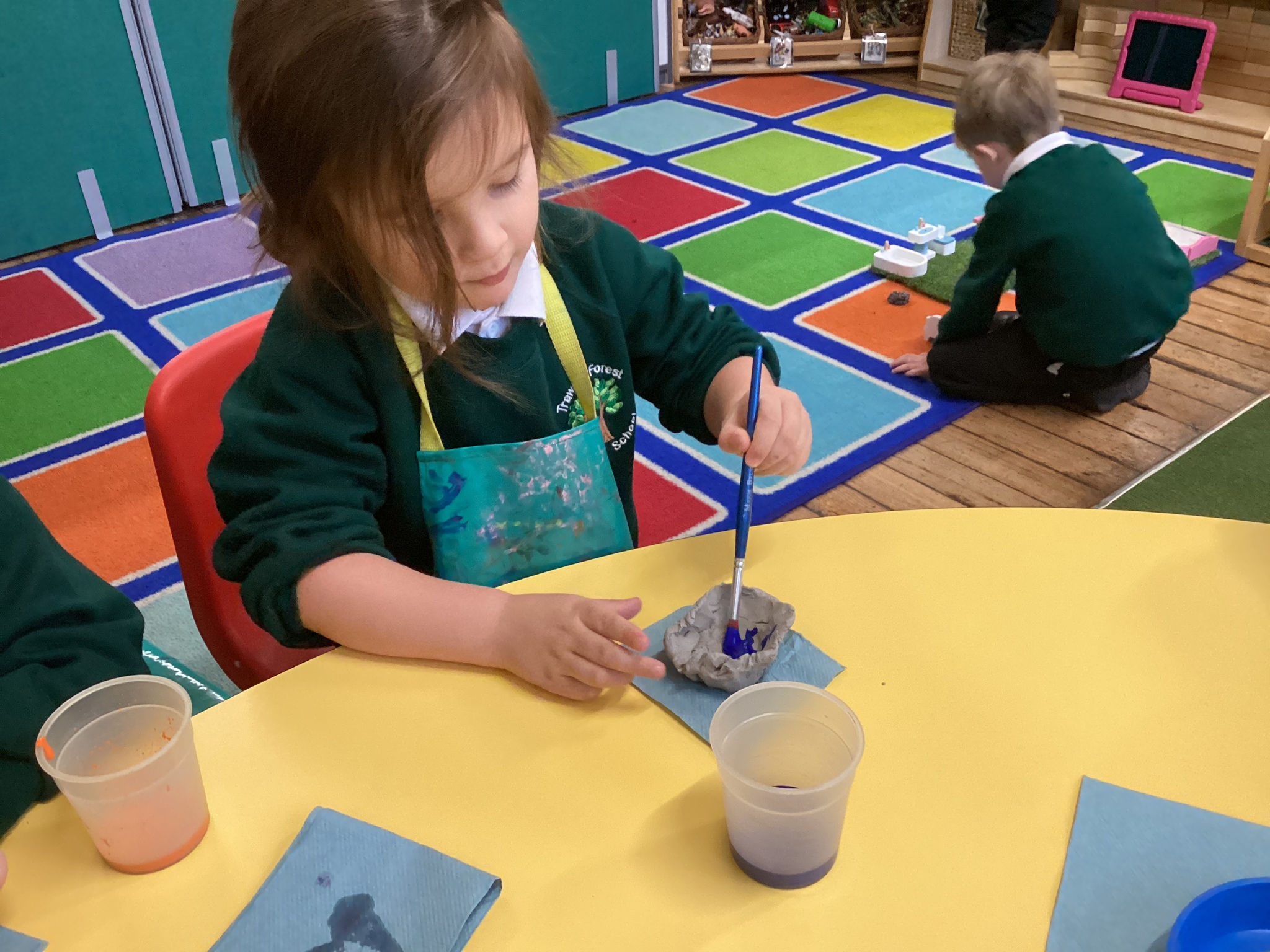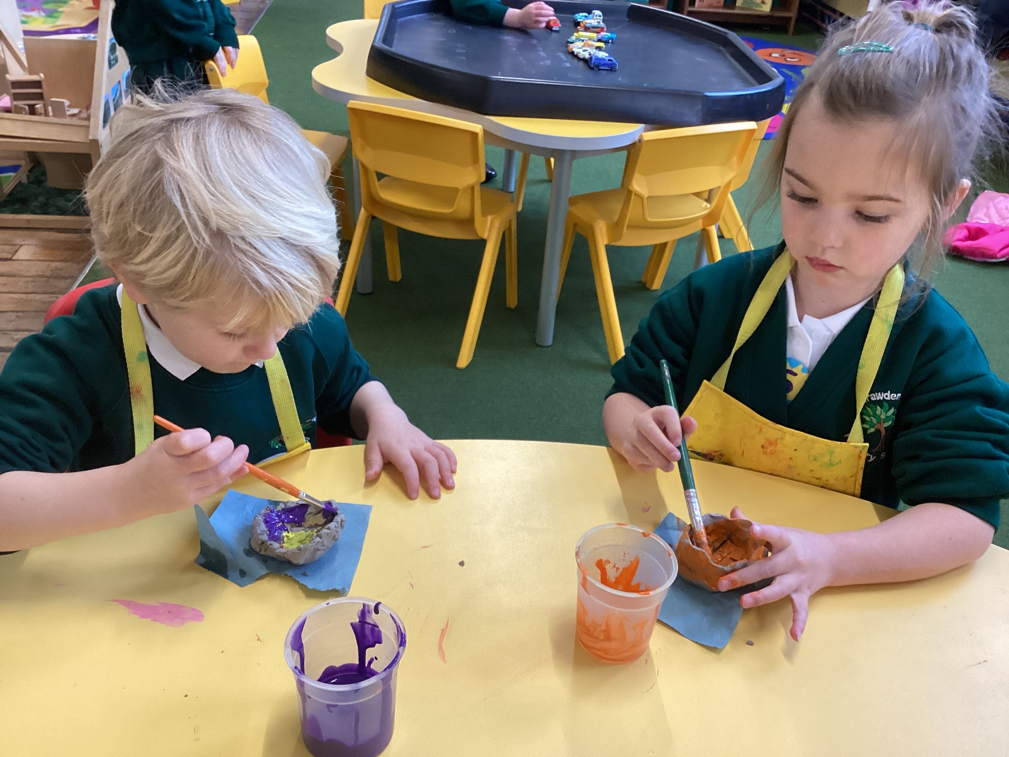 They have been learning about Divali - The festival of light and have enjoyed designing and making their own Diva Lamps which they have brought home today.