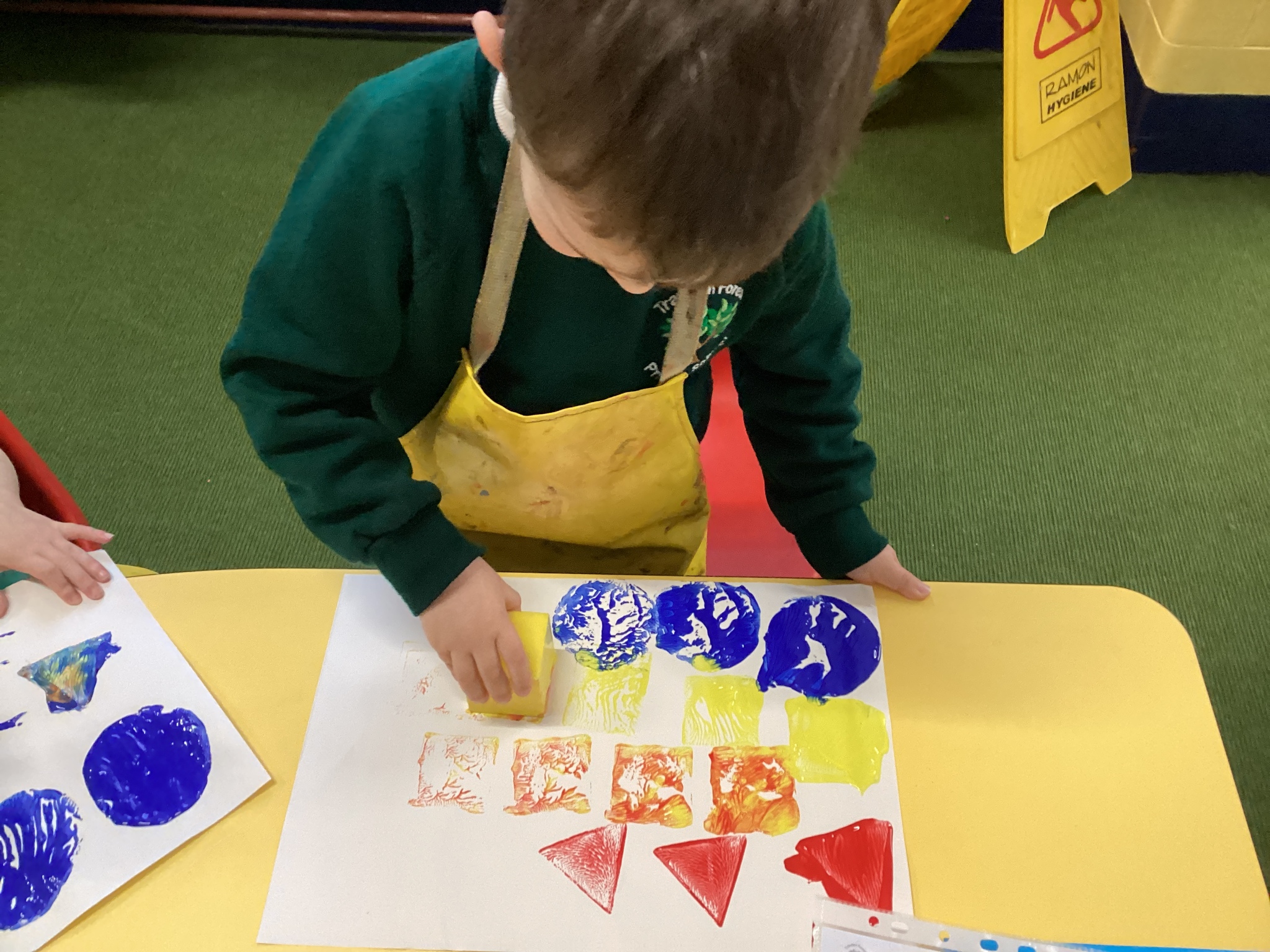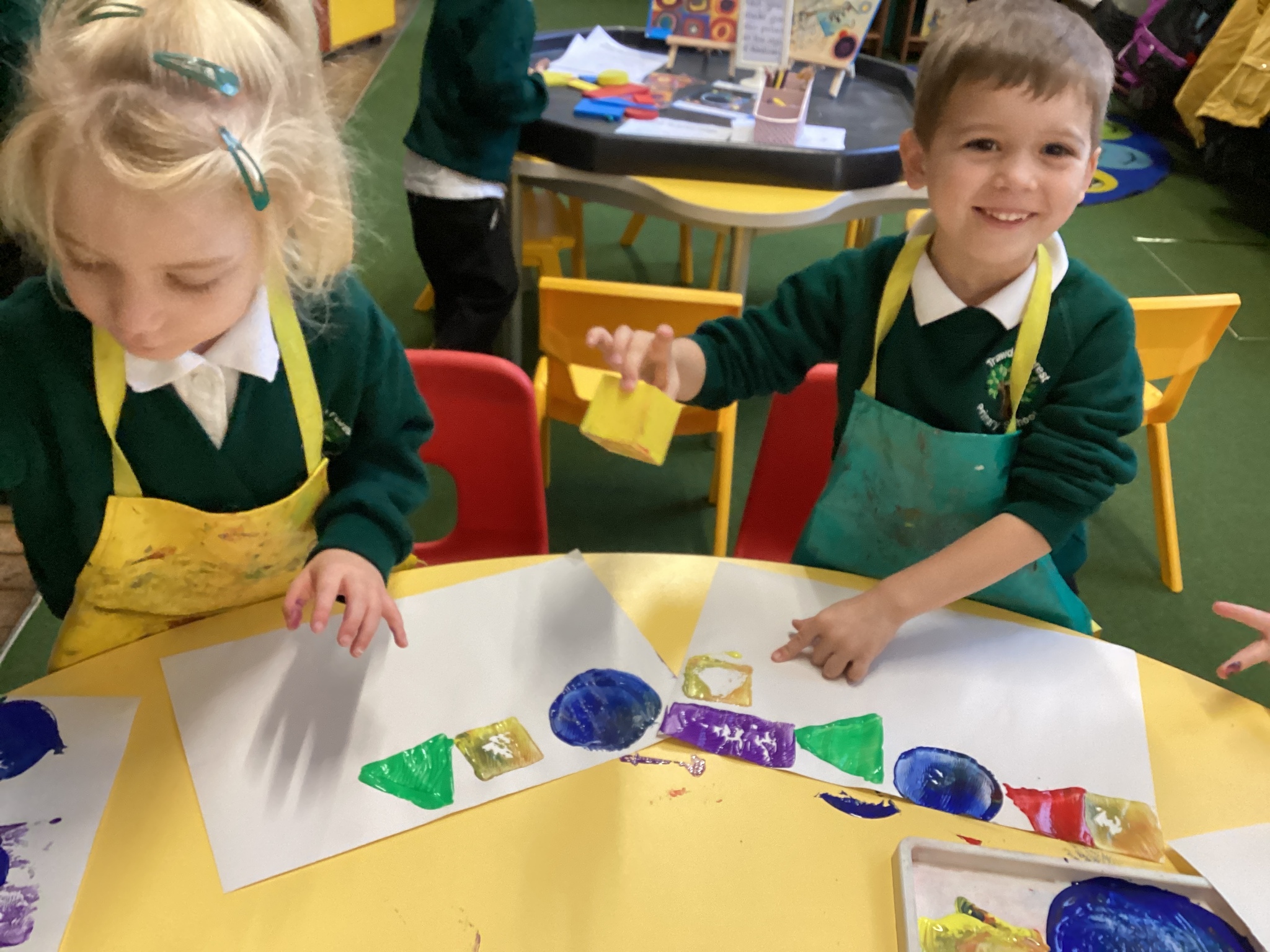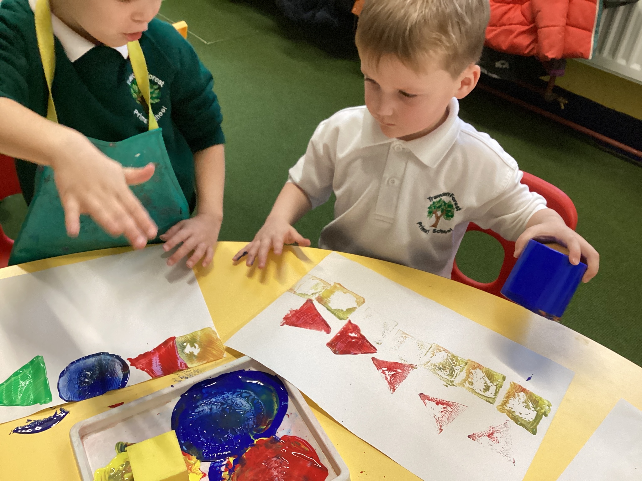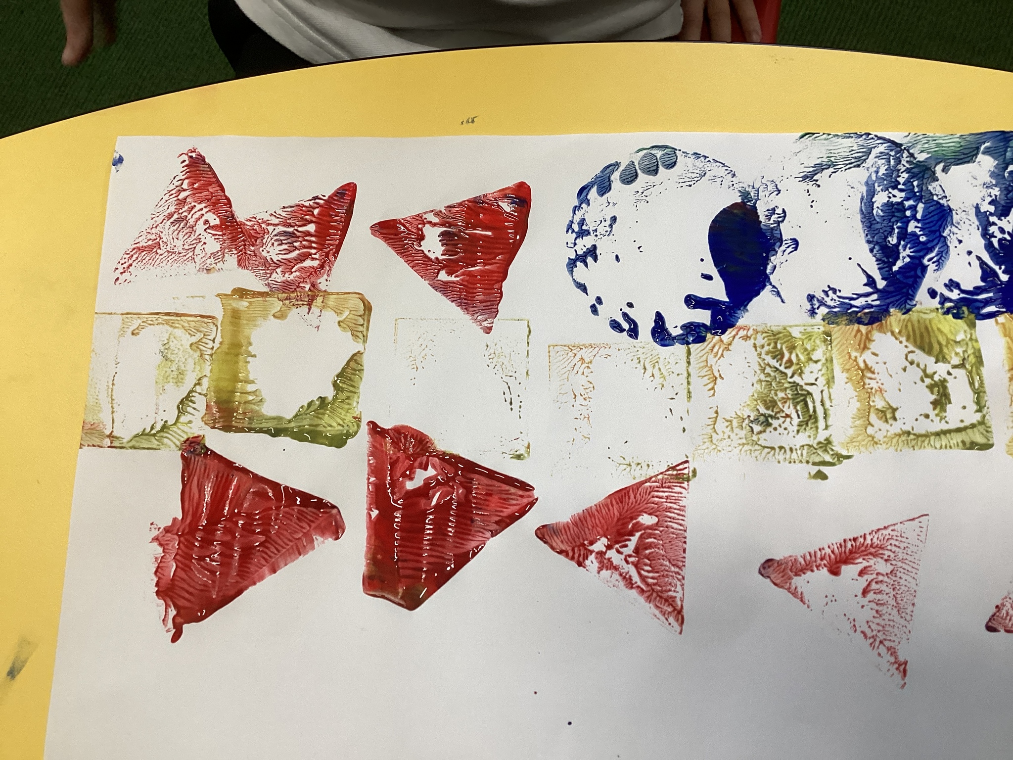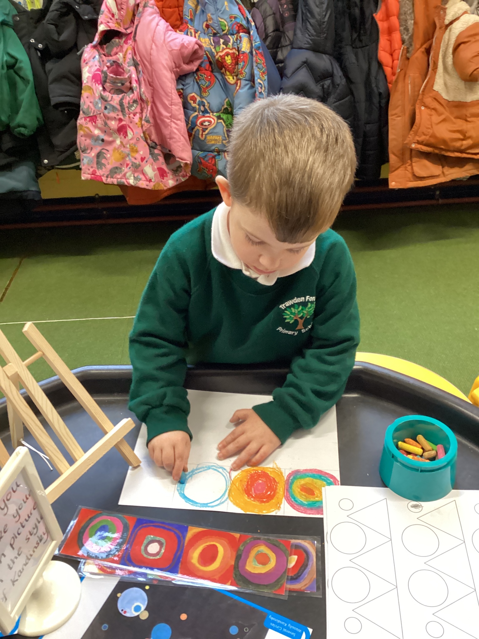 We have also been busy learning about and hunting for shapes! We have found out about Kandinsky and looked at some of his art involving shapes. We have loved making our own 'Kandinsky' style pieces of art too!