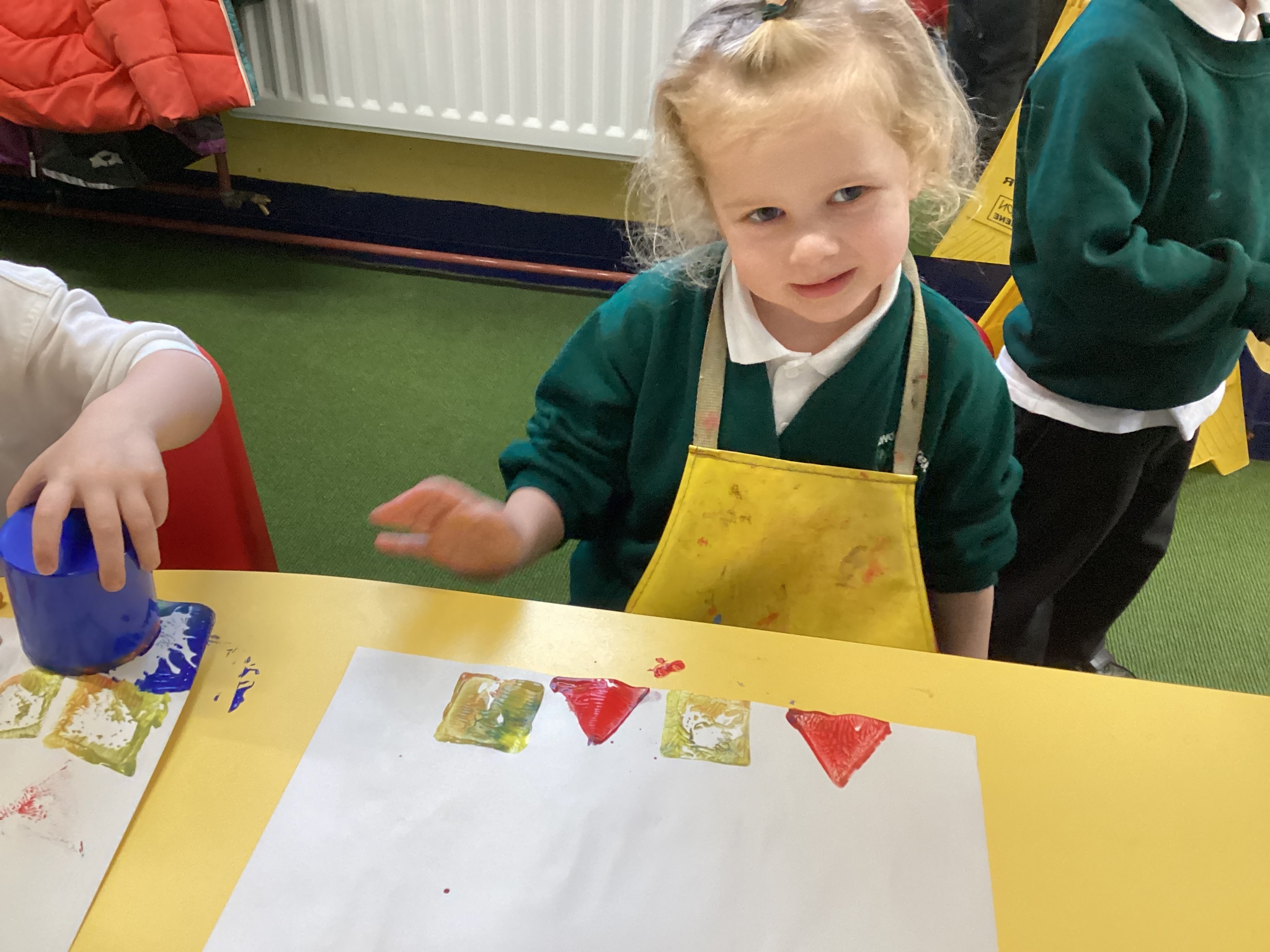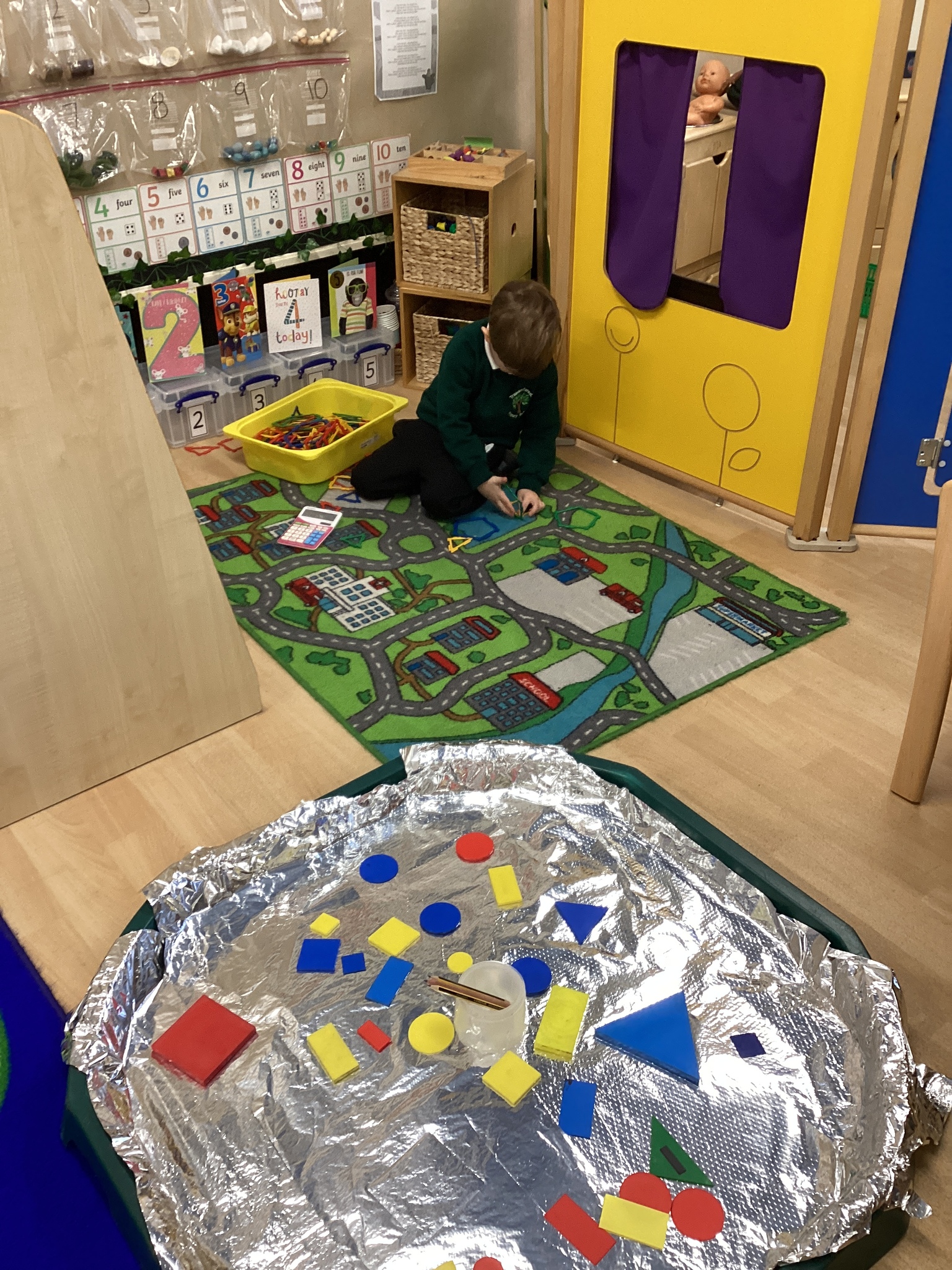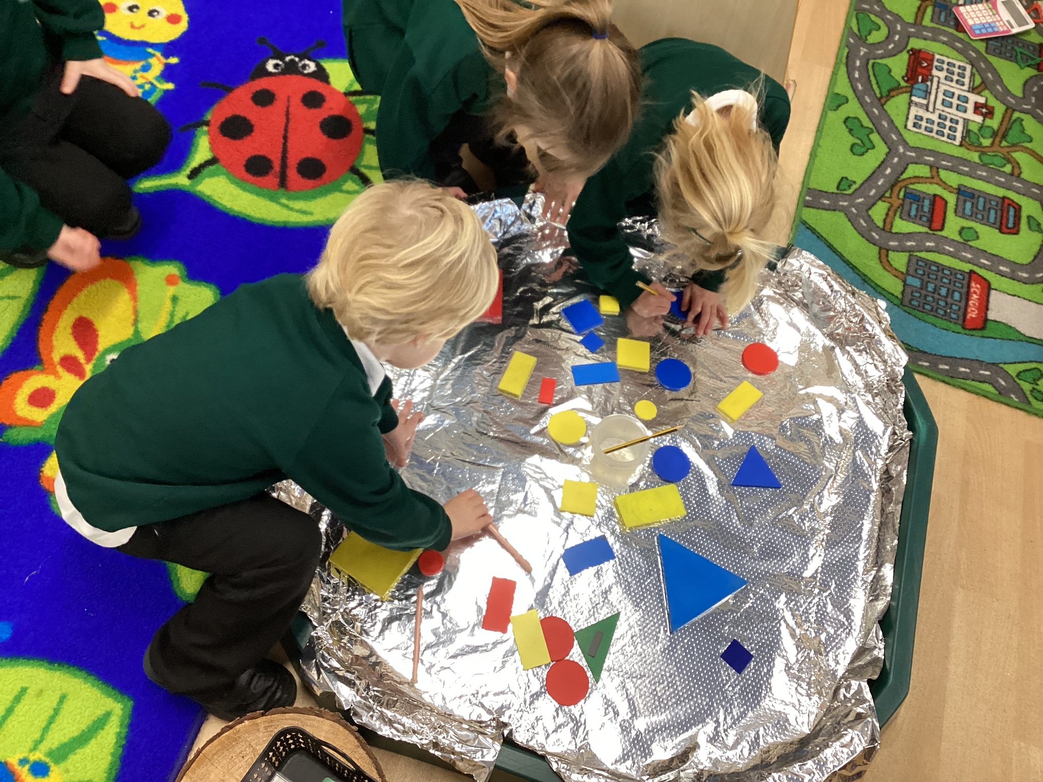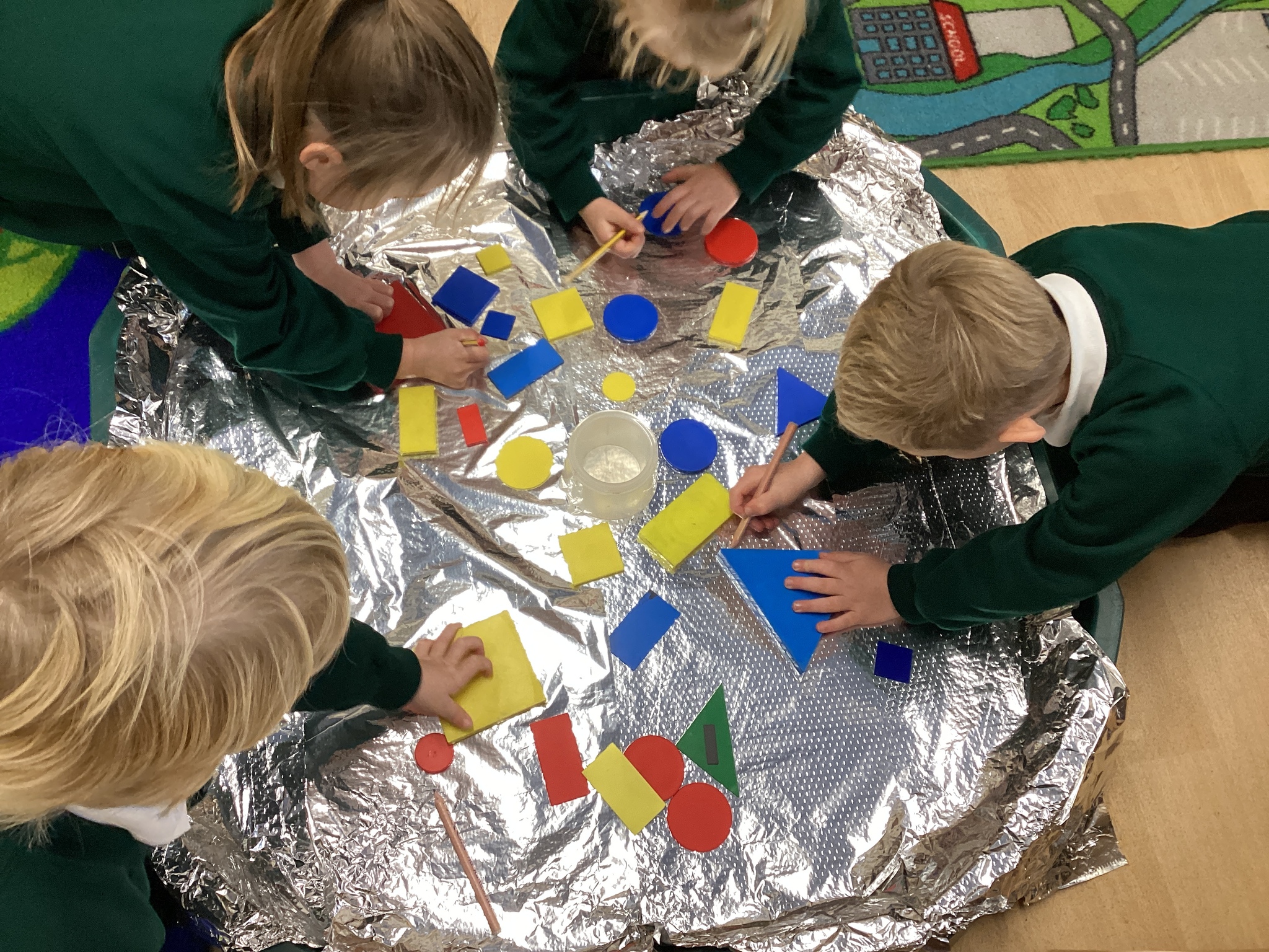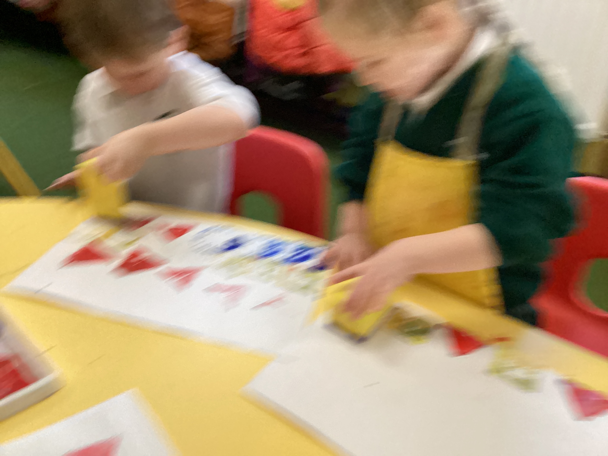 We have also been busy learning about and hunting for shapes! We have found out about Kandinsky and looked at some of his art involving shapes. We have loved making our own 'Kandinsky' style pieces of art too!