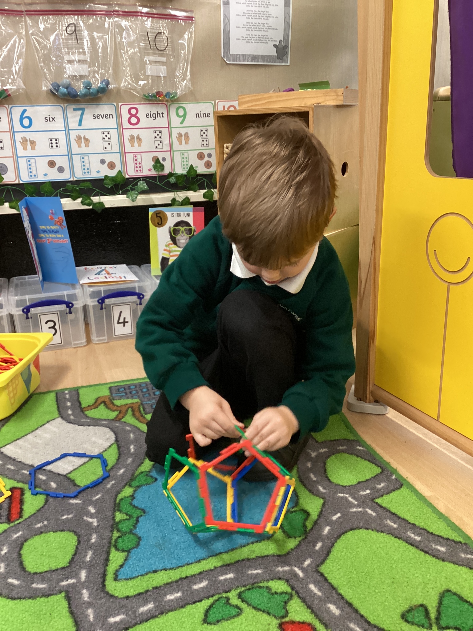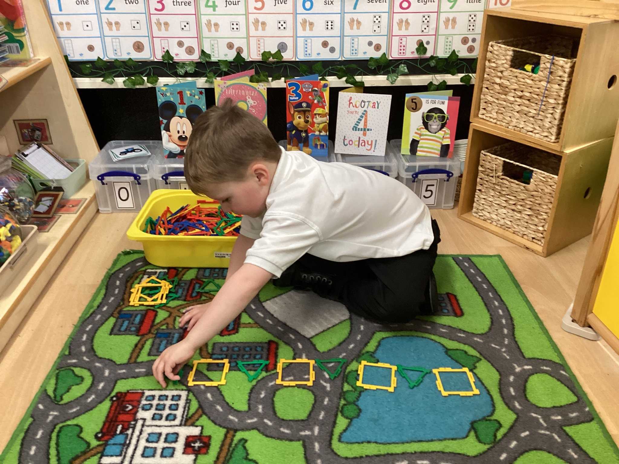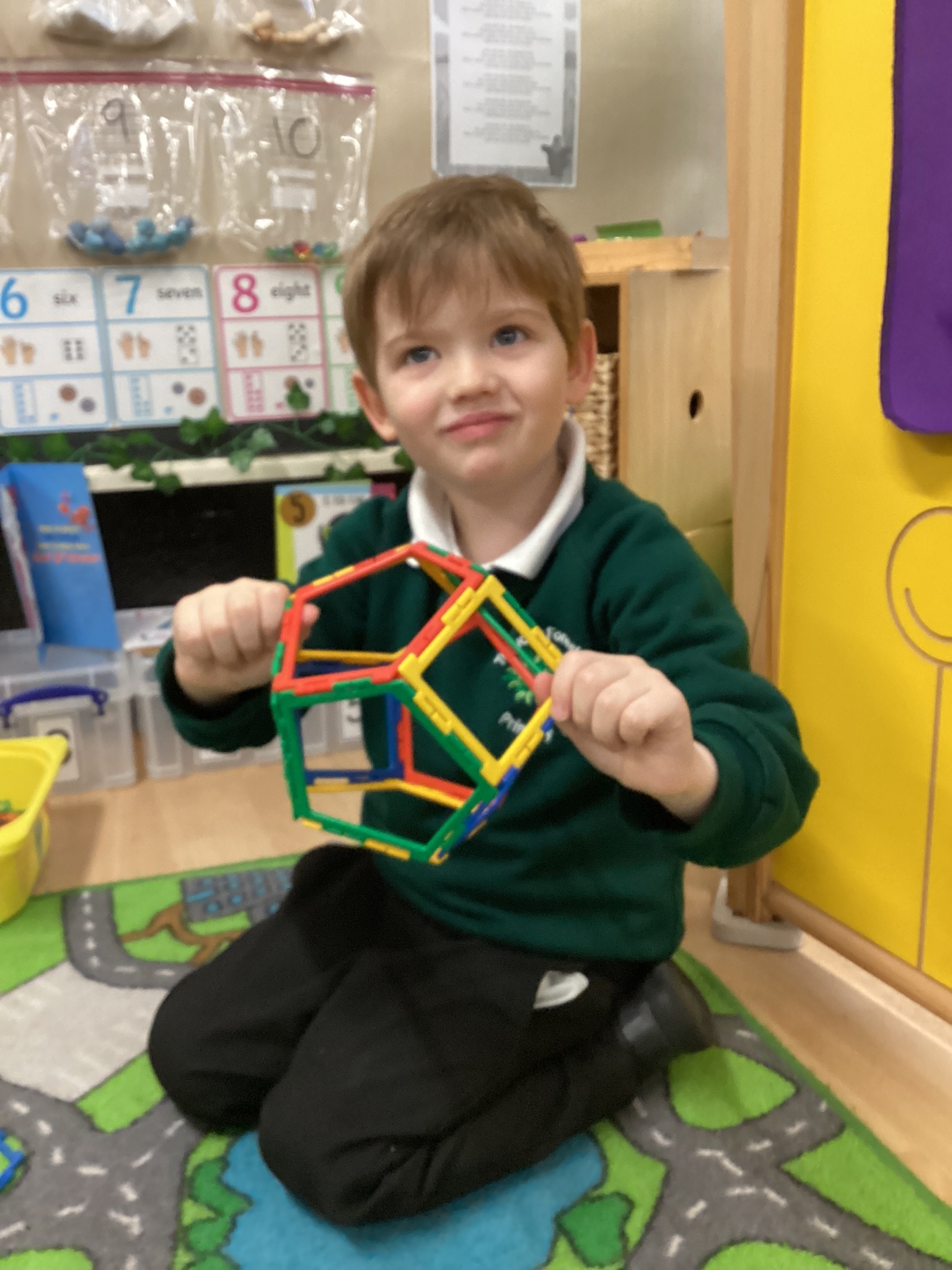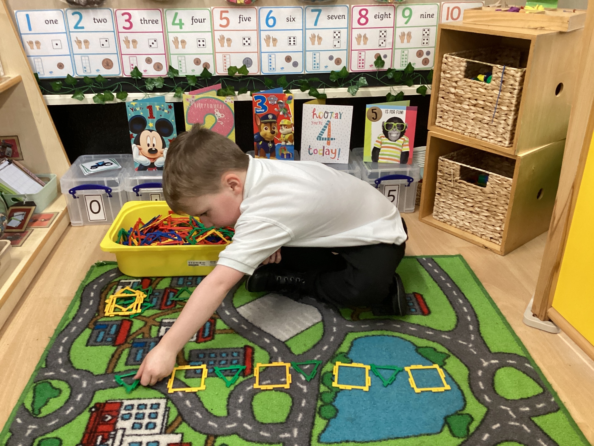 We have also been busy learning about and hunting for shapes! We have found out about Kandinsky and looked at some of his art involving shapes. We have loved making our own 'Kandinsky' style pieces of art too!
