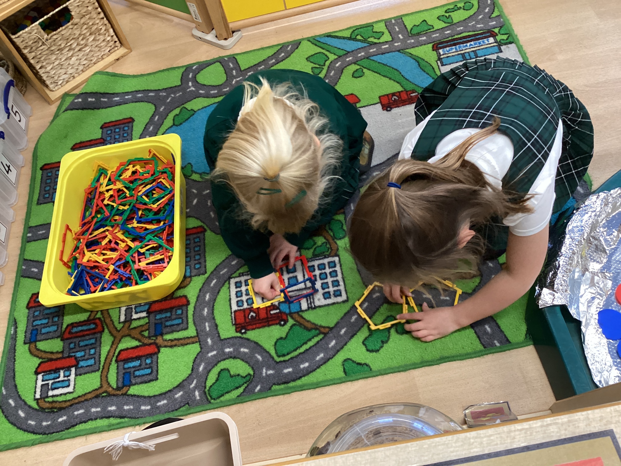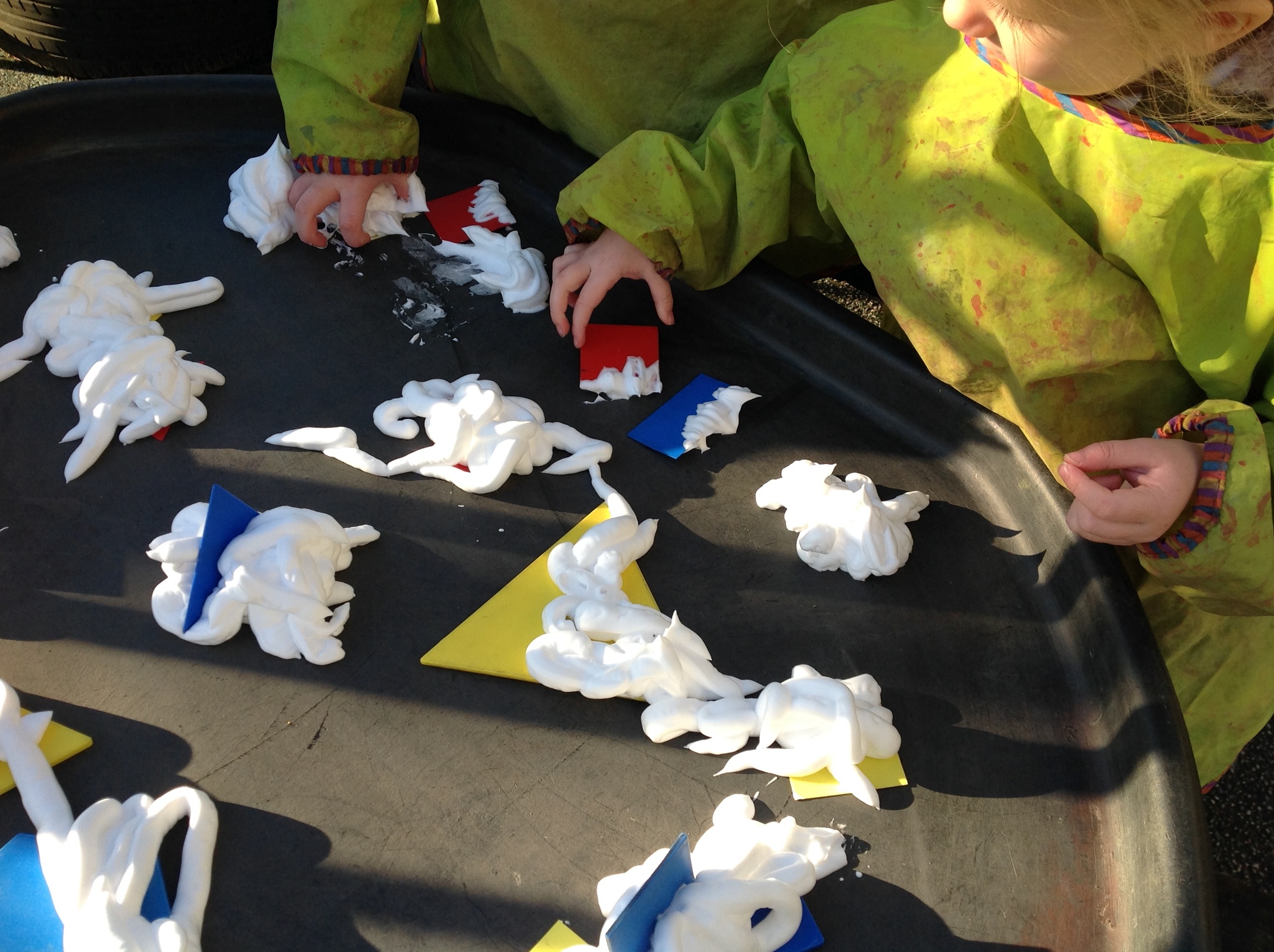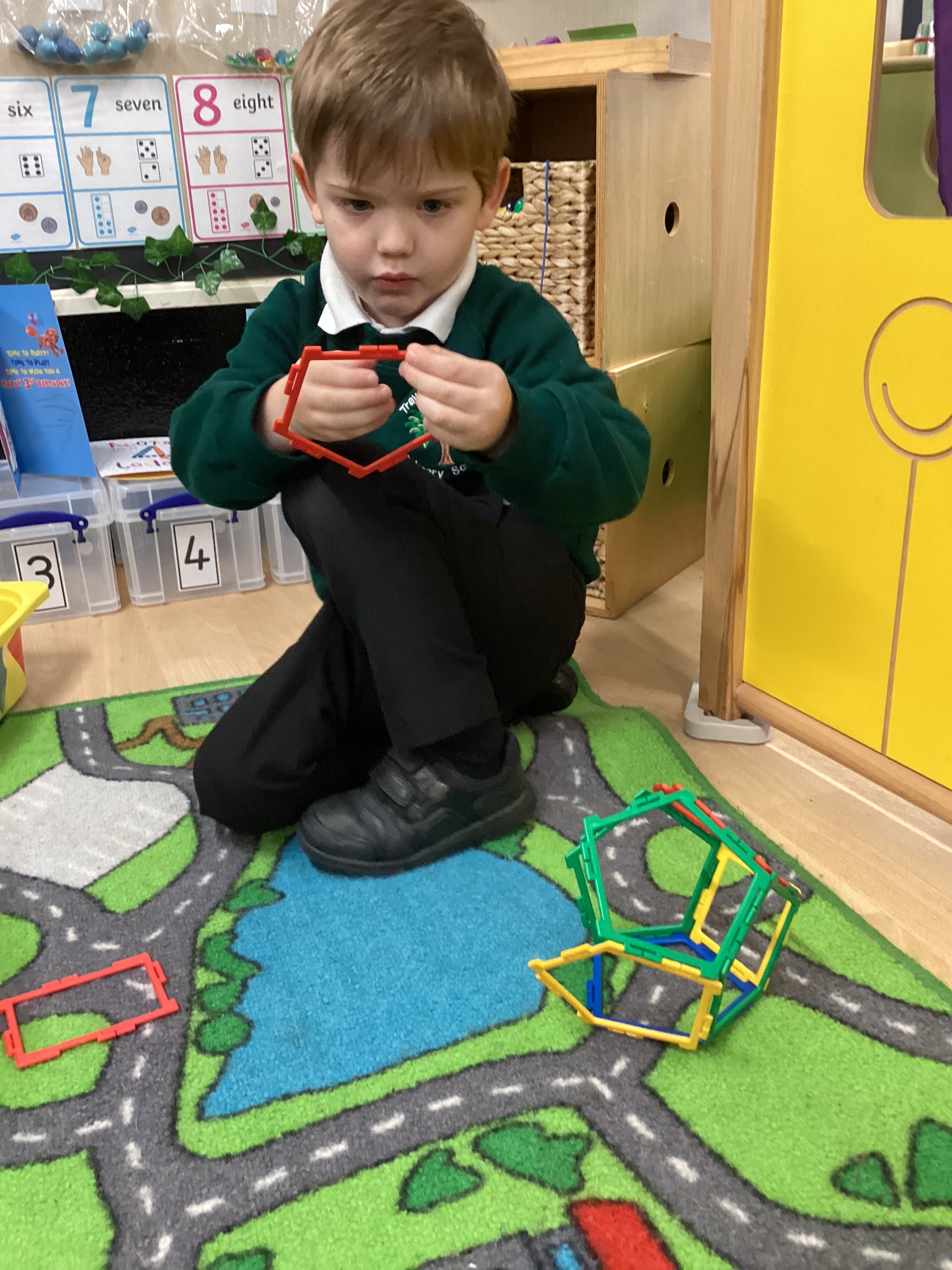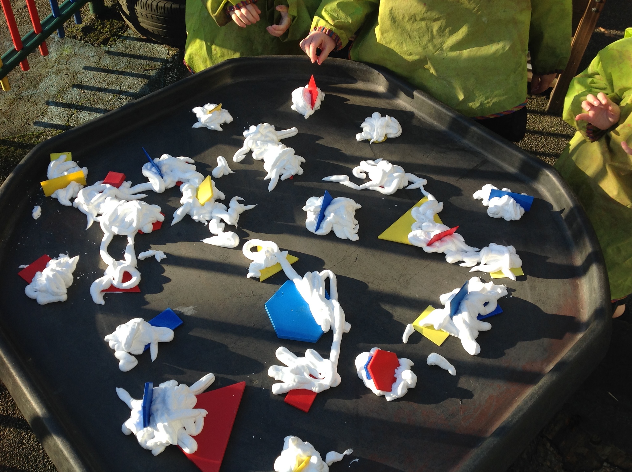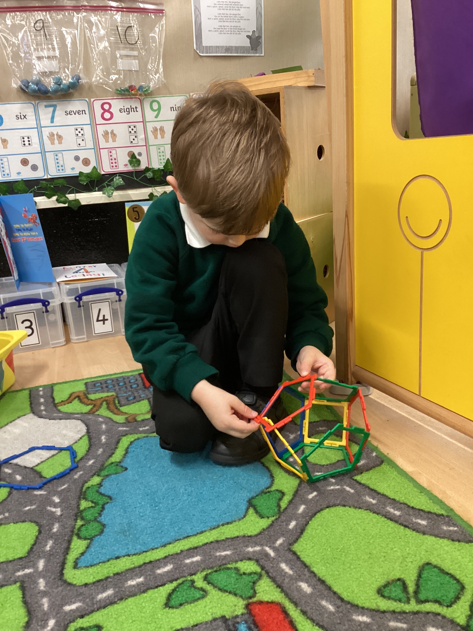 We have also been busy learning about and hunting for shapes! We have found out about Kandinsky and looked at some of his art involving shapes. We have loved making our own 'Kandinsky' style pieces of art too!