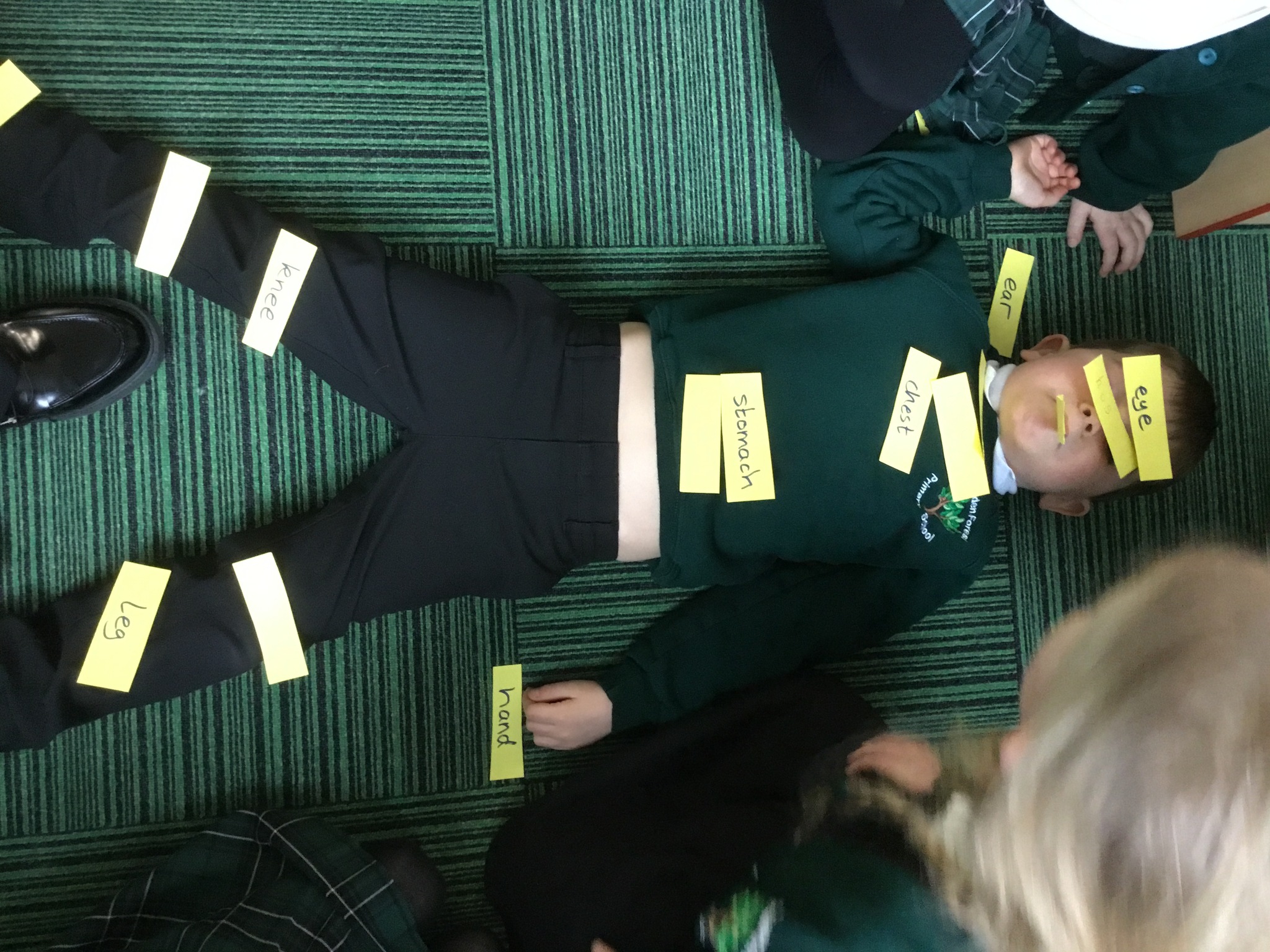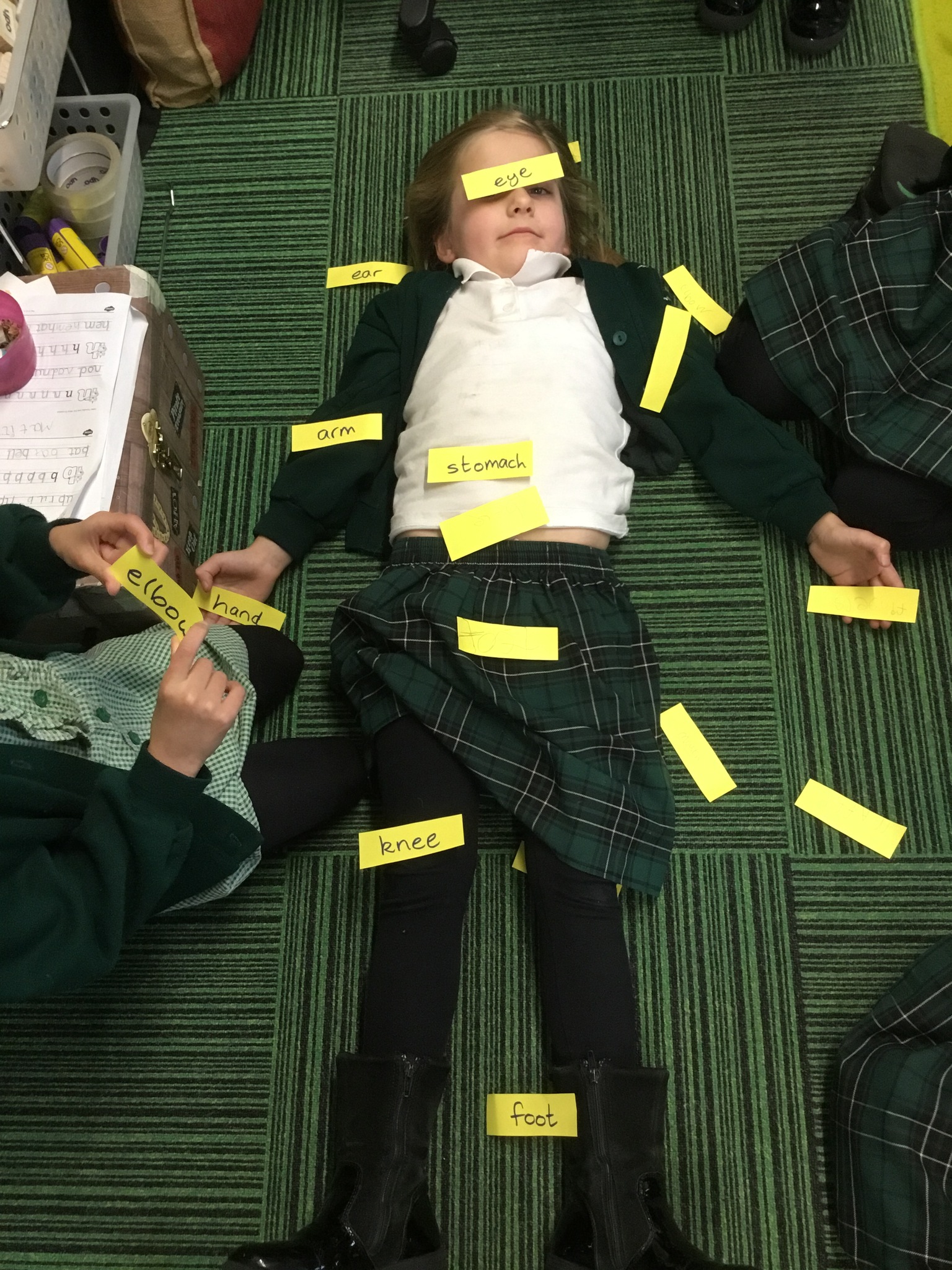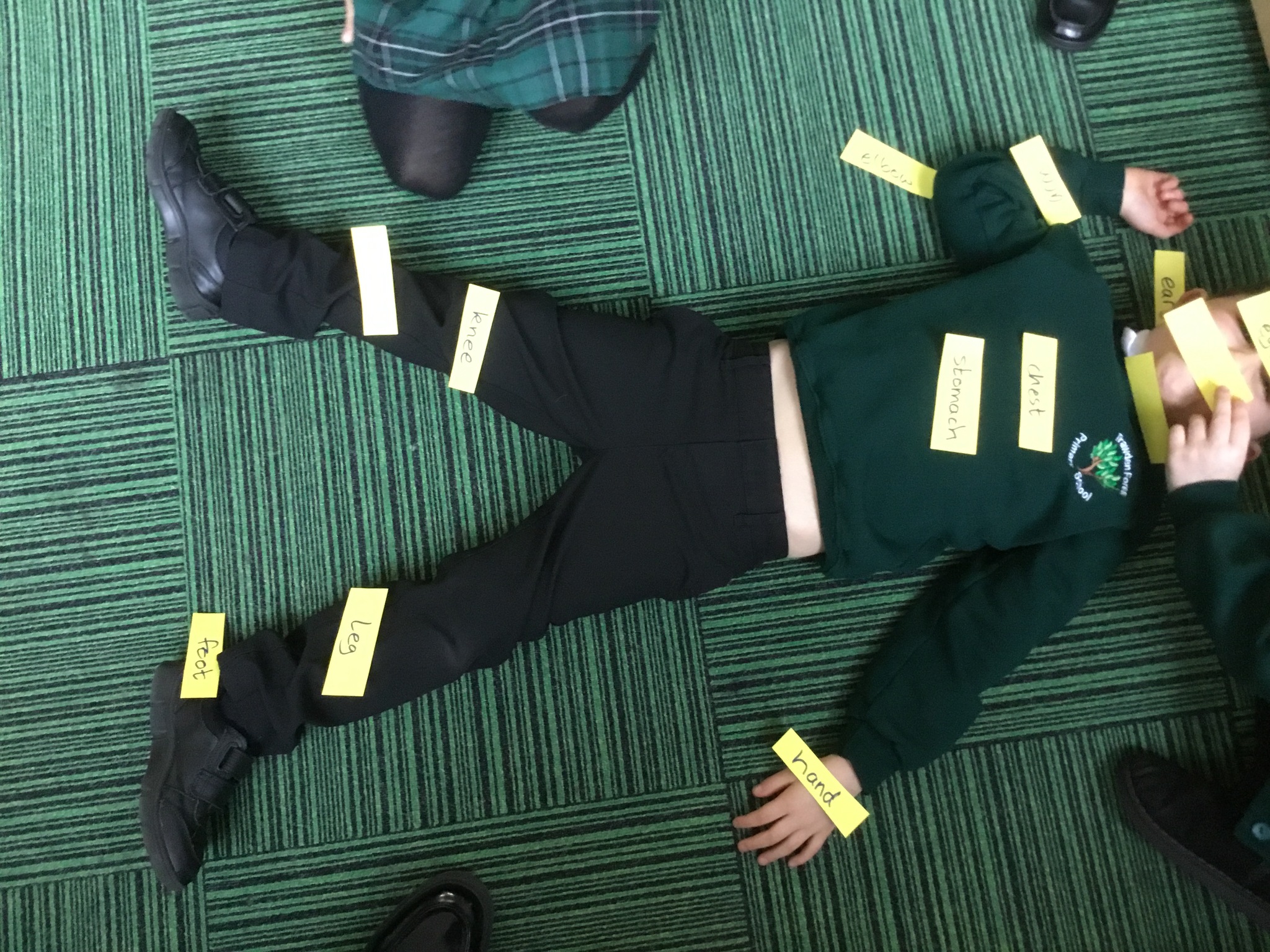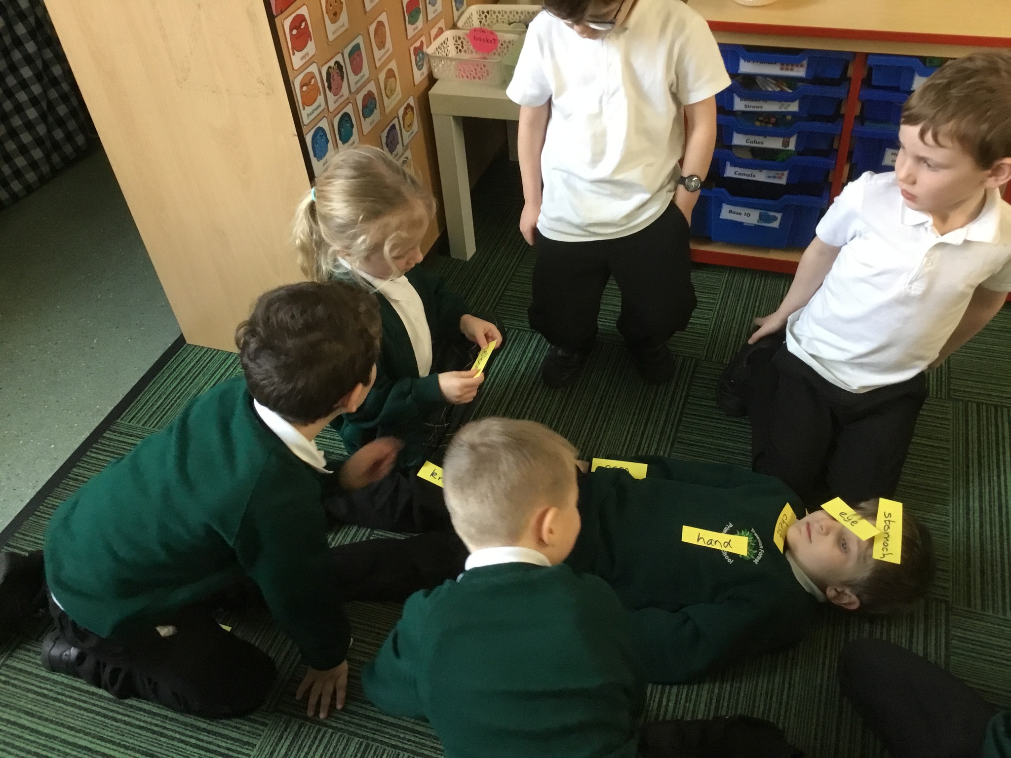 Each group labelled one 'body' and wrote extra labels if they knew the names of other body parts.