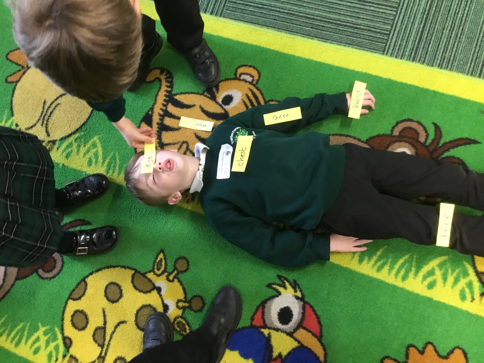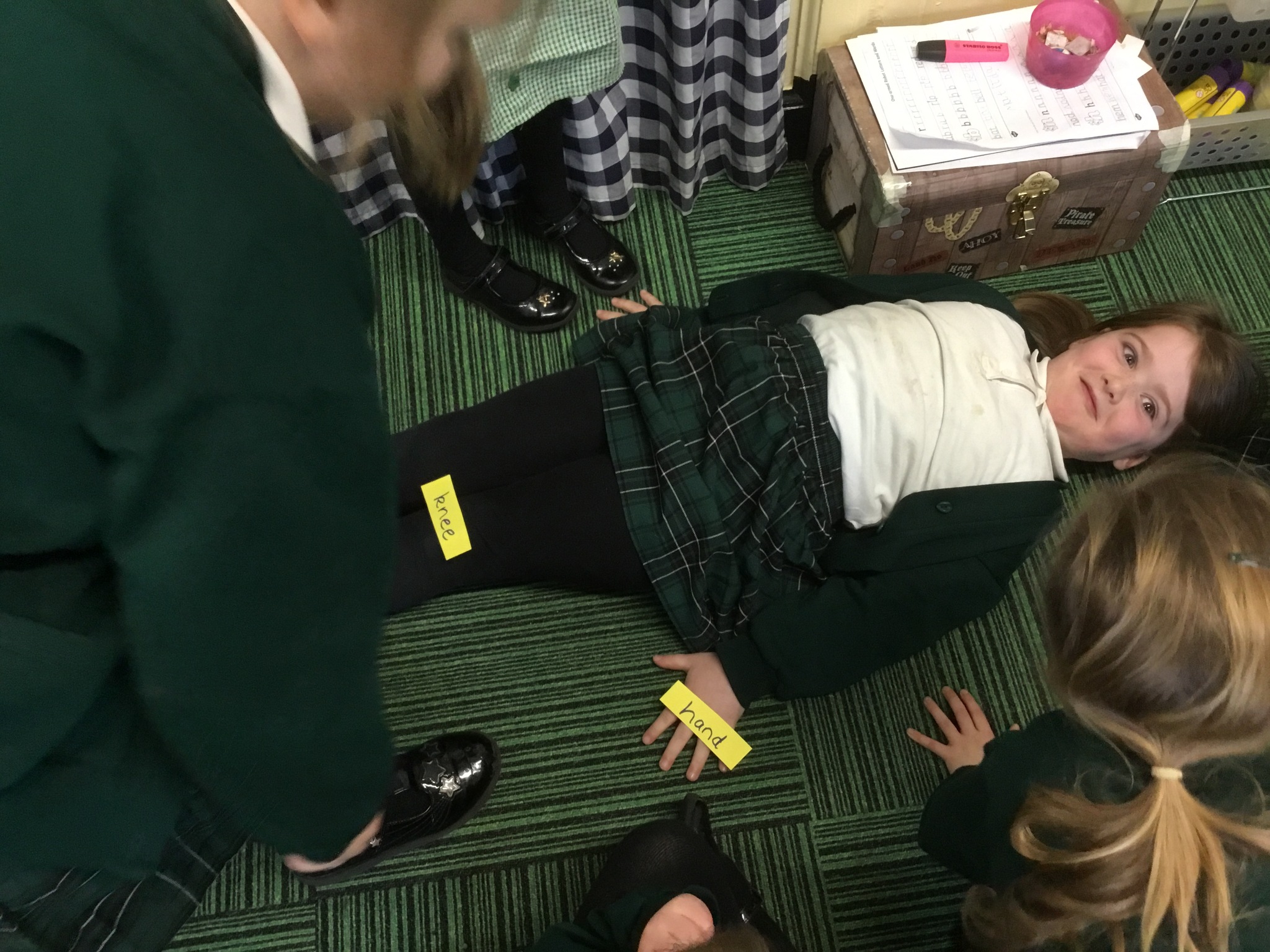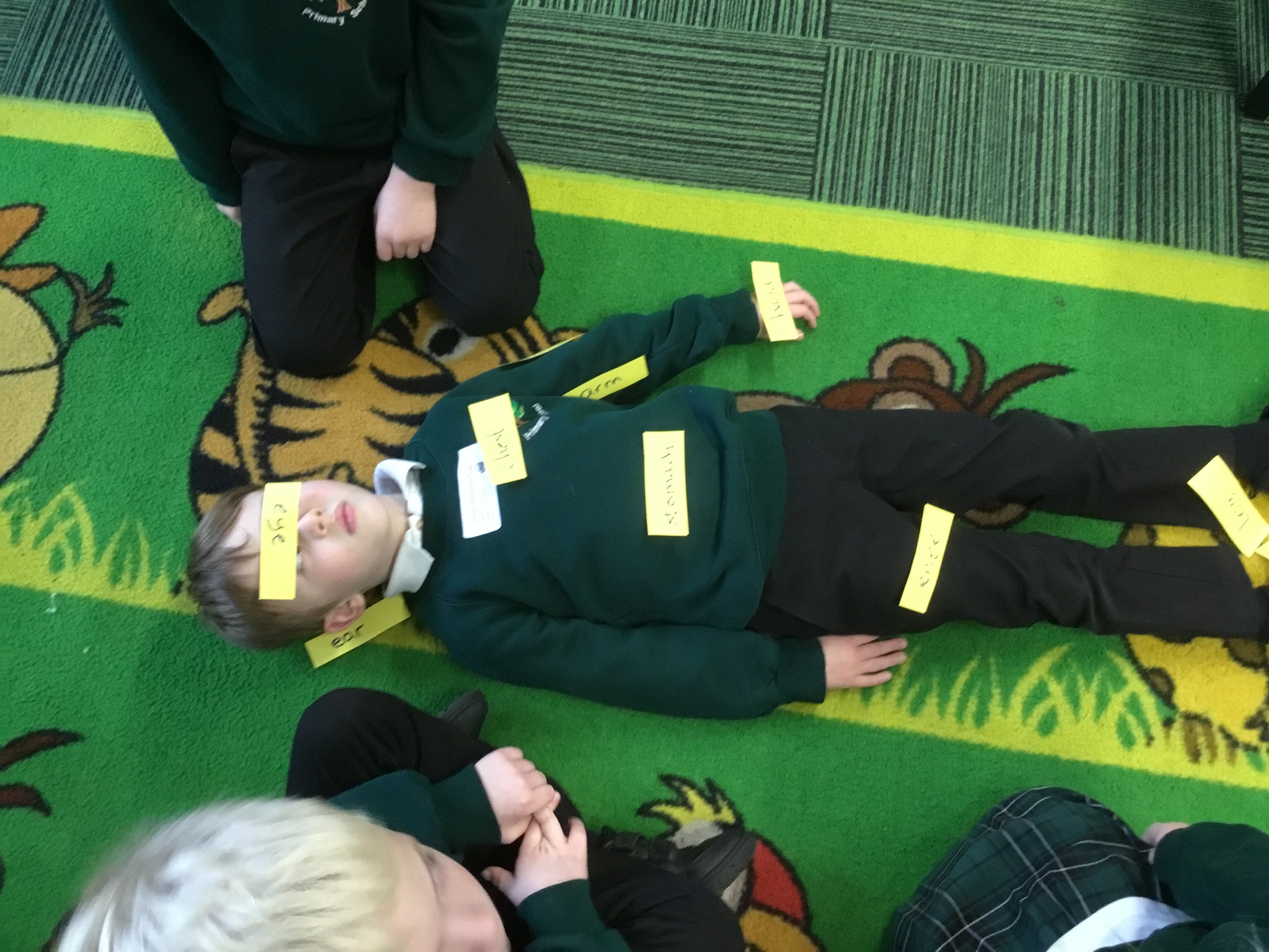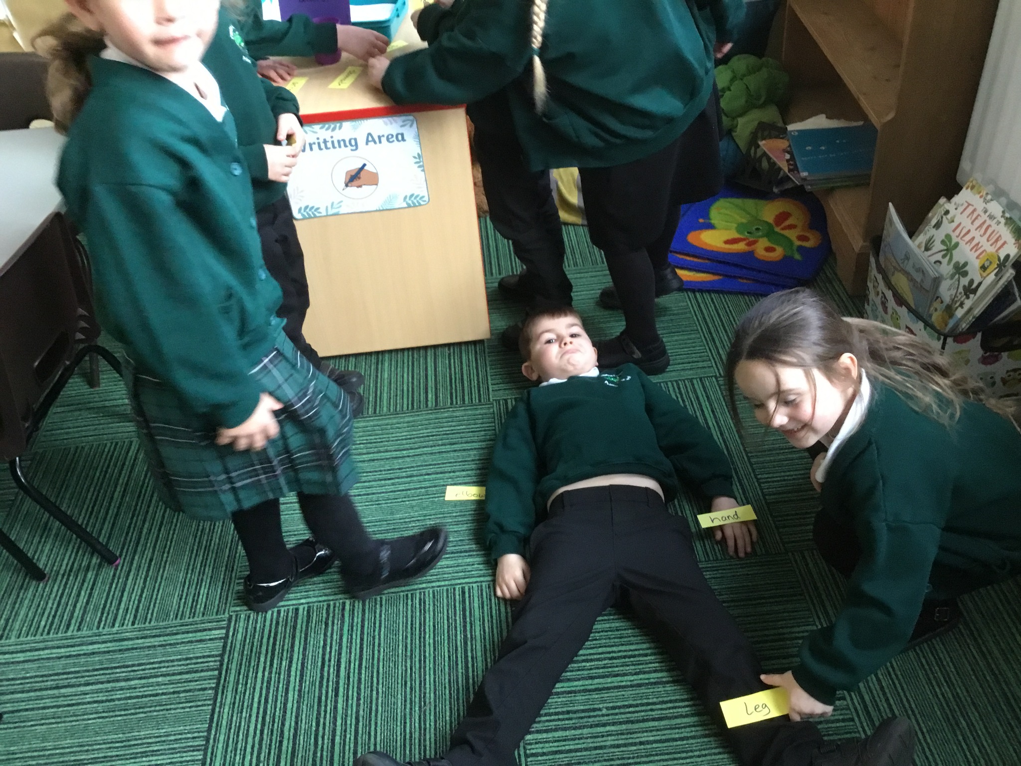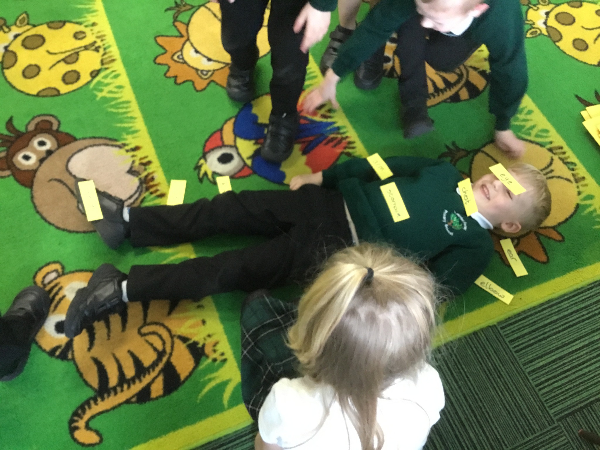 Each group labelled one 'body' and wrote extra labels if they knew the names of other body parts.
