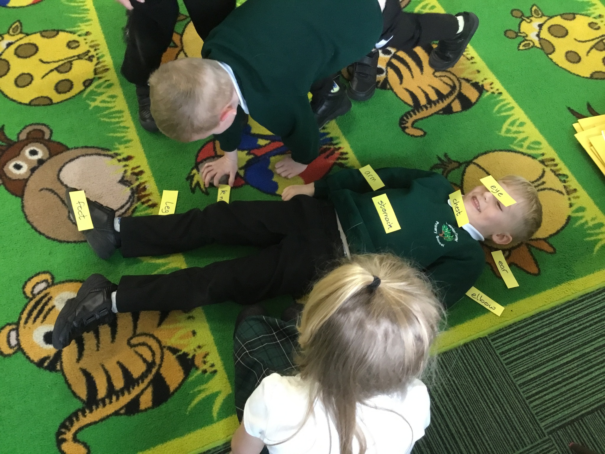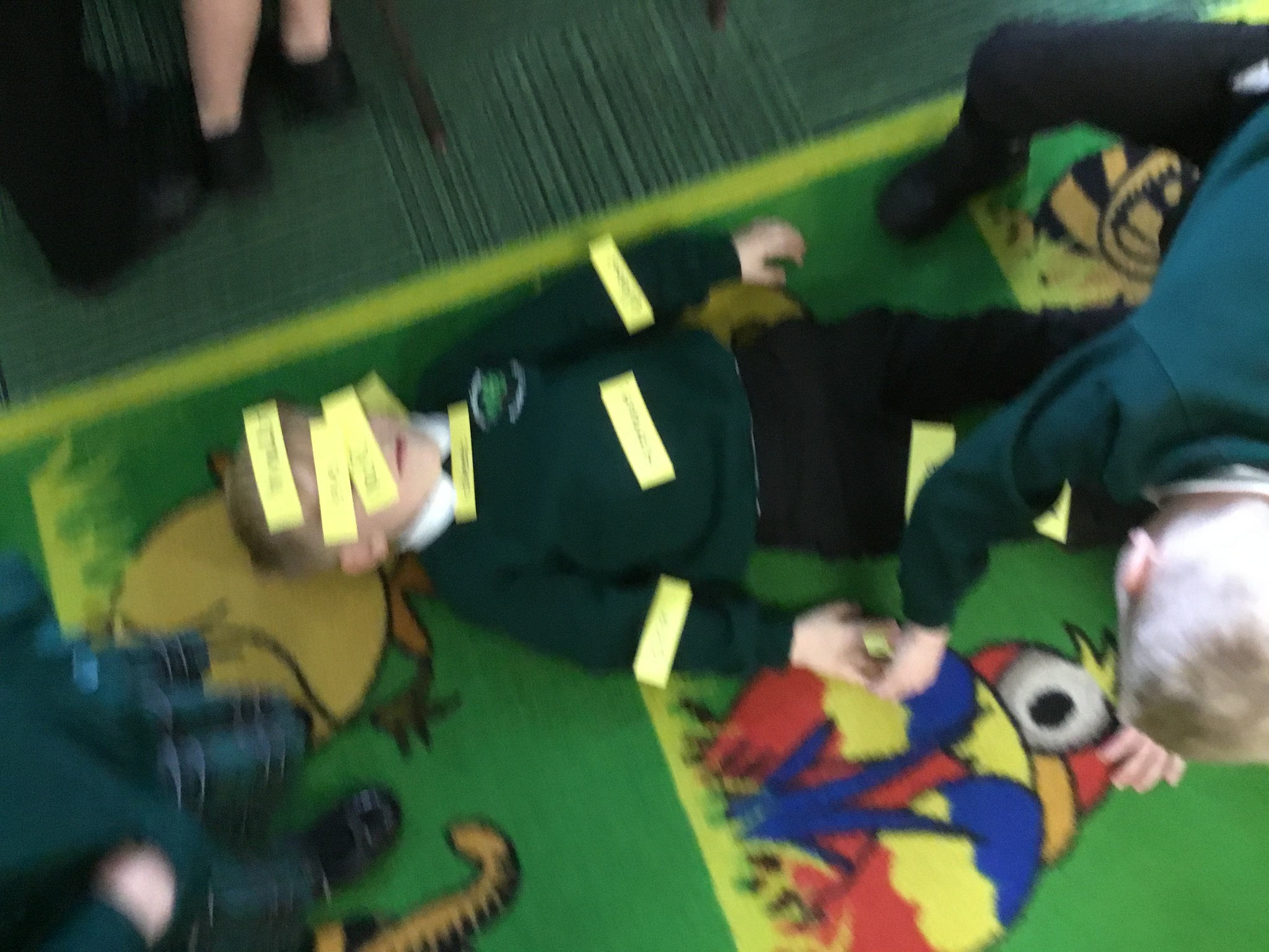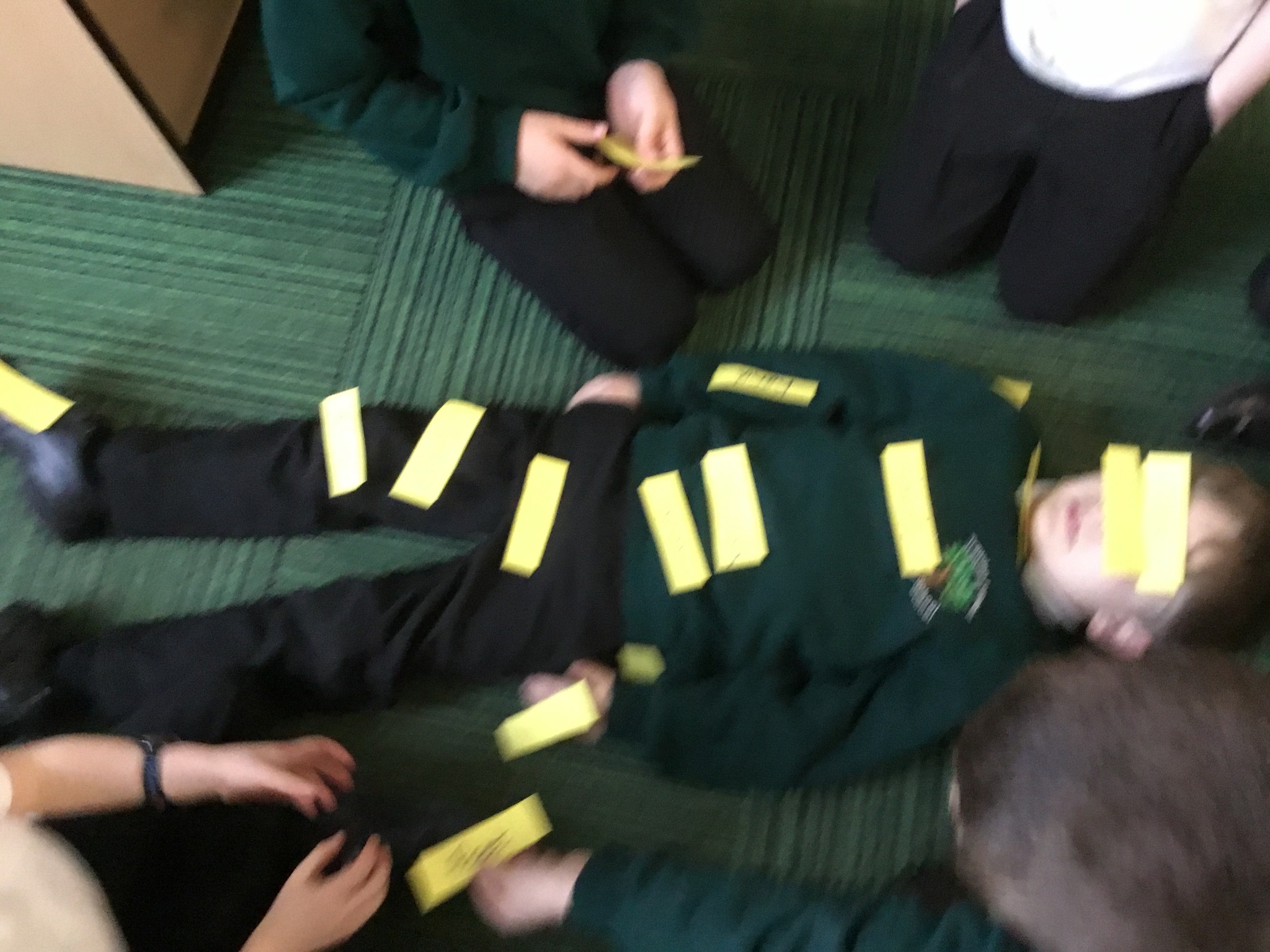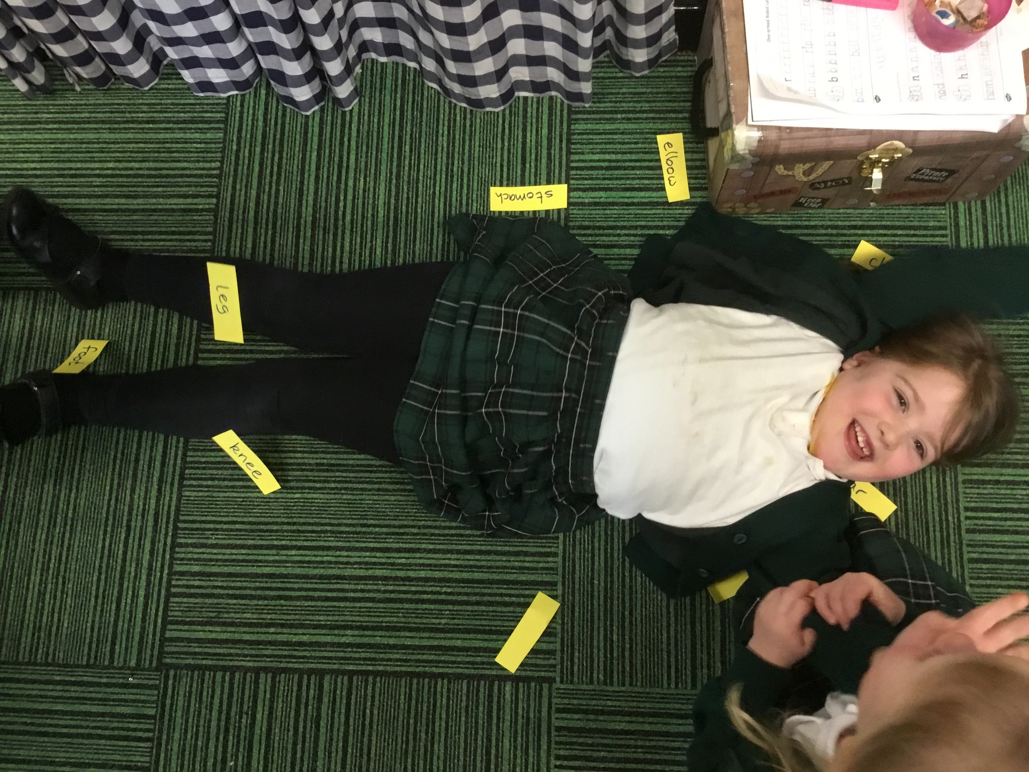 Each group labelled one 'body' and wrote extra labels if they knew the names of other body parts.