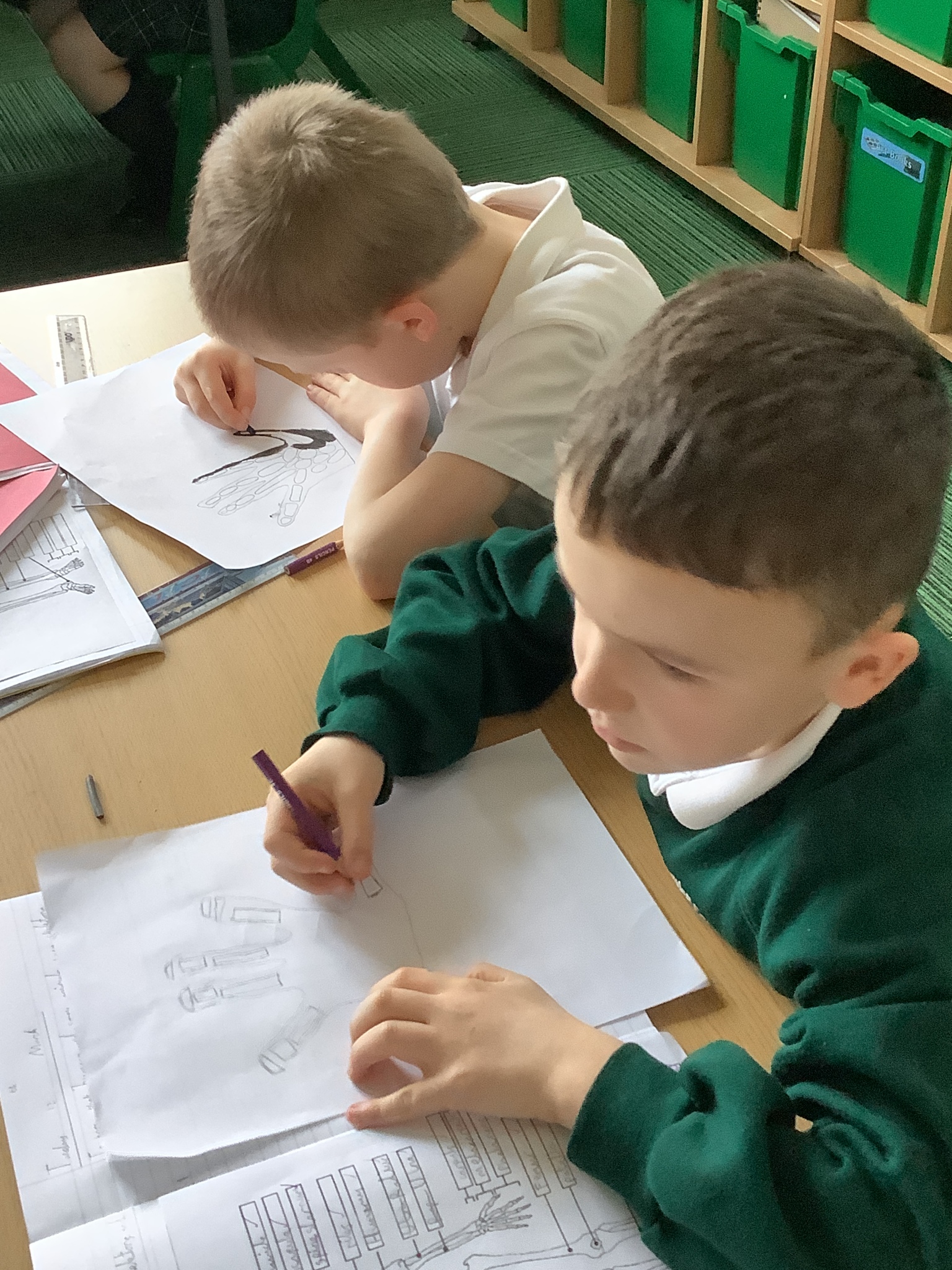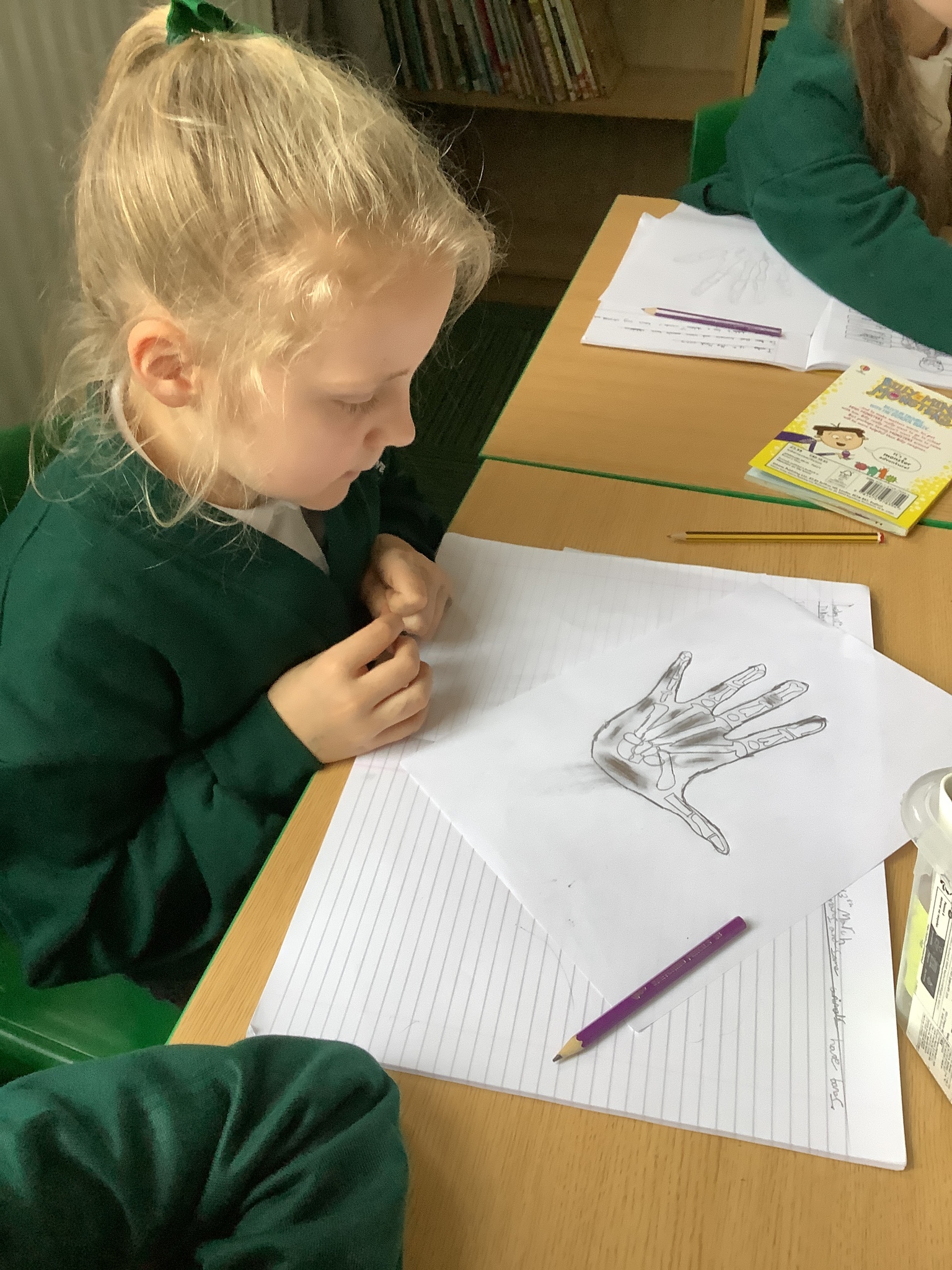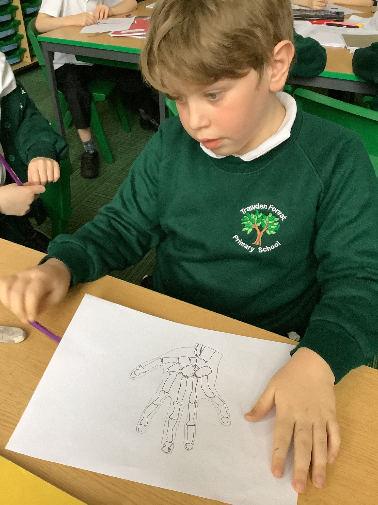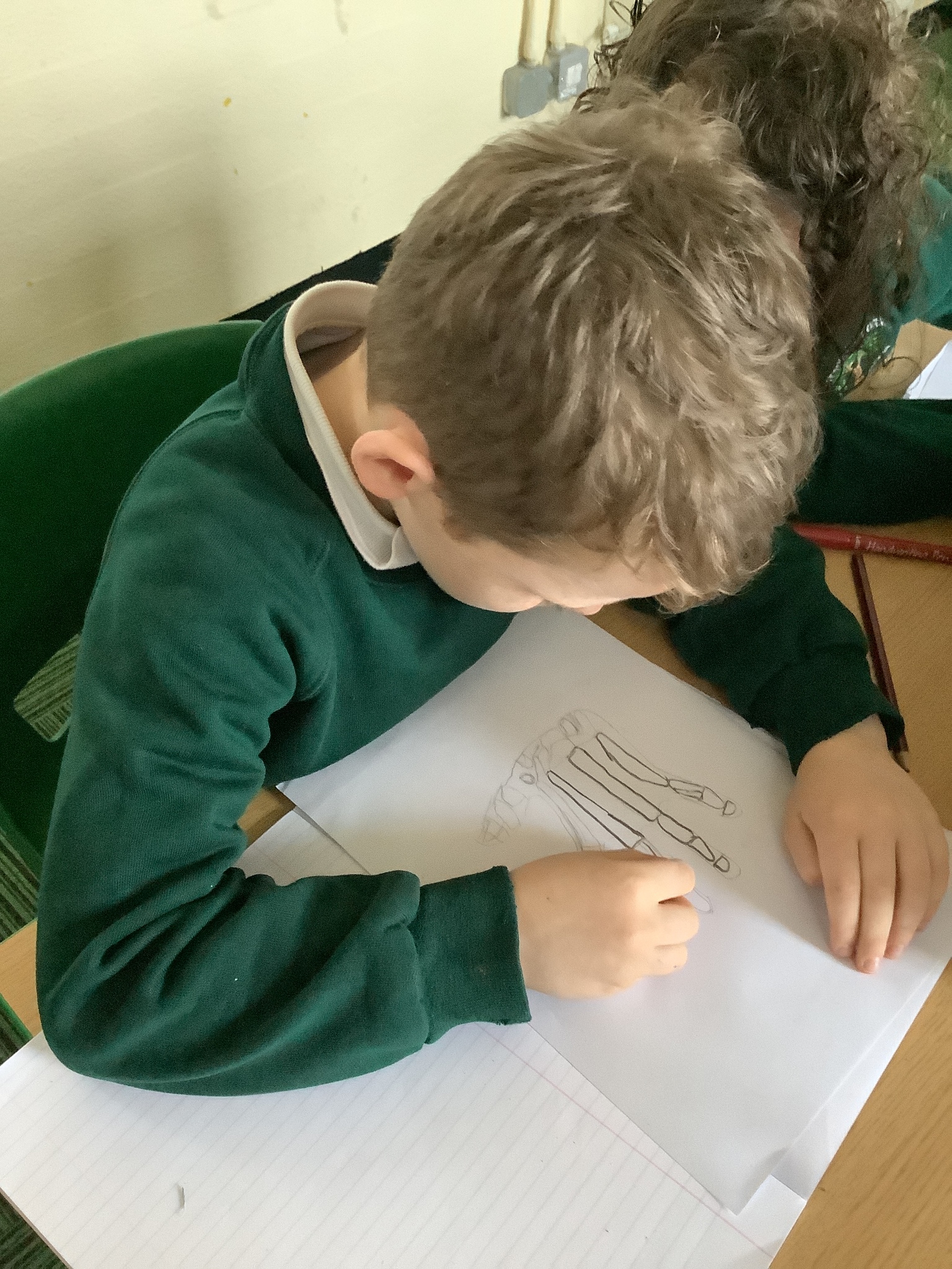 Today, Year 3 continued their research into the skeleton and human bones by looking at our hands. Did you know that there are 27 bones in the human hand? We investigated how our hands move and bend and thought about why they bend. We will be designing and making a bionic hand so watch this space!