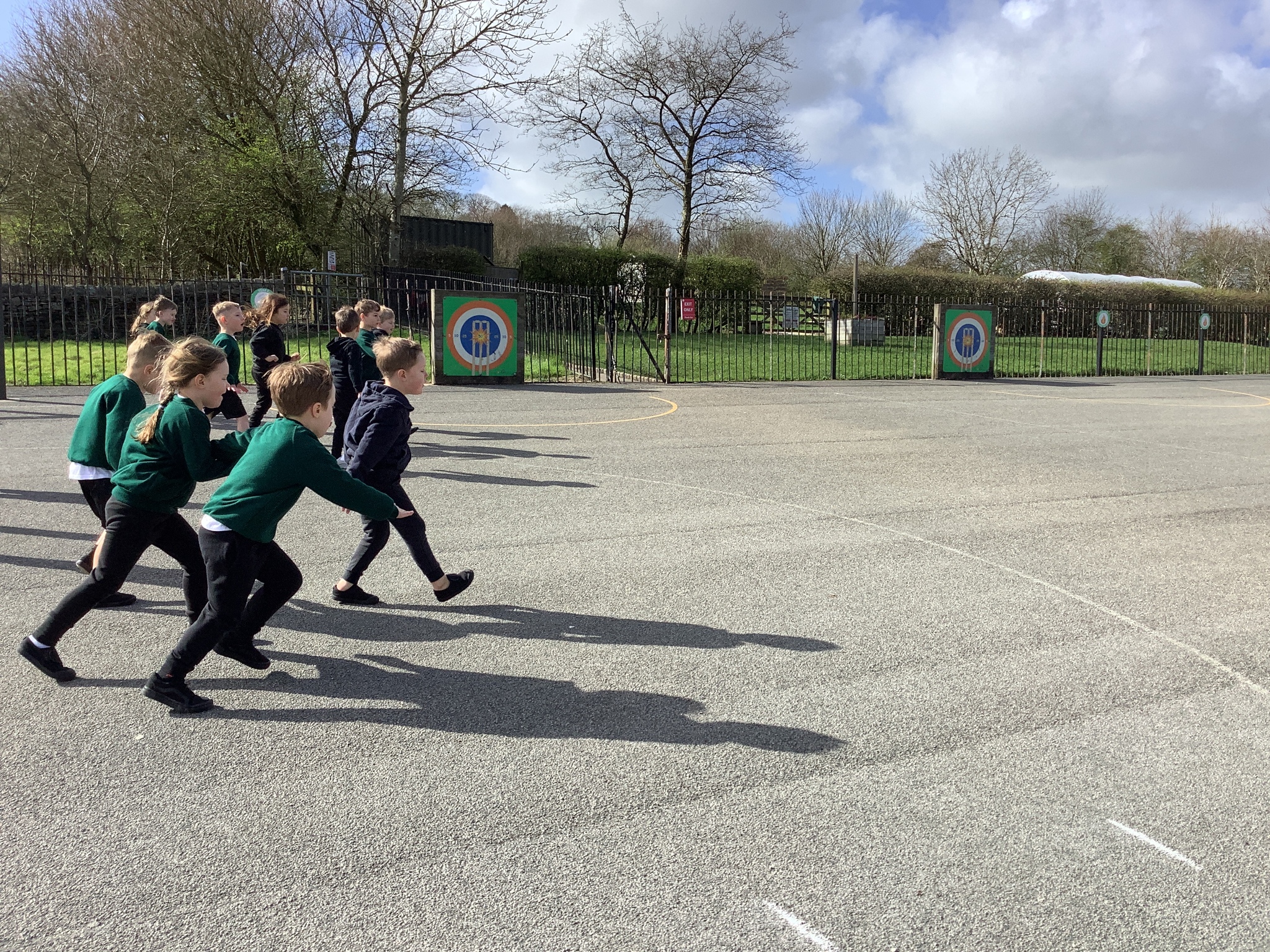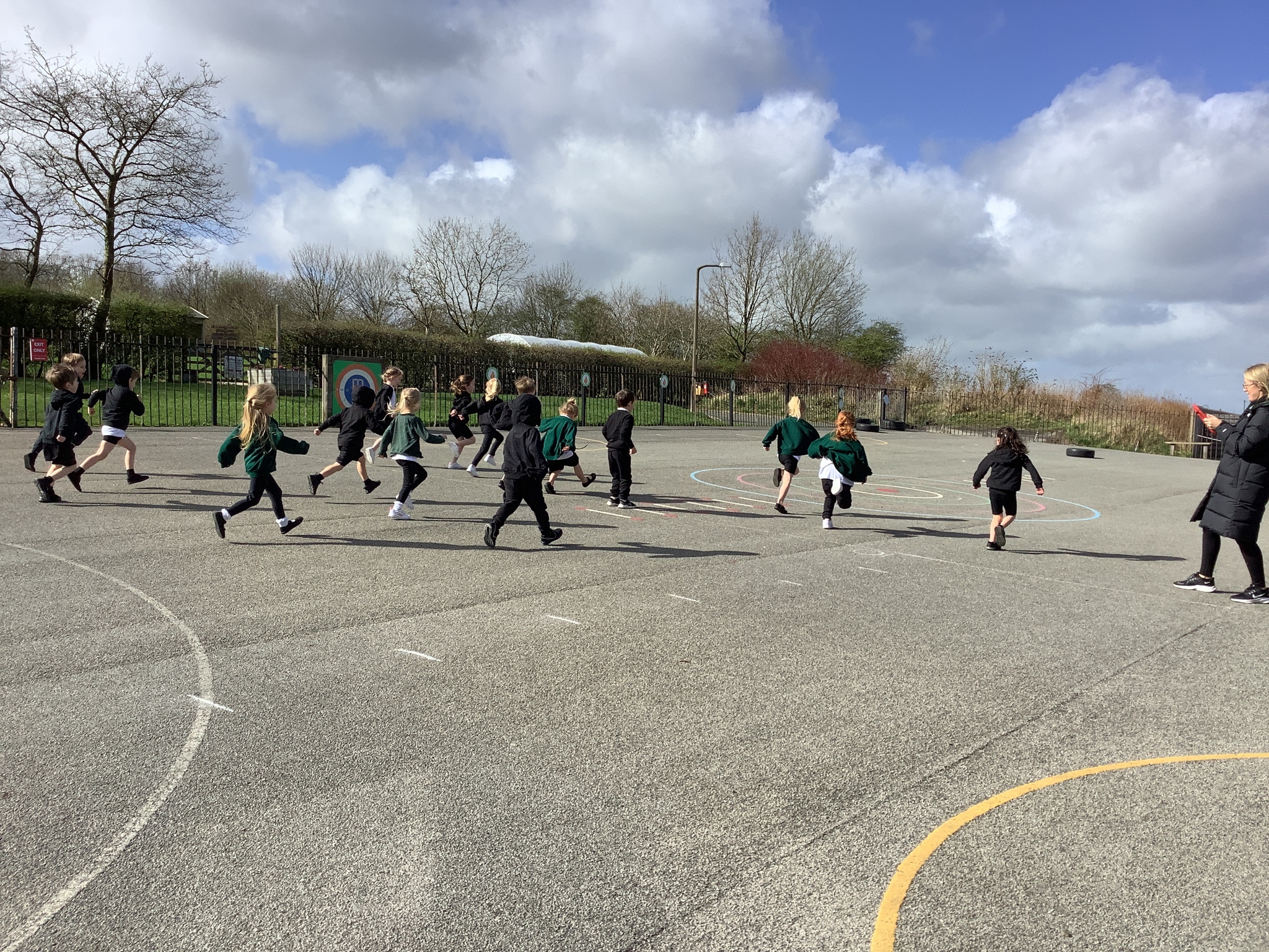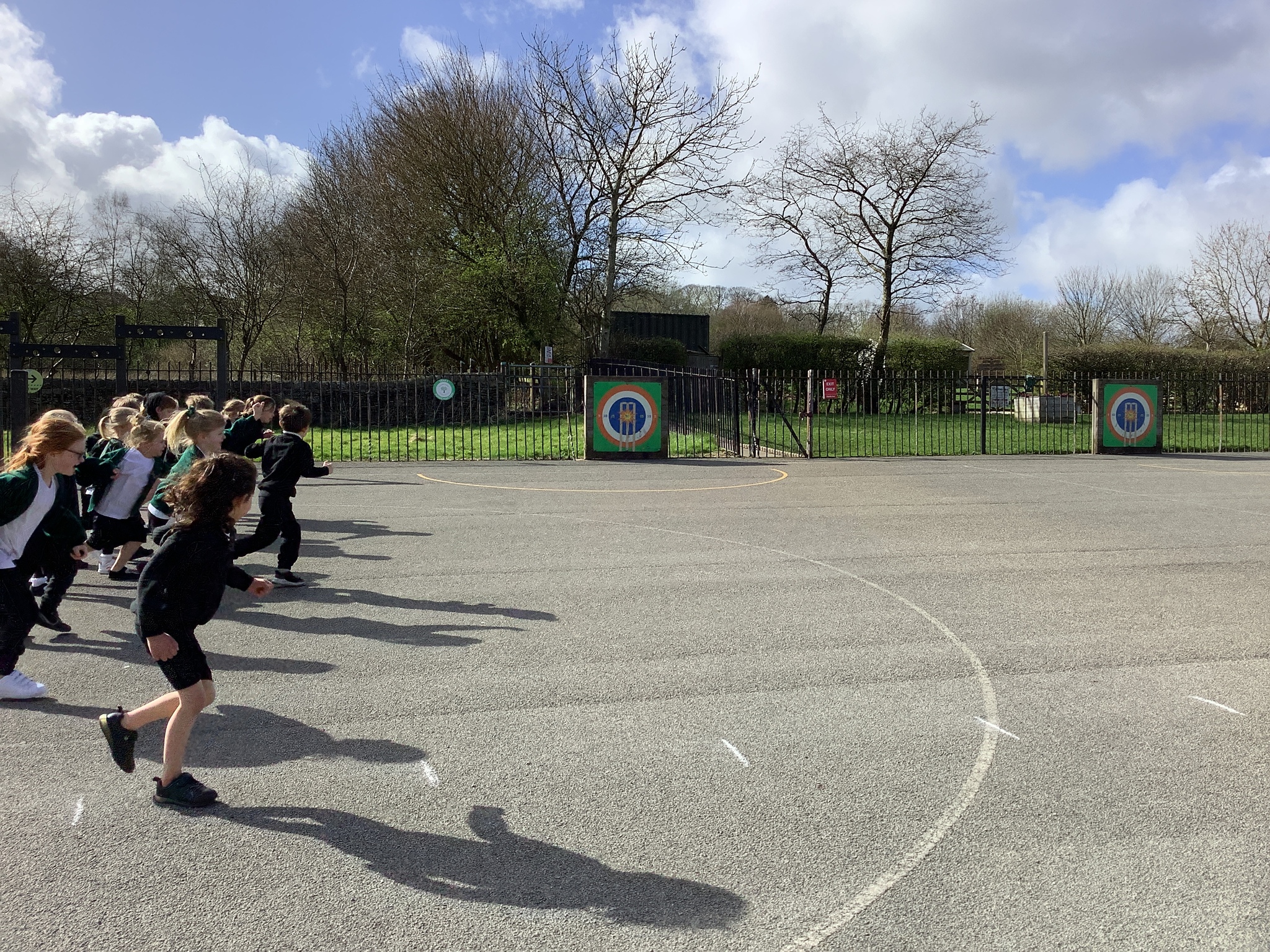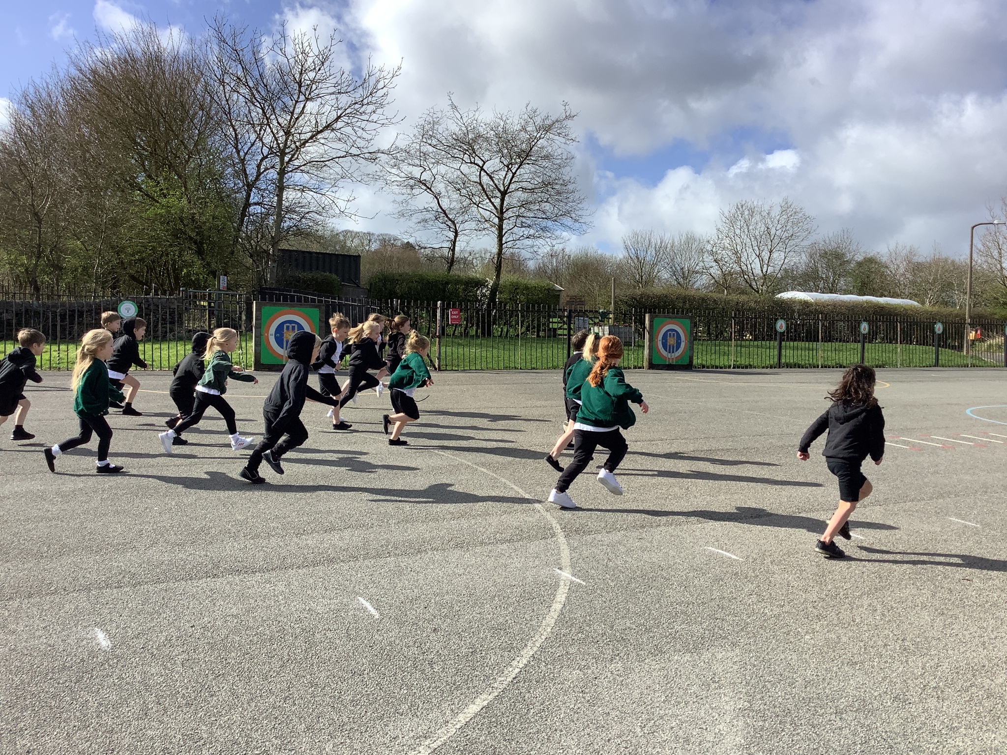 It involved us measuring out 10m and then timing how log it took to run, walk, skip and hop it!