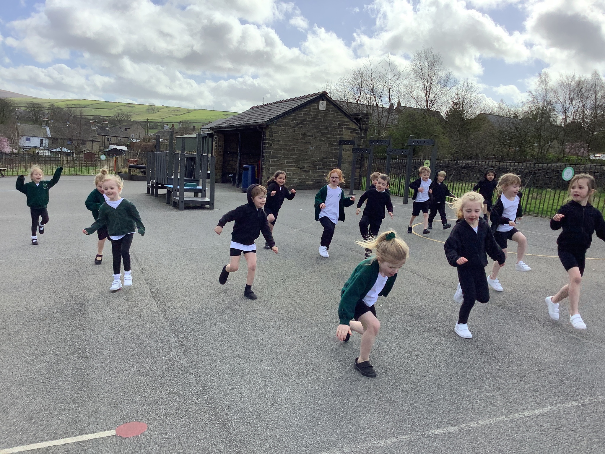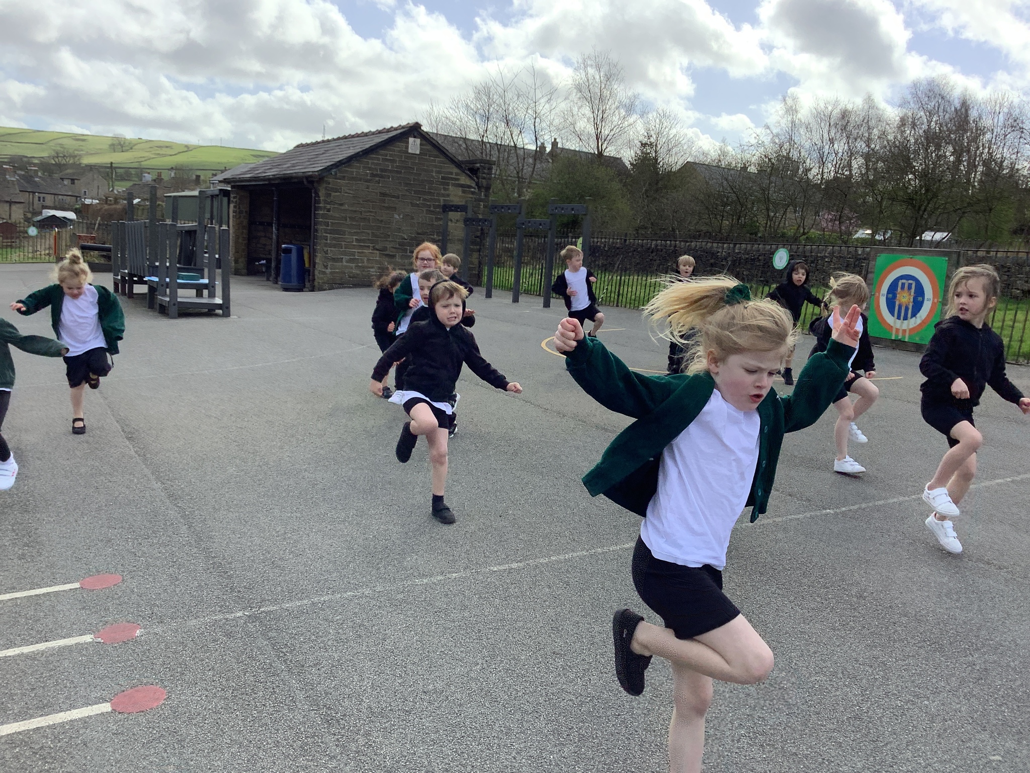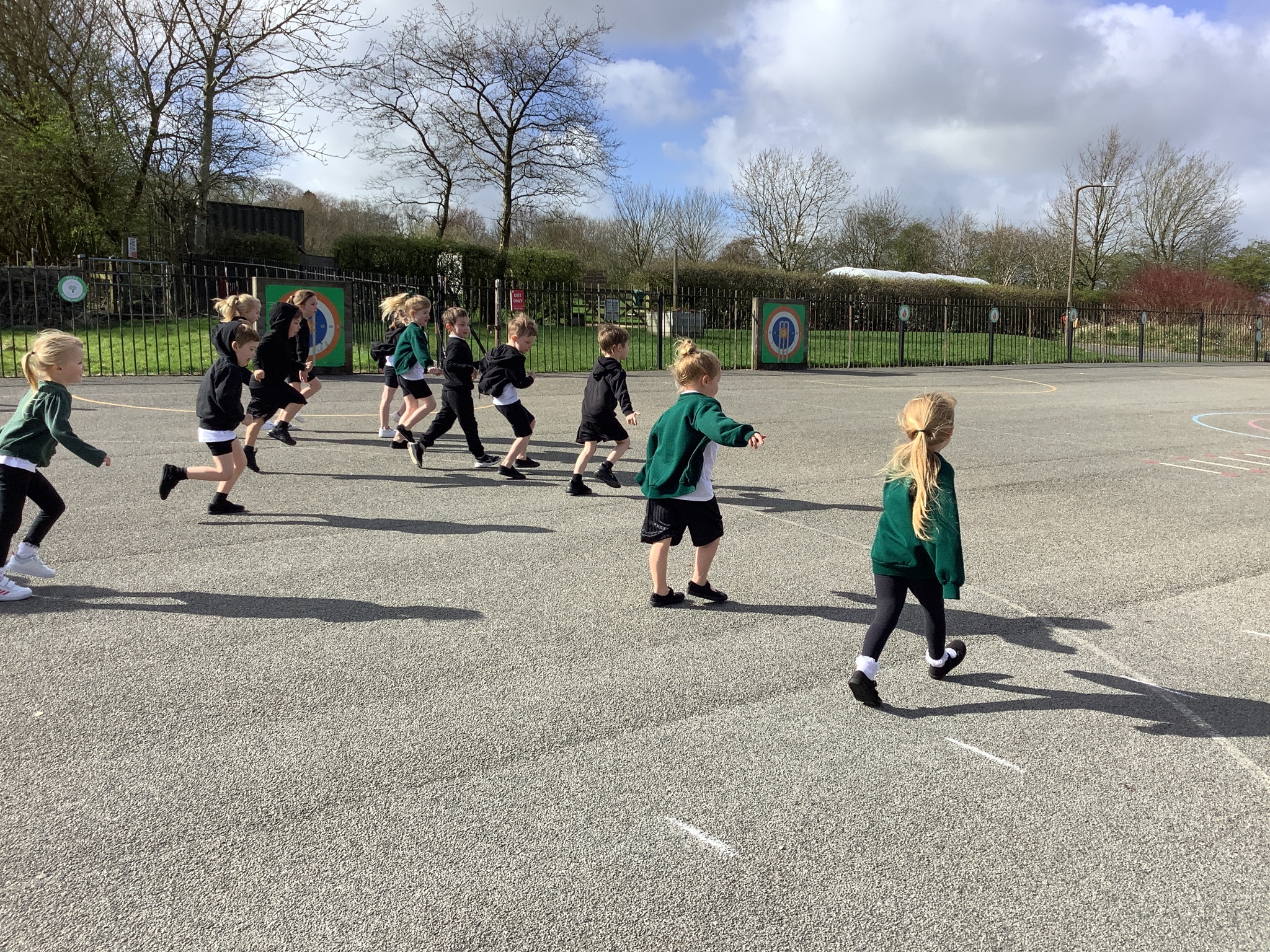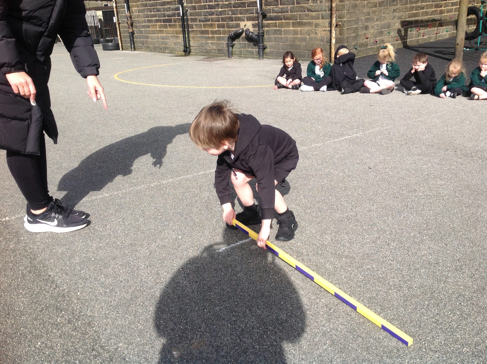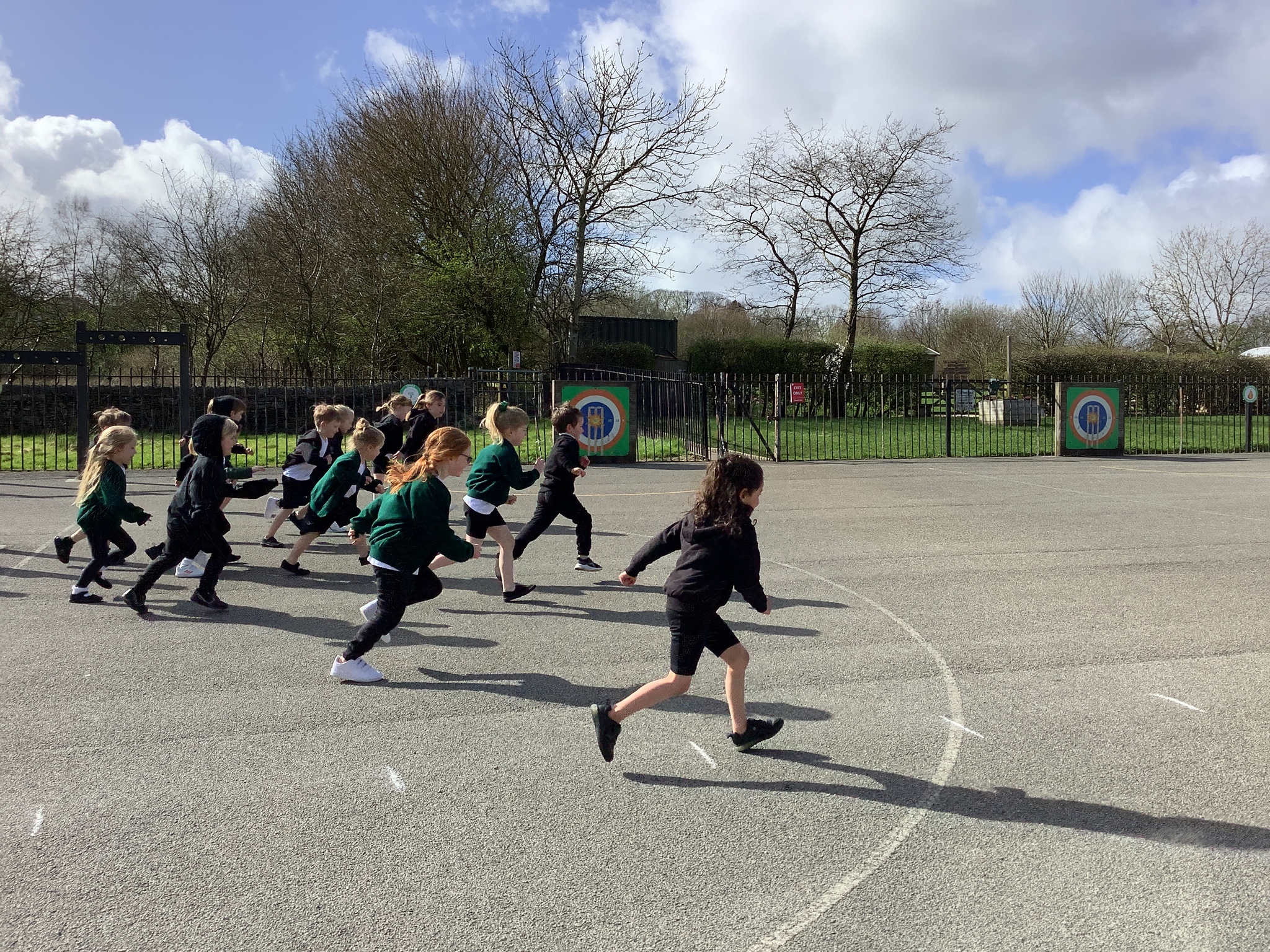 It involved us measuring out 10m and then timing how log it took to run, walk, skip and hop it!
