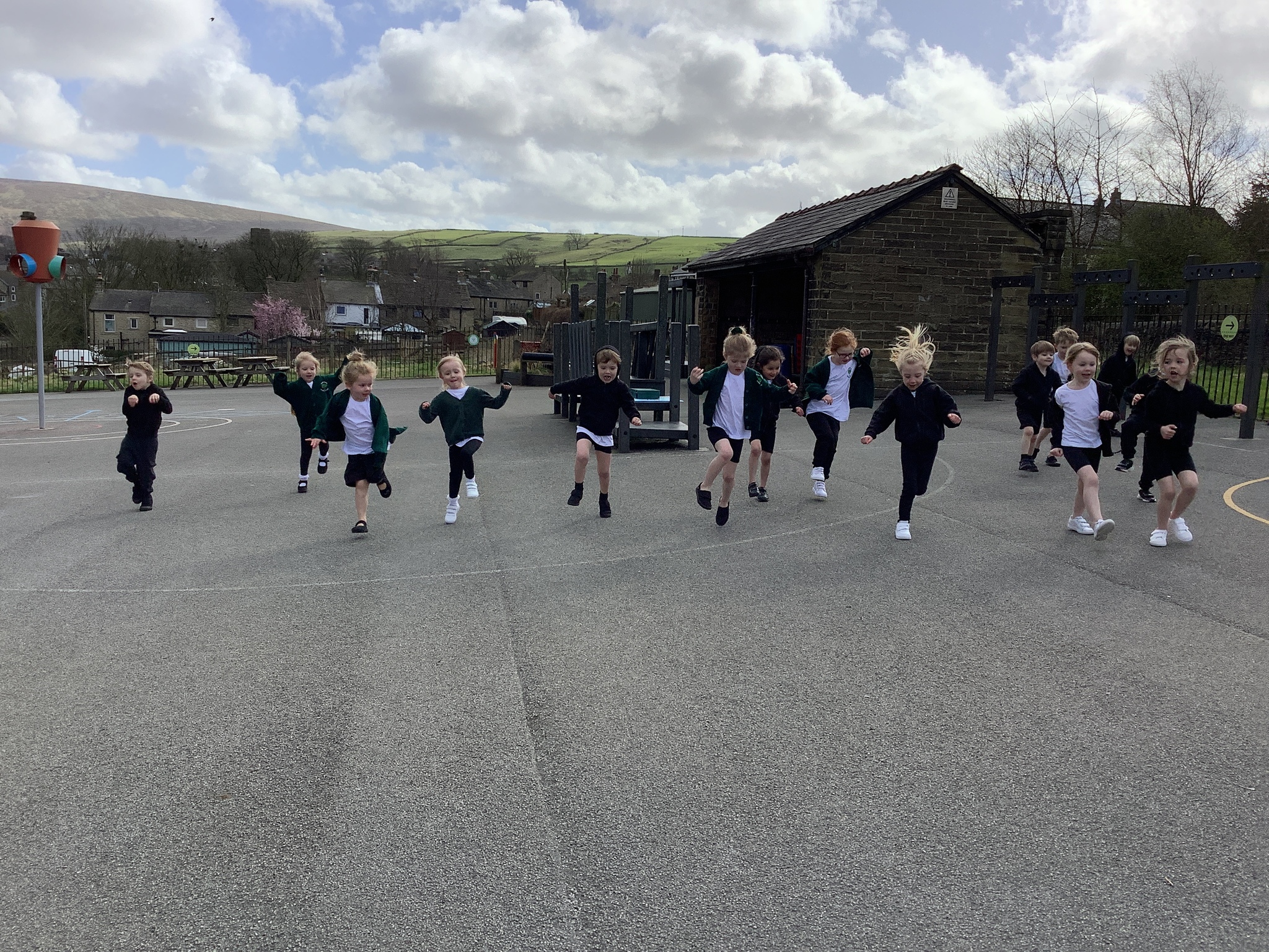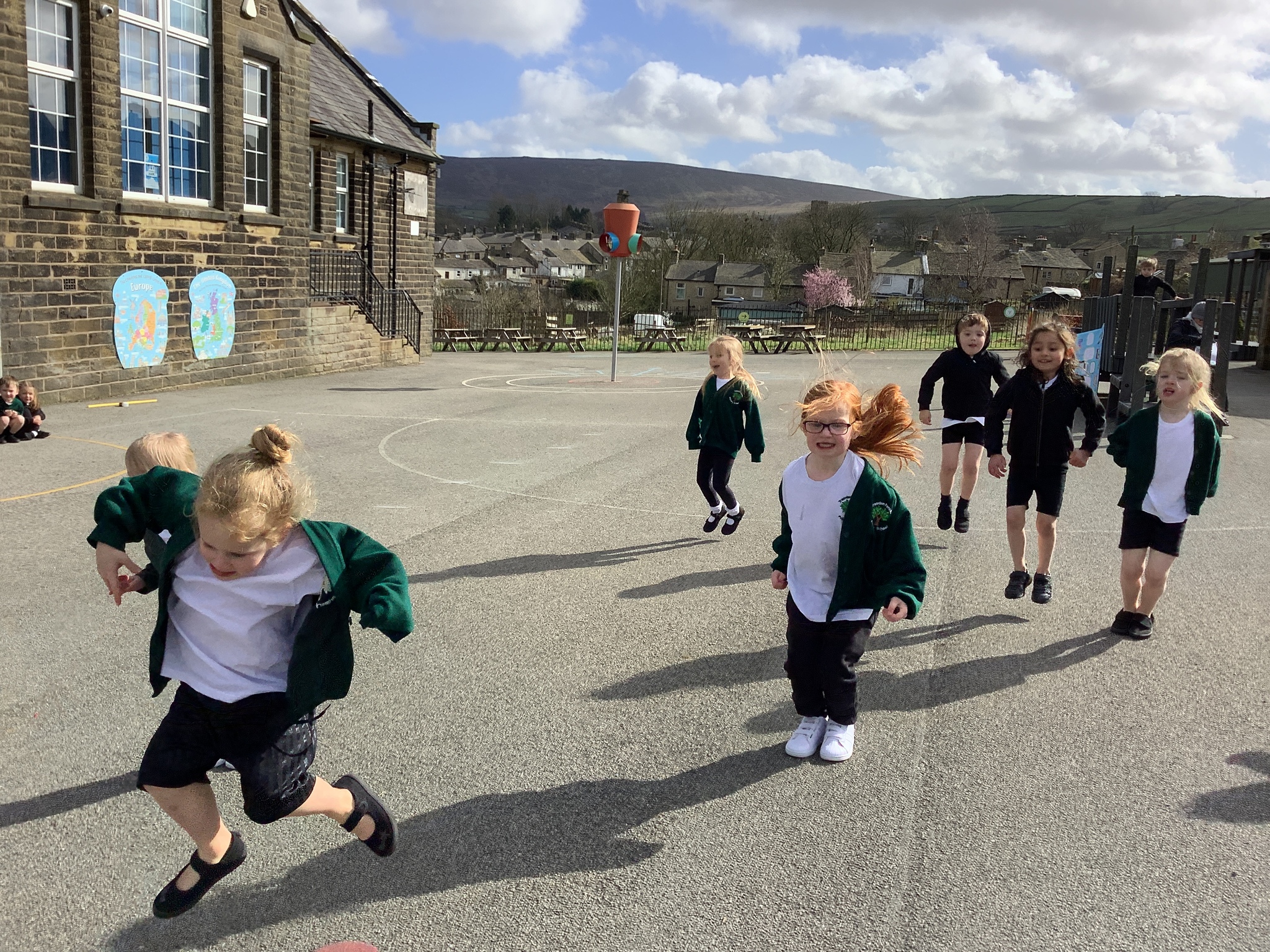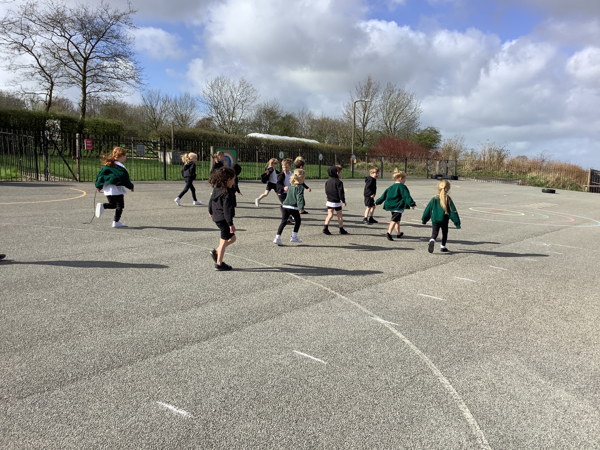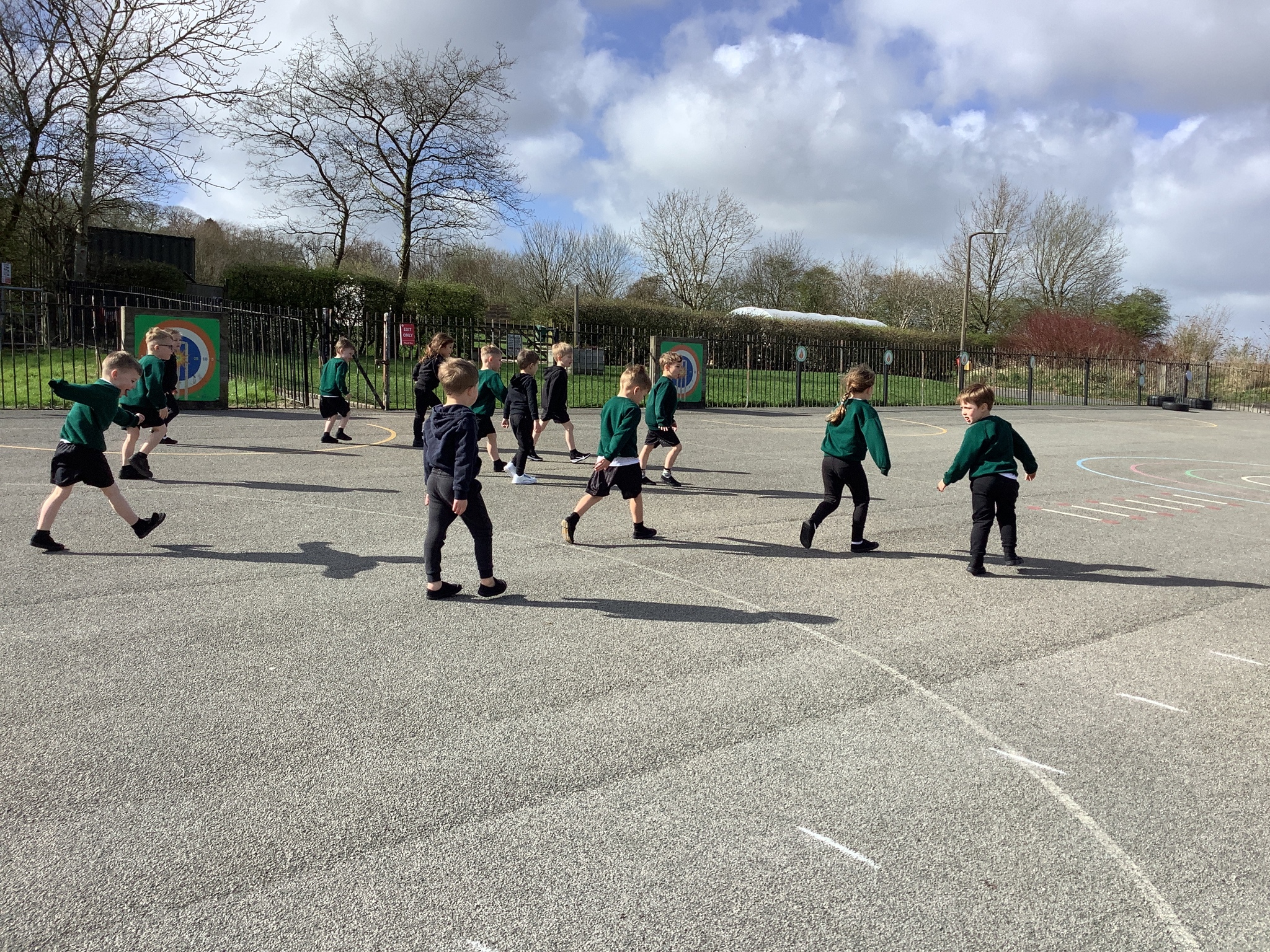 It involved us measuring out 10m and then timing how log it took to run, walk, skip and hop it!