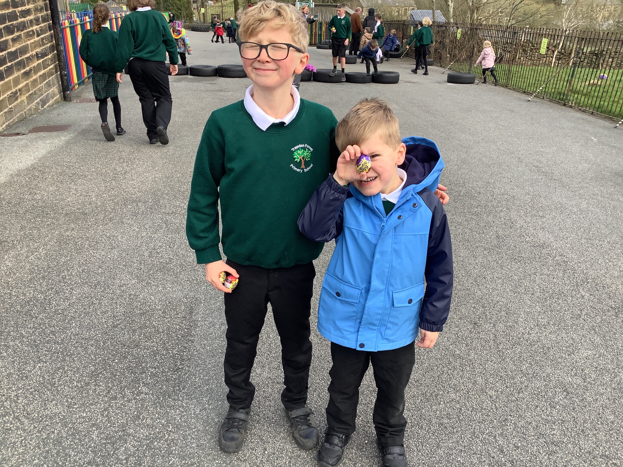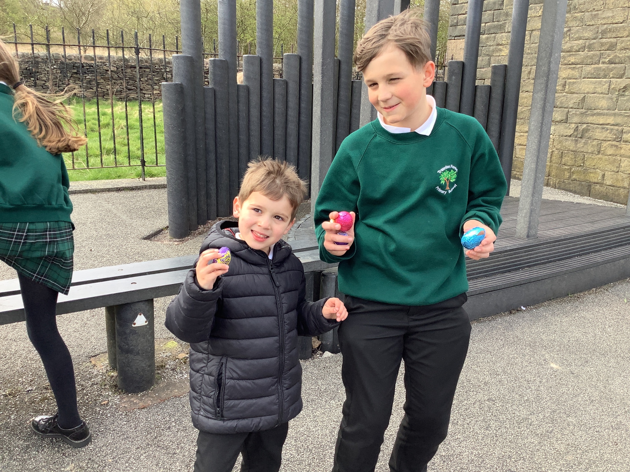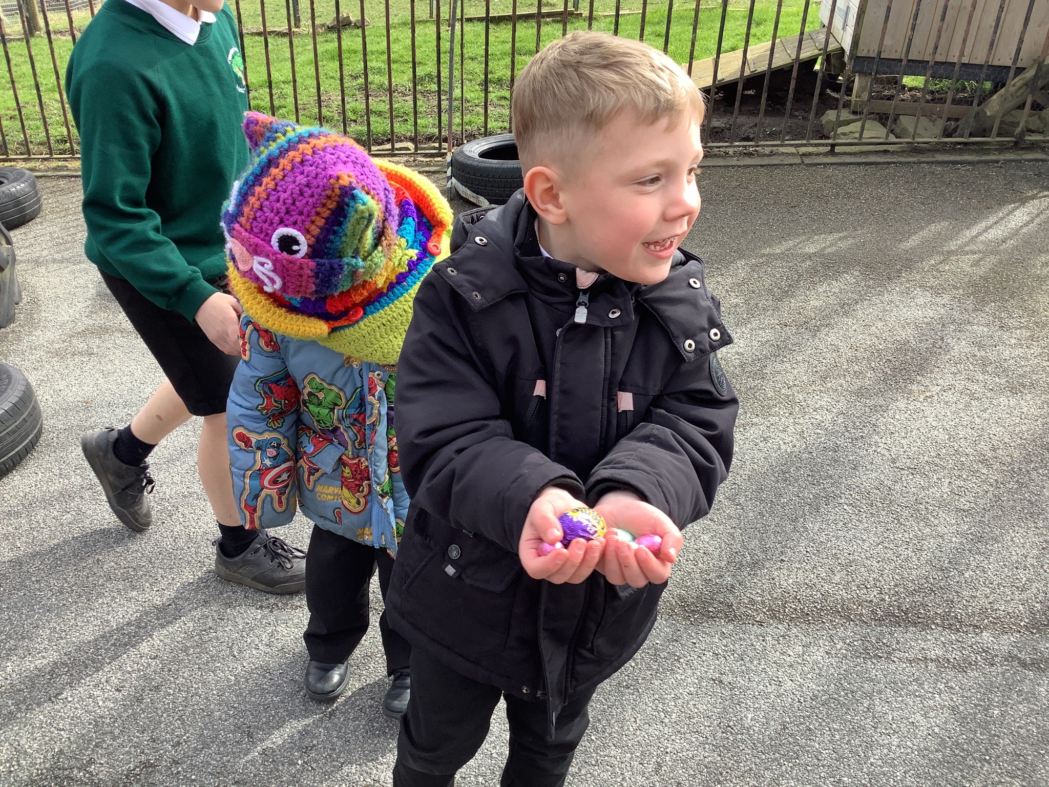 The EYFS children enjoyed their bear hunt so much this morning that we decided to go on an egg hunt with our buddies - after we read the book 'We're going on an egg hunt!' of course!