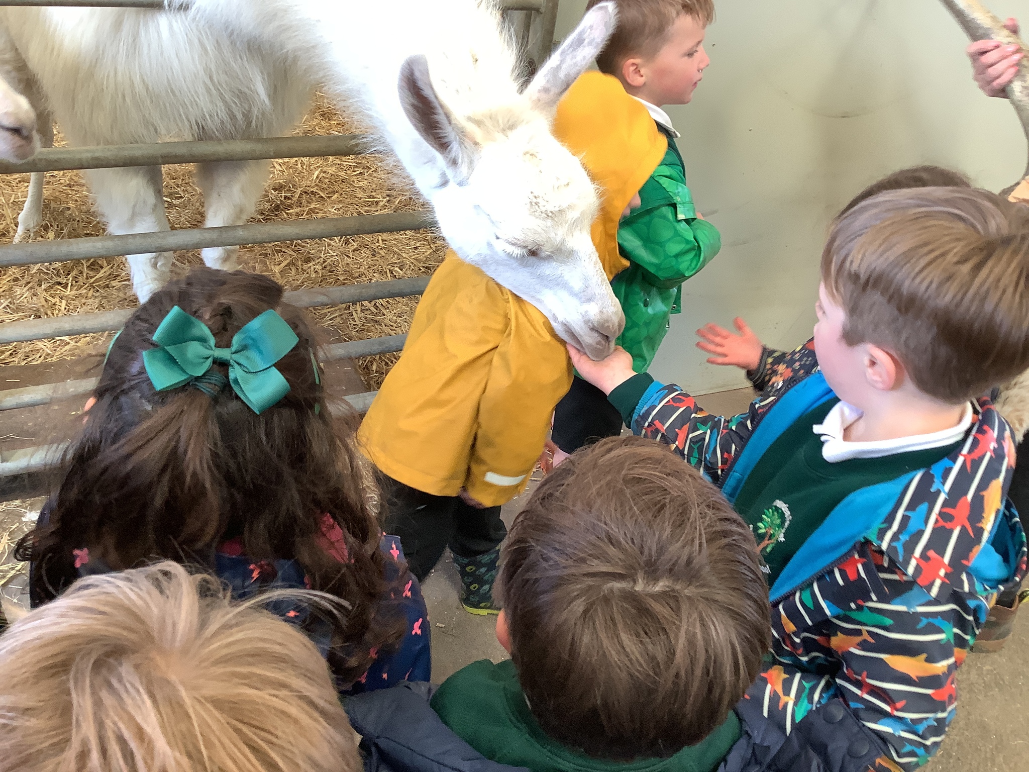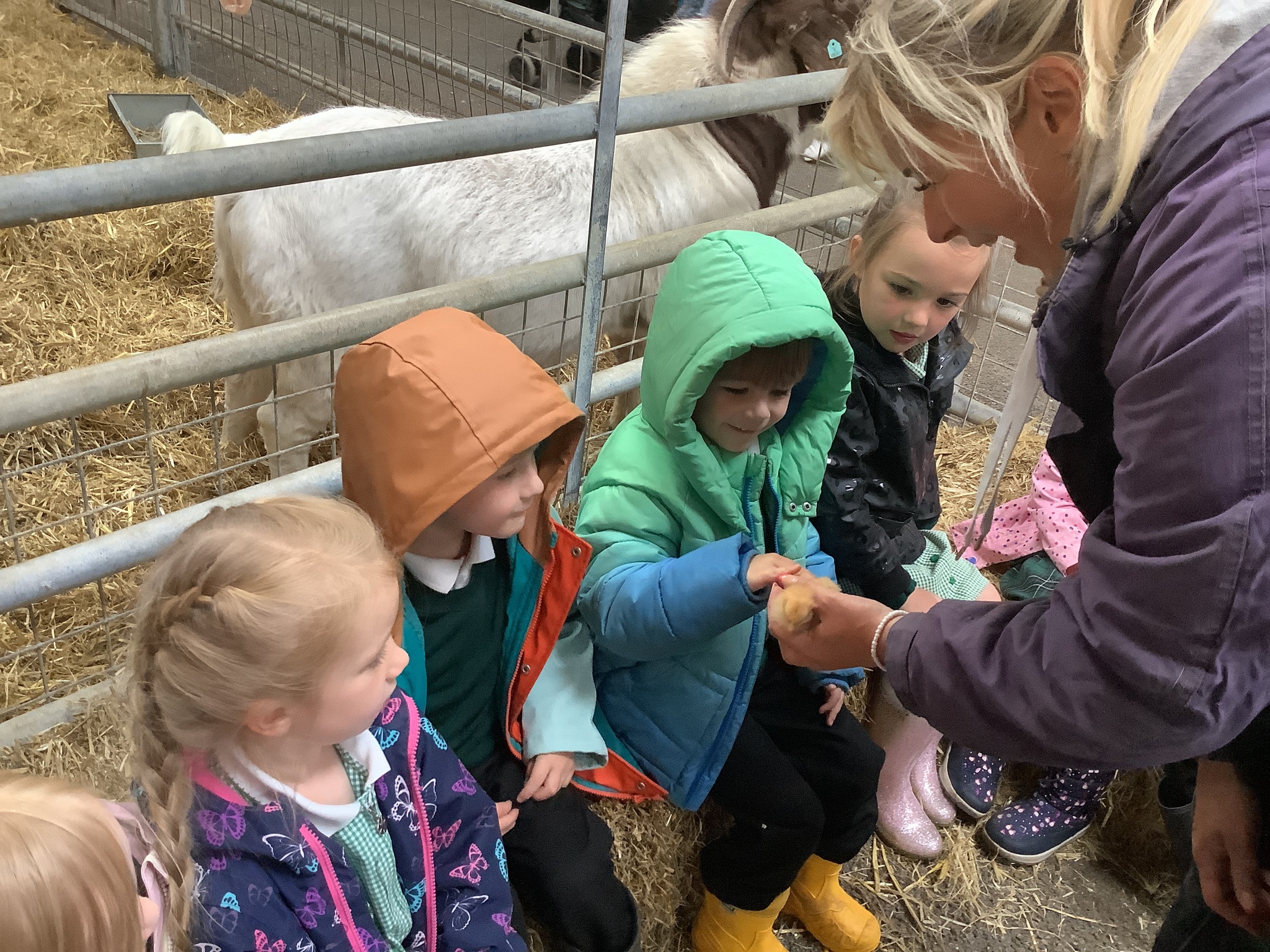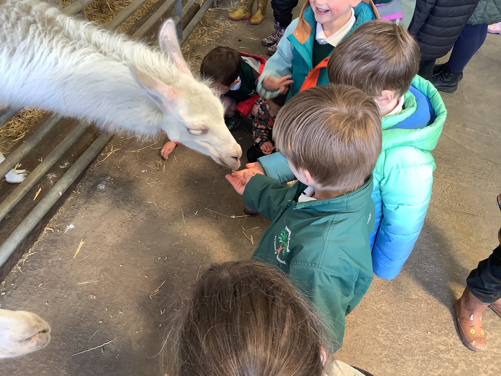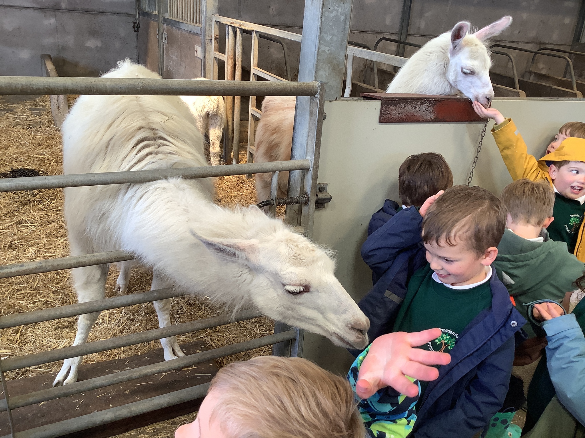 What a day we have had at the farm! We started our day with an energetic slot in the soft play area and then held chicks and Guinea pigs, jumped on the bouncing pillows, fed calves and lambs, lamas, goats and many more! After that had a ride in the caterpillar and then played in the park! WE even managed to squeeze in a sneaky ice-cream! The children have been so excited all day and so well behaved. We have been extremely proud of them all and have had a lovely day. We’ll all sleep well tonight!