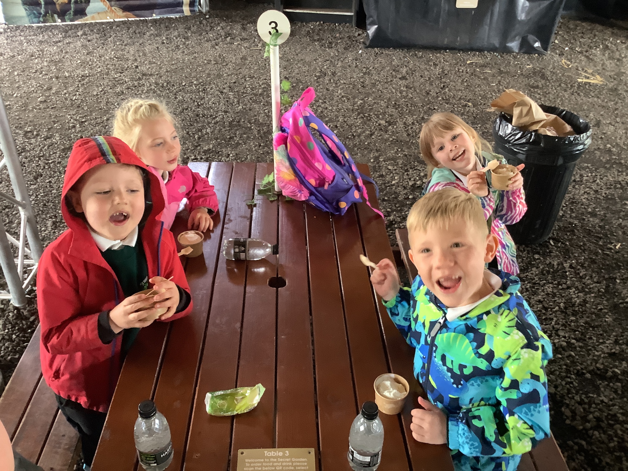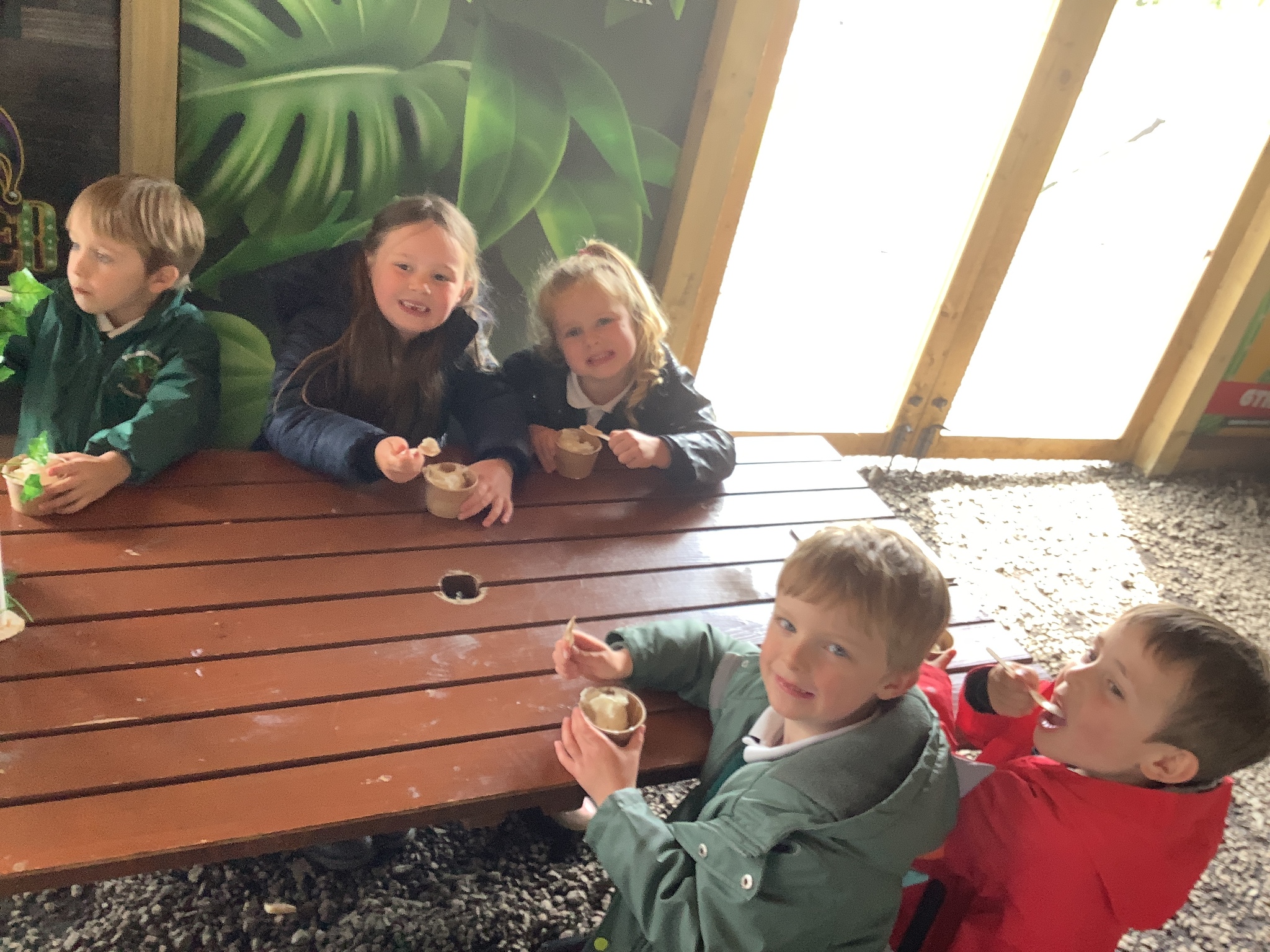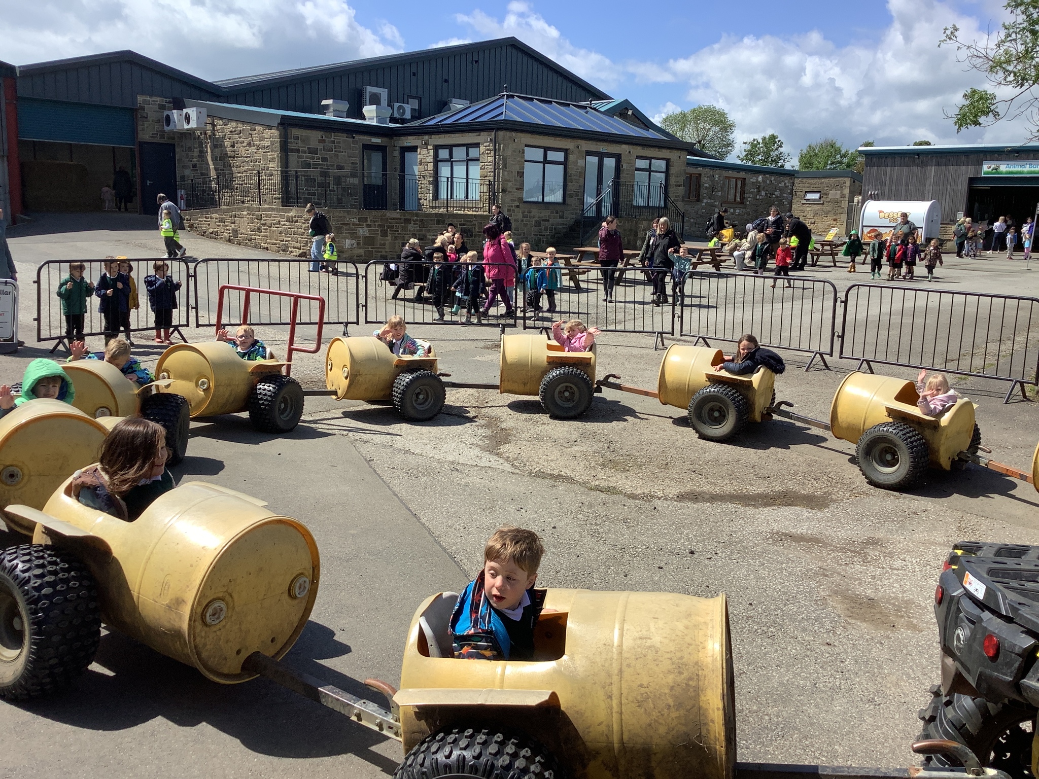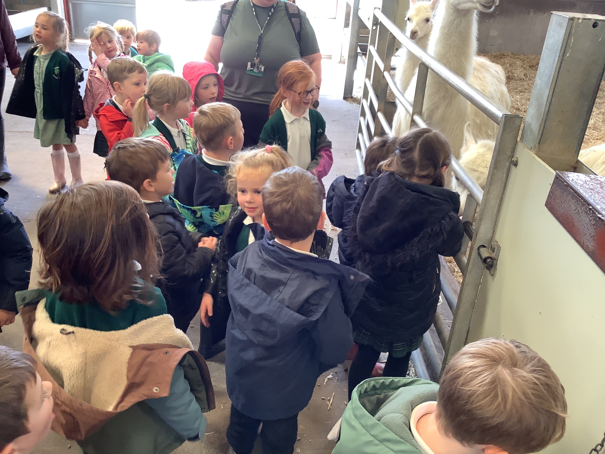 What a day we have had at the farm! We started our day with an energetic slot in the soft play area and then held chicks and Guinea pigs, jumped on the bouncing pillows, fed calves and lambs, lamas, goats and many more! After that had a ride in the caterpillar and then played in the park! WE even managed to squeeze in a sneaky ice-cream! The children have been so excited all day and so well behaved. We have been extremely proud of them all and have had a lovely day. We’ll all sleep well tonight!