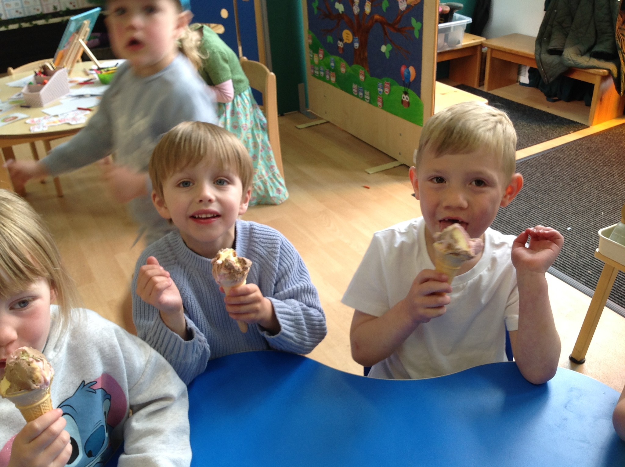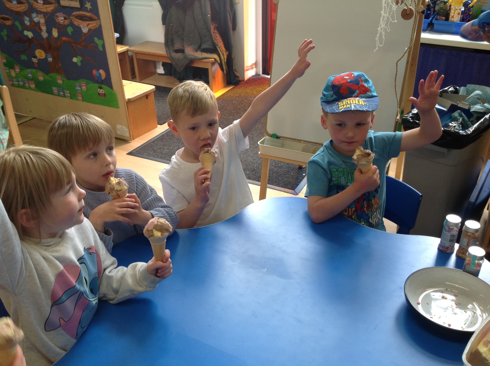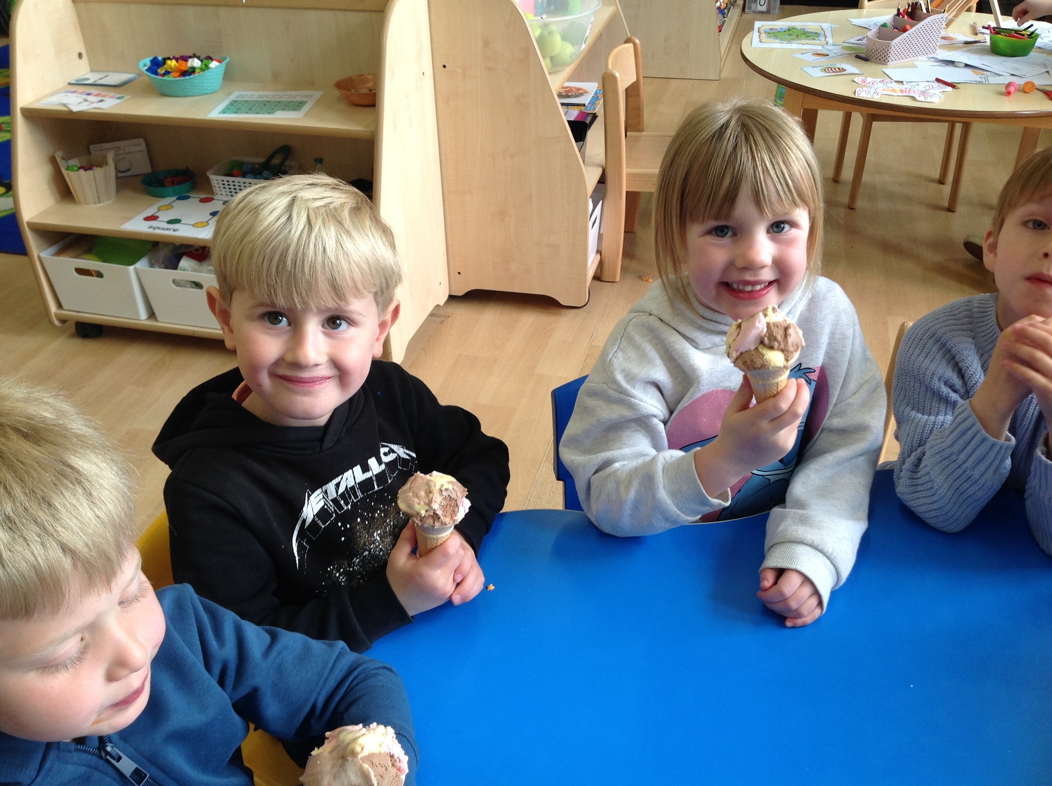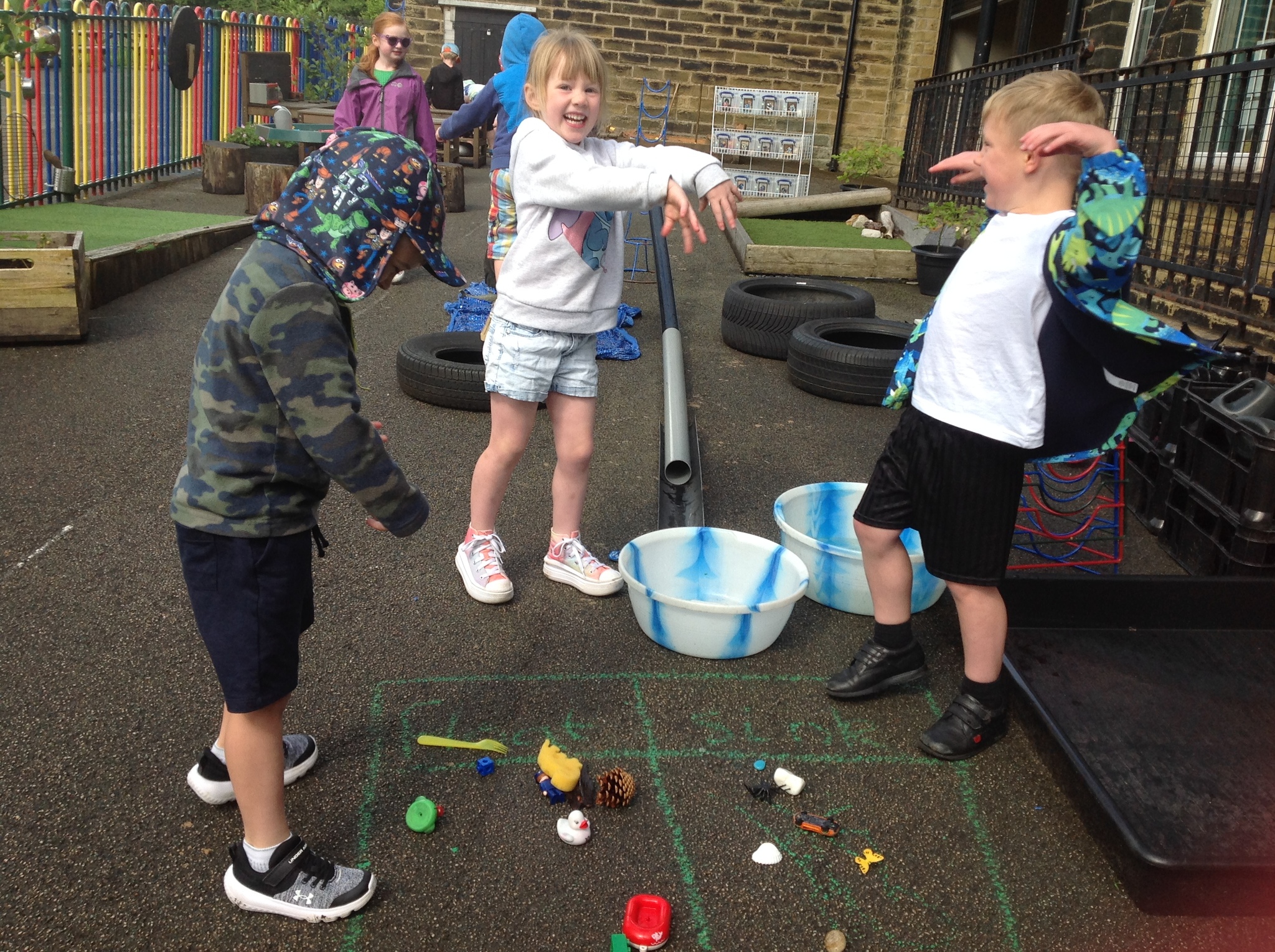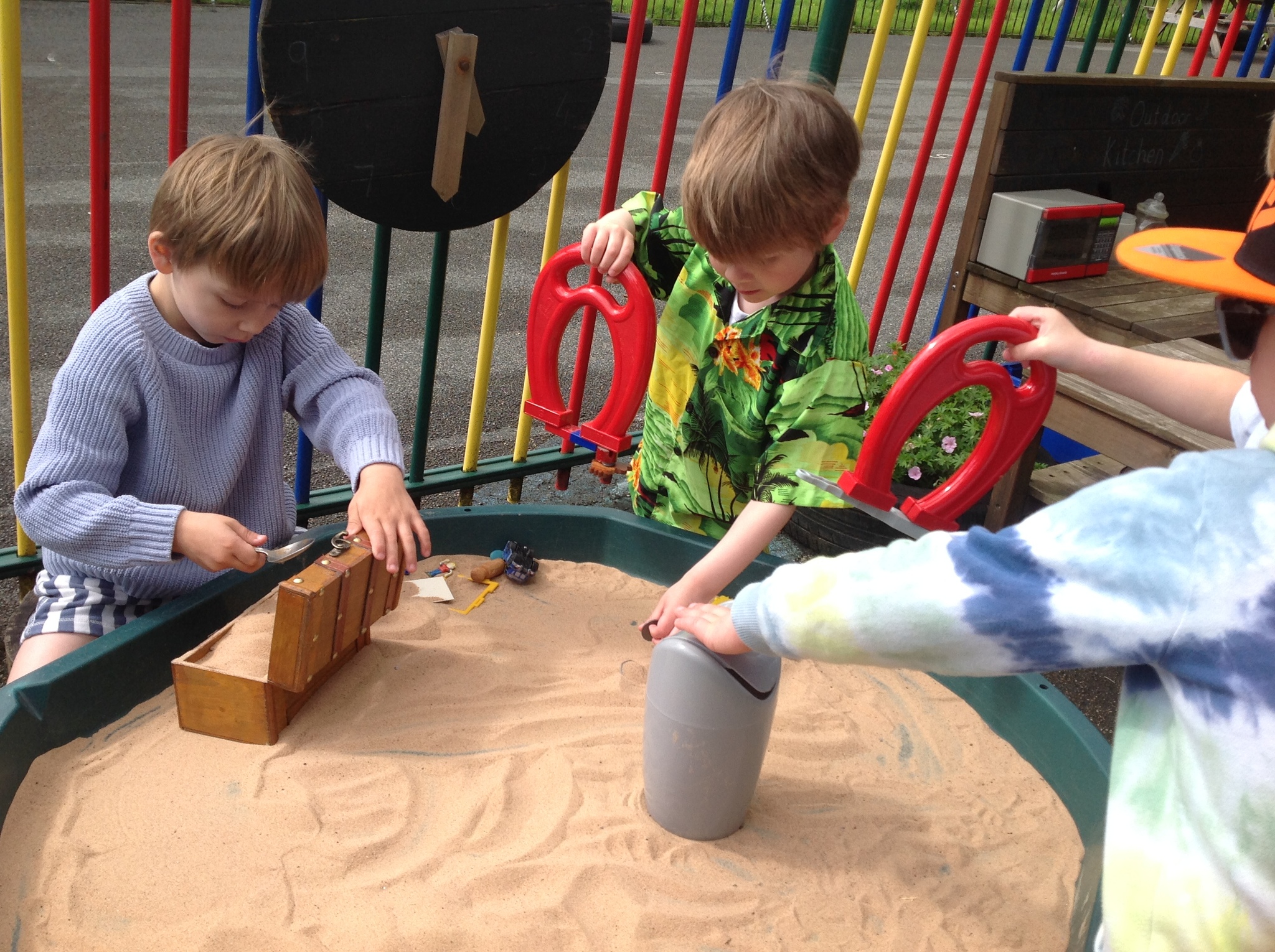 It may not have been sunny but we have had a brilliant beach day! The children have enjoyed all kinds of activities such as exploring floating and sinking, finding magnetic treasure, walking the plank, a treasure hunt, fishing and even building a huge pirate ship all by themselves! We managed to squeeze a quick ice-cream in too! Well done everyone.