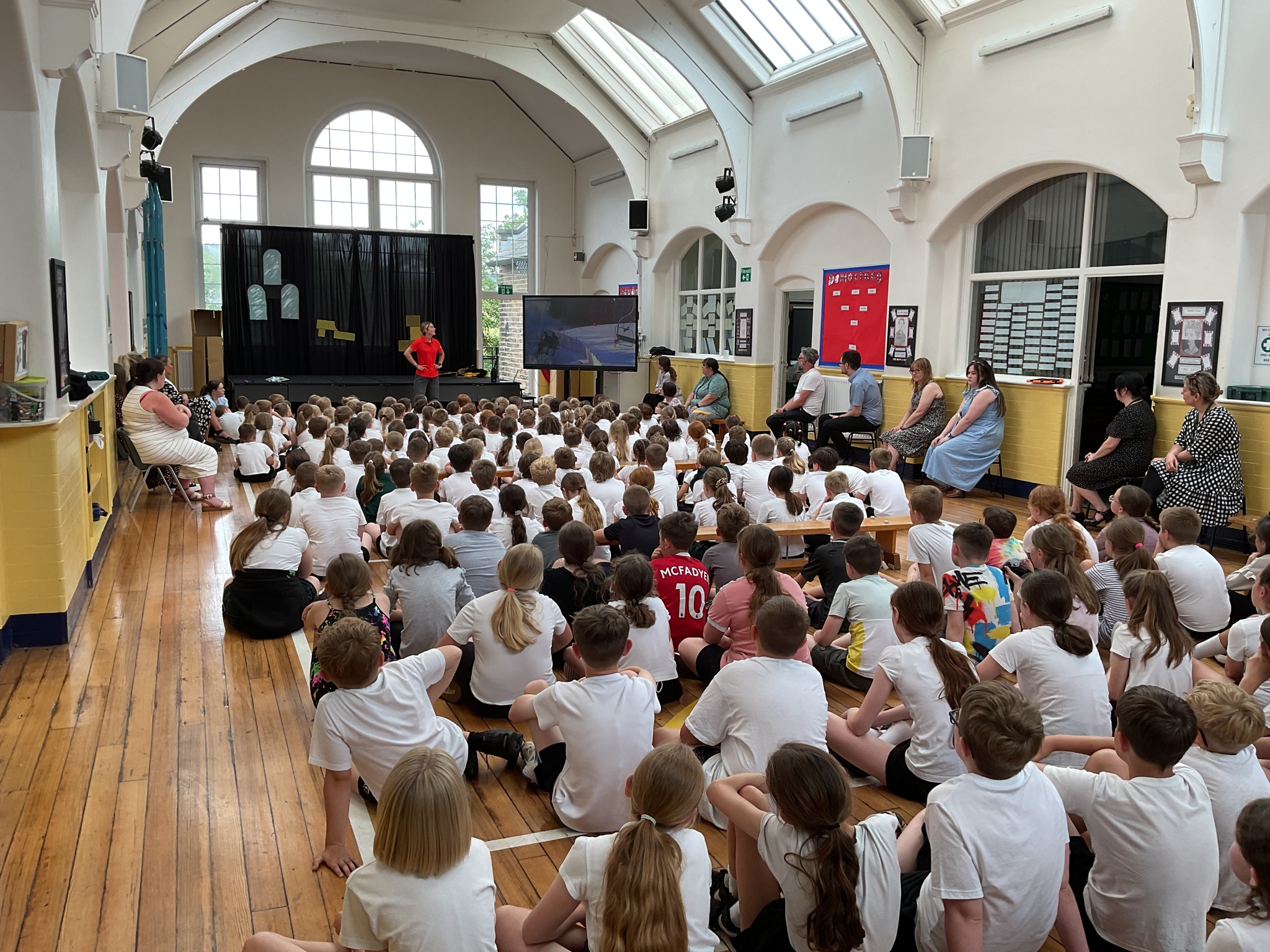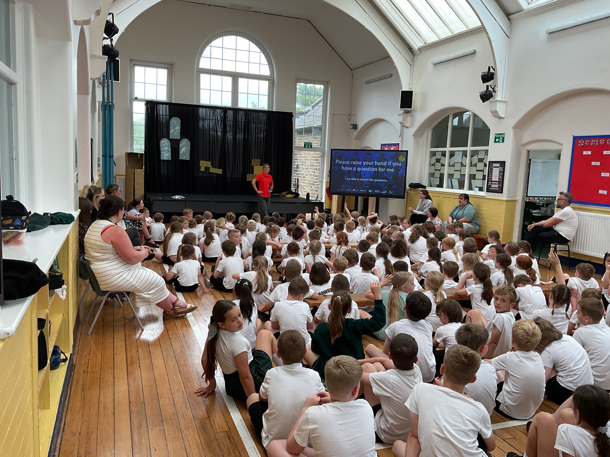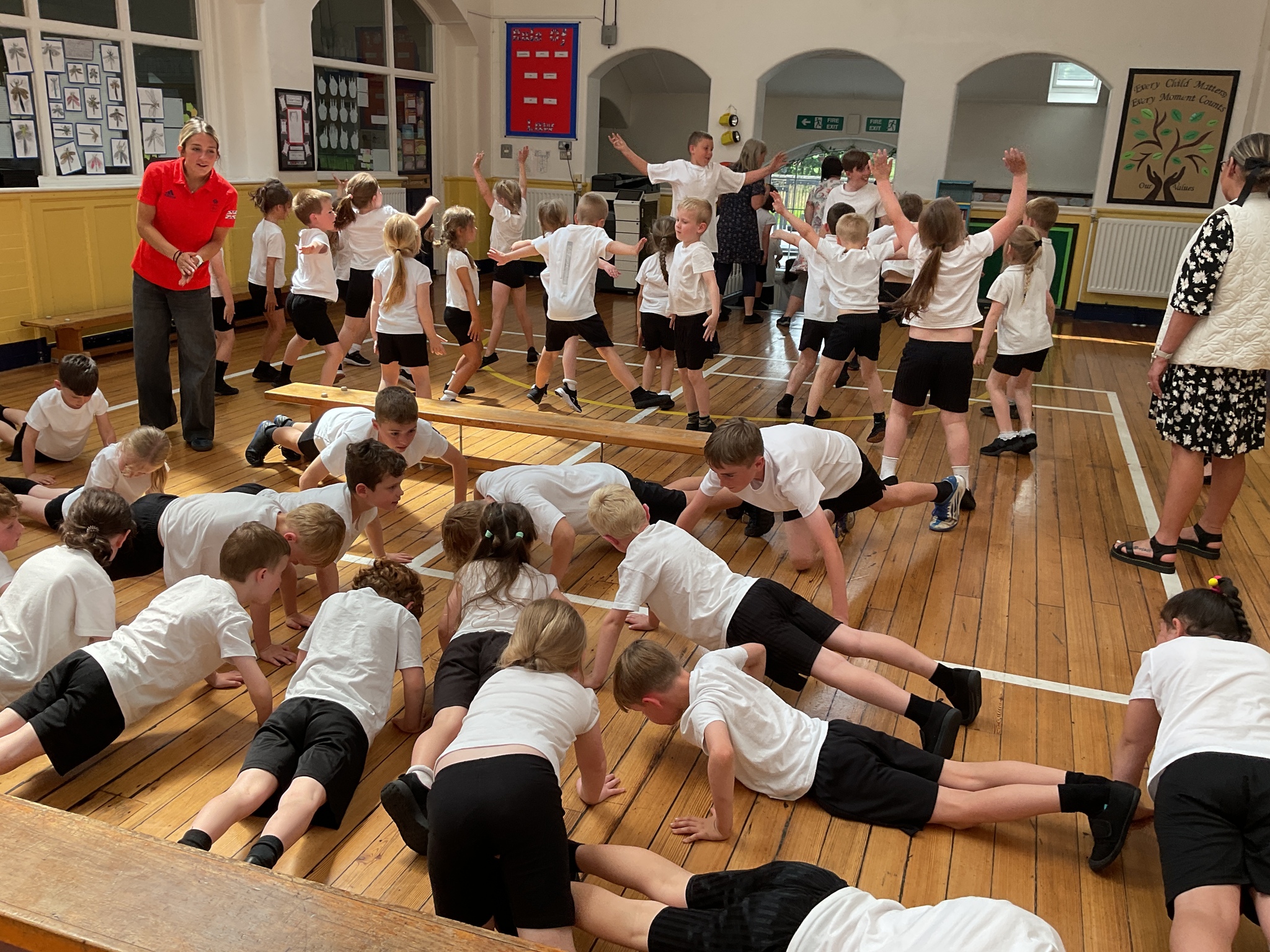 What a way to kick off our sports week! Today GB skier Charlotte Holmes came into school to talk to us about her life as an athlete. She talked to us about the types of skiing she does and showed us videos - including a few crashes! After that the children took part in a sponsored circuit that included spotty dogs, mountain climbers, press-ups and star jumps. Each round lasted 30 seconds and there were some very warm children by the end. A huge thank you to all of you who sponsored the children and a great big thank you to our year 6 sports ambassadors who modelled the activities and helped out wonderfully. We can’t wait for the rest of the week!