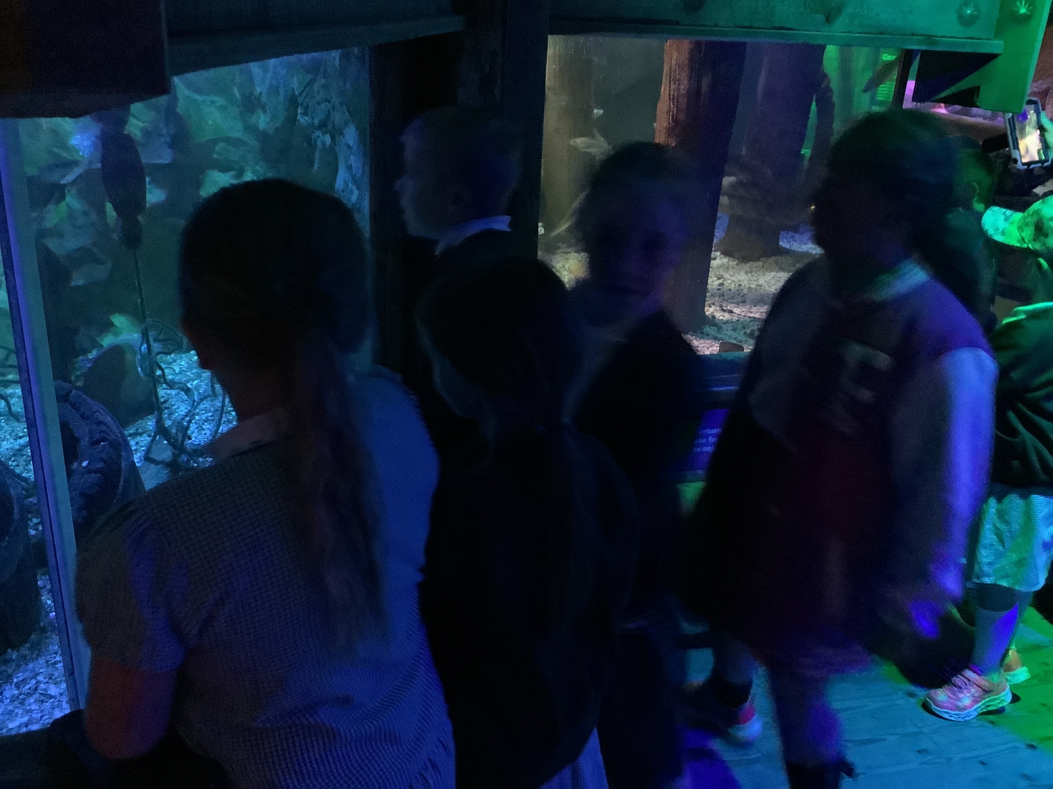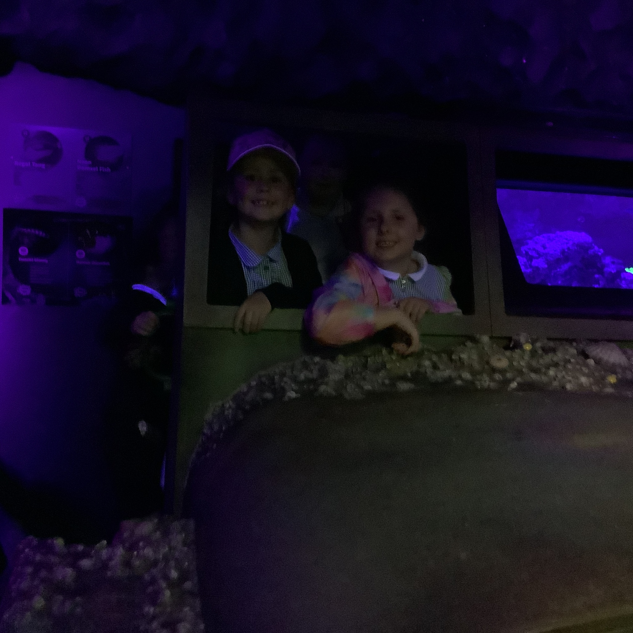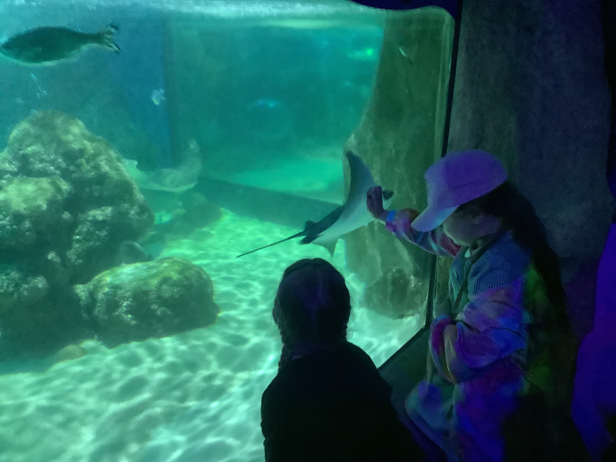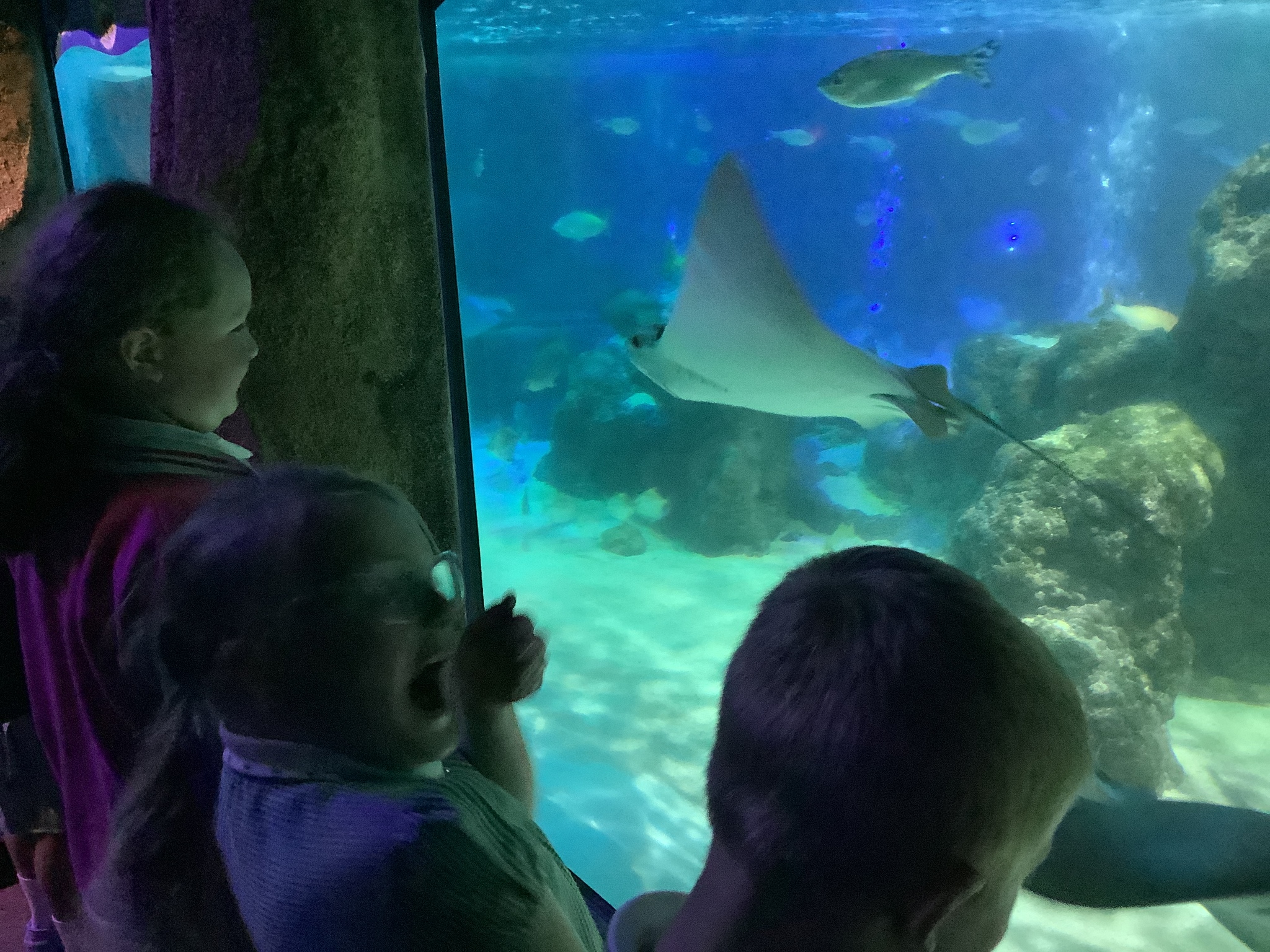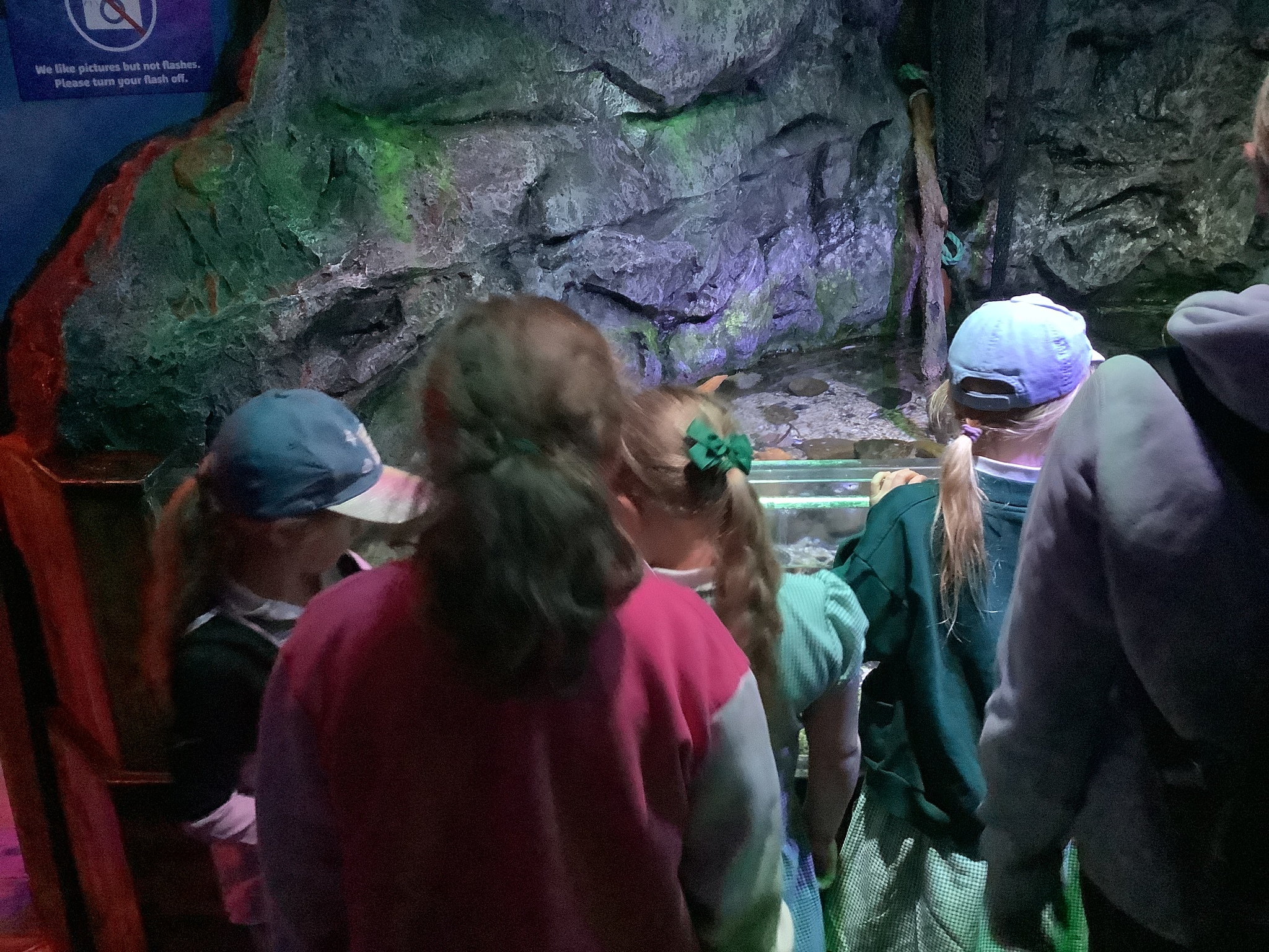 We learned all about lots of creatures that live in the oceans including starfish, seahorses and, of course, sharks! We saw Matilda the Moray eel and Phoenix the Green sea turtle, but Dave the nurse shark was resting. We watched the octopus unfurl his long tentacles and were amazed when the rays sailed right over our heads.
