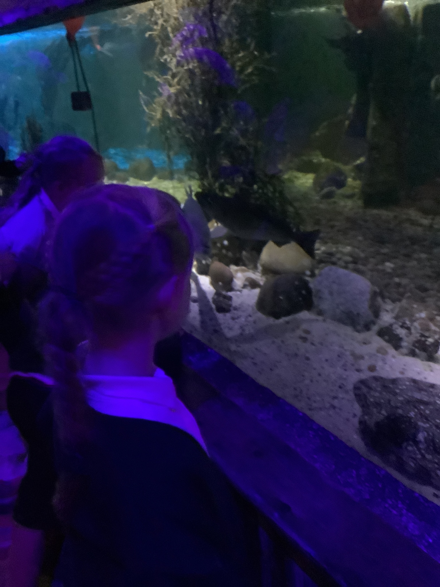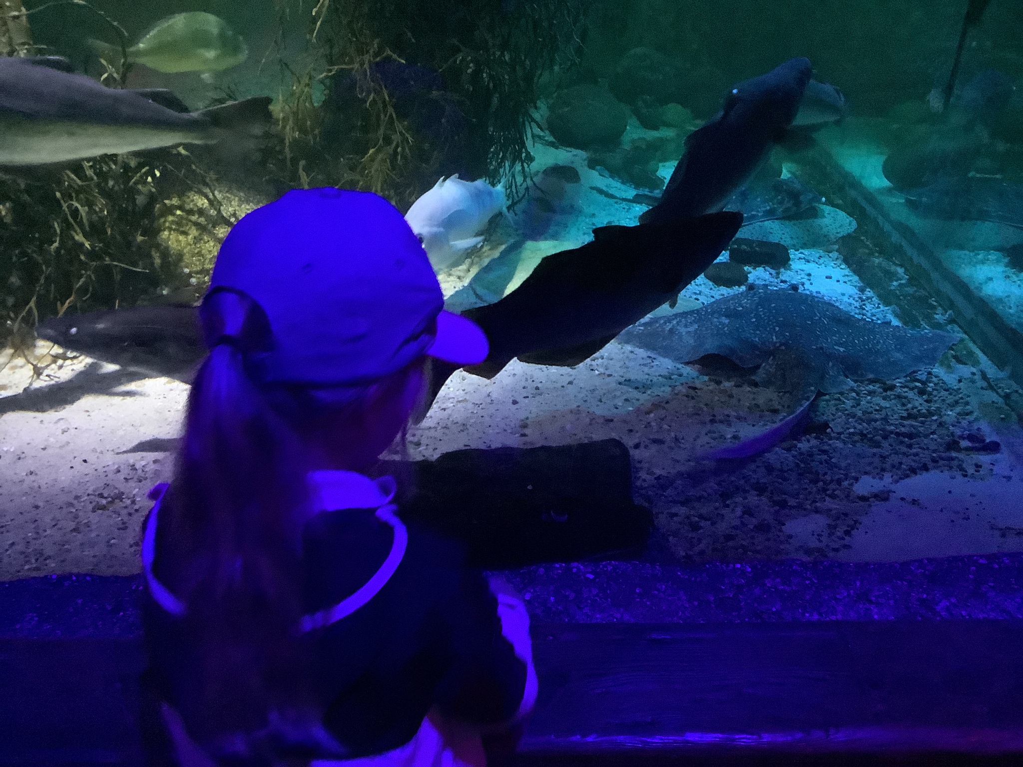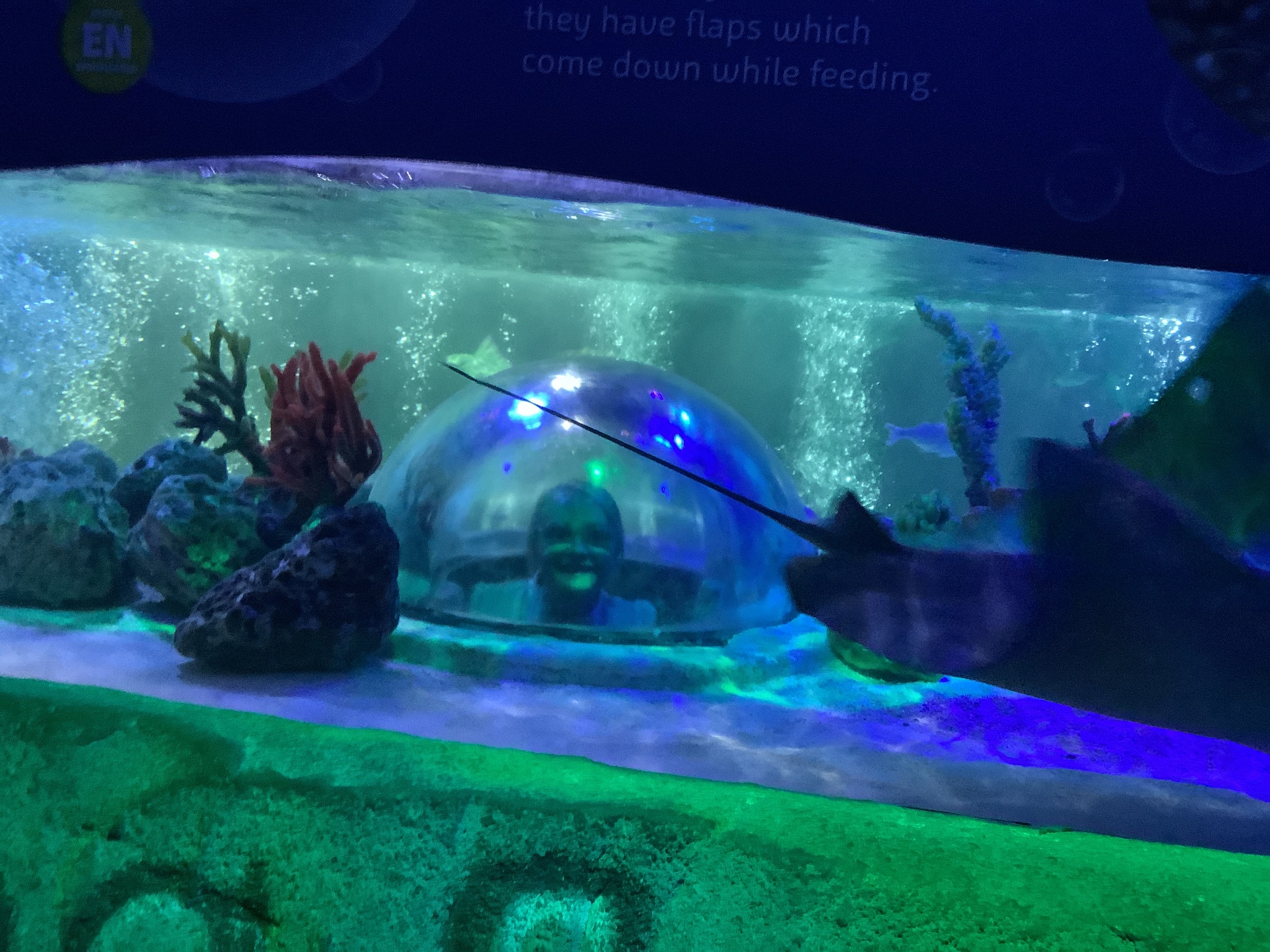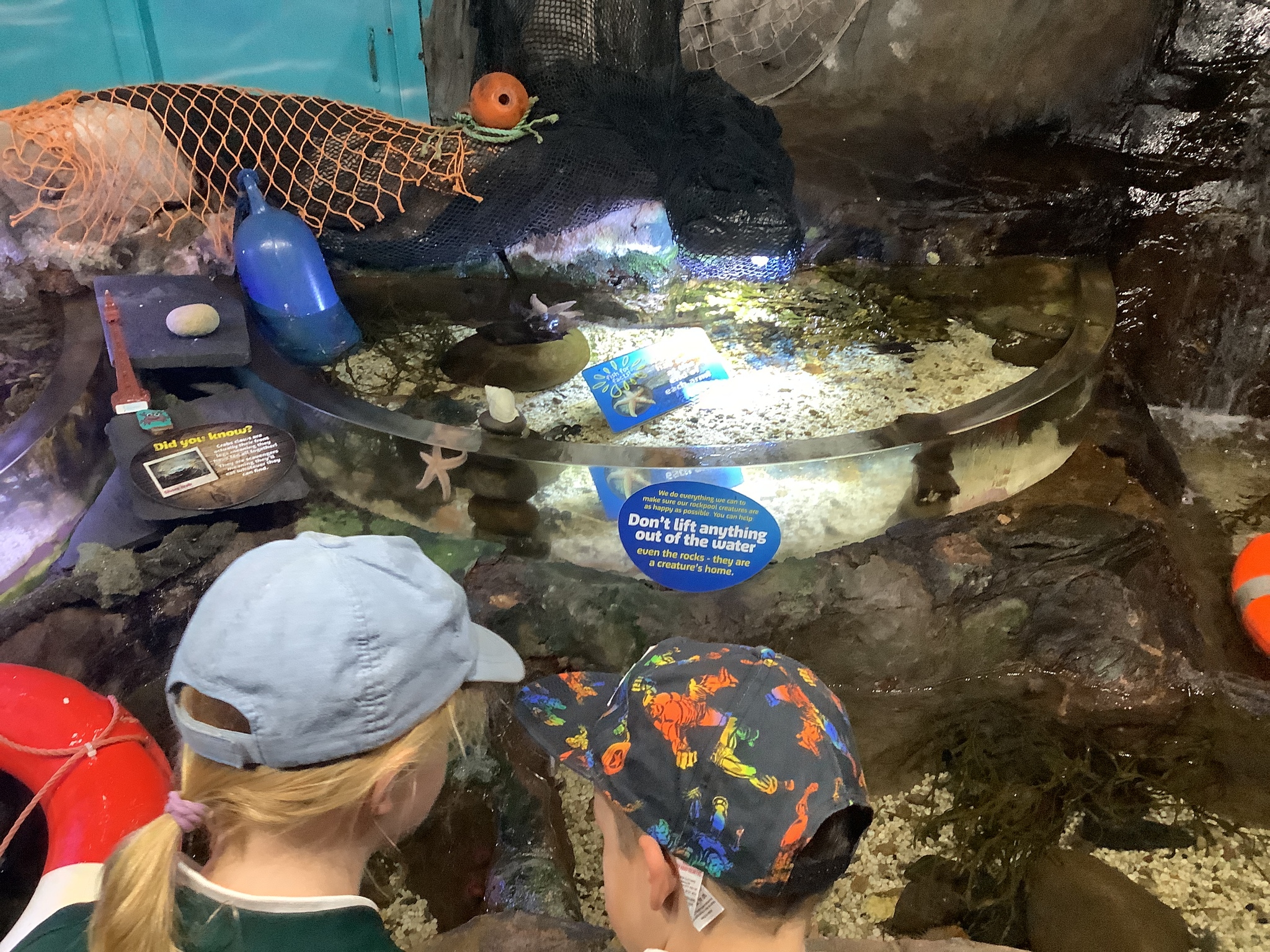 We learned all about lots of creatures that live in the oceans including starfish, seahorses and, of course, sharks! We saw Matilda the Moray eel and Phoenix the Green sea turtle, but Dave the nurse shark was resting. We watched the octopus unfurl his long tentacles and were amazed when the rays sailed right over our heads.