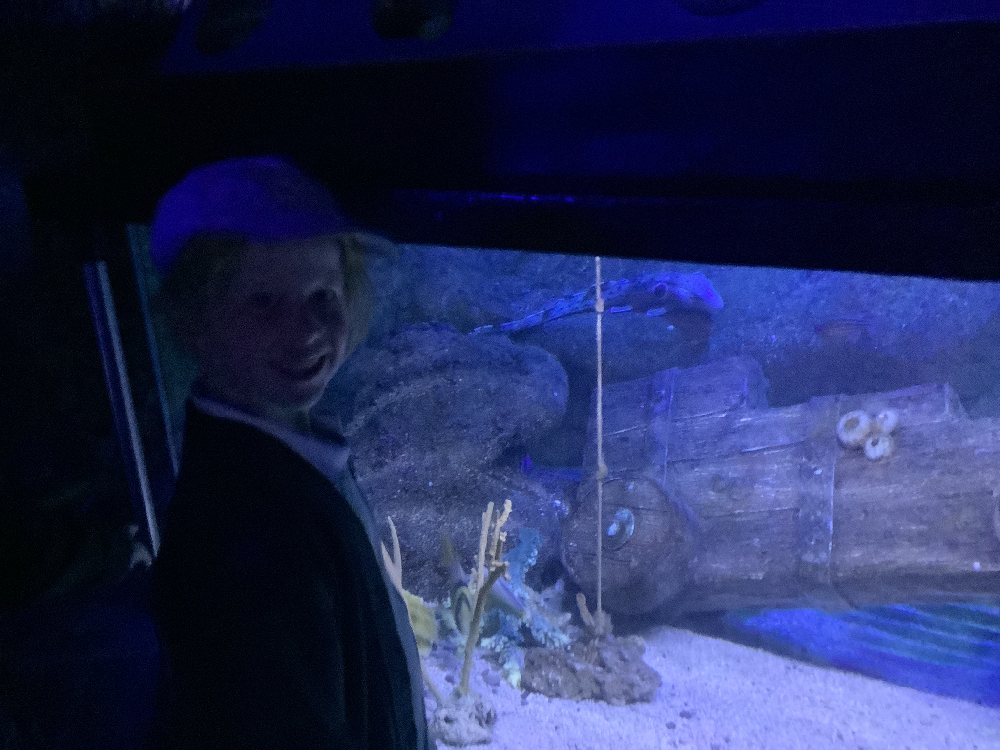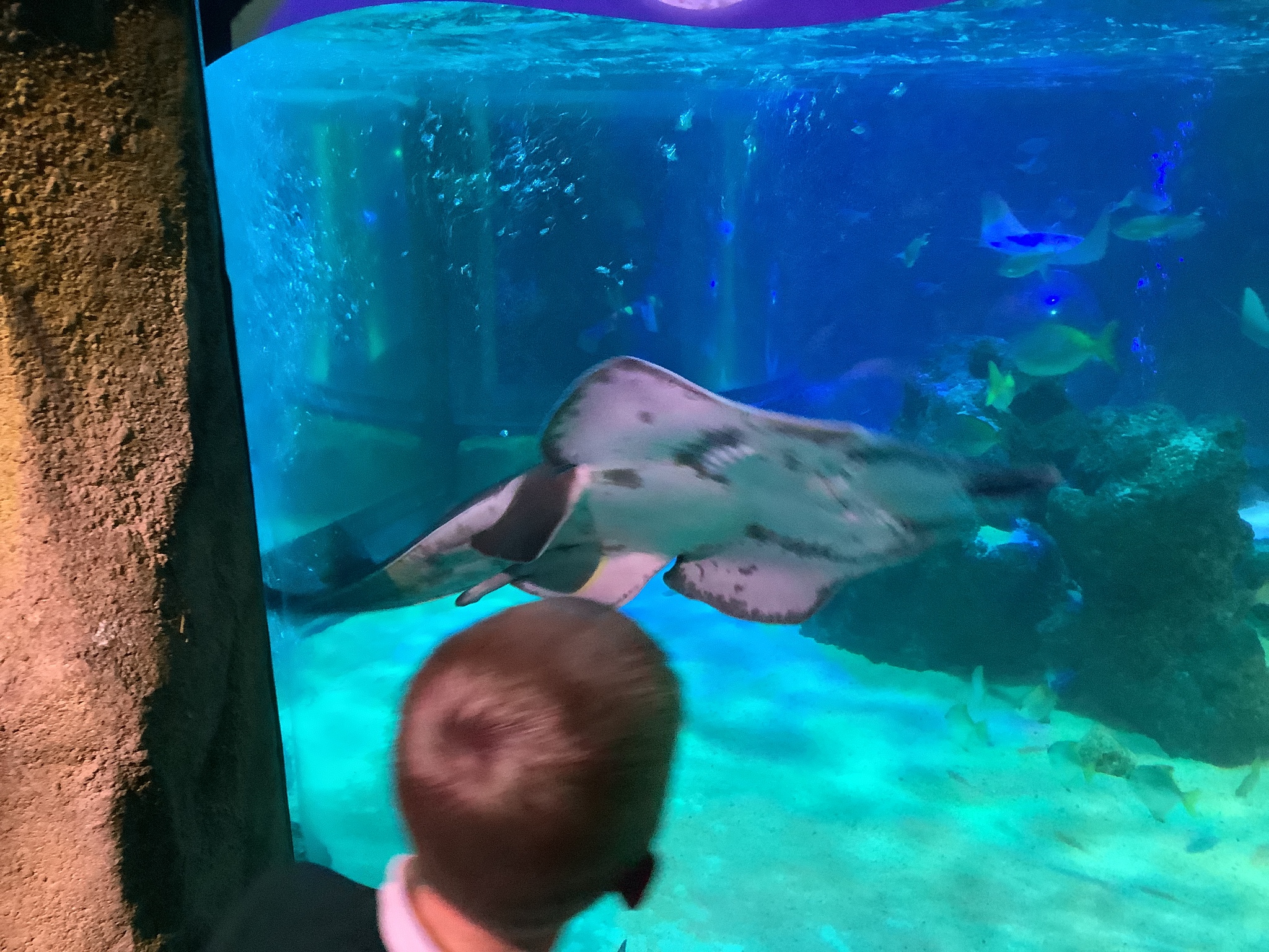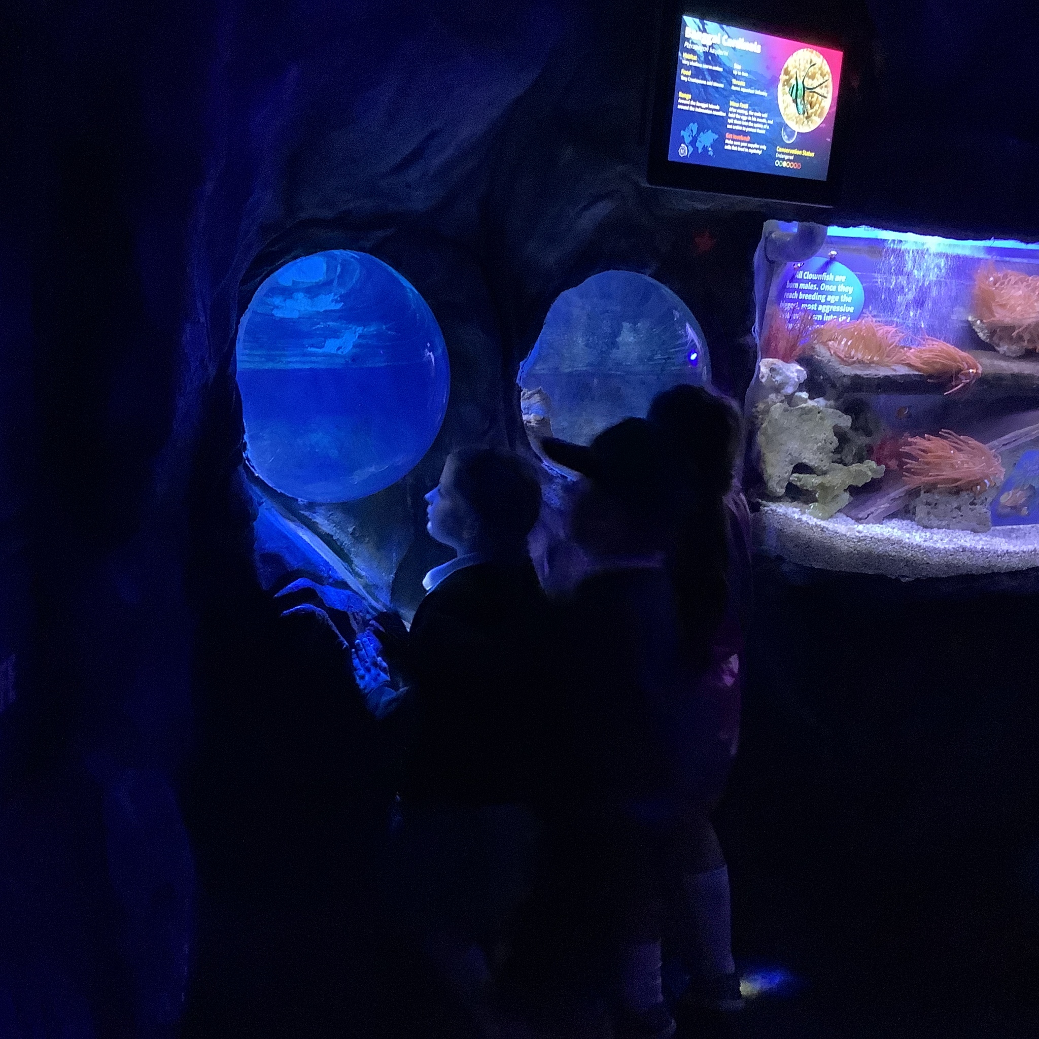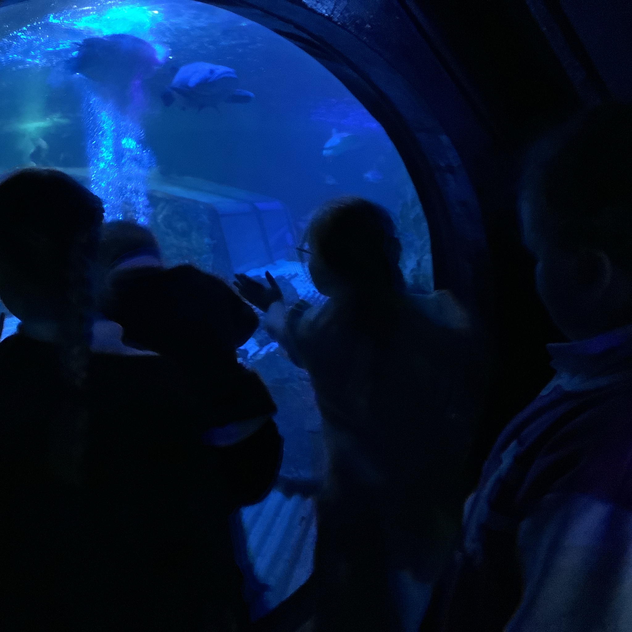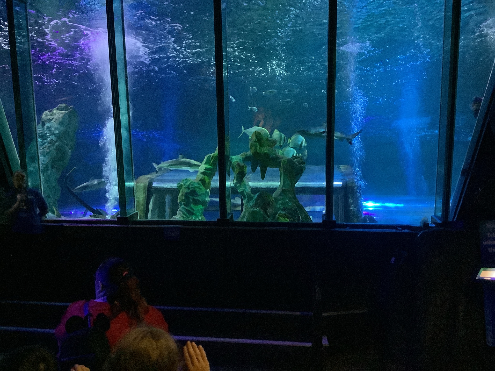 We learned all about lots of creatures that live in the oceans including starfish, seahorses and, of course, sharks! We saw Matilda the Moray eel and Phoenix the Green sea turtle, but Dave the nurse shark was resting. We watched the octopus unfurl his long tentacles and were amazed when the rays sailed right over our heads.