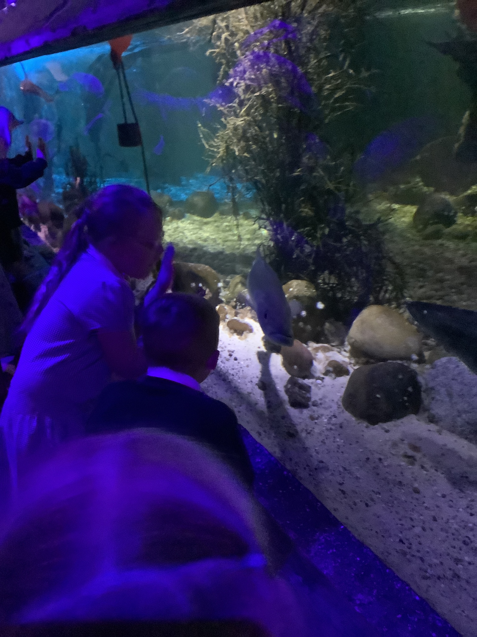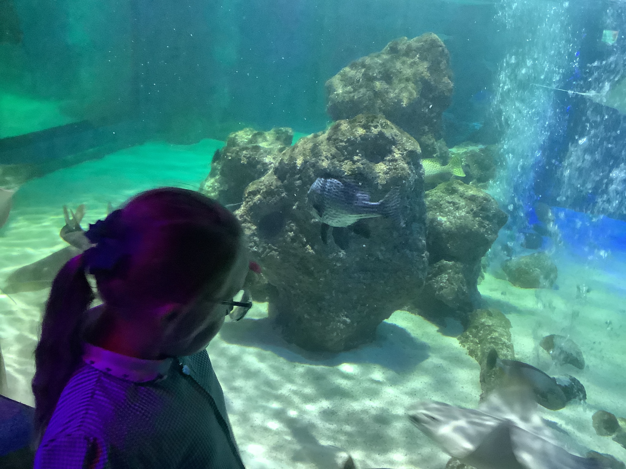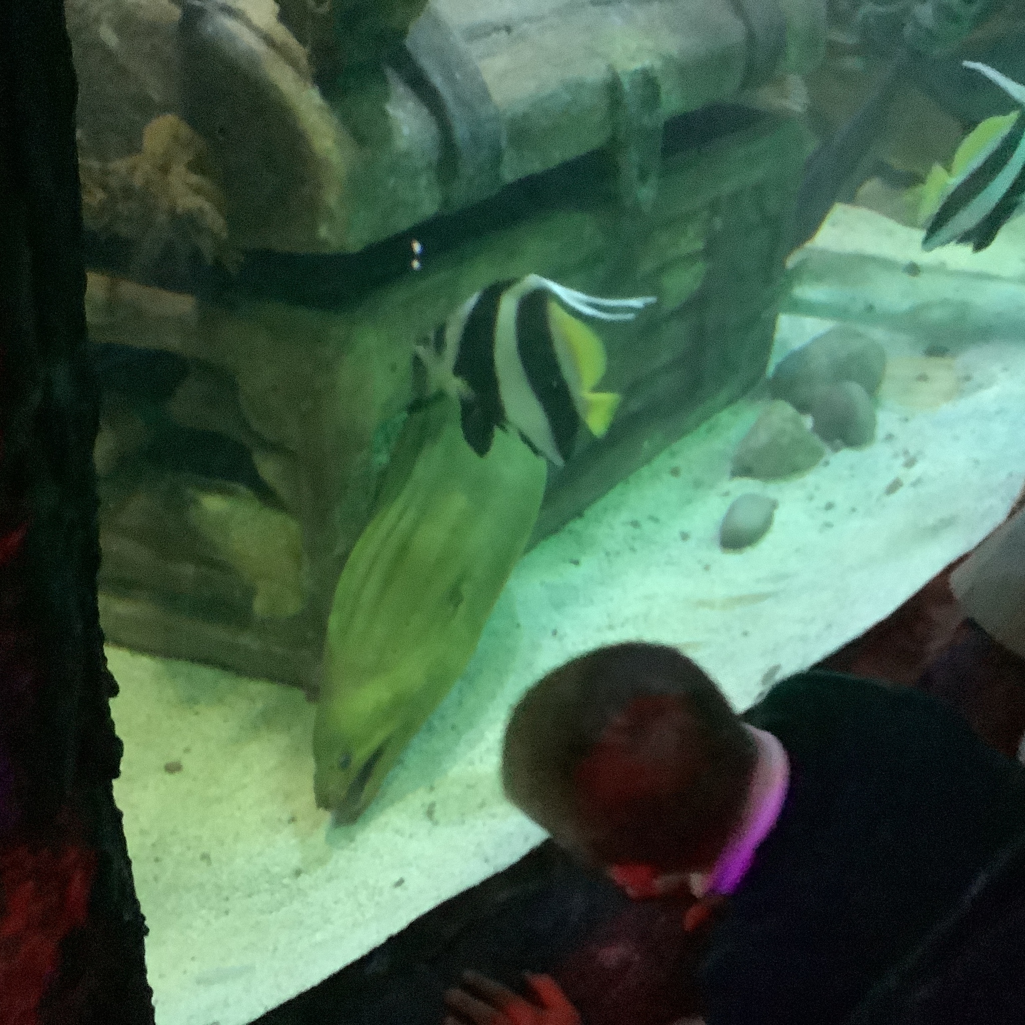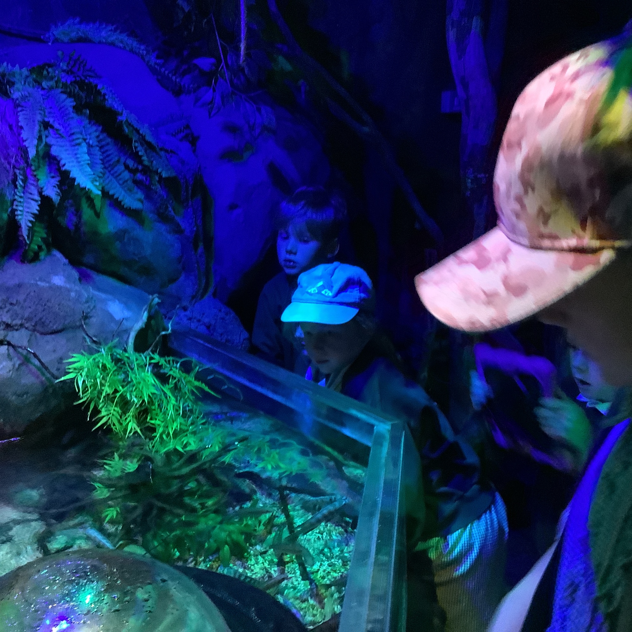 We learned all about lots of creatures that live in the oceans including starfish, seahorses and, of course, sharks! We saw Matilda the Moray eel and Phoenix the Green sea turtle, but Dave the nurse shark was resting. We watched the octopus unfurl his long tentacles and were amazed when the rays sailed right over our heads.