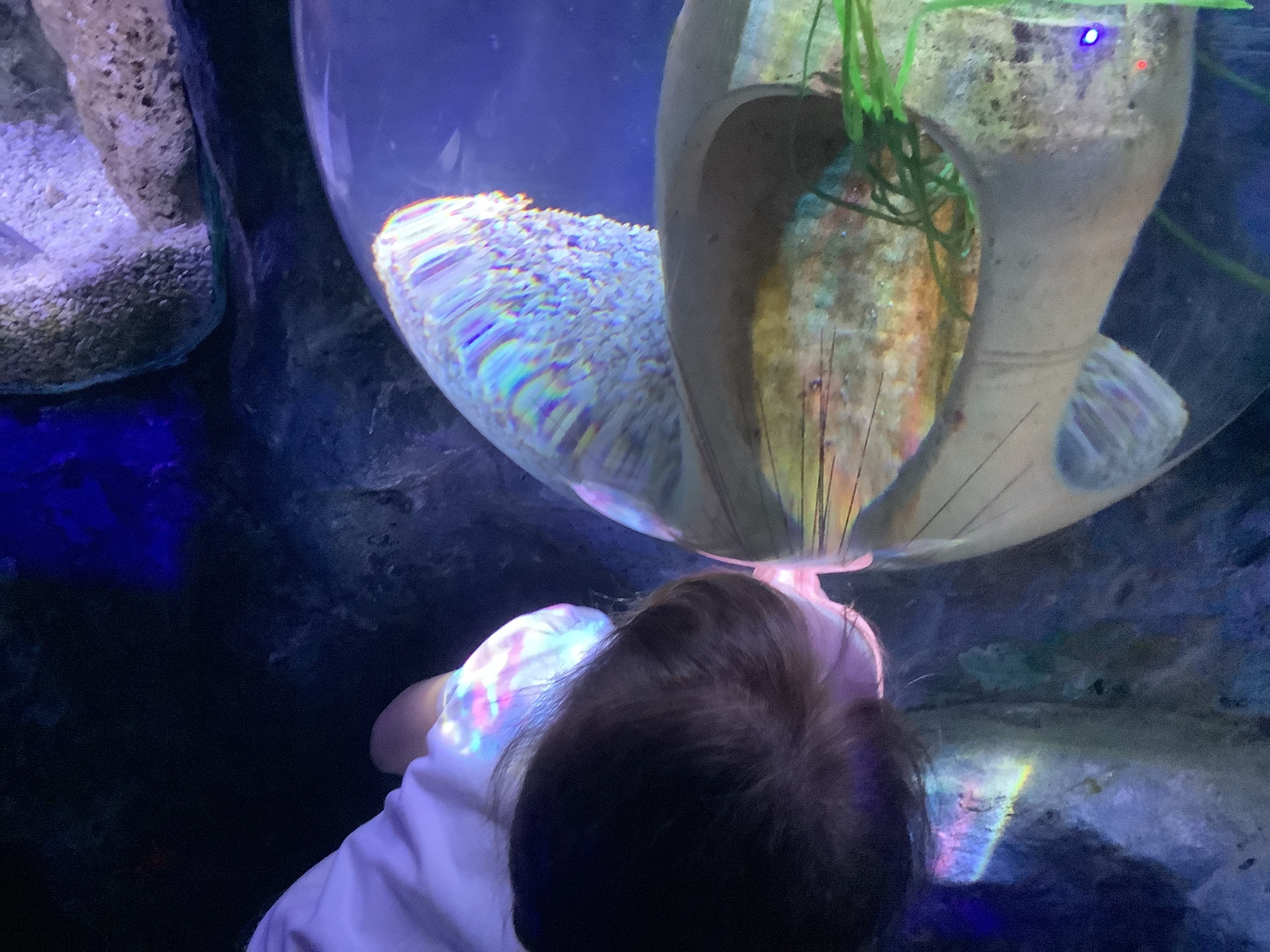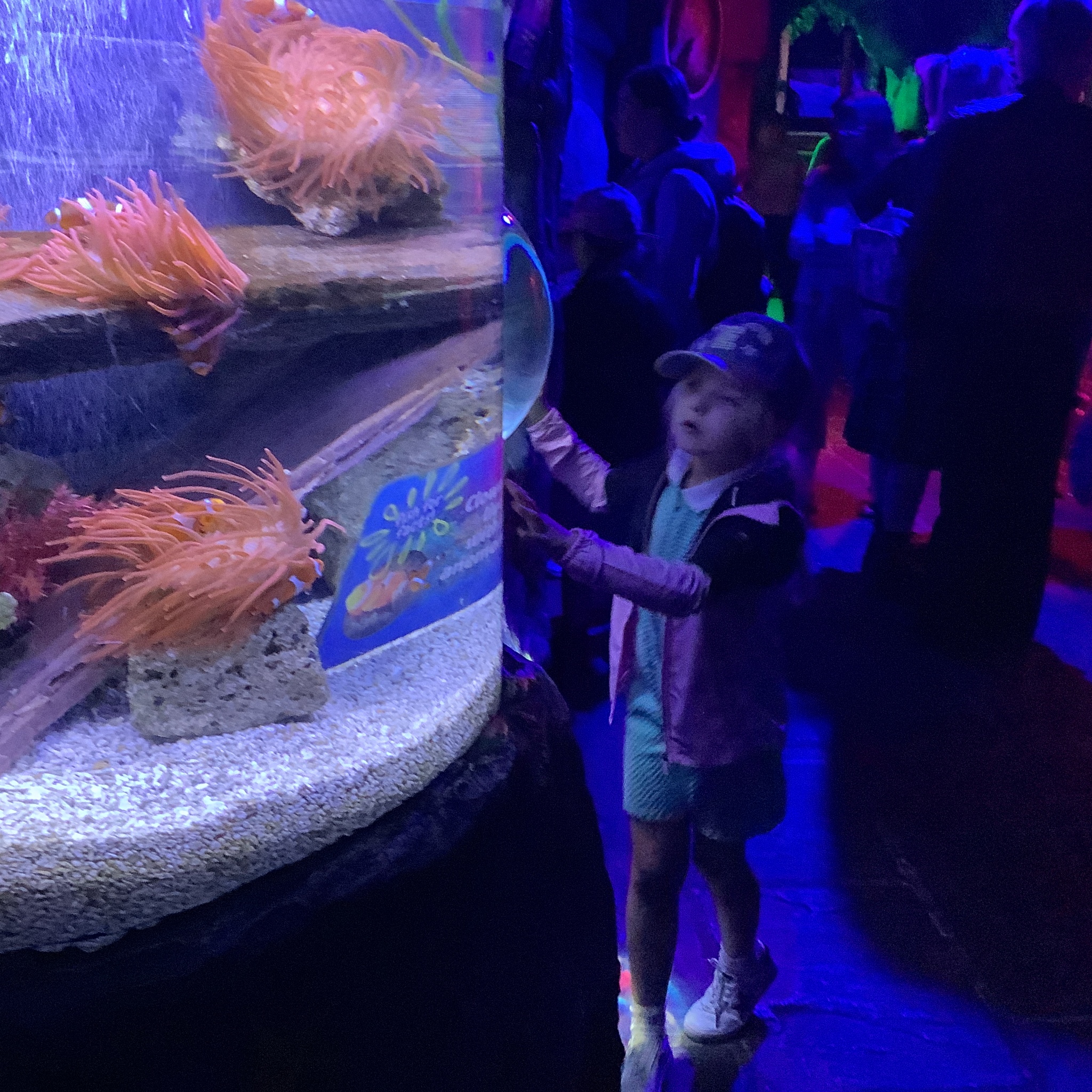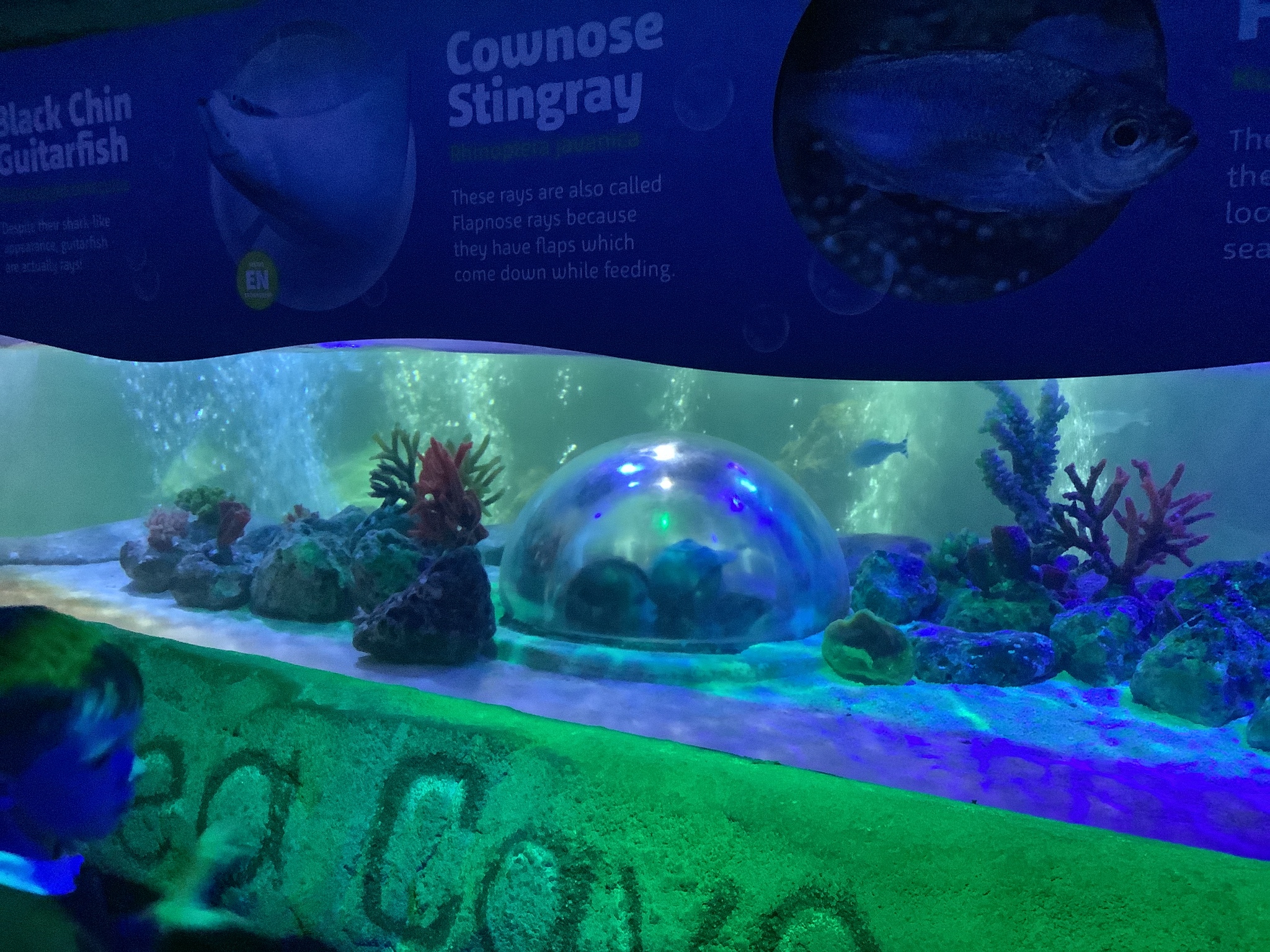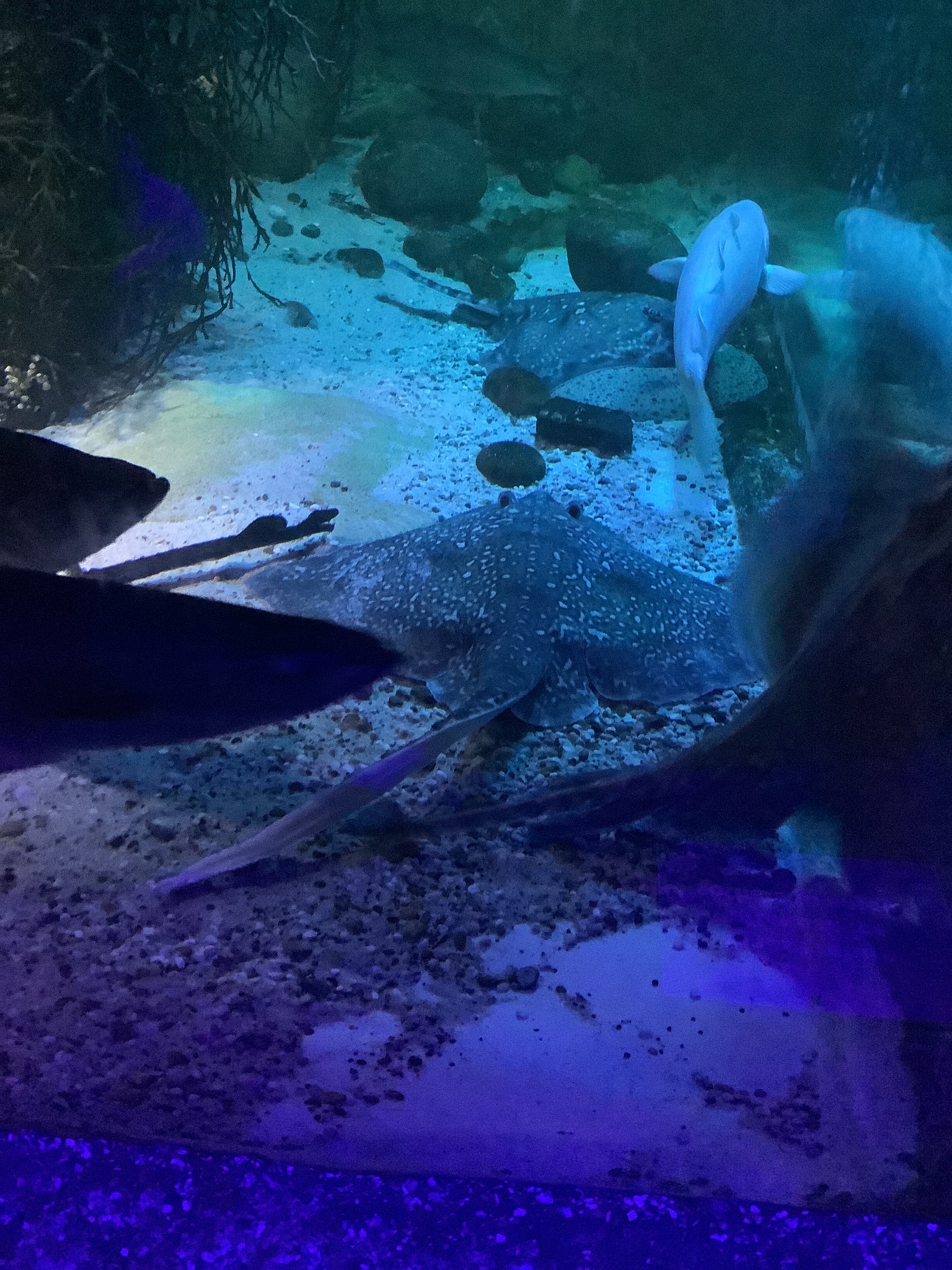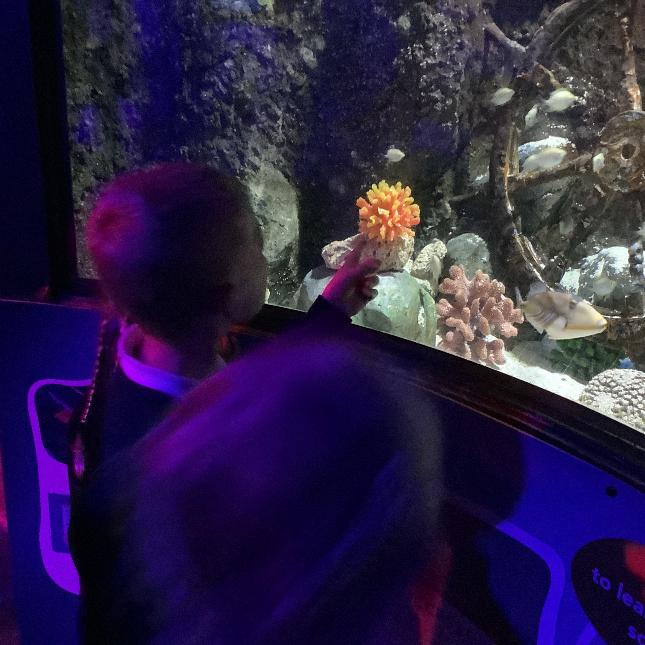 We learned all about lots of creatures that live in the oceans including starfish, seahorses and, of course, sharks! We saw Matilda the Moray eel and Phoenix the Green sea turtle, but Dave the nurse shark was resting. We watched the octopus unfurl his long tentacles and were amazed when the rays sailed right over our heads.
