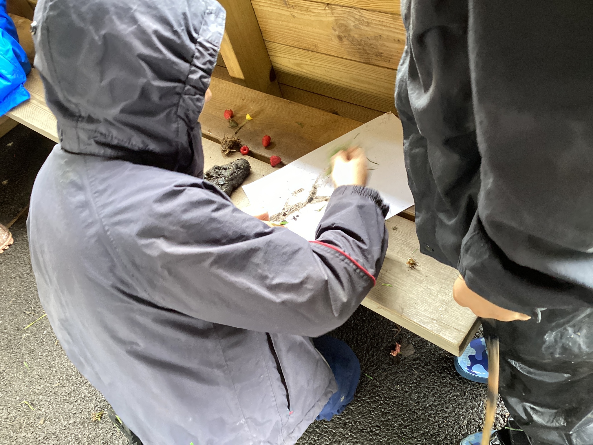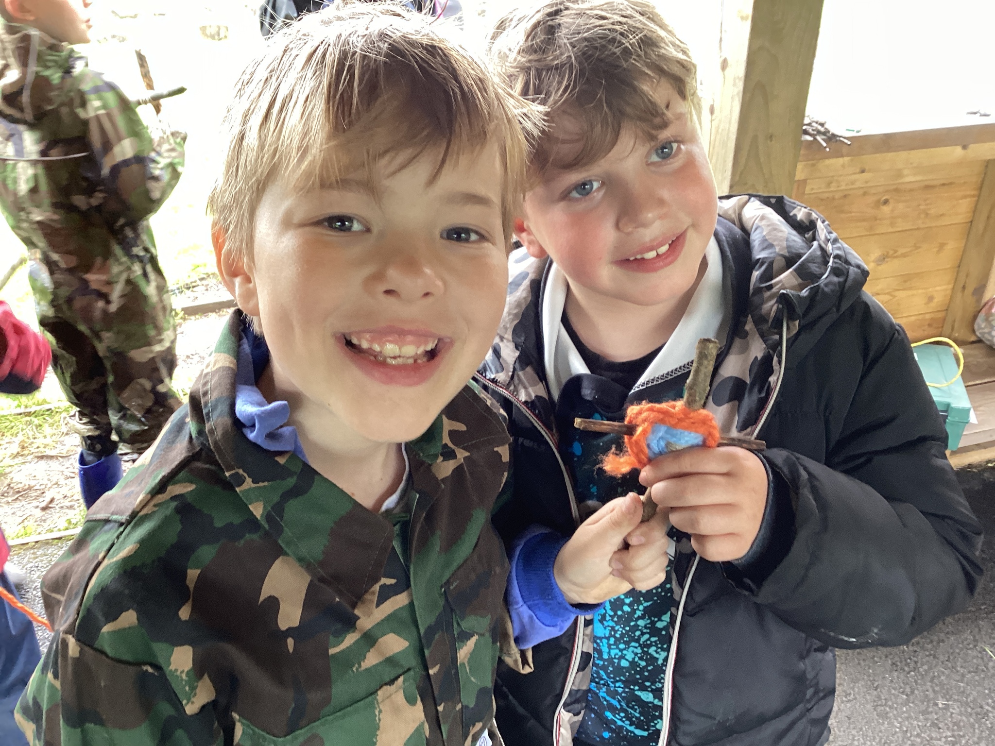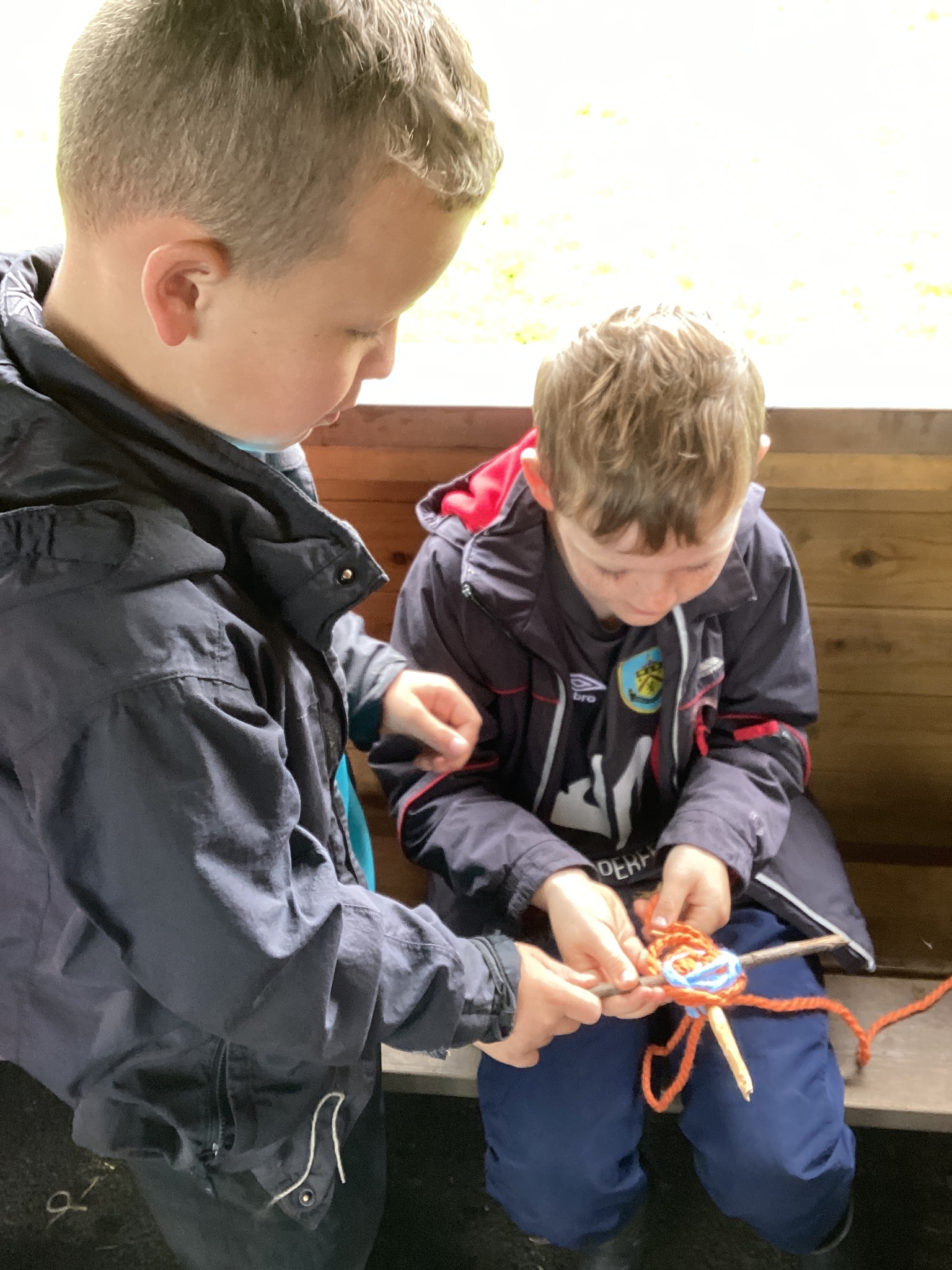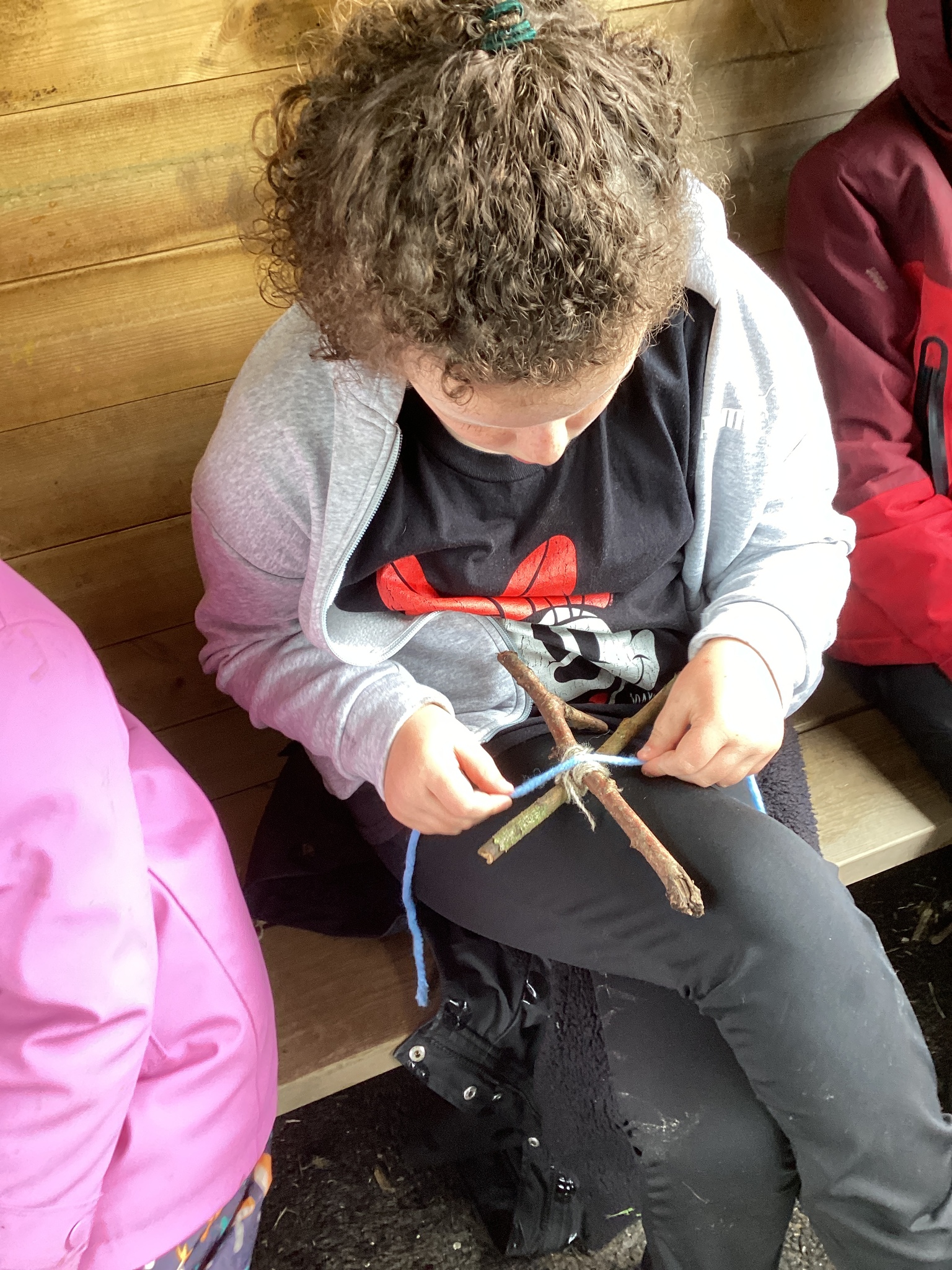 The damp weather didn't dampen the spirits in Year 3 during our Forest School session today. In fact, Year 3 did tremendously well practising the Square Lashing from last week to create some colourful art work. Following this, they used natural materials to paint a picture. The improvement they have made on their paintings from the first session is wonderful to see. Great work, Year 3!