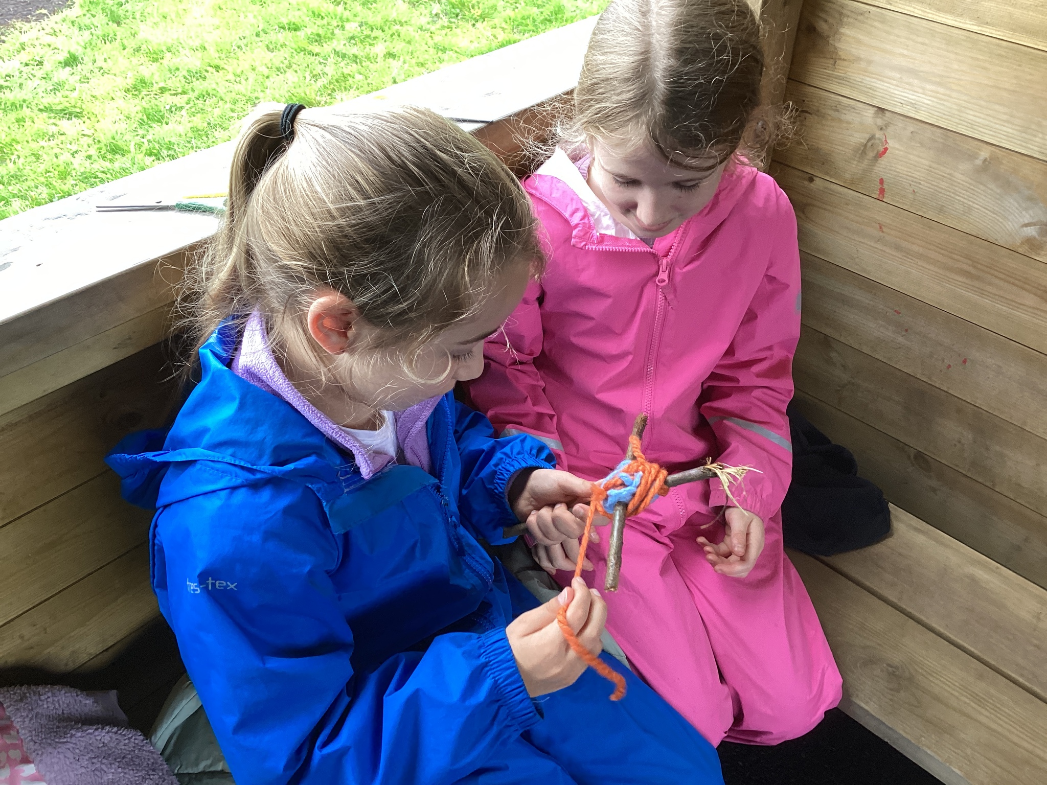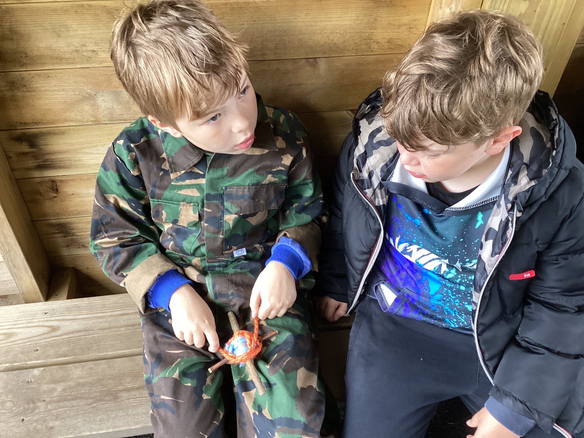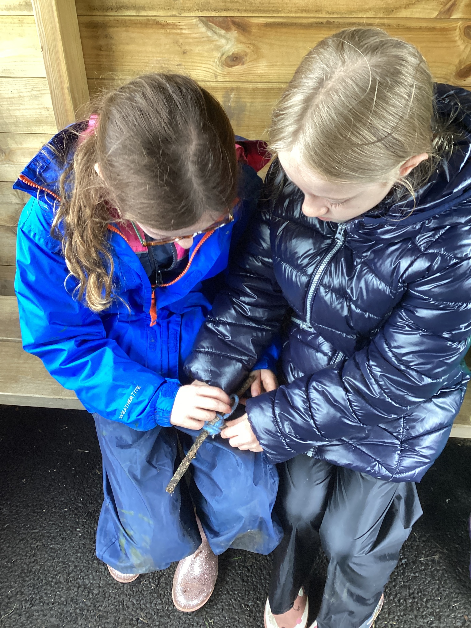 The damp weather didn't dampen the spirits in Year 3 during our Forest School session today. In fact, Year 3 did tremendously well practising the Square Lashing from last week to create some colourful art work. Following this, they used natural materials to paint a picture. The improvement they have made on their paintings from the first session is wonderful to see. Great work, Year 3!